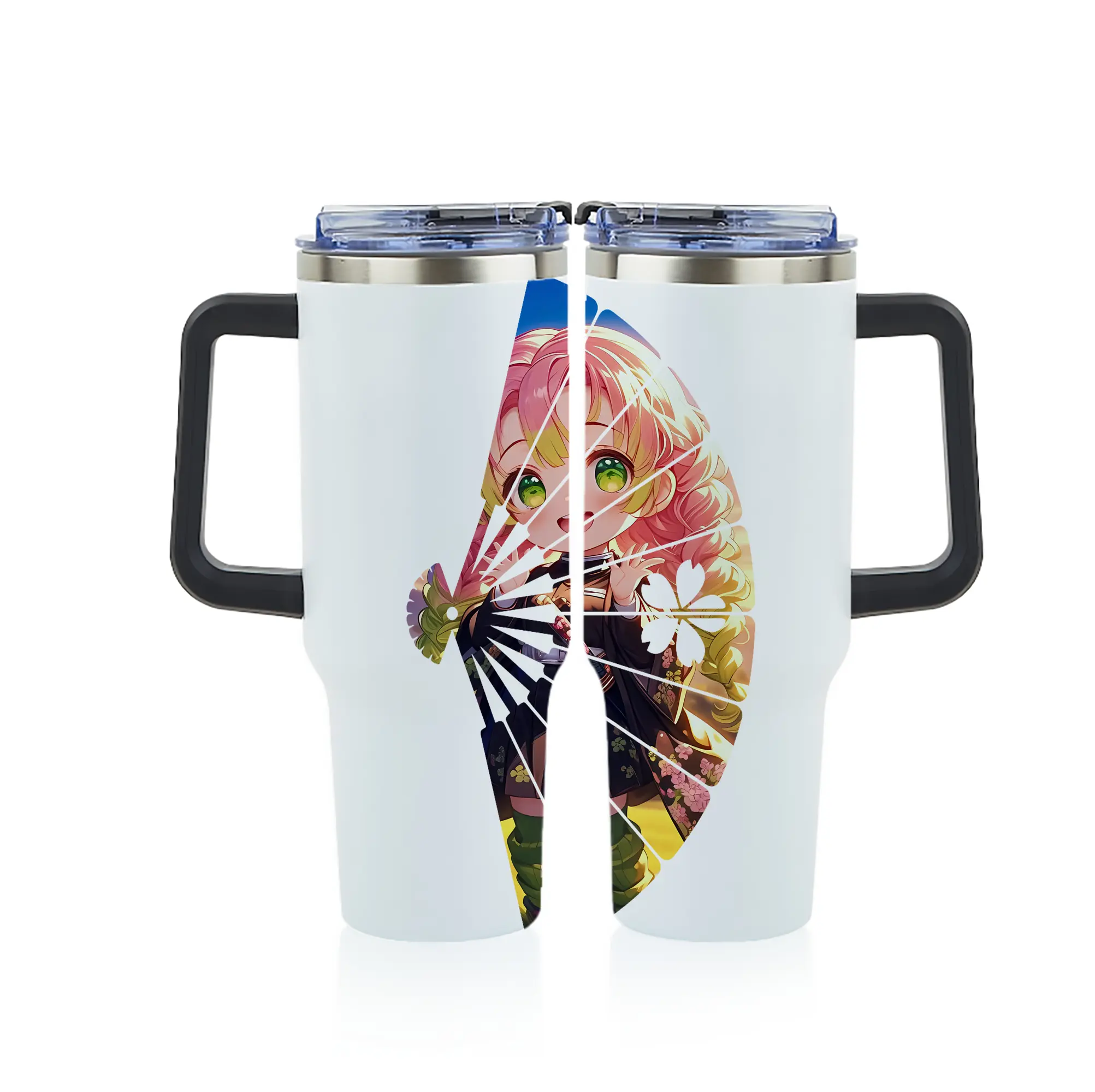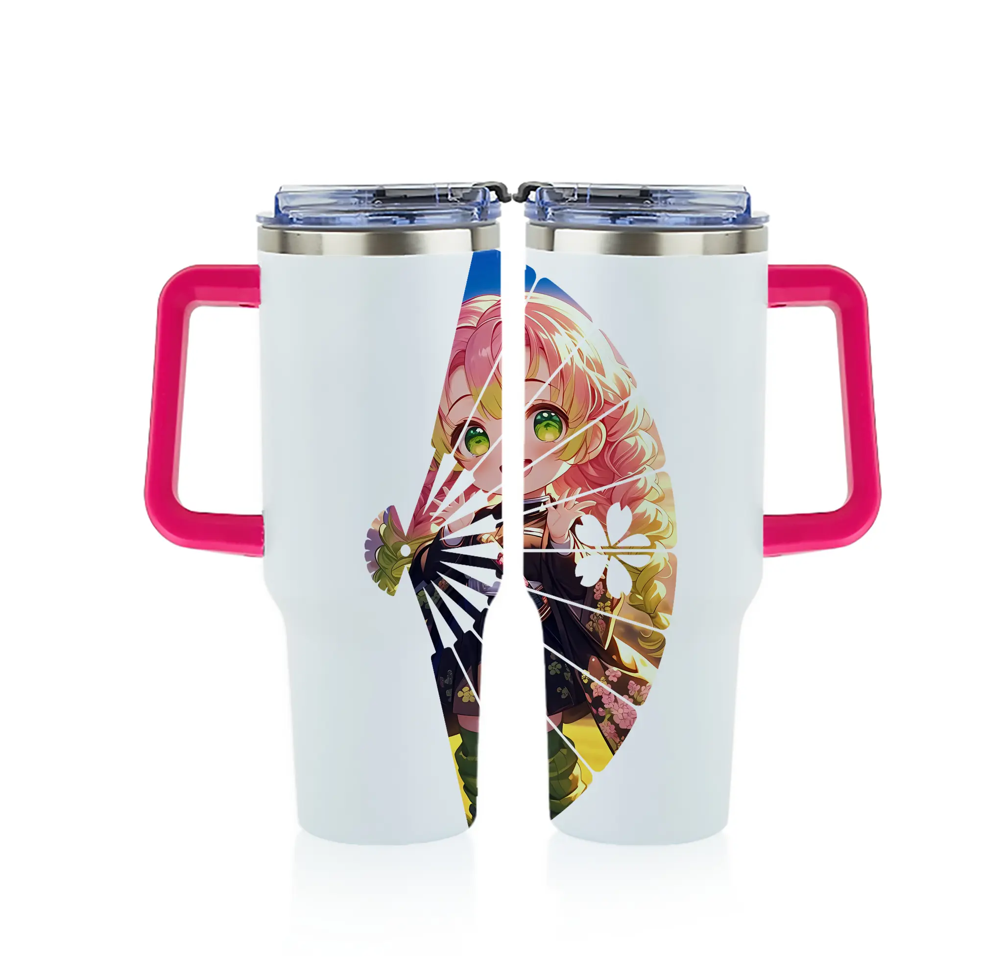 鬼滅の刃 グッズ,甘露寺 蜜璃 - 1200mL フルプリント車用タンブラー ・ 304ステンレス 内側 ・ 201ステンレス 外側 ・ 保温 保冷 ・ 通勤 ドライブ アウトドア用