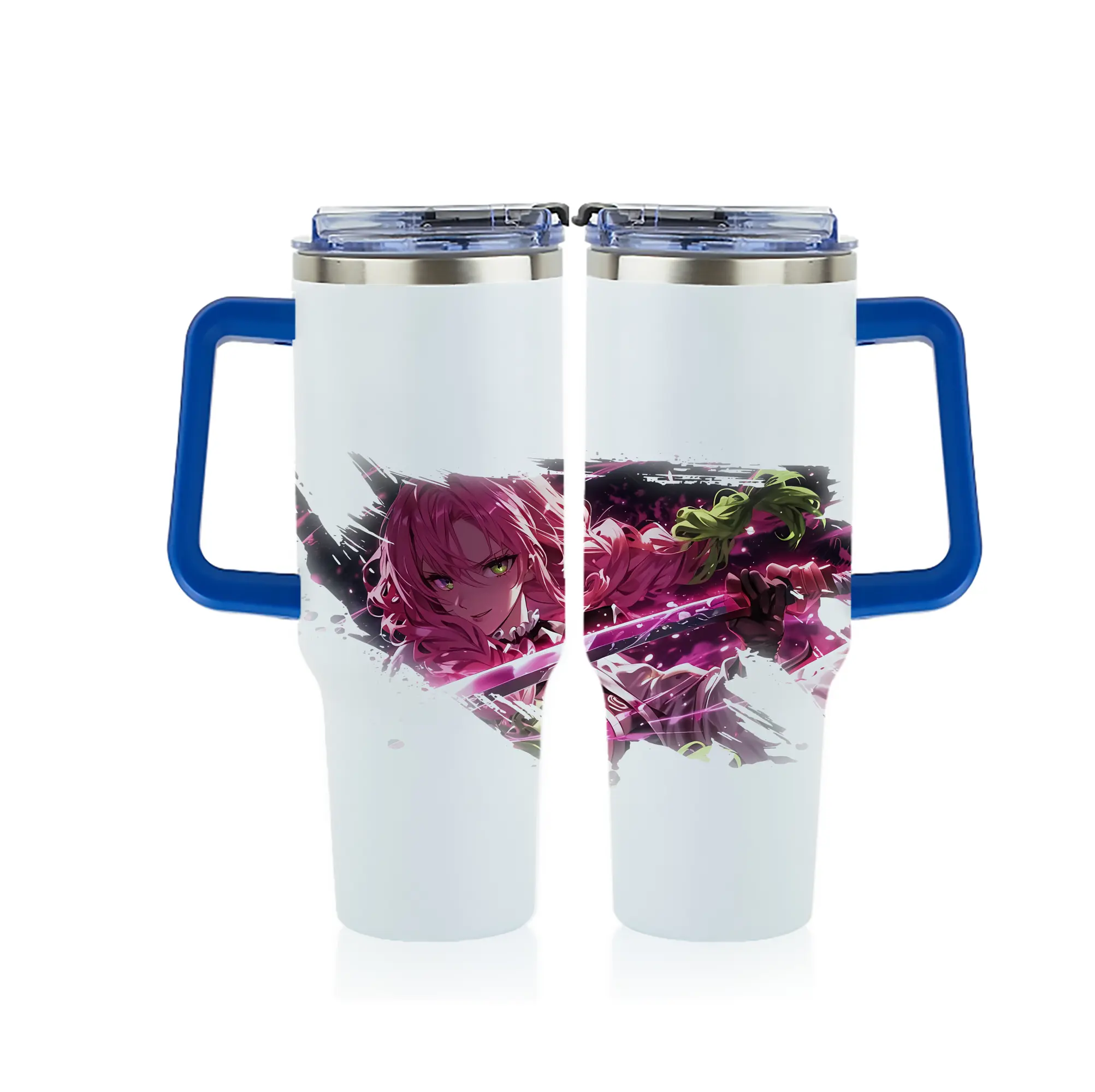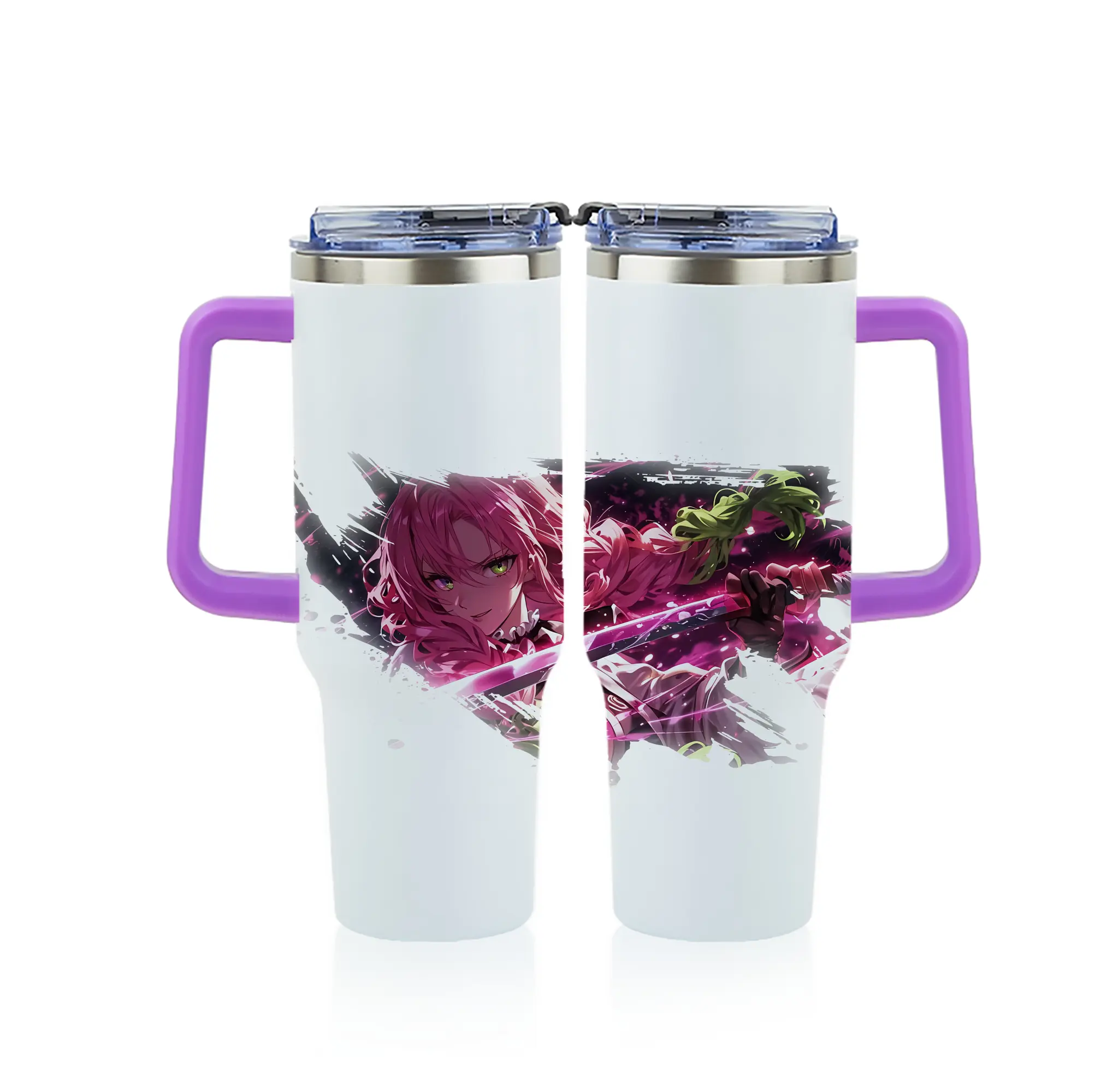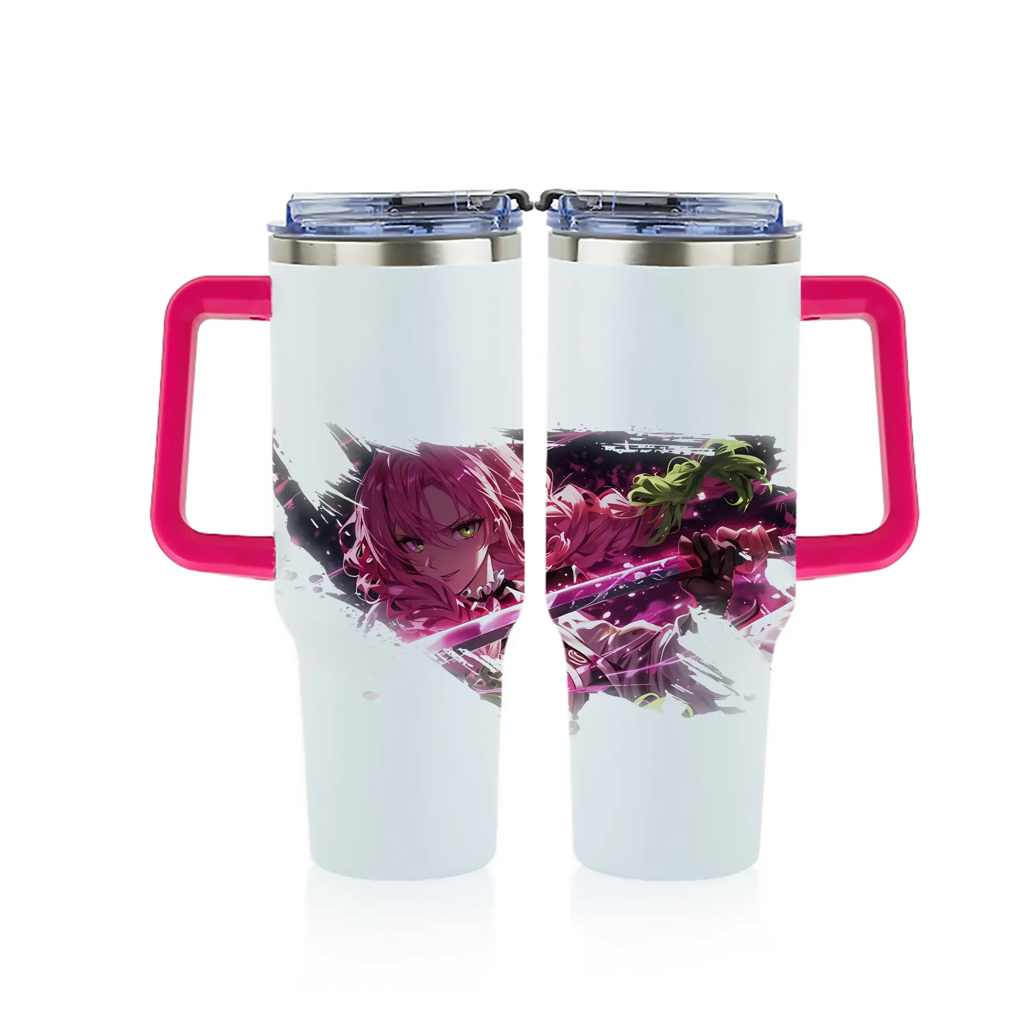 鬼滅の刃 グッズ,甘露寺 蜜璃 - 1200mL フルプリント車用タンブラー ・ 304ステンレス 内側 ・ 201ステンレス 外側 ・ 保温 保冷 ・ 通勤 ドライブ アウトドア用