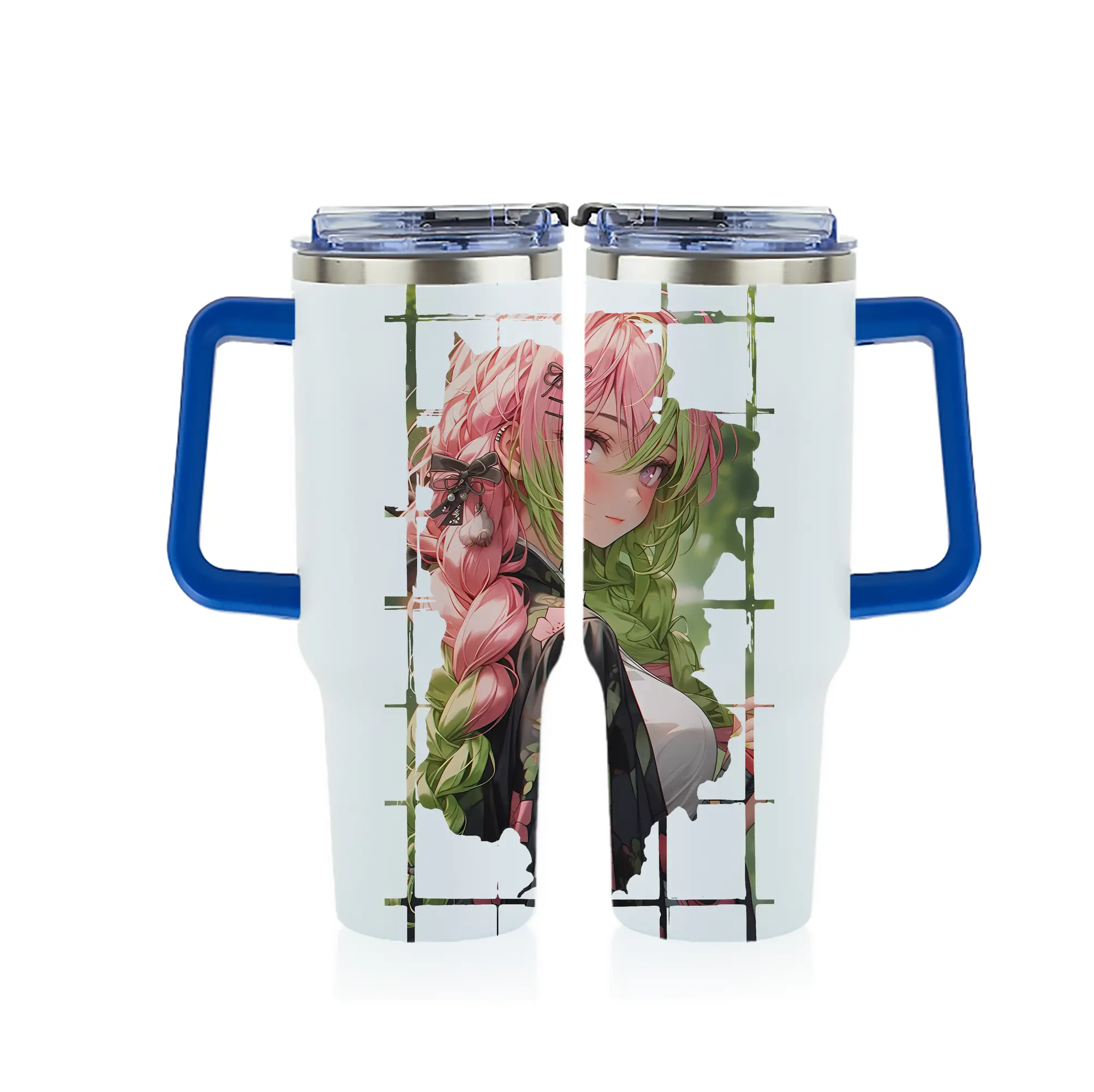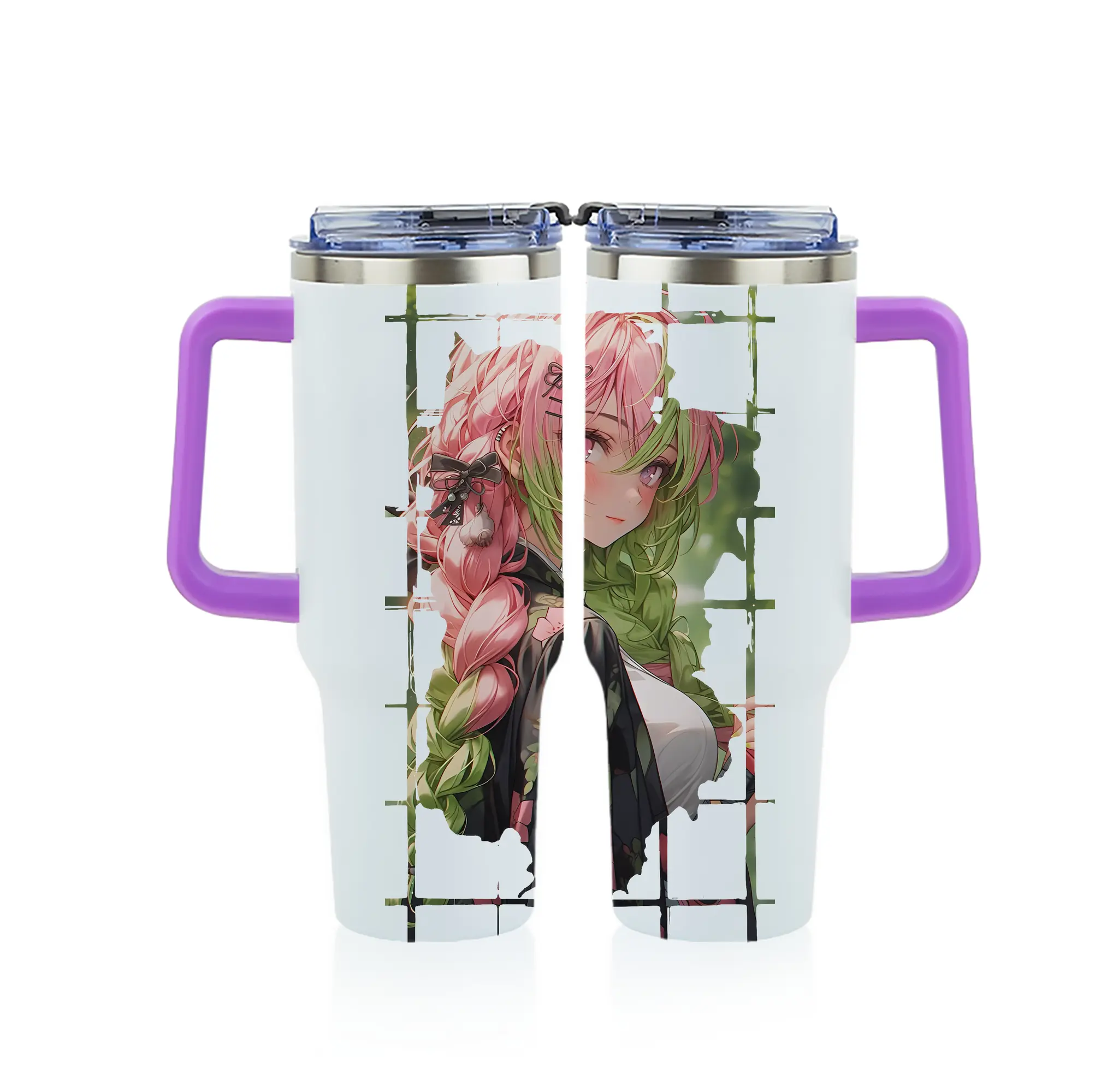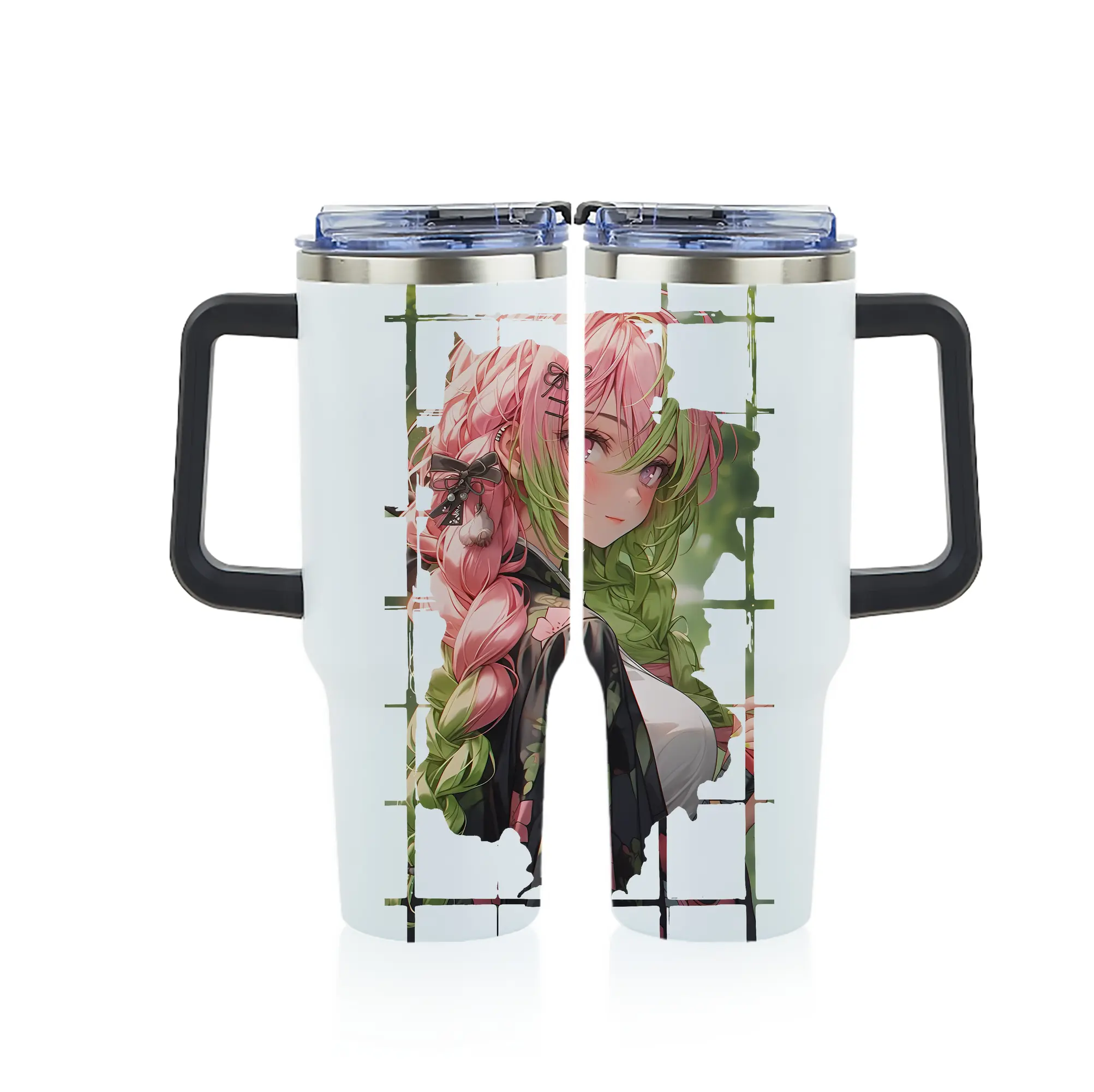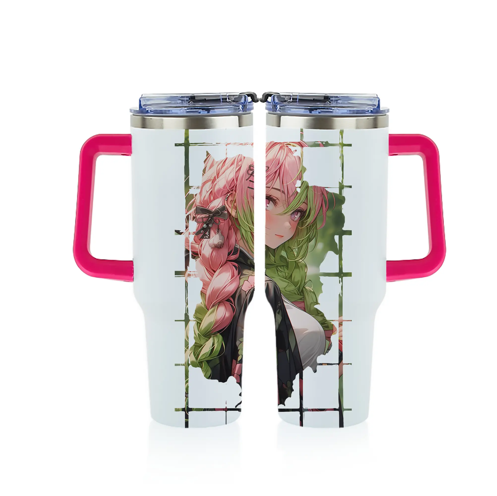 鬼滅の刃 グッズ,甘露寺 蜜璃 - 1200mL フルプリント車用タンブラー ・ 304ステンレス 内側 ・ 201ステンレス 外側 ・ 保温 保冷 ・ 通勤 ドライブ アウトドア用