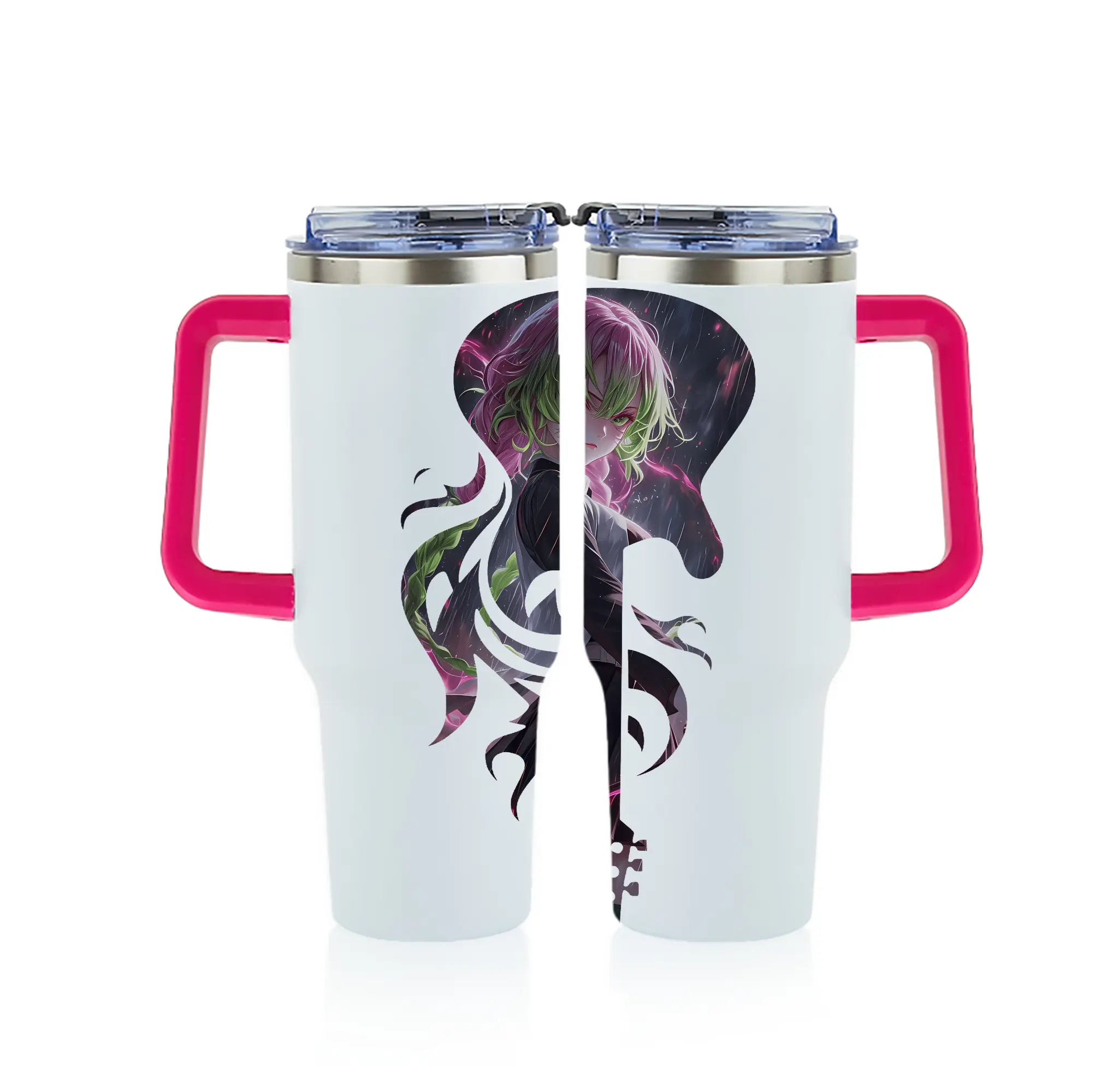 鬼滅の刃 グッズ,甘露寺 蜜璃 - 1200mL フルプリント車用タンブラー ・ 304ステンレス 内側 ・ 201ステンレス 外側 ・ 保温 保冷 ・ 通勤 ドライブ アウトドア用