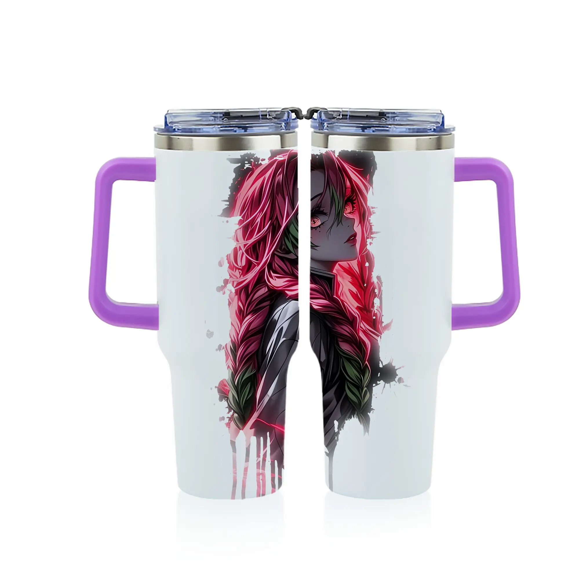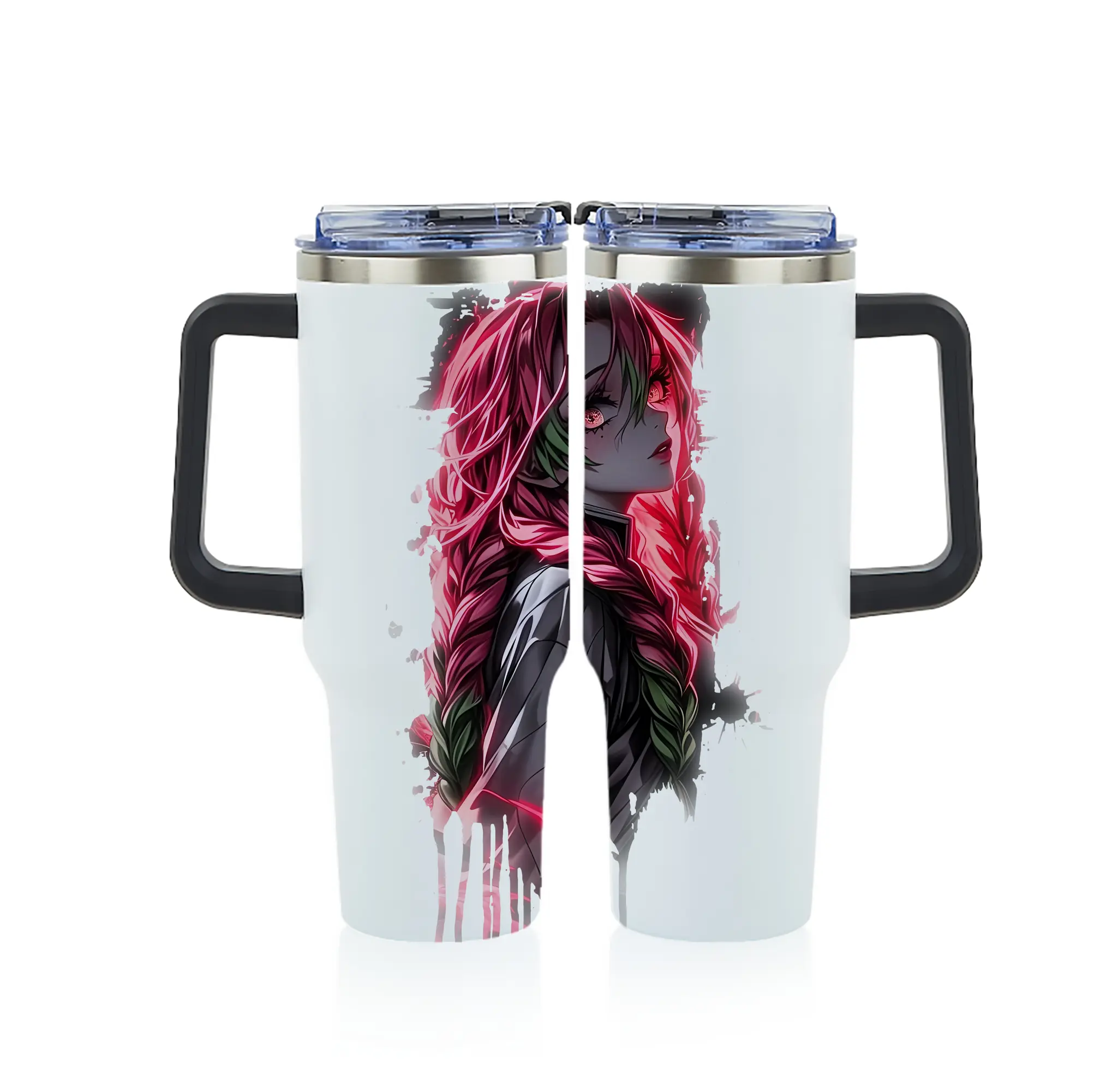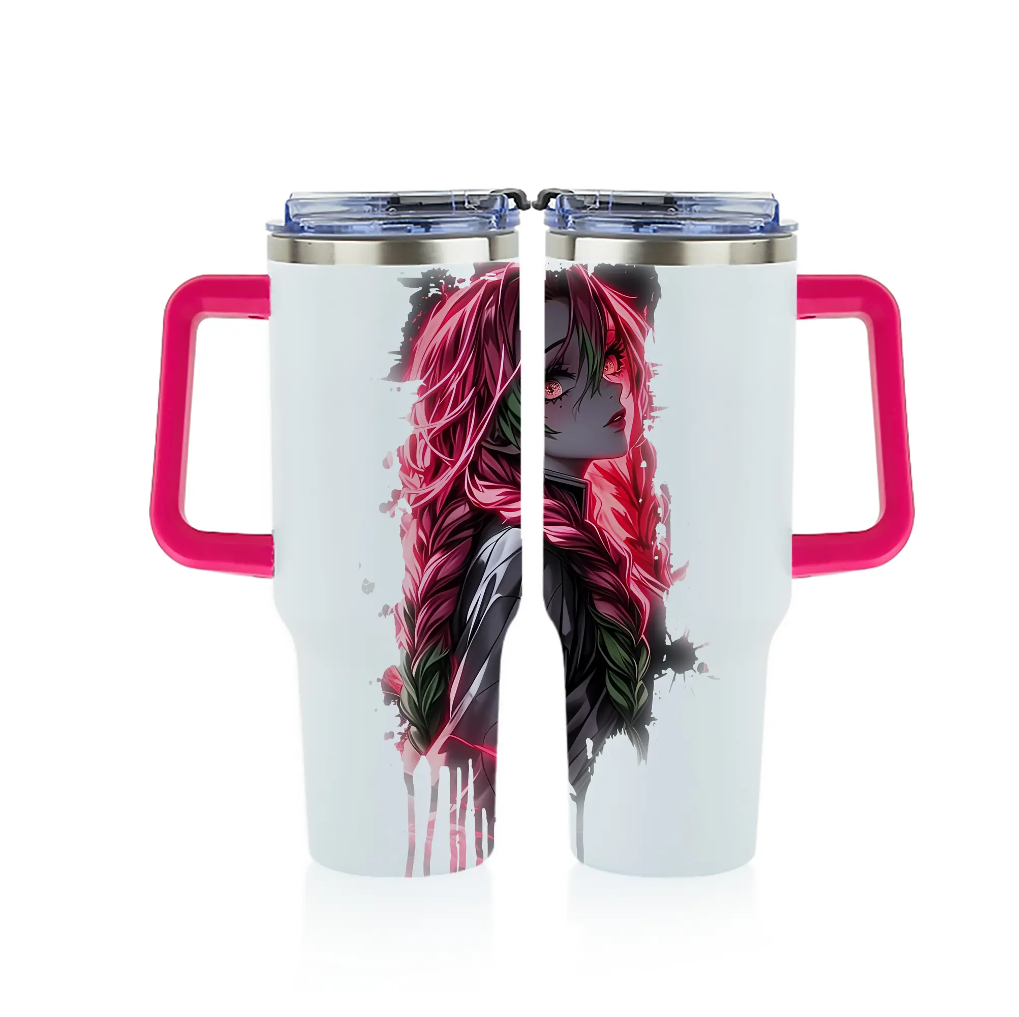 鬼滅の刃 グッズ,甘露寺 蜜璃 - 1200mL フルプリント車用タンブラー ・ 304ステンレス 内側 ・ 201ステンレス 外側 ・ 保温 保冷 ・ 通勤 ドライブ アウトドア用