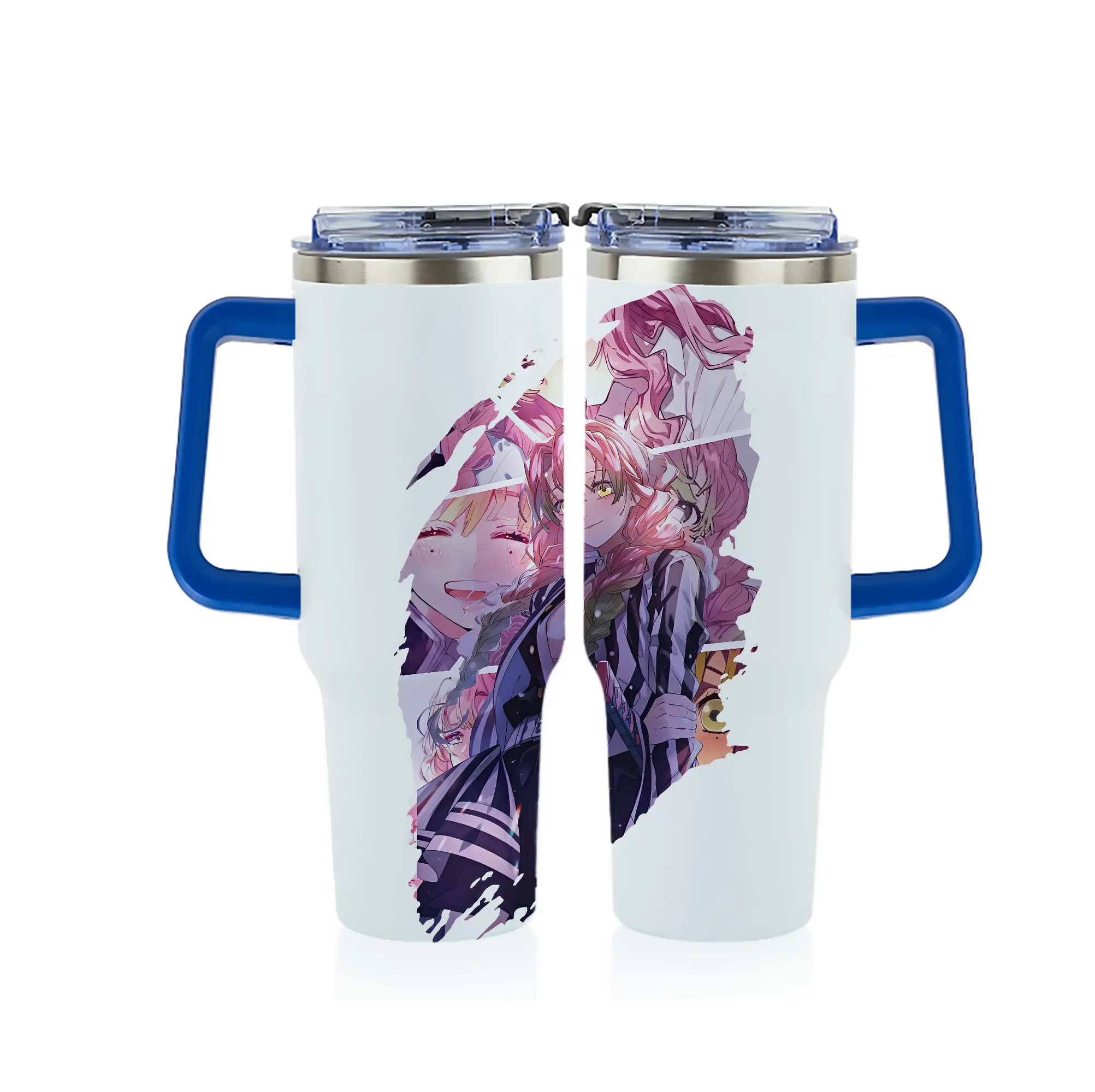 鬼滅の刃 グッズ,甘露寺 蜜璃 - 1200mL フルプリント車用タンブラー ・ 304ステンレス 内側 ・ 201ステンレス 外側 ・ 保温 保冷 ・ 通勤 ドライブ アウトドア用