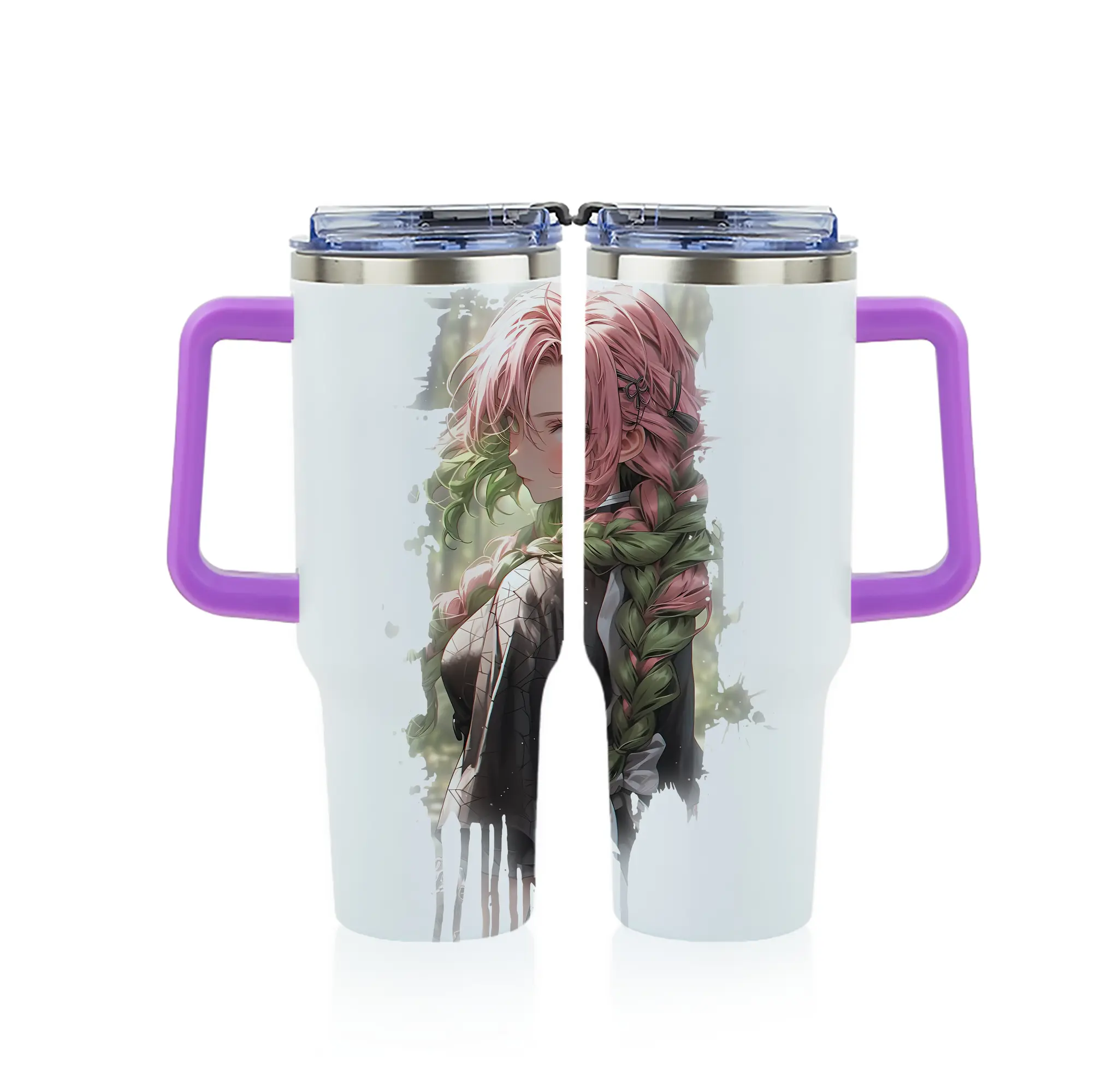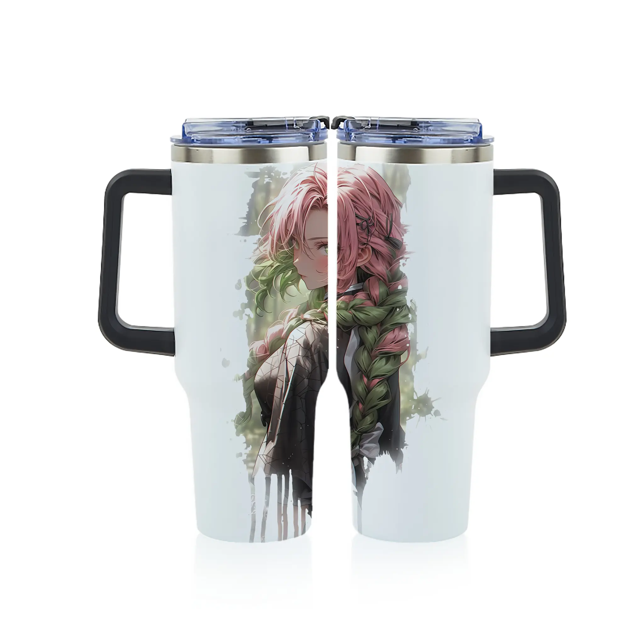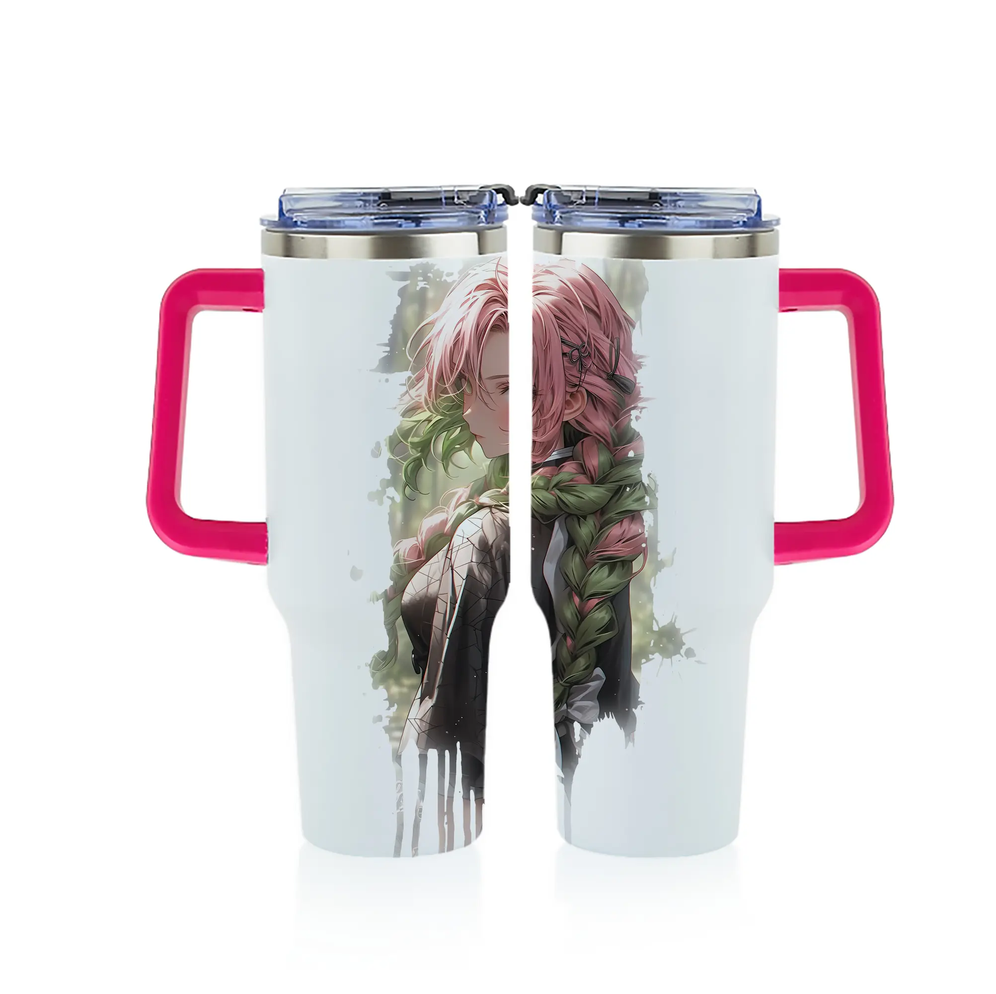 鬼滅の刃 グッズ,甘露寺 蜜璃 - 1200mL フルプリント車用タンブラー ・ 304ステンレス 内側 ・ 201ステンレス 外側 ・ 保温 保冷 ・ 通勤 ドライブ アウトドア用