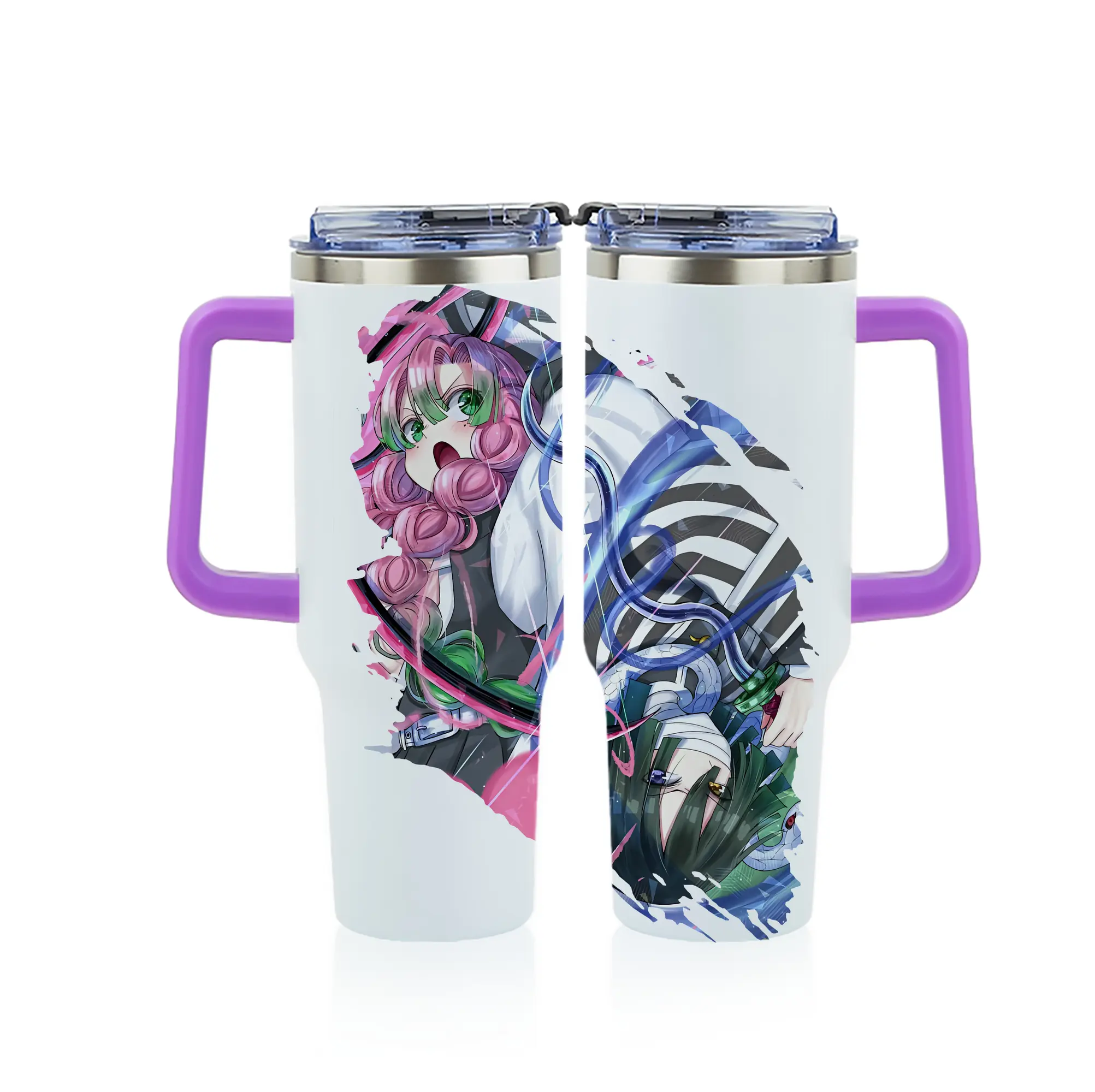 鬼滅の刃 グッズ,甘露寺 蜜璃 - 1200mL フルプリント車用タンブラー ・ 304ステンレス 内側 ・ 201ステンレス 外側 ・ 保温 保冷 ・ 通勤 ドライブ アウトドア用