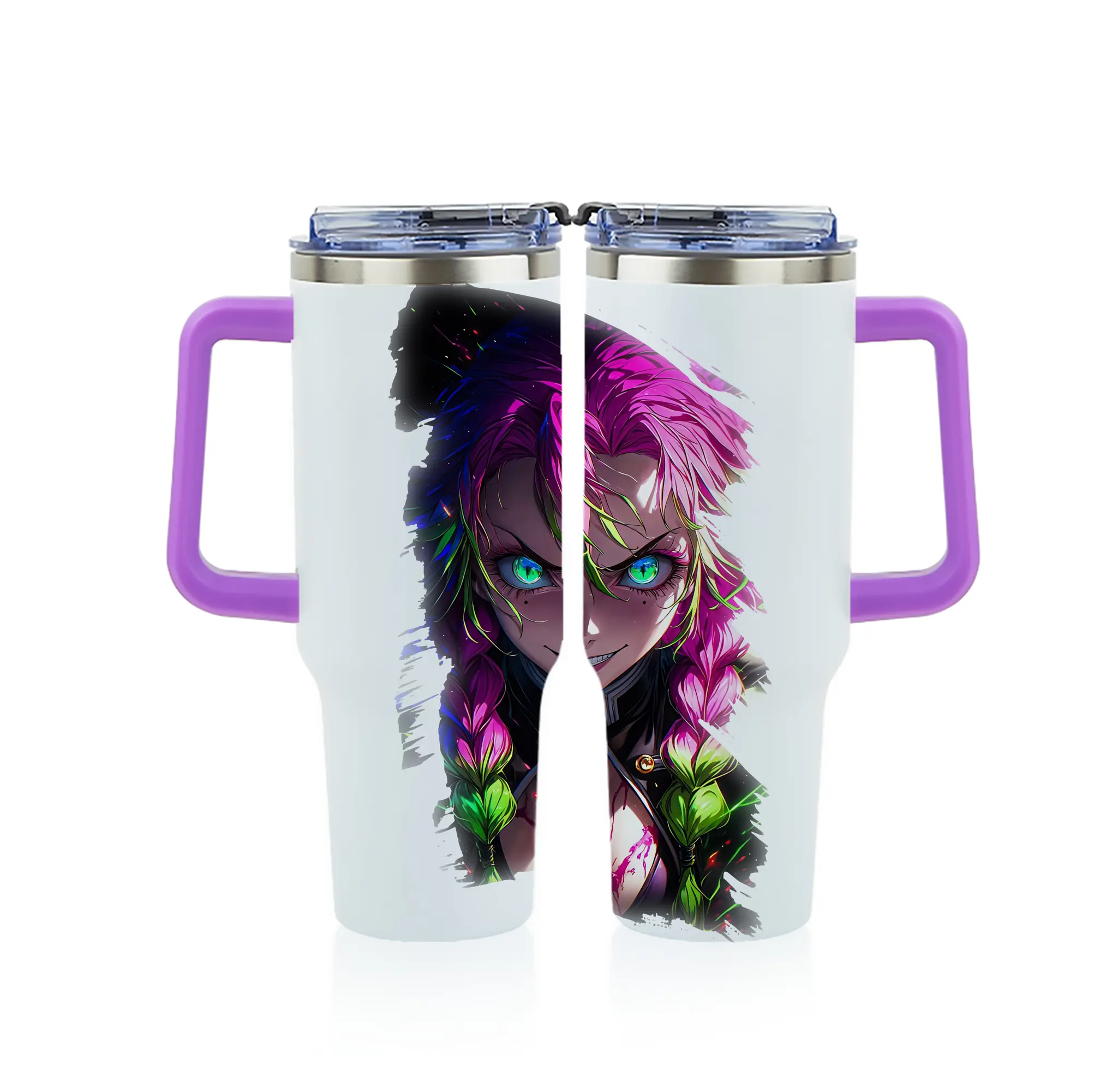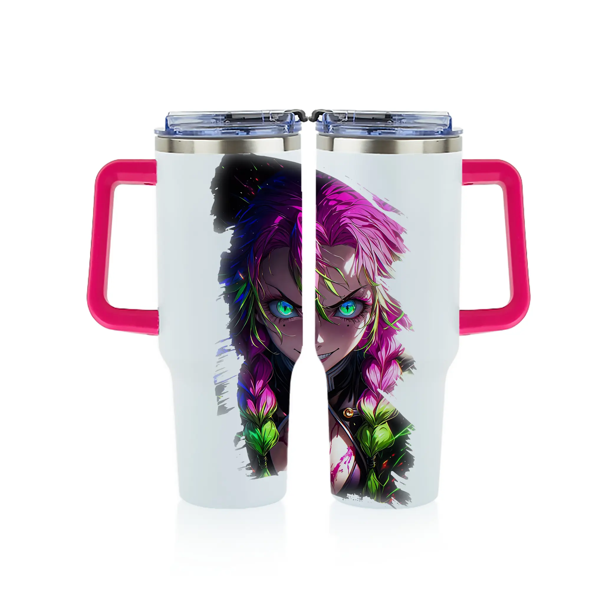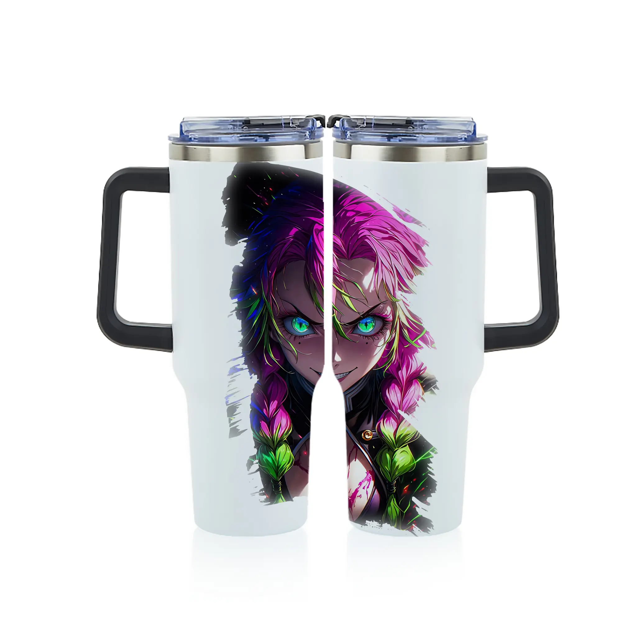 鬼滅の刃 グッズ,甘露寺 蜜璃 - 1200mL フルプリント車用タンブラー ・ 304ステンレス 内側 ・ 201ステンレス 外側 ・ 保温 保冷 ・ 通勤 ドライブ アウトドア用