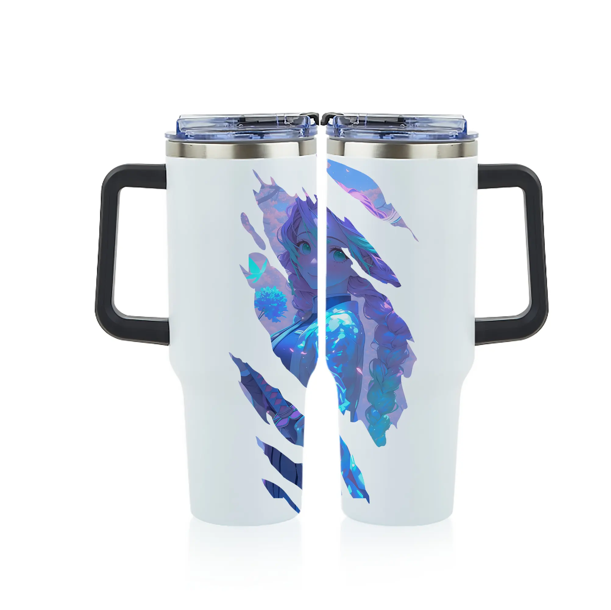 この40オンスカータンブラーは、洗練されたフルラップUVプリントで鮮やかな色彩と優れた耐久性を実現。304ステンレス製内側と201ステンレス製外側の組み合わせにより、長期間の使用に耐え、錆びにくく安全に飲料を楽しめます。