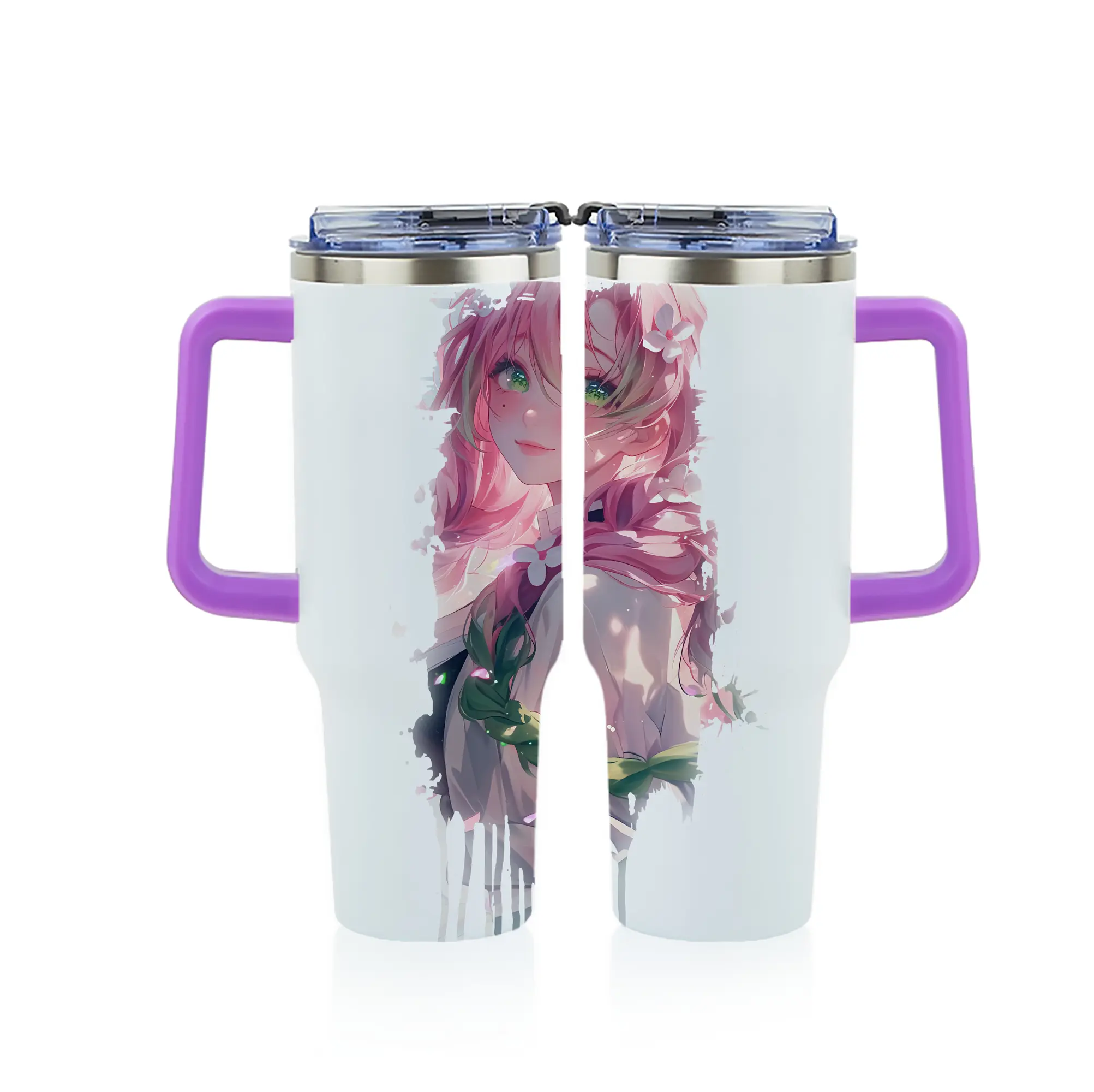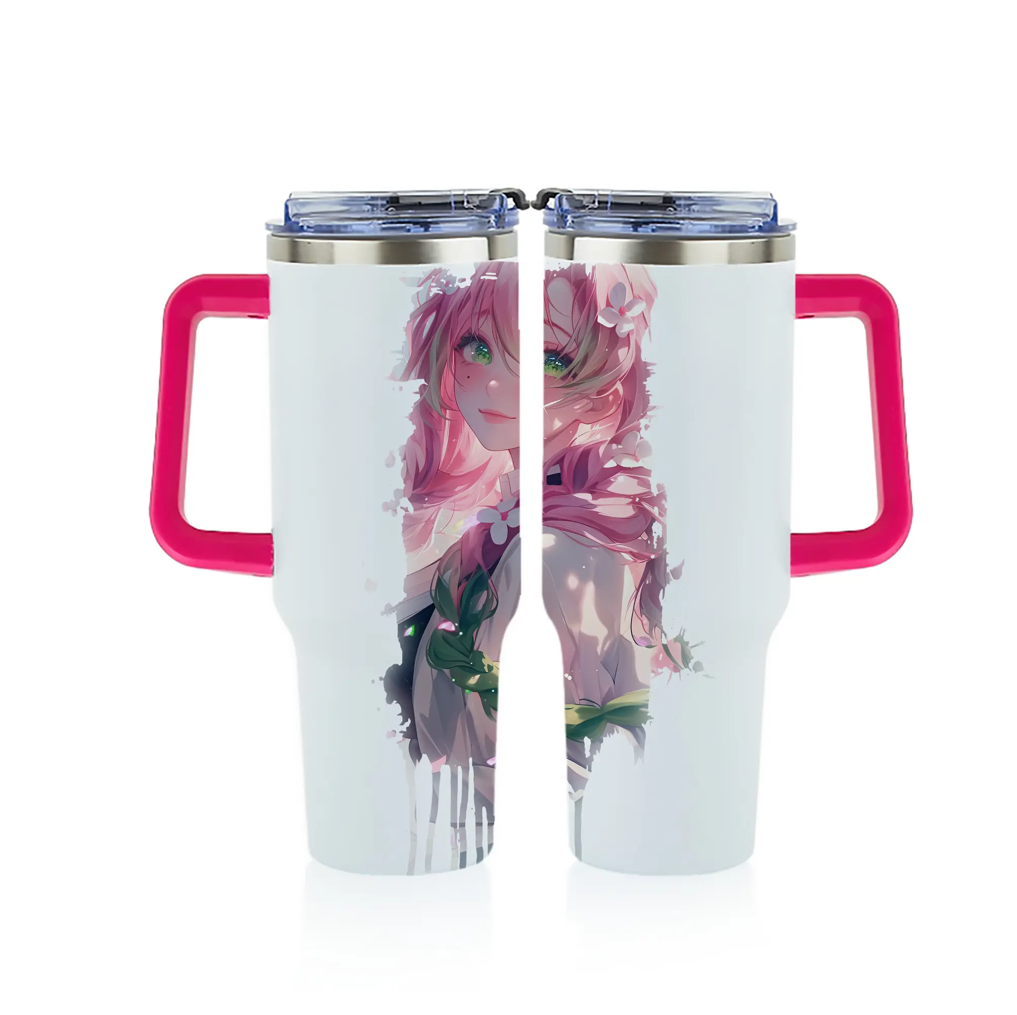 鬼滅の刃 グッズ,甘露寺 蜜璃 - 1200mL フルプリント車用タンブラー ・ 304ステンレス 内側 ・ 201ステンレス 外側 ・ 保温 保冷 ・ 通勤 ドライブ アウトドア用