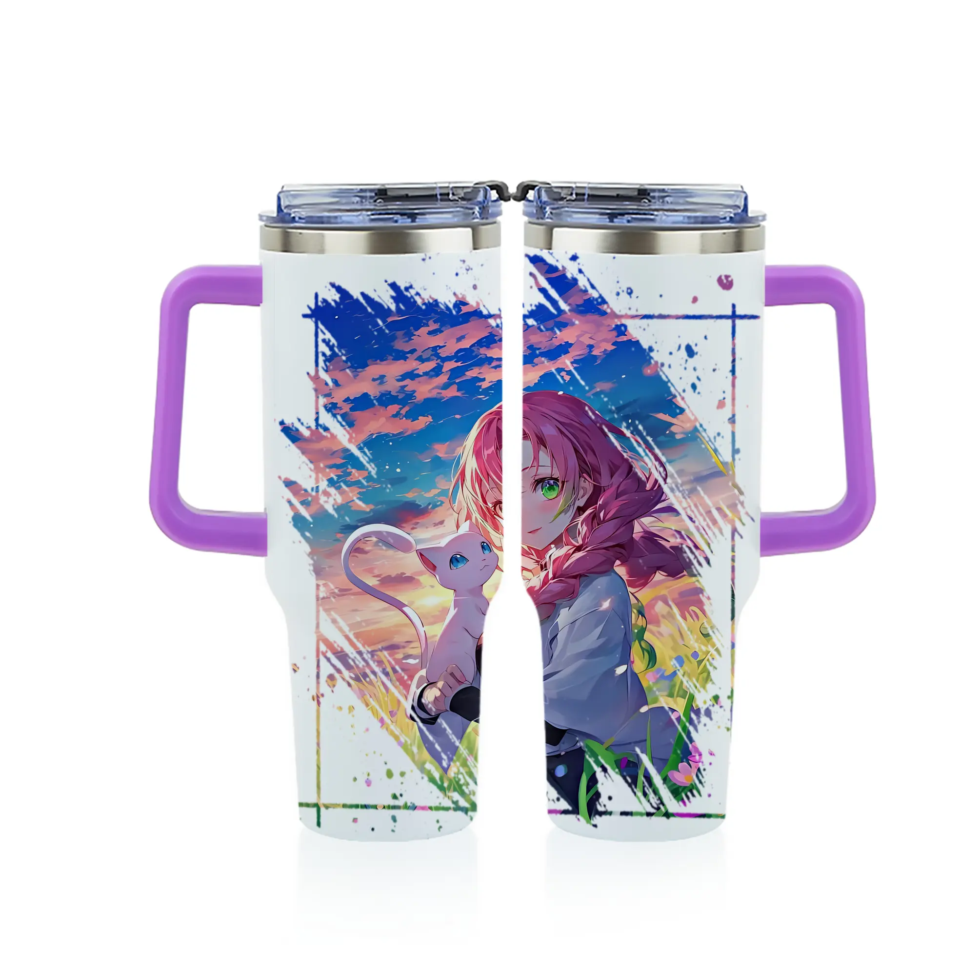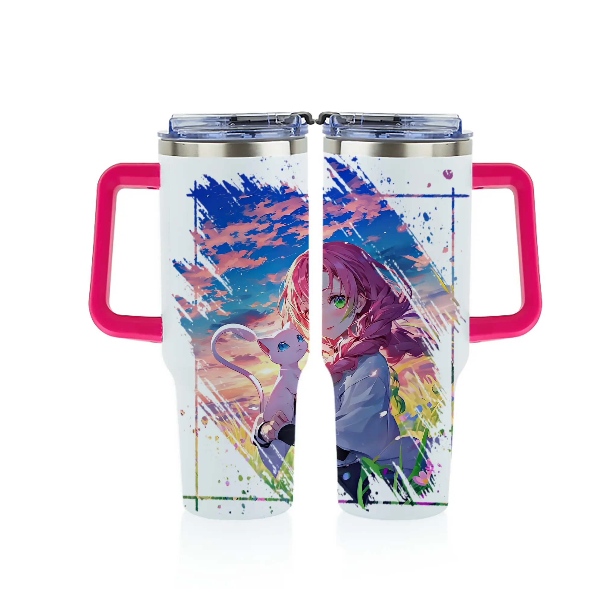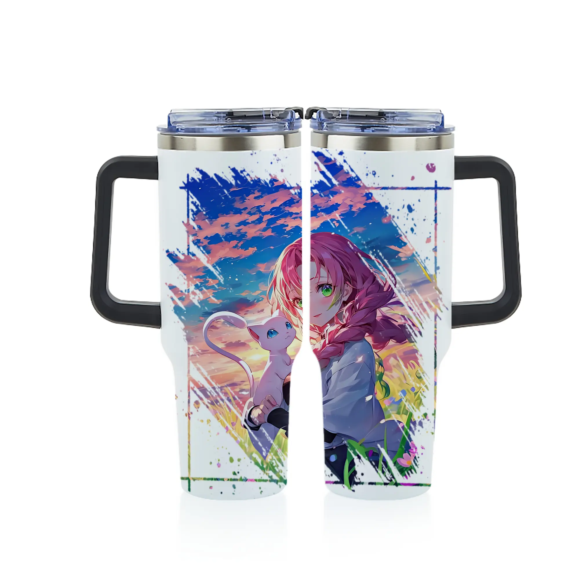 鬼滅の刃 グッズ,甘露寺 蜜璃 - 1200mL フルプリント車用タンブラー ・ 304ステンレス 内側 ・ 201ステンレス 外側 ・ 保温 保冷 ・ 通勤 ドライブ アウトドア用
