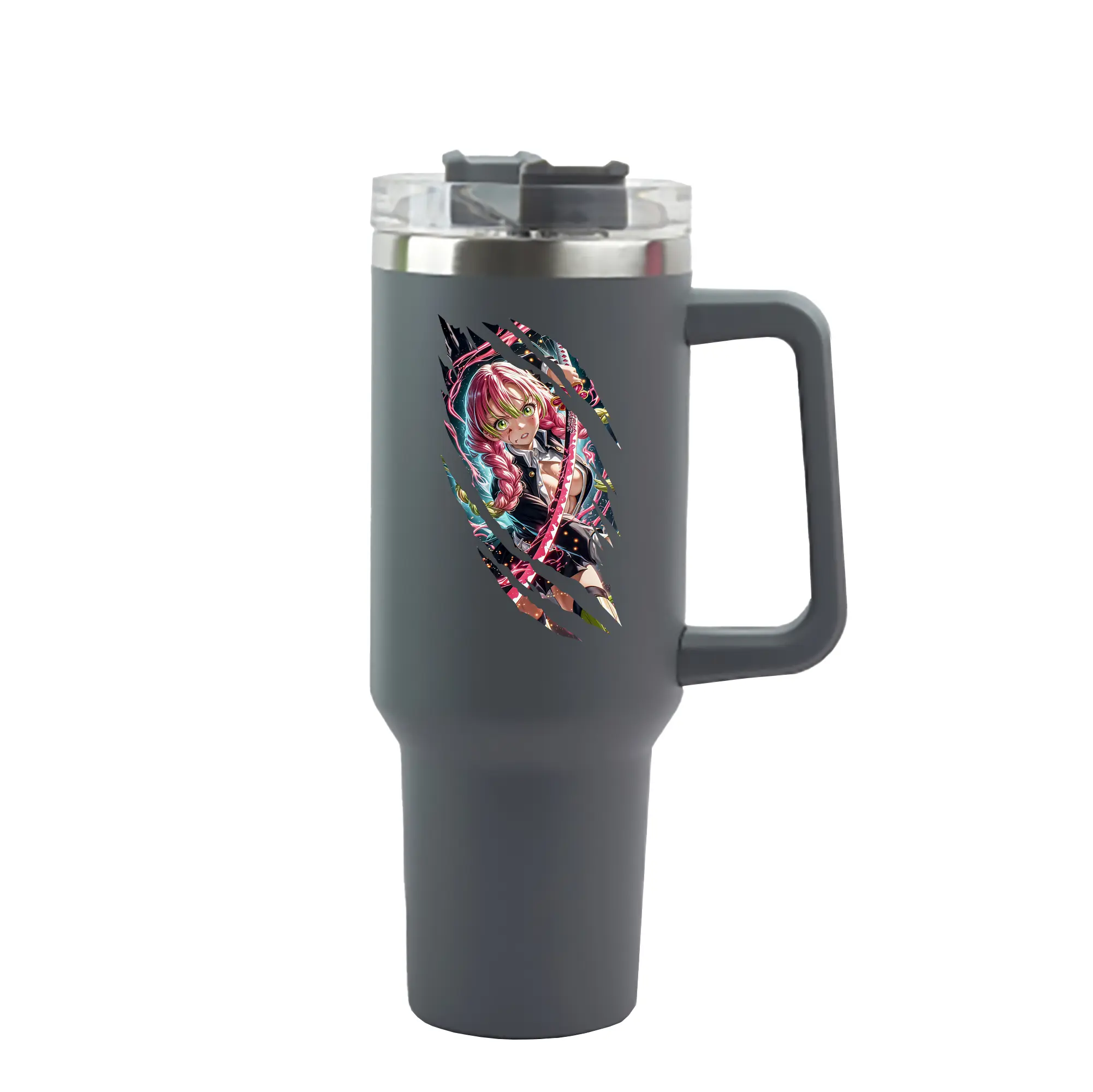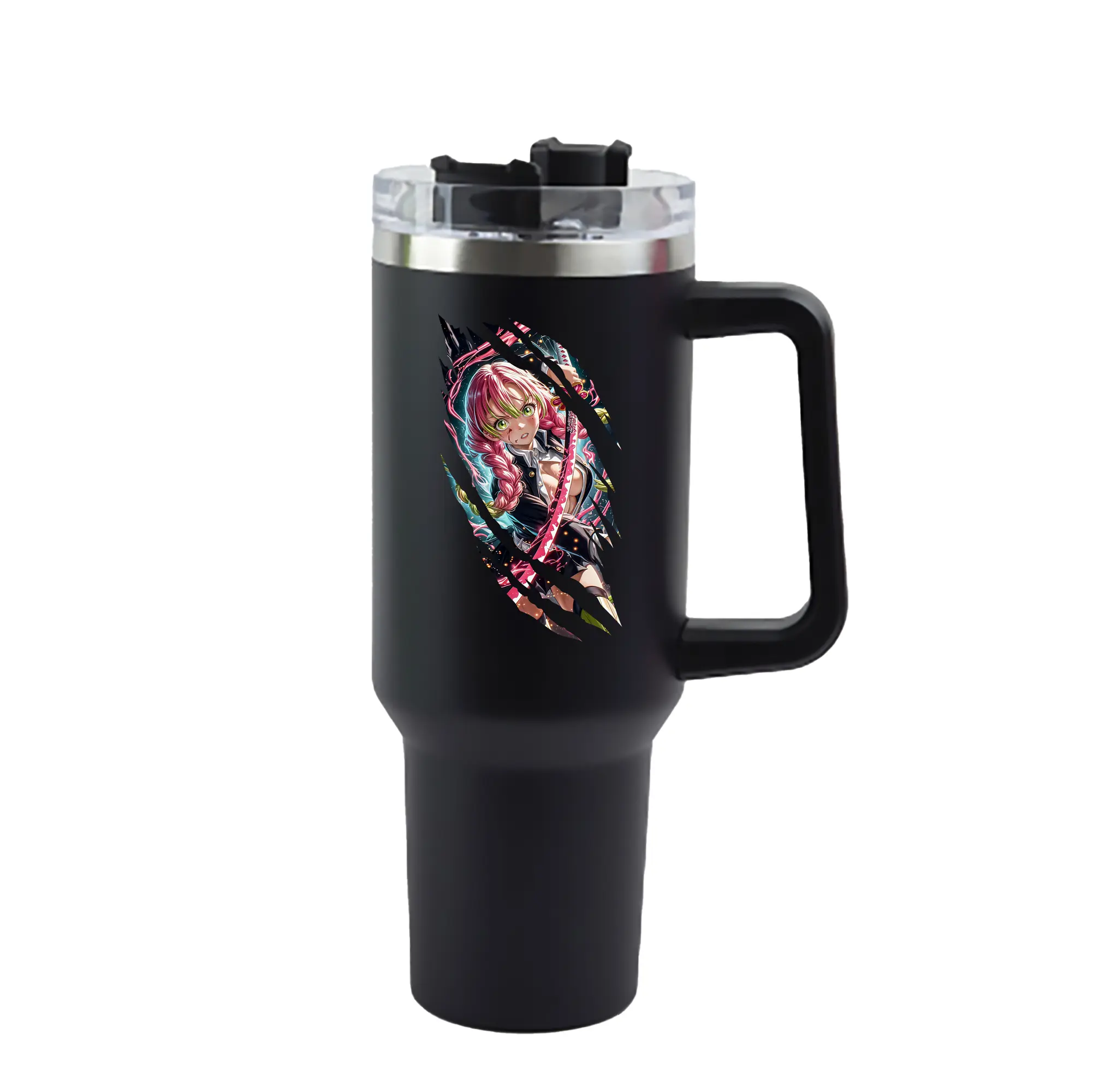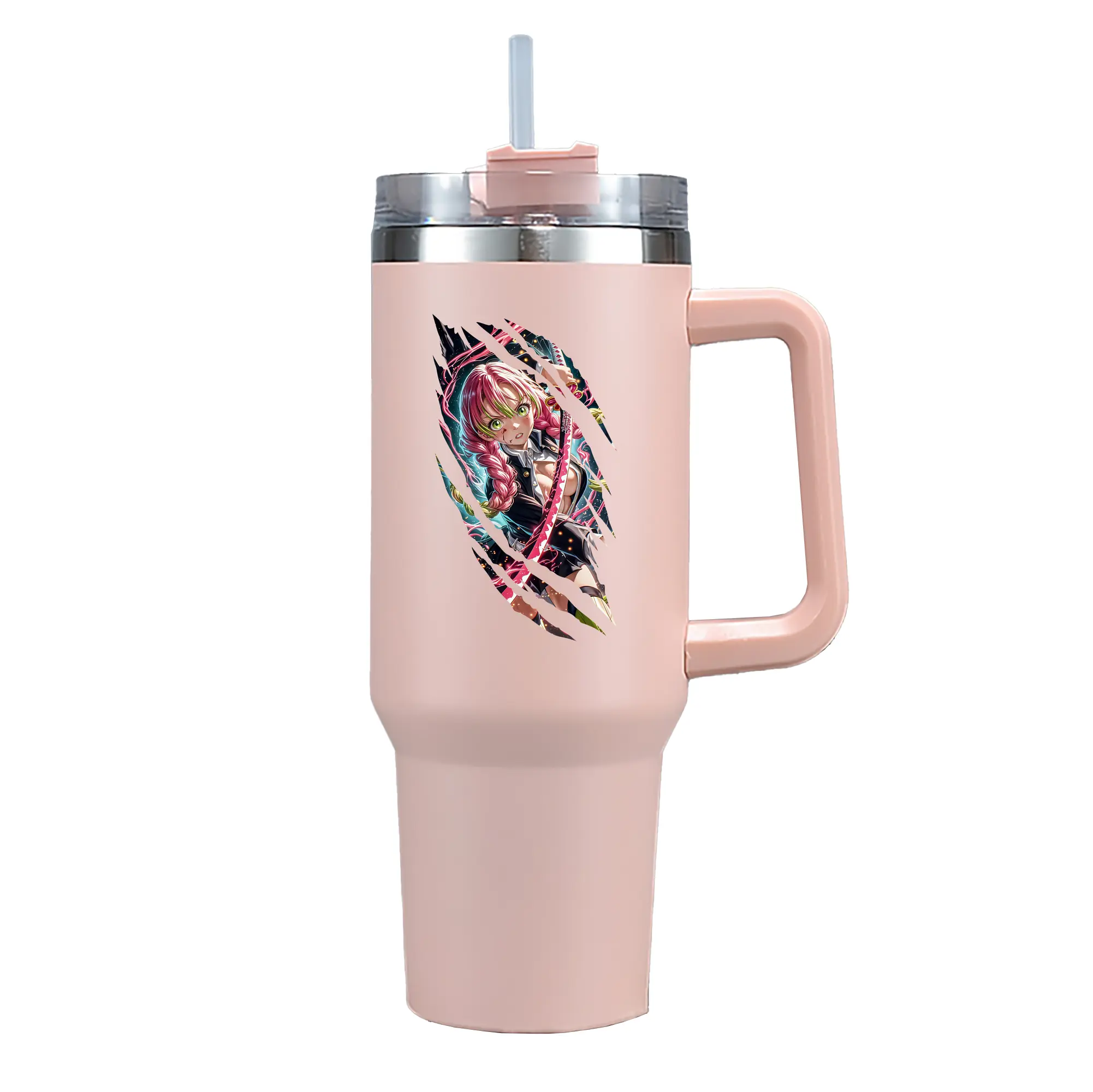 鬼滅の刃 グッズ,甘露寺 蜜璃 - 1200mL 車用タンブラー ・ クリスタルステッカー ・ 304ステンレス 内側 ・ 201ステンレス 外側 ・ 保温 保冷 ・ ハンドル&ストロー付き ・ 通勤 ドライブ アウトドア用