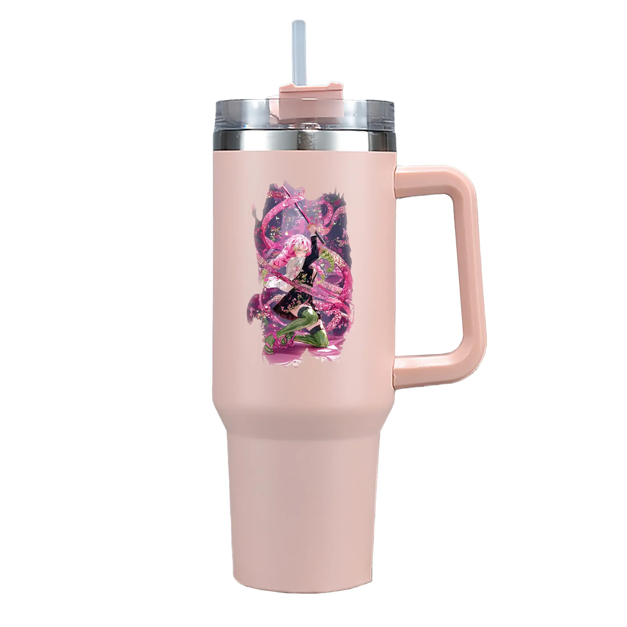 鬼滅の刃 グッズ,甘露寺 蜜璃 - 1200mL 車用タンブラー ・ クリスタルステッカー ・ 304ステンレス 内側 ・ 201ステンレス 外側 ・ 保温 保冷 ・ ハンドル&ストロー付き ・ 通勤 ドライブ アウトドア用