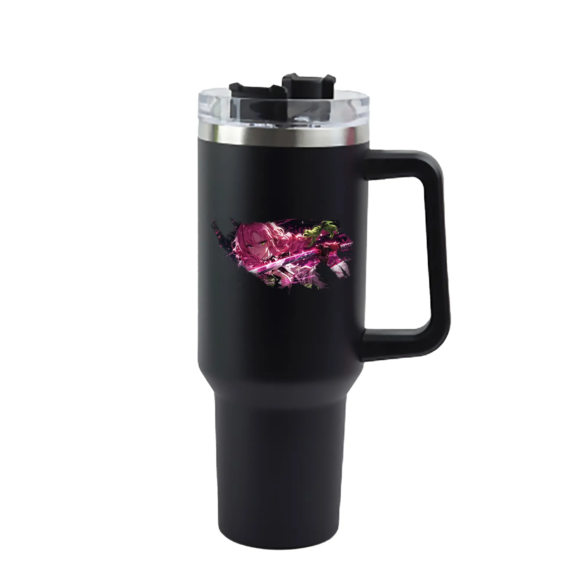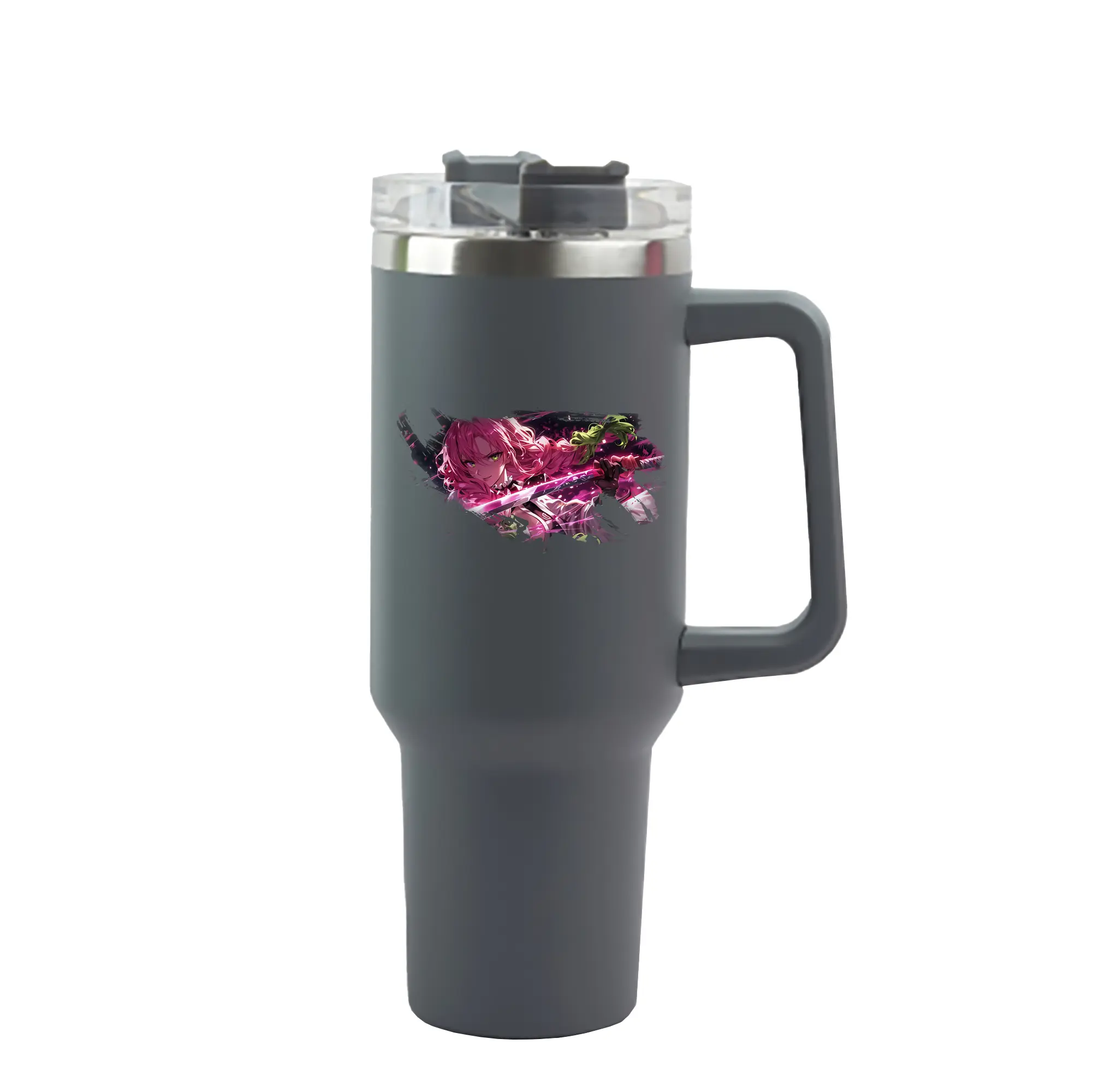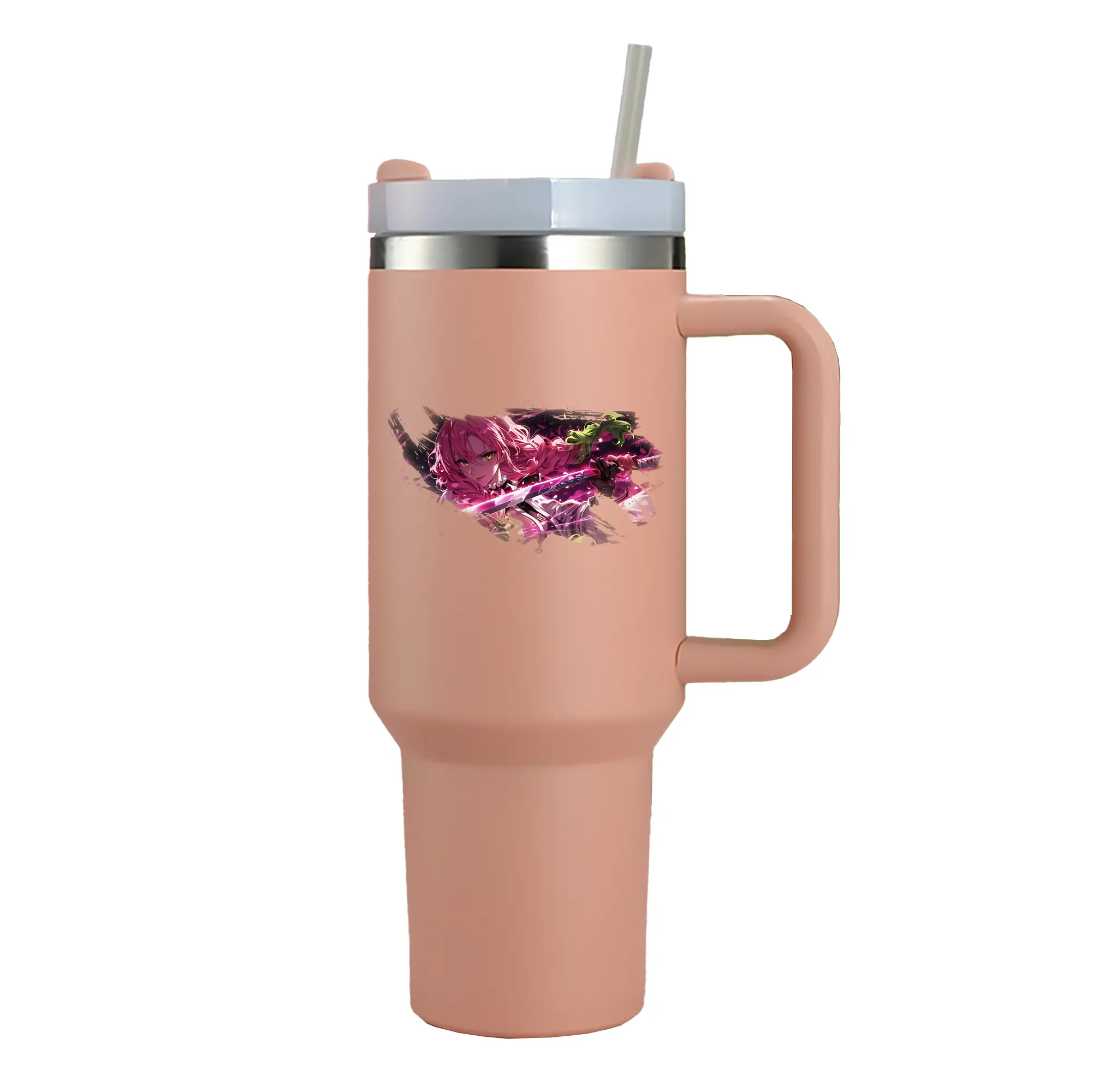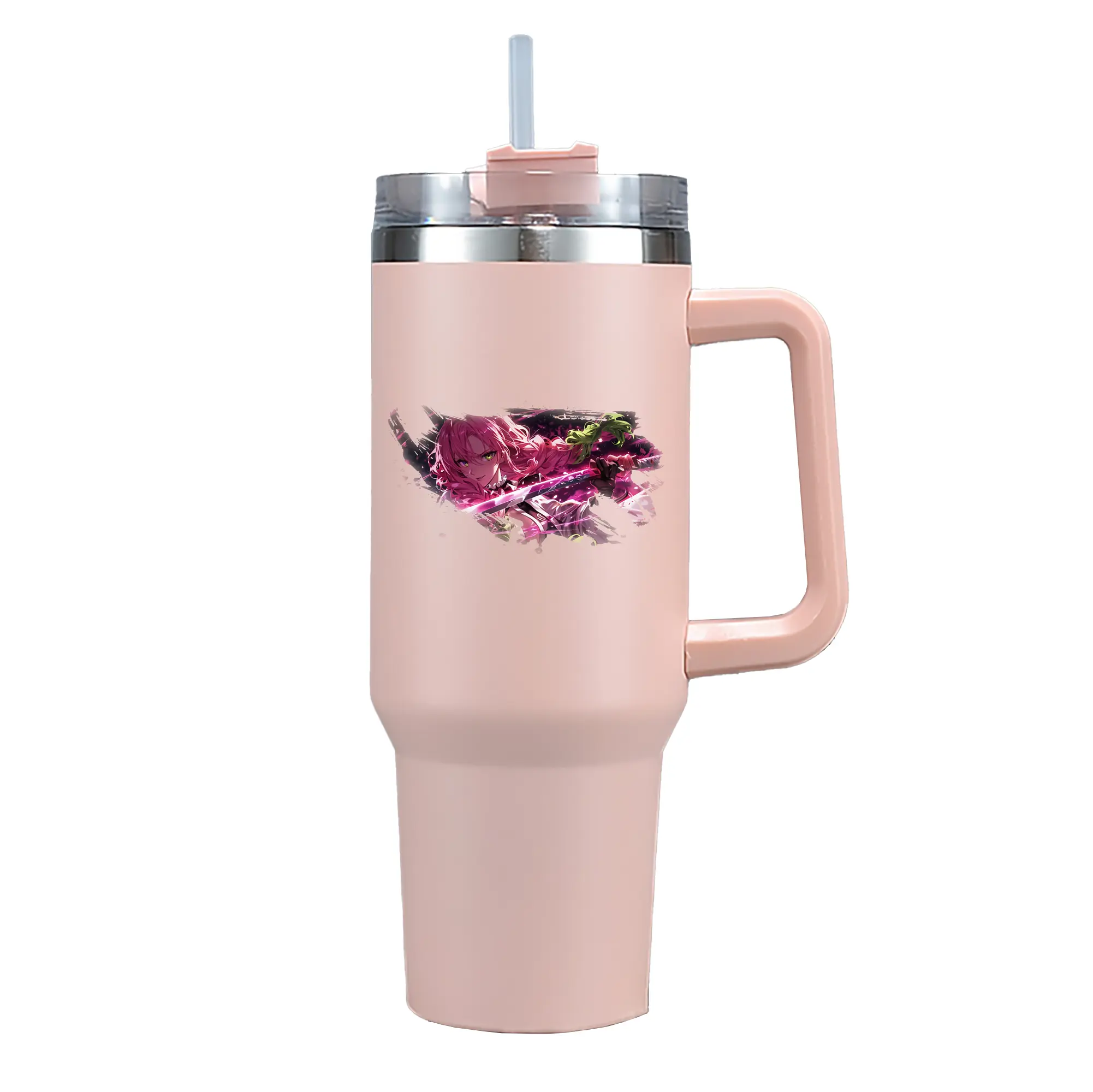 鬼滅の刃 グッズ,甘露寺 蜜璃 - 1200mL 車用タンブラー ・ クリスタルステッカー ・ 304ステンレス 内側 ・ 201ステンレス 外側 ・ 保温 保冷 ・ ハンドル&ストロー付き ・ 通勤 ドライブ アウトドア用