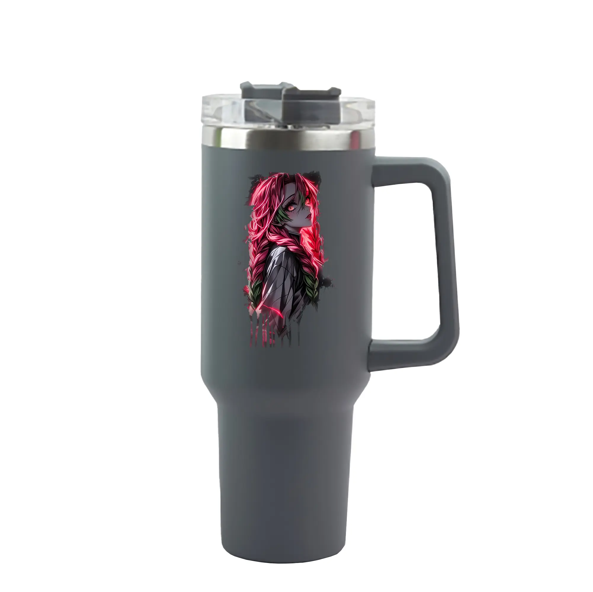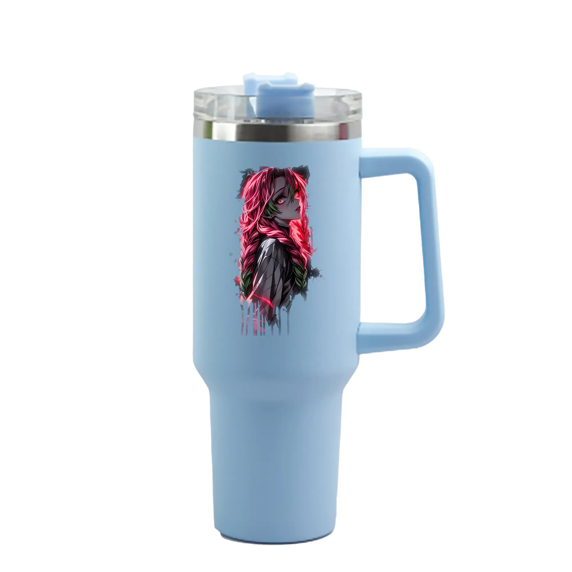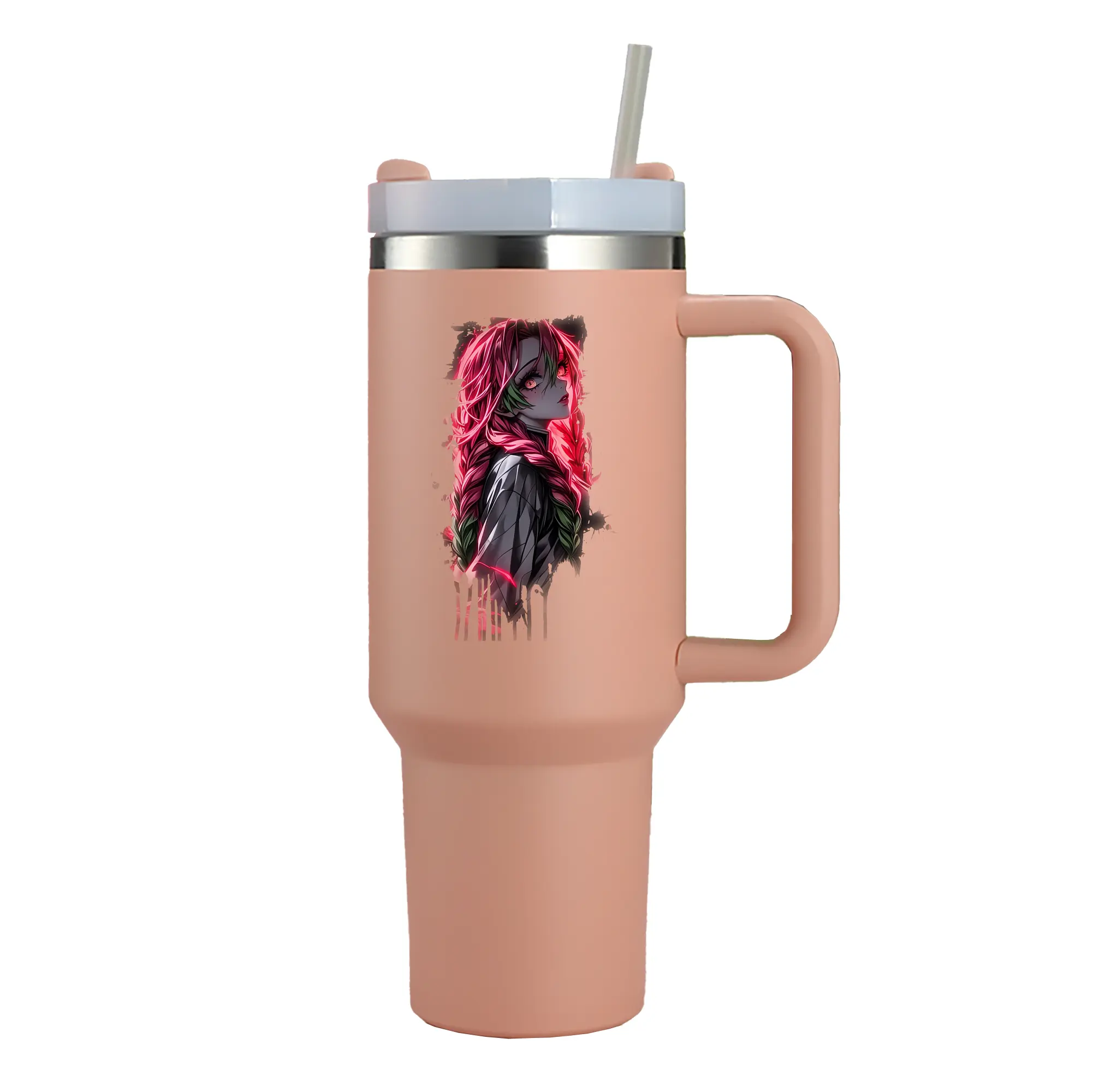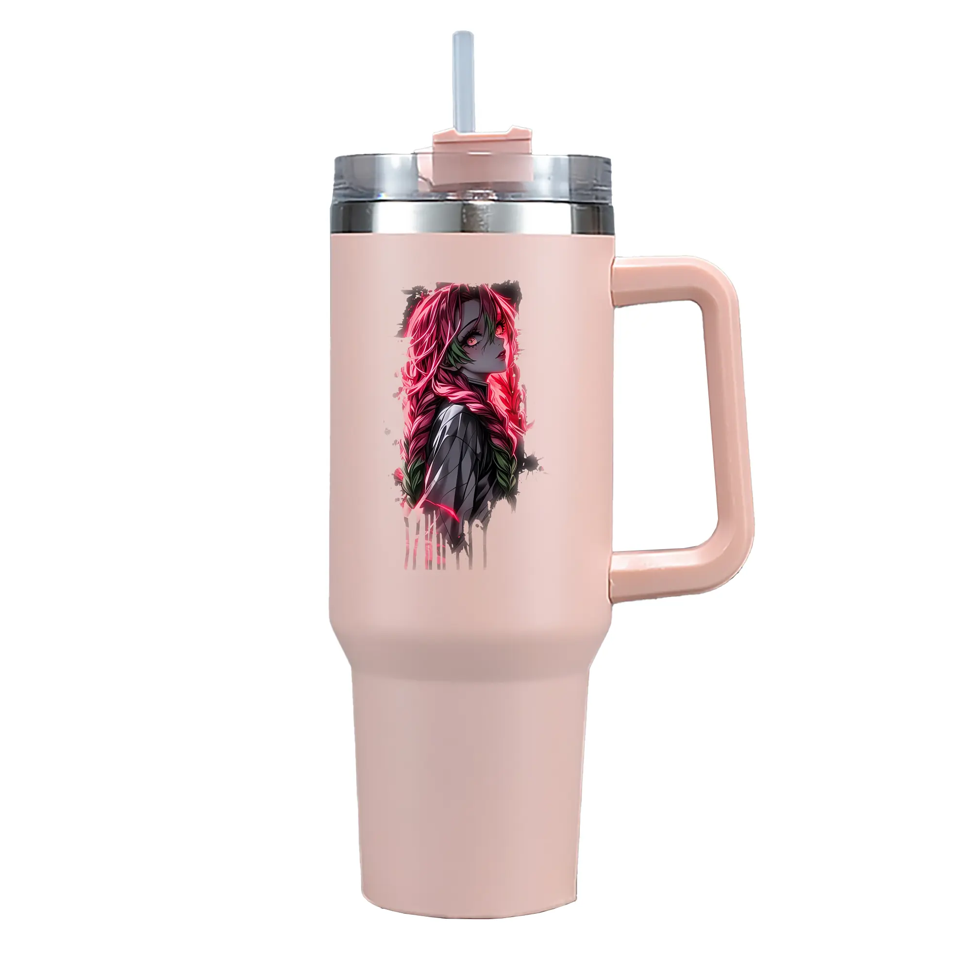 鬼滅の刃 グッズ,甘露寺 蜜璃 - 1200mL 車用タンブラー ・ クリスタルステッカー ・ 304ステンレス 内側 ・ 201ステンレス 外側 ・ 保温 保冷 ・ ハンドル&ストロー付き ・ 通勤 ドライブ アウトドア用