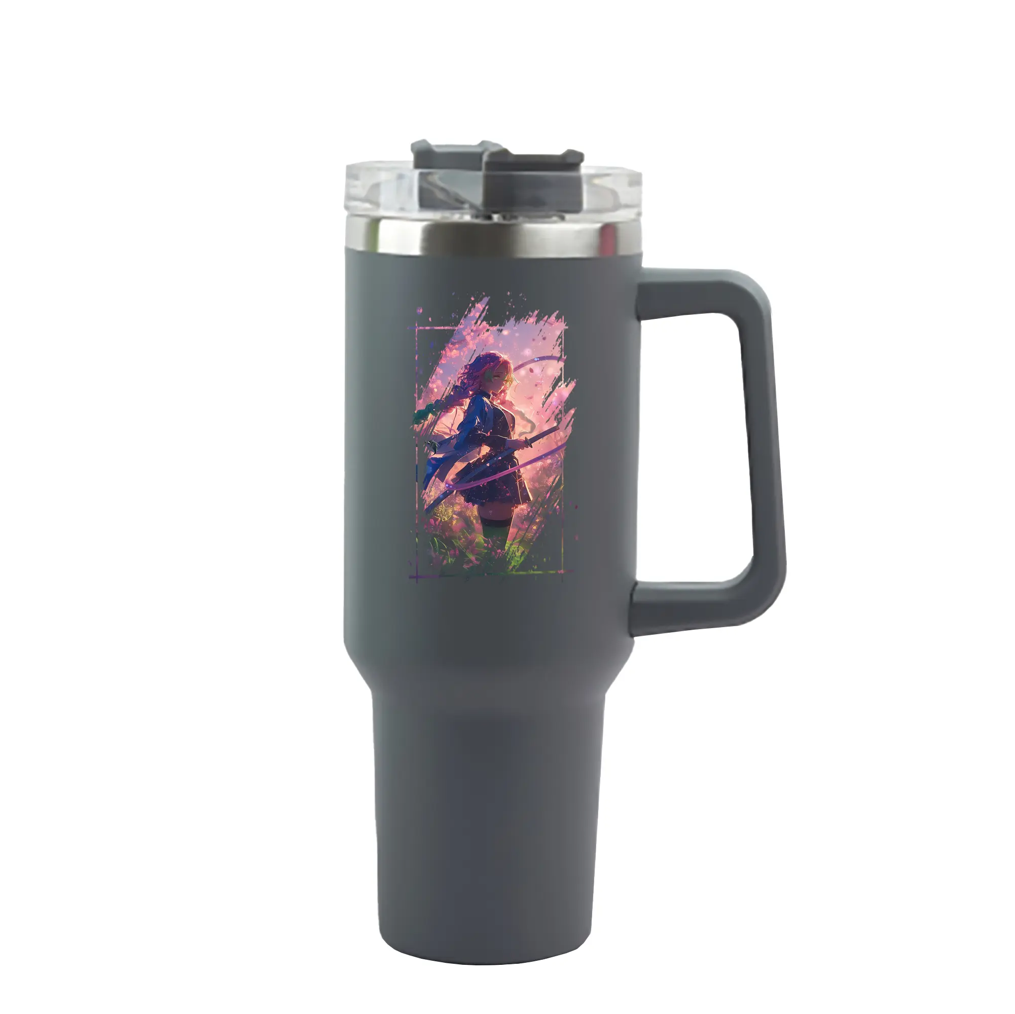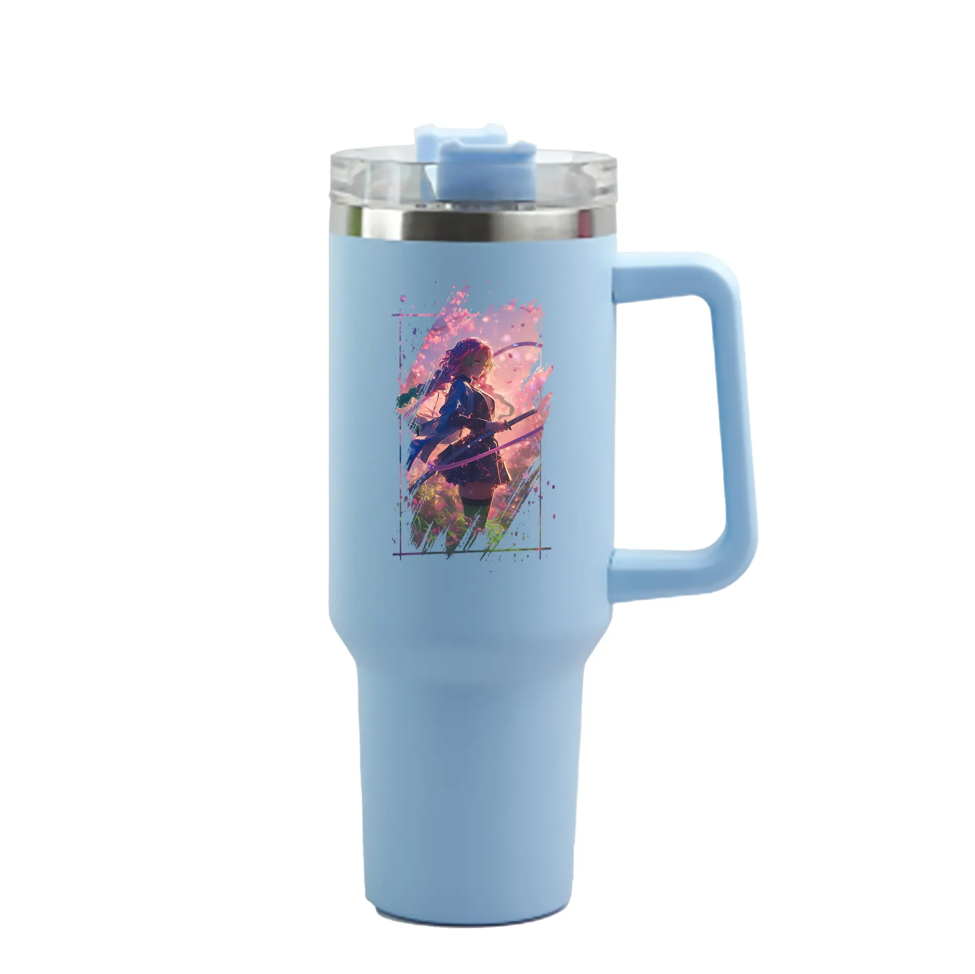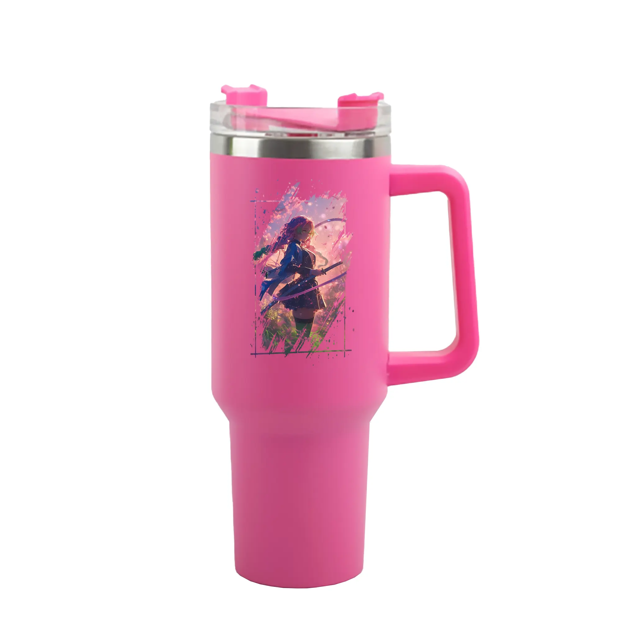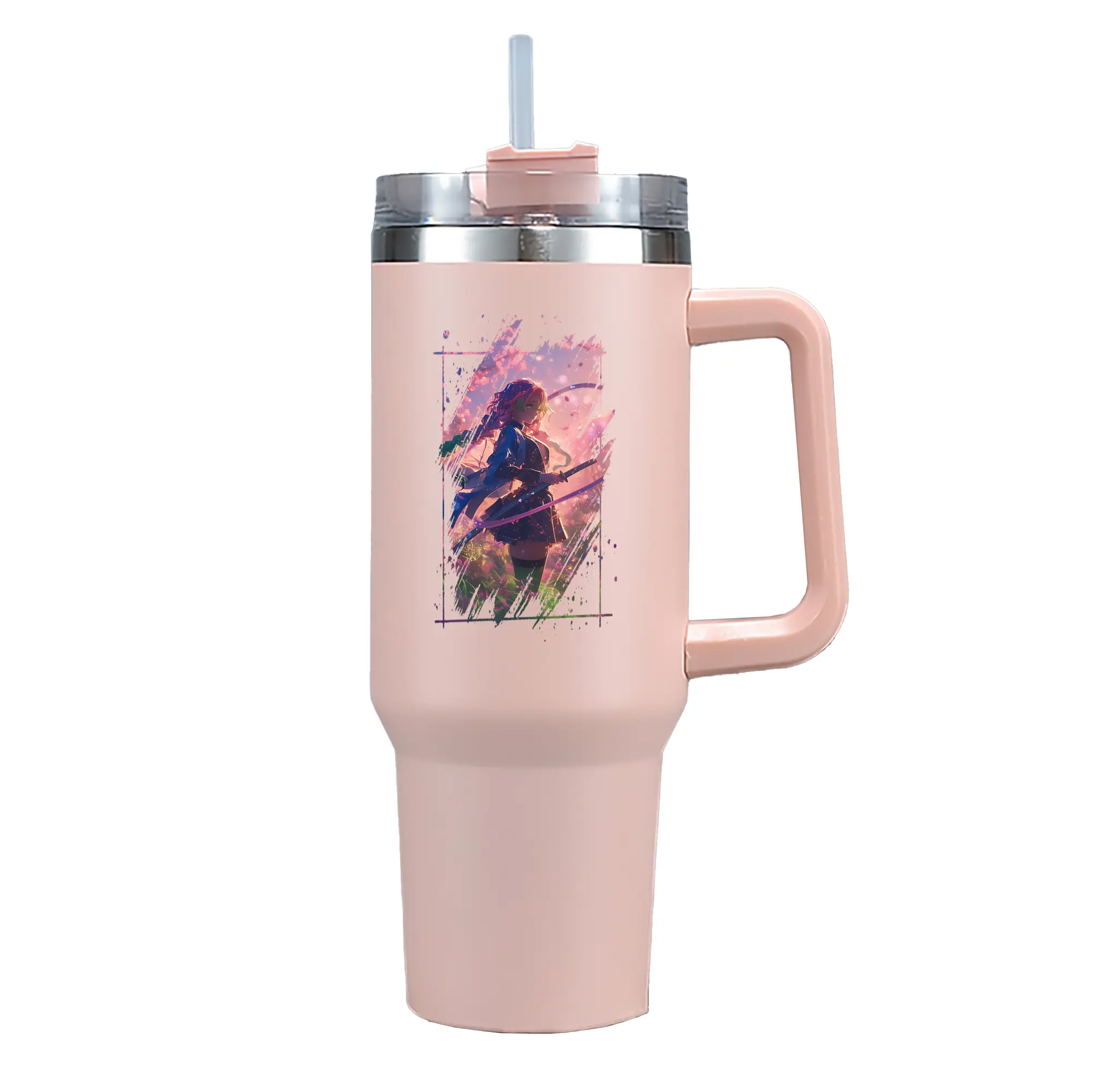 鬼滅の刃 グッズ,甘露寺 蜜璃 - 1200mL 車用タンブラー ・ クリスタルステッカー ・ 304ステンレス 内側 ・ 201ステンレス 外側 ・ 保温 保冷 ・ ハンドル&ストロー付き ・ 通勤 ドライブ アウトドア用