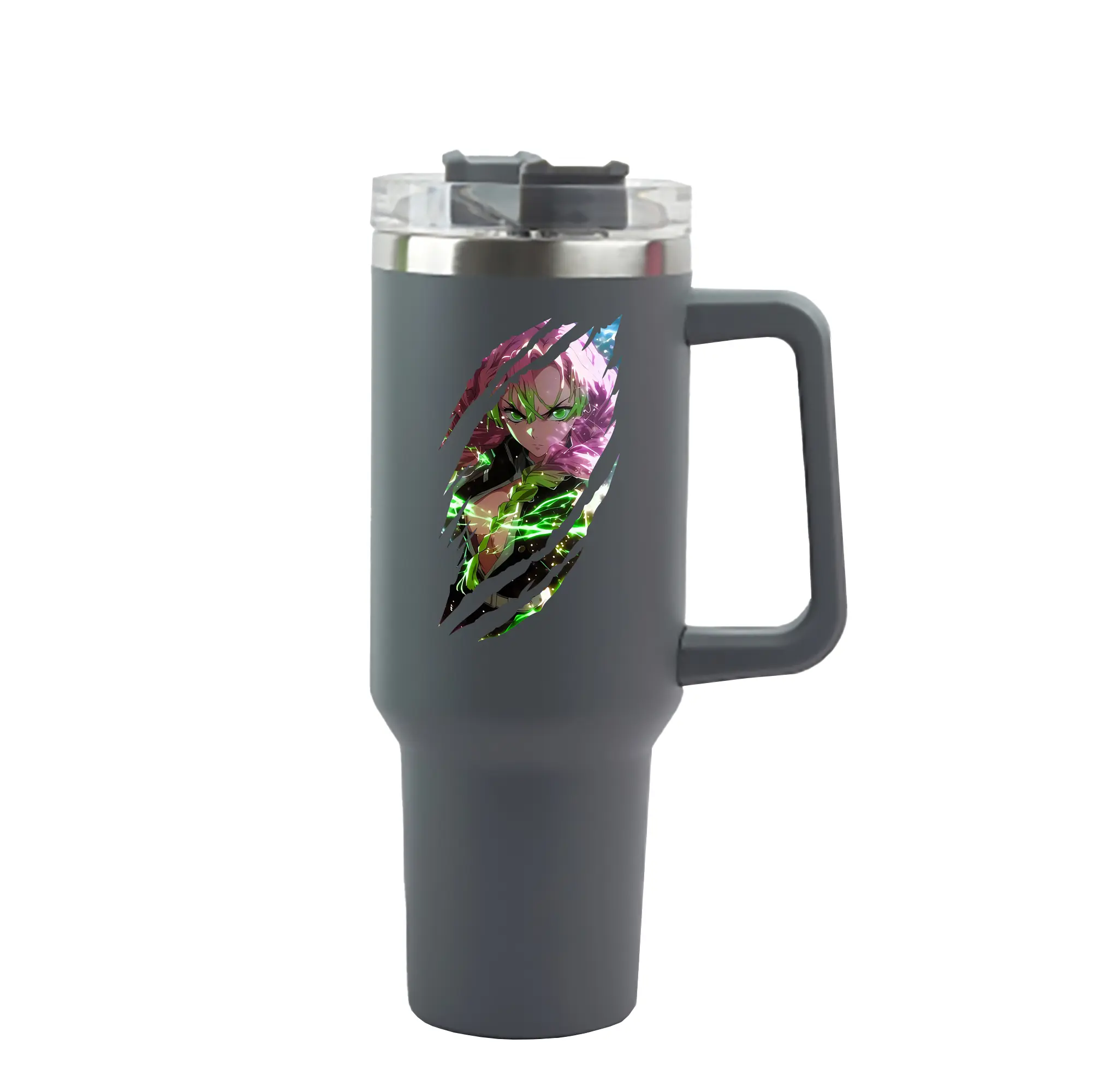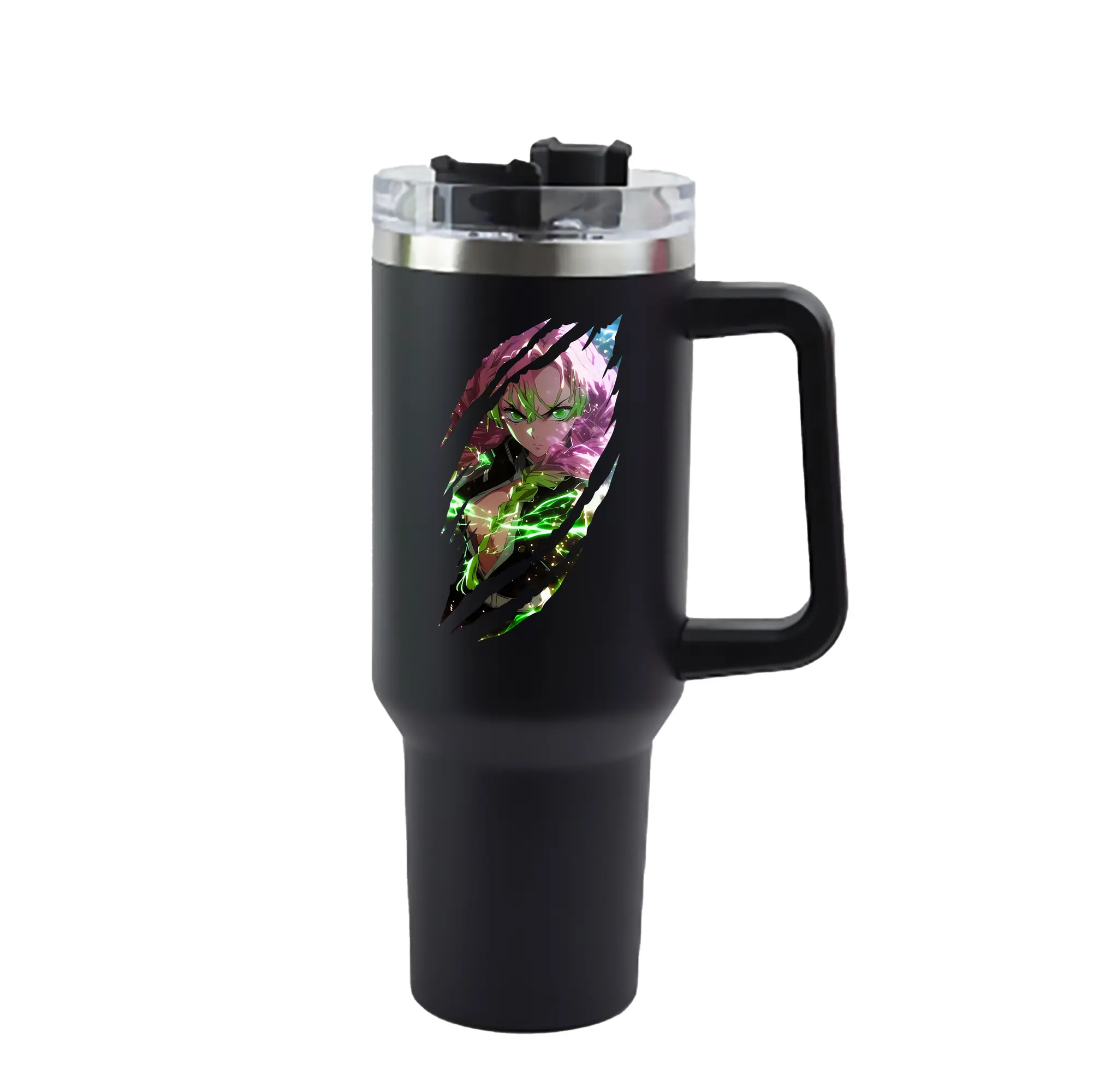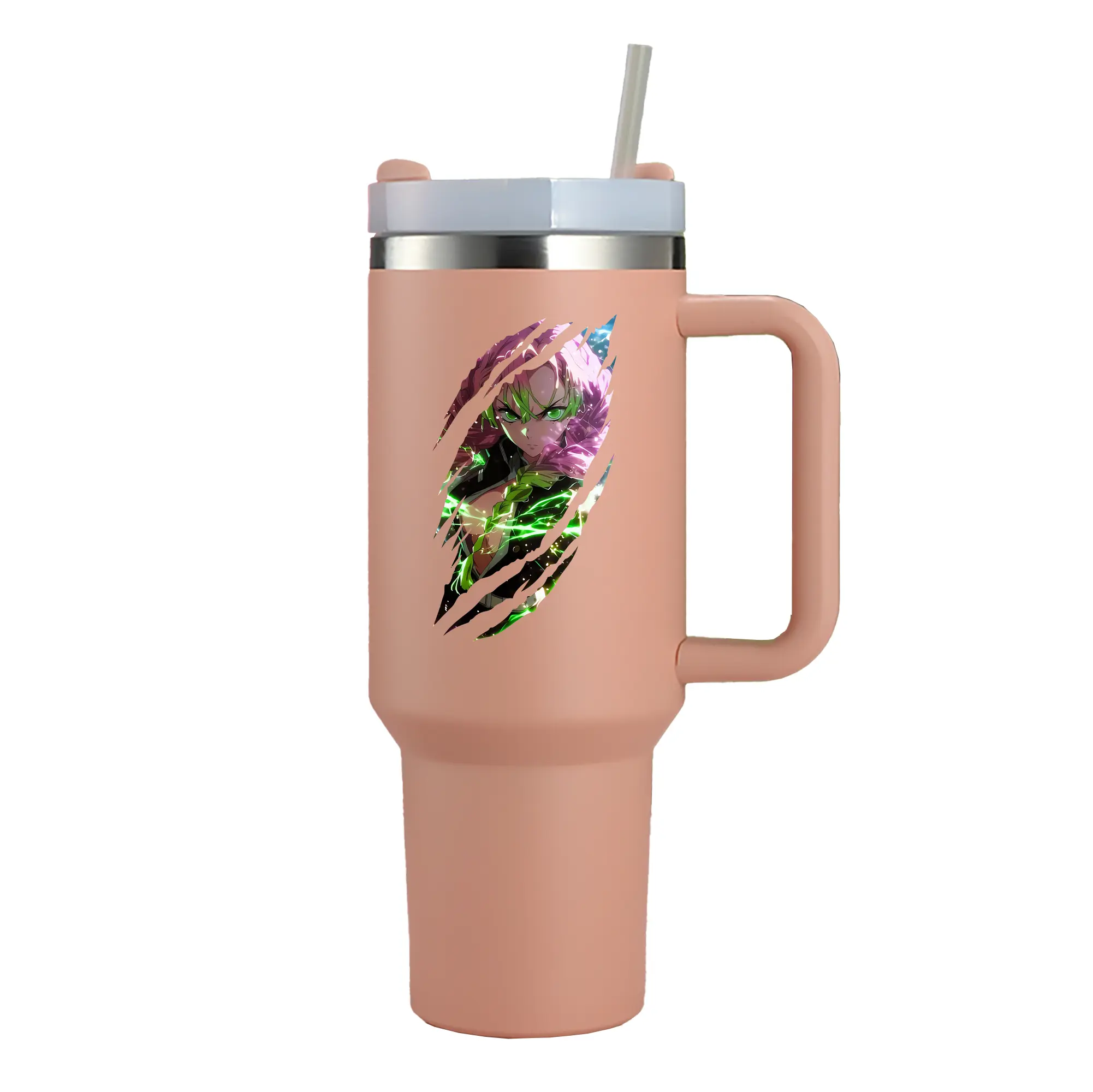 鬼滅の刃 グッズ,甘露寺 蜜璃 - 1200mL 車用タンブラー ・ クリスタルステッカー ・ 304ステンレス 内側 ・ 201ステンレス 外側 ・ 保温 保冷 ・ ハンドル&ストロー付き ・ 通勤 ドライブ アウトドア用