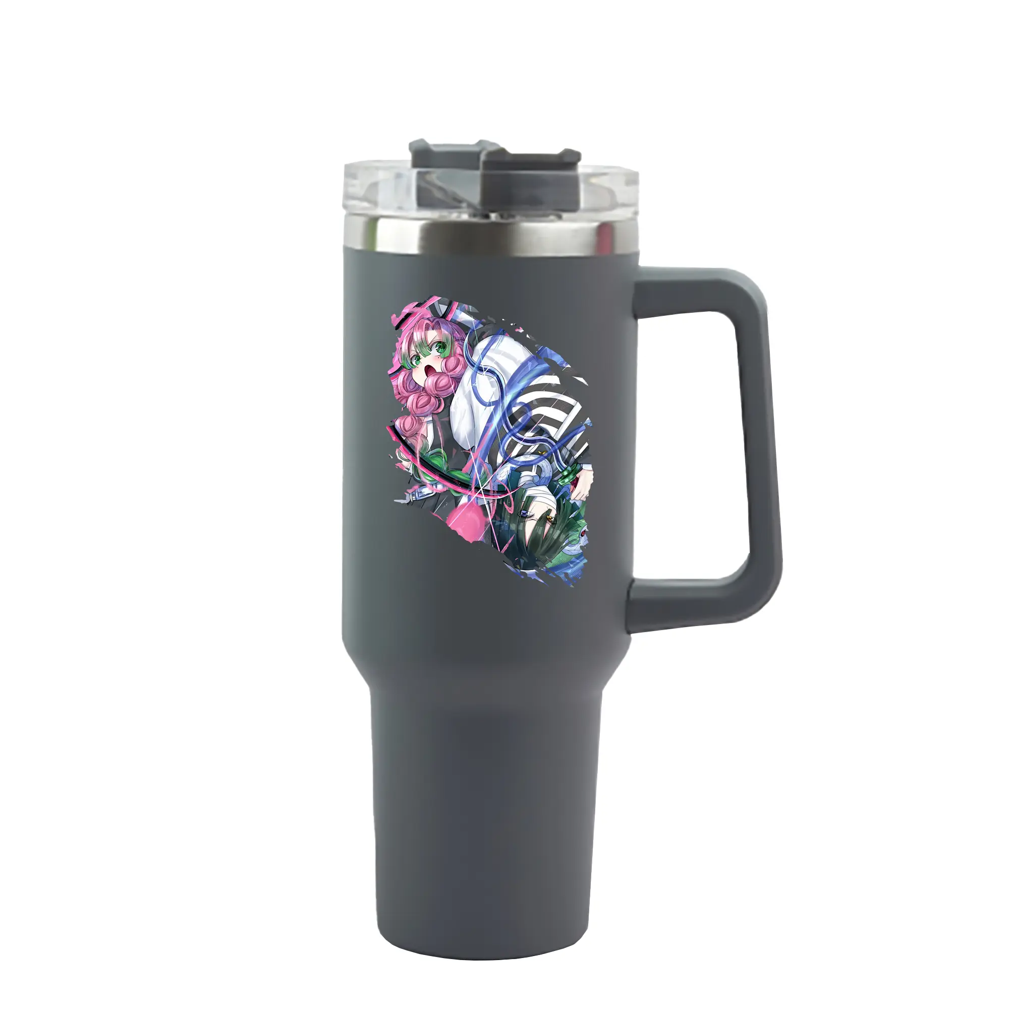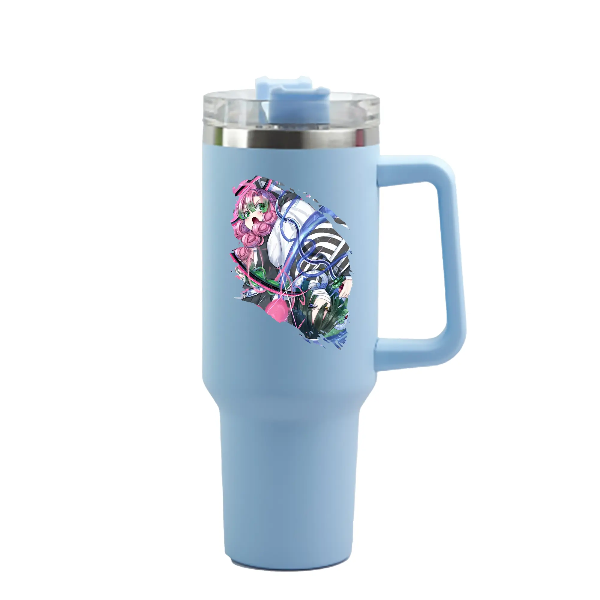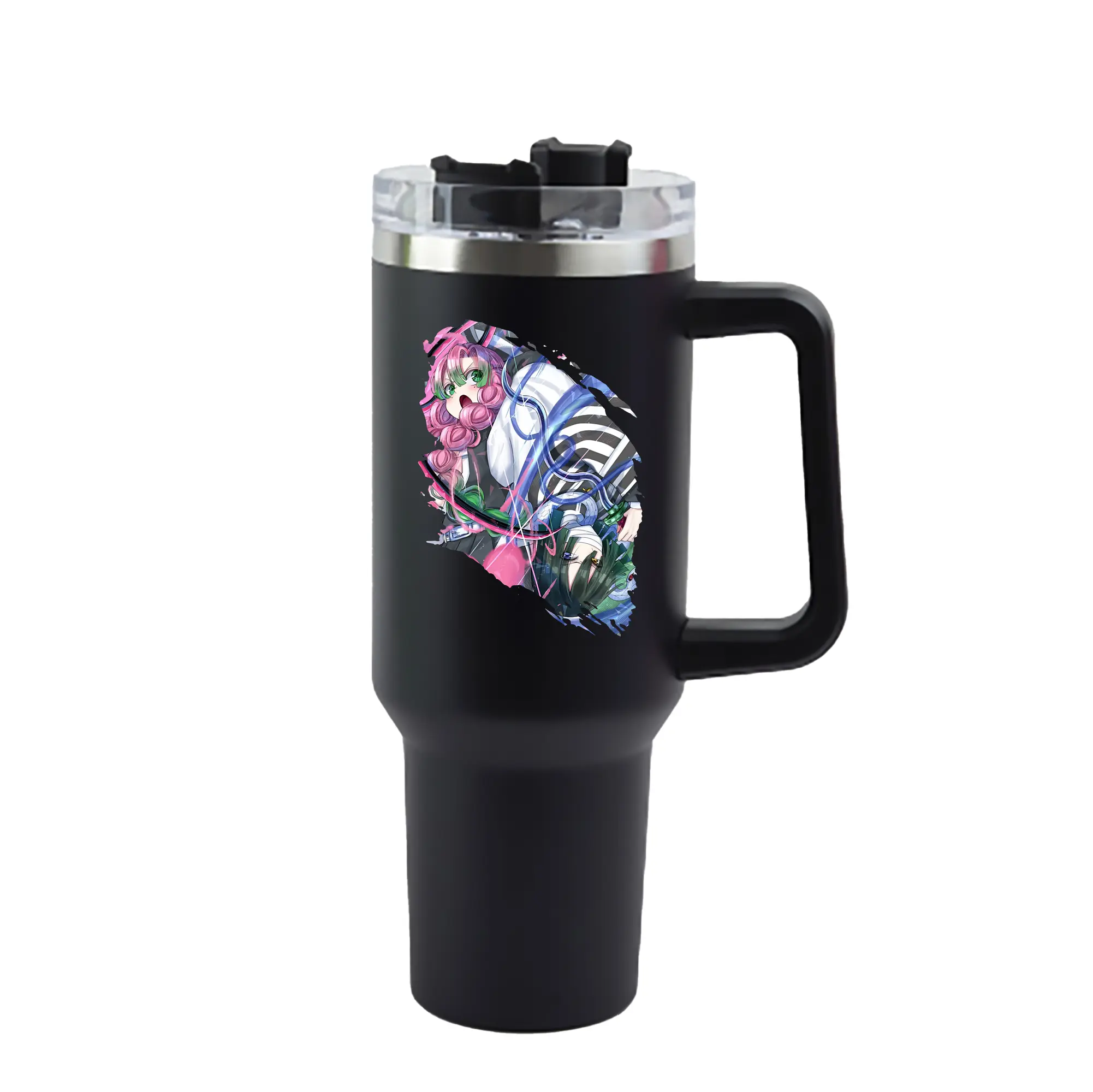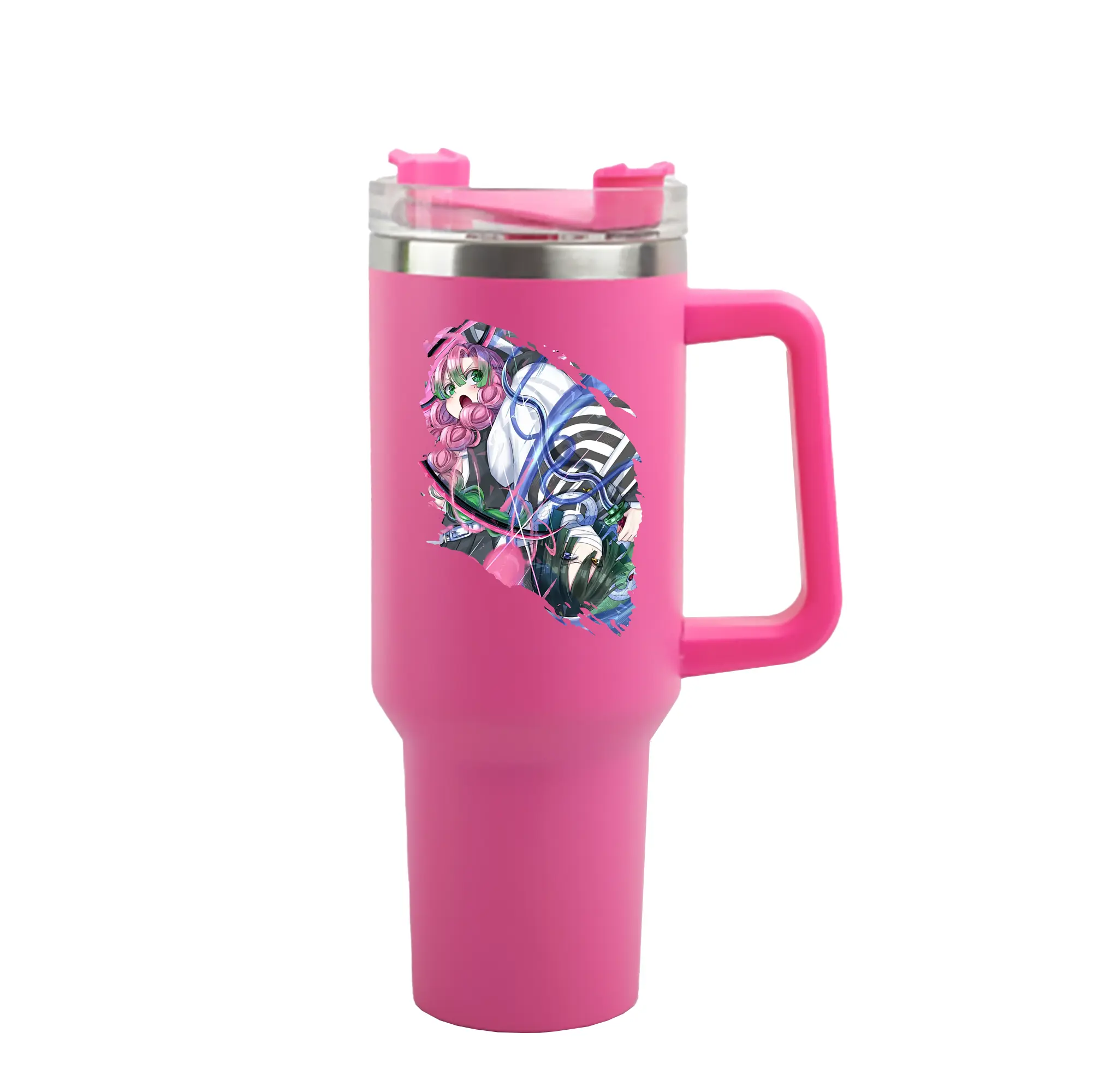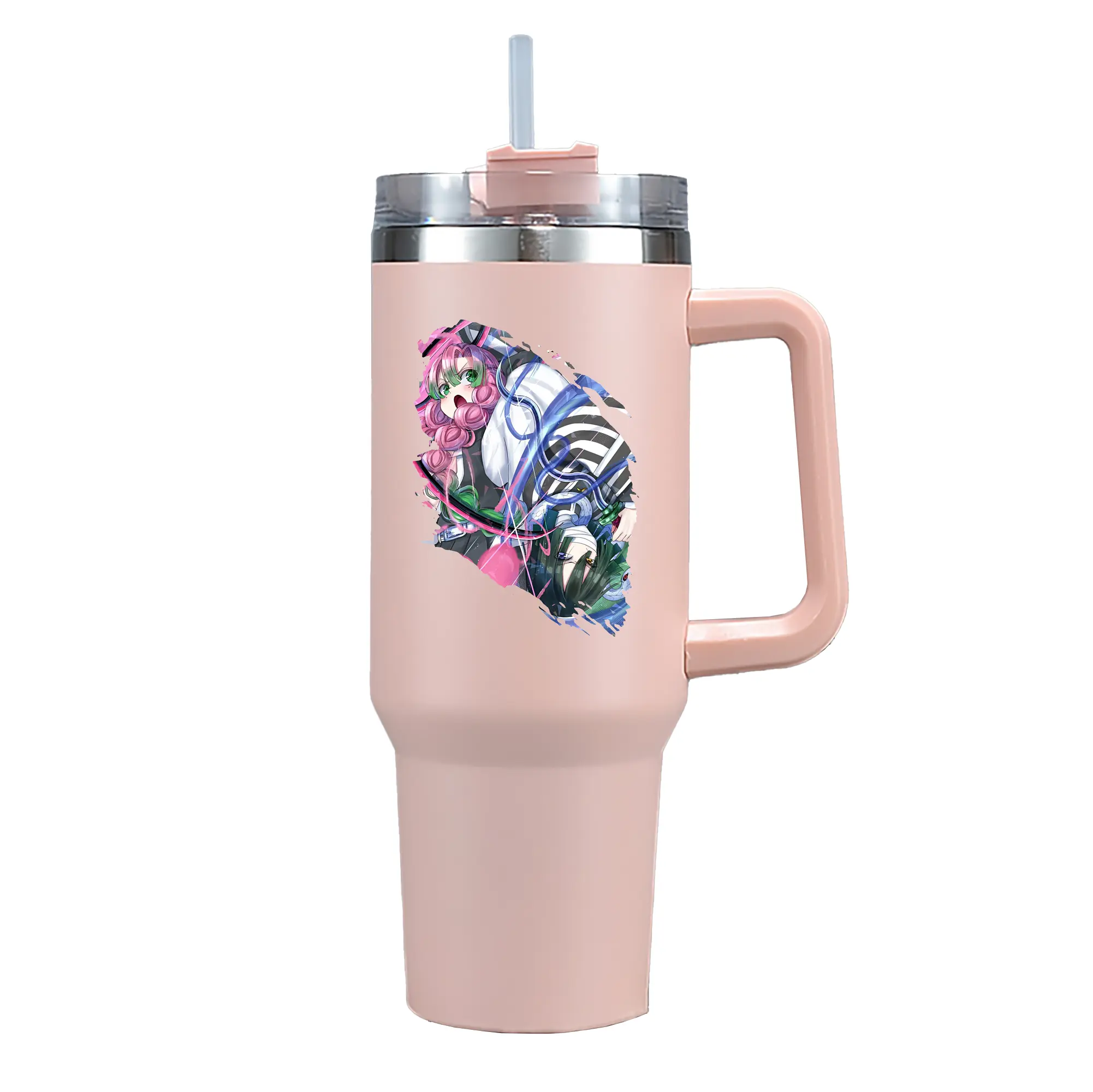 鬼滅の刃 グッズ,甘露寺 蜜璃 - 1200mL 車用タンブラー ・ クリスタルステッカー ・ 304ステンレス 内側 ・ 201ステンレス 外側 ・ 保温 保冷 ・ ハンドル&ストロー付き ・ 通勤 ドライブ アウトドア用
