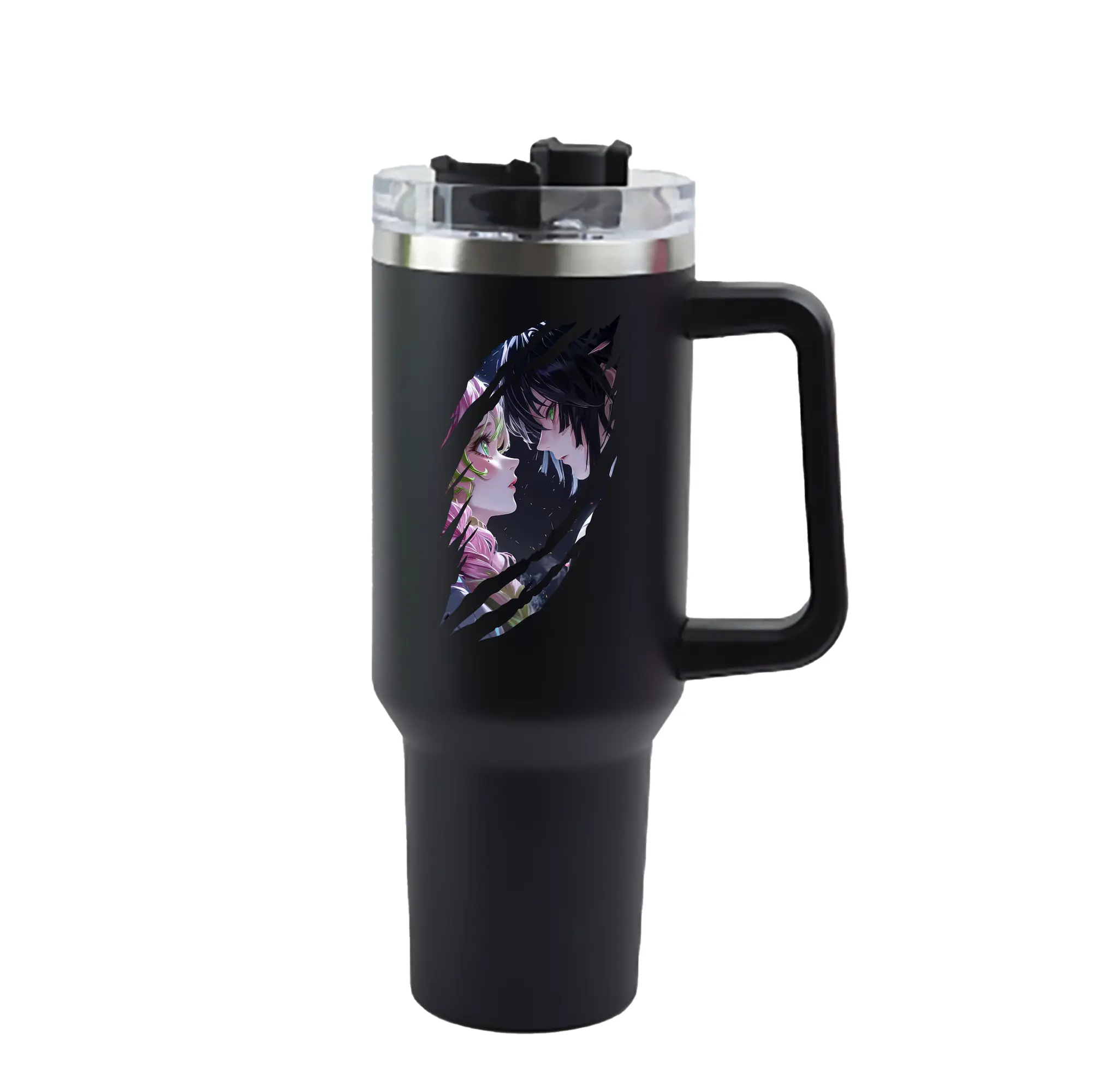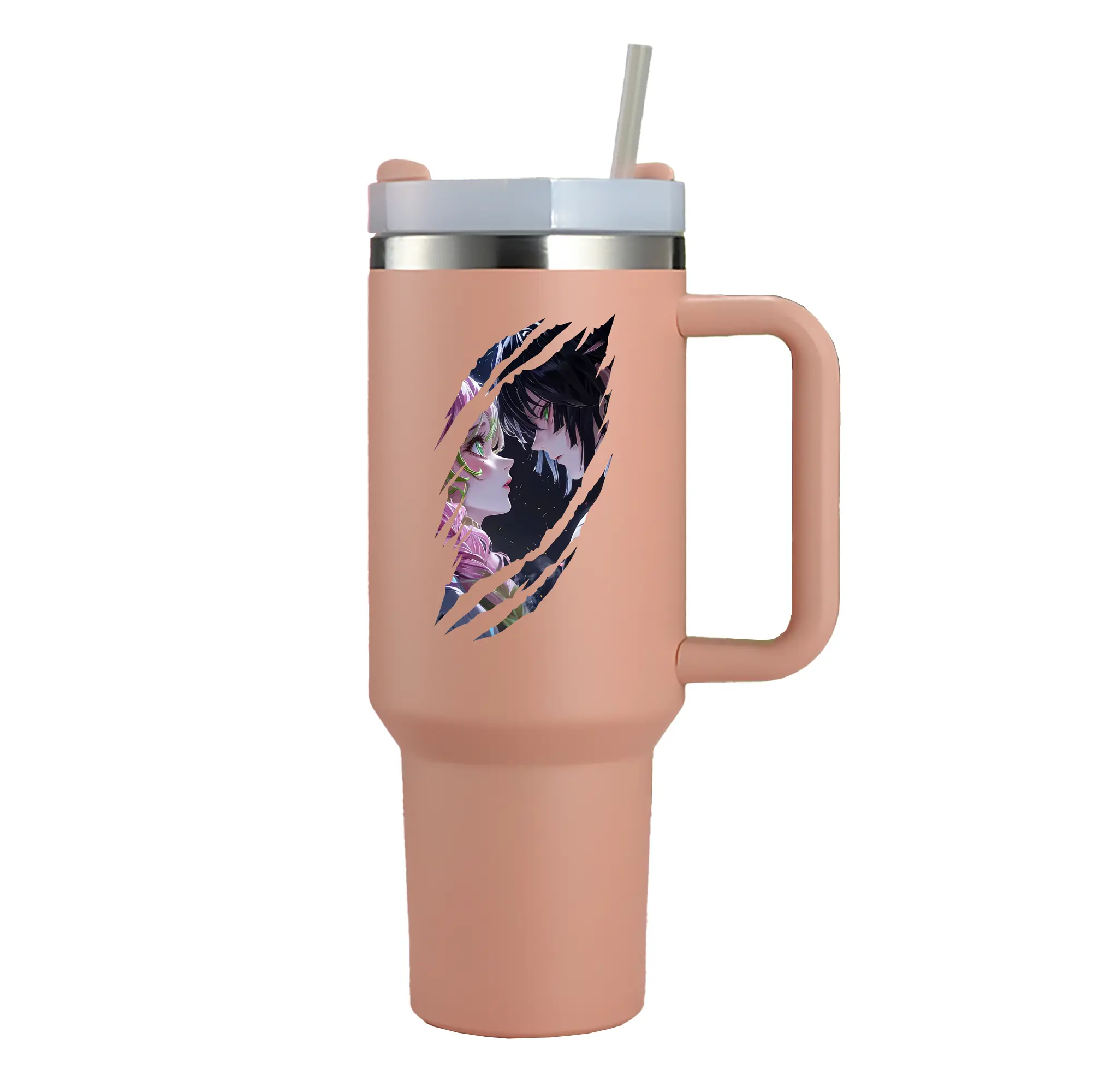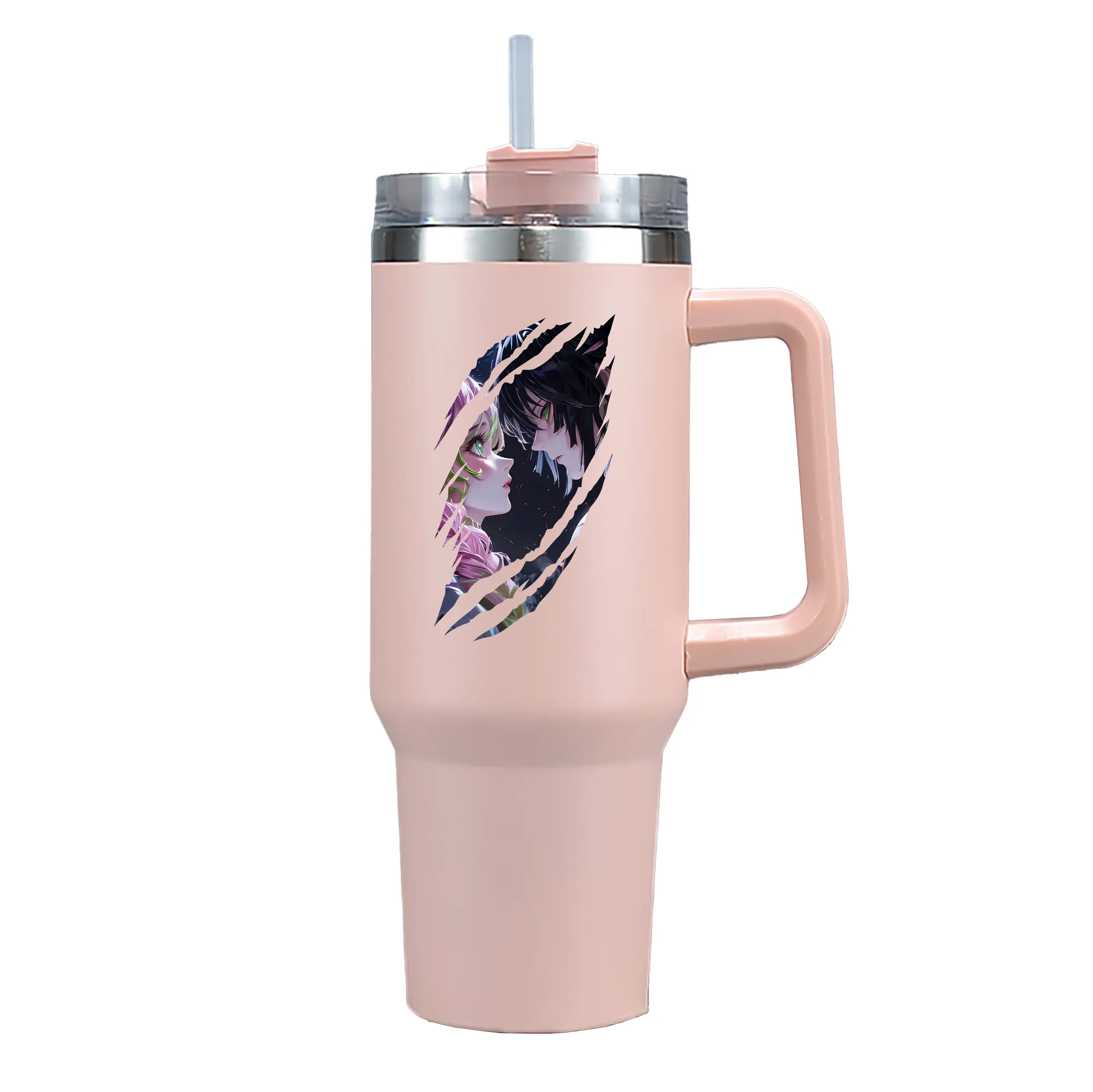 鬼滅の刃 グッズ,甘露寺 蜜璃 - 1200mL 車用タンブラー ・ クリスタルステッカー ・ 304ステンレス 内側 ・ 201ステンレス 外側 ・ 保温 保冷 ・ ハンドル&ストロー付き ・ 通勤 ドライブ アウトドア用