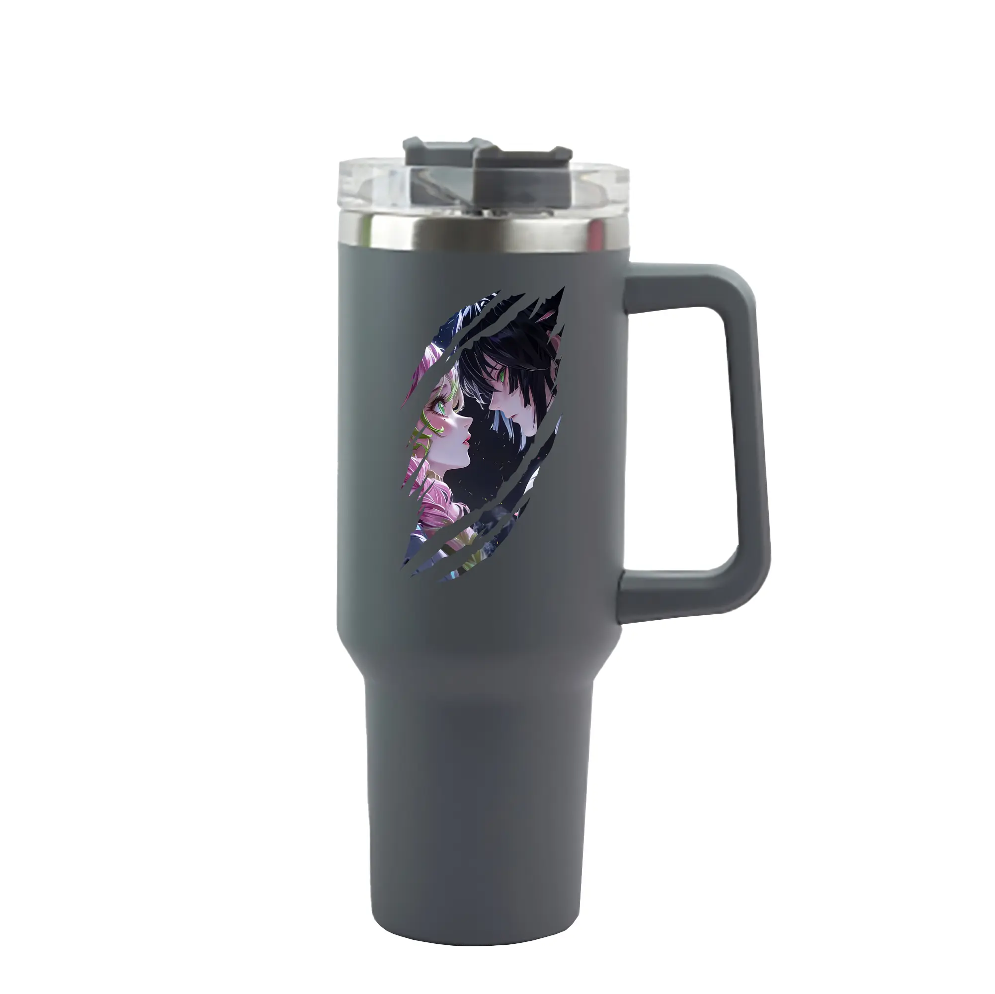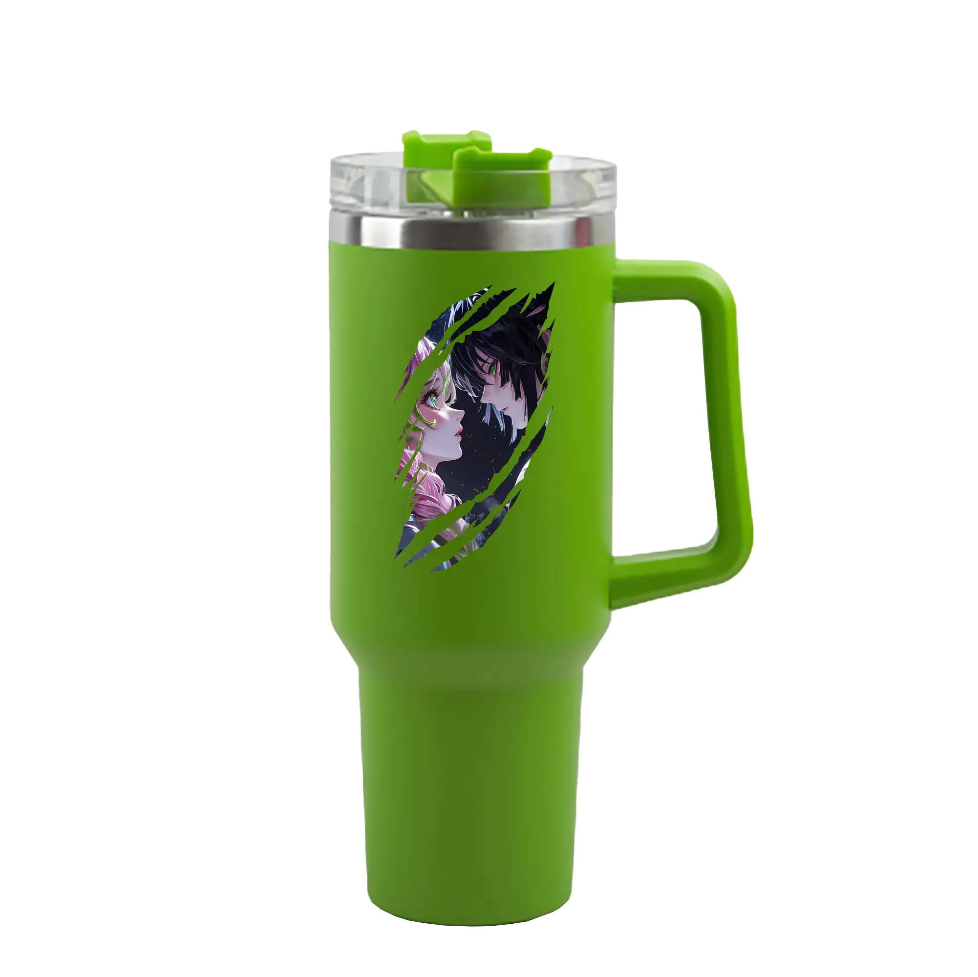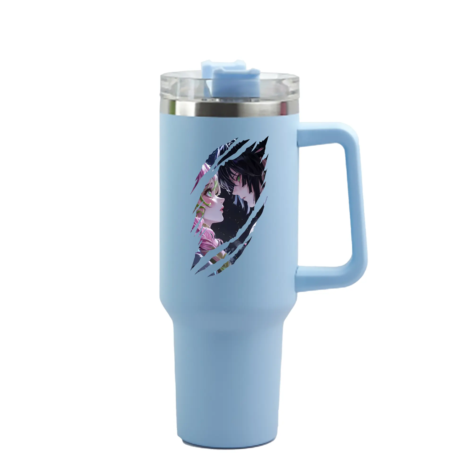 鬼滅の刃 グッズ,甘露寺 蜜璃 - 1200mL 車用タンブラー ・ クリスタルステッカー ・ 304ステンレス 内側 ・ 201ステンレス 外側 ・ 保温 保冷 ・ ハンドル&ストロー付き ・ 通勤 ドライブ アウトドア用