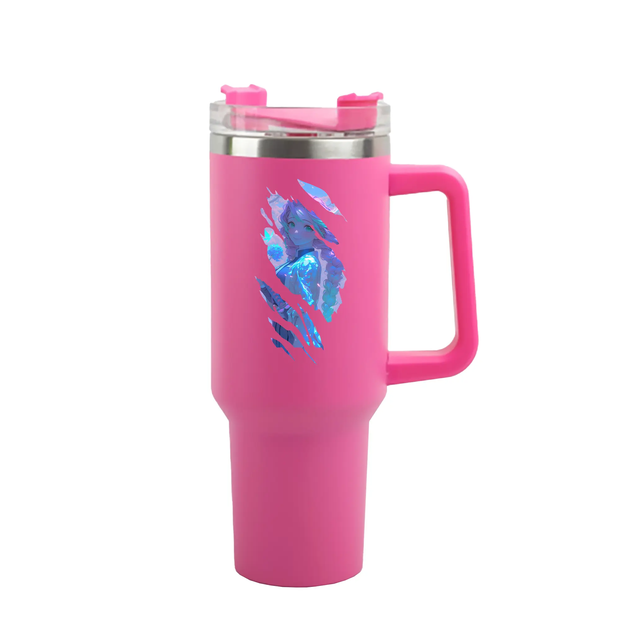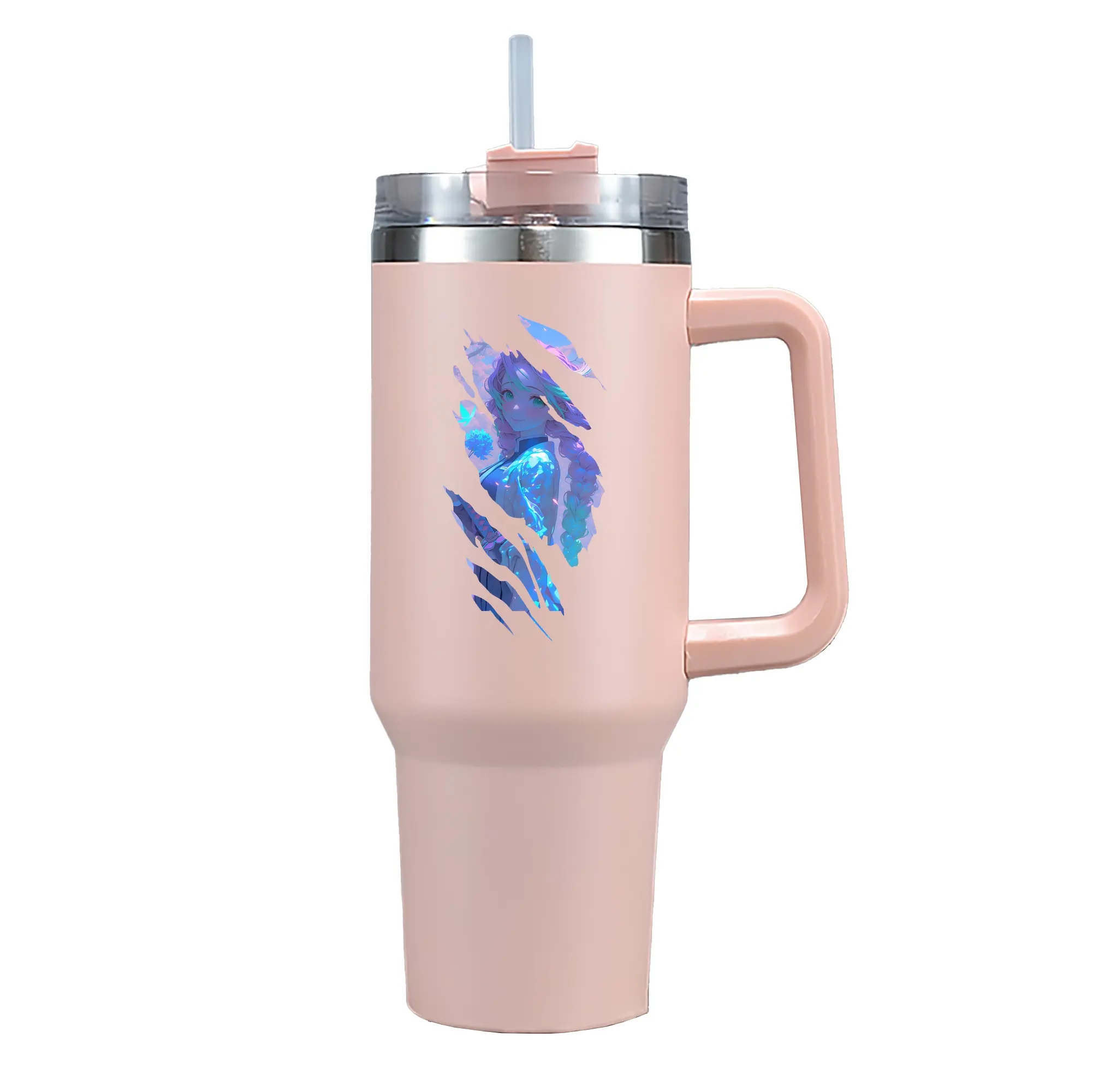 鬼滅の刃 グッズ,甘露寺 蜜璃 - 1200mL 車用タンブラー ・ クリスタルステッカー ・ 304ステンレス 内側 ・ 201ステンレス 外側 ・ 保温 保冷 ・ ハンドル&ストロー付き ・ 通勤 ドライブ アウトドア用
