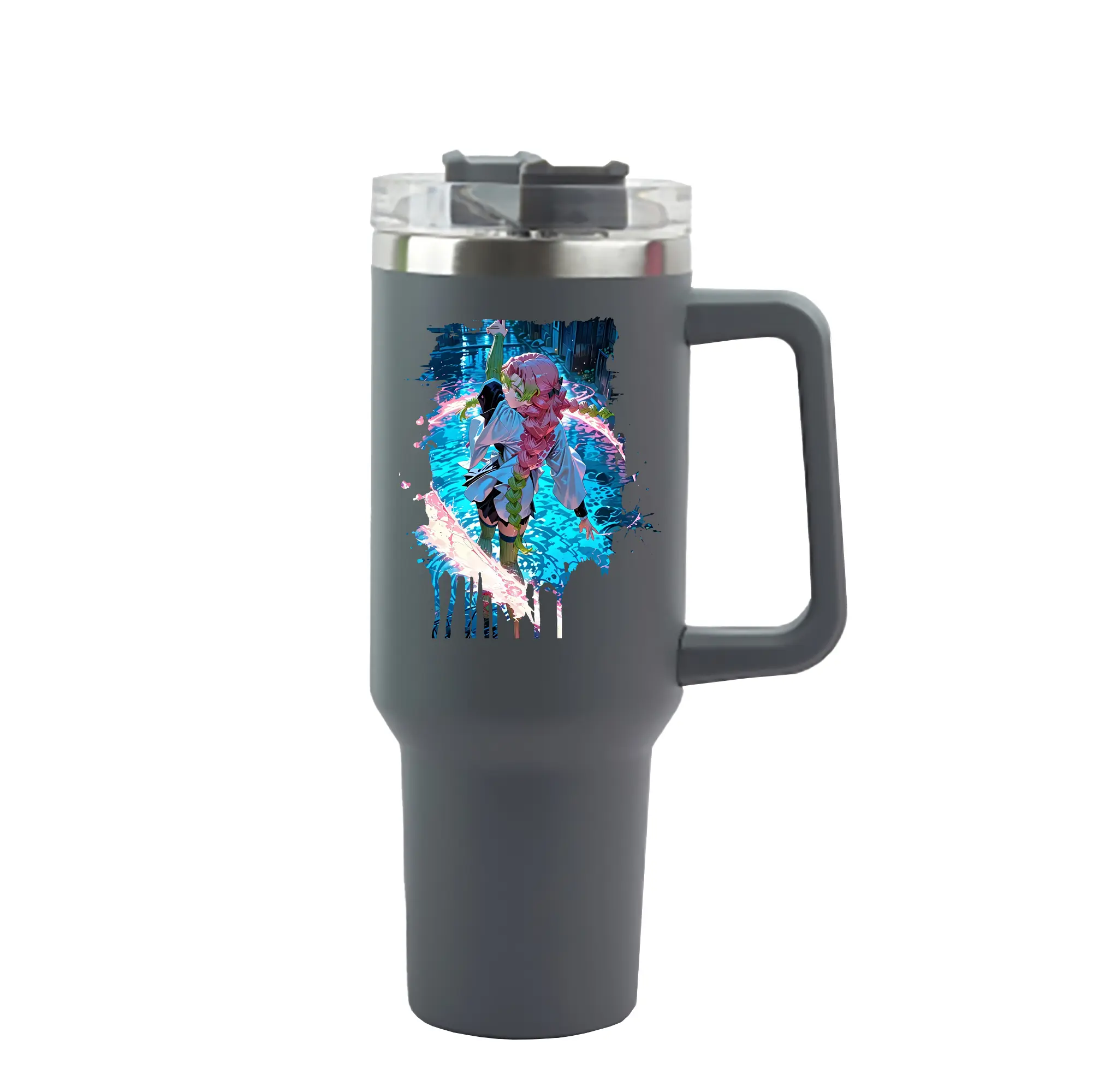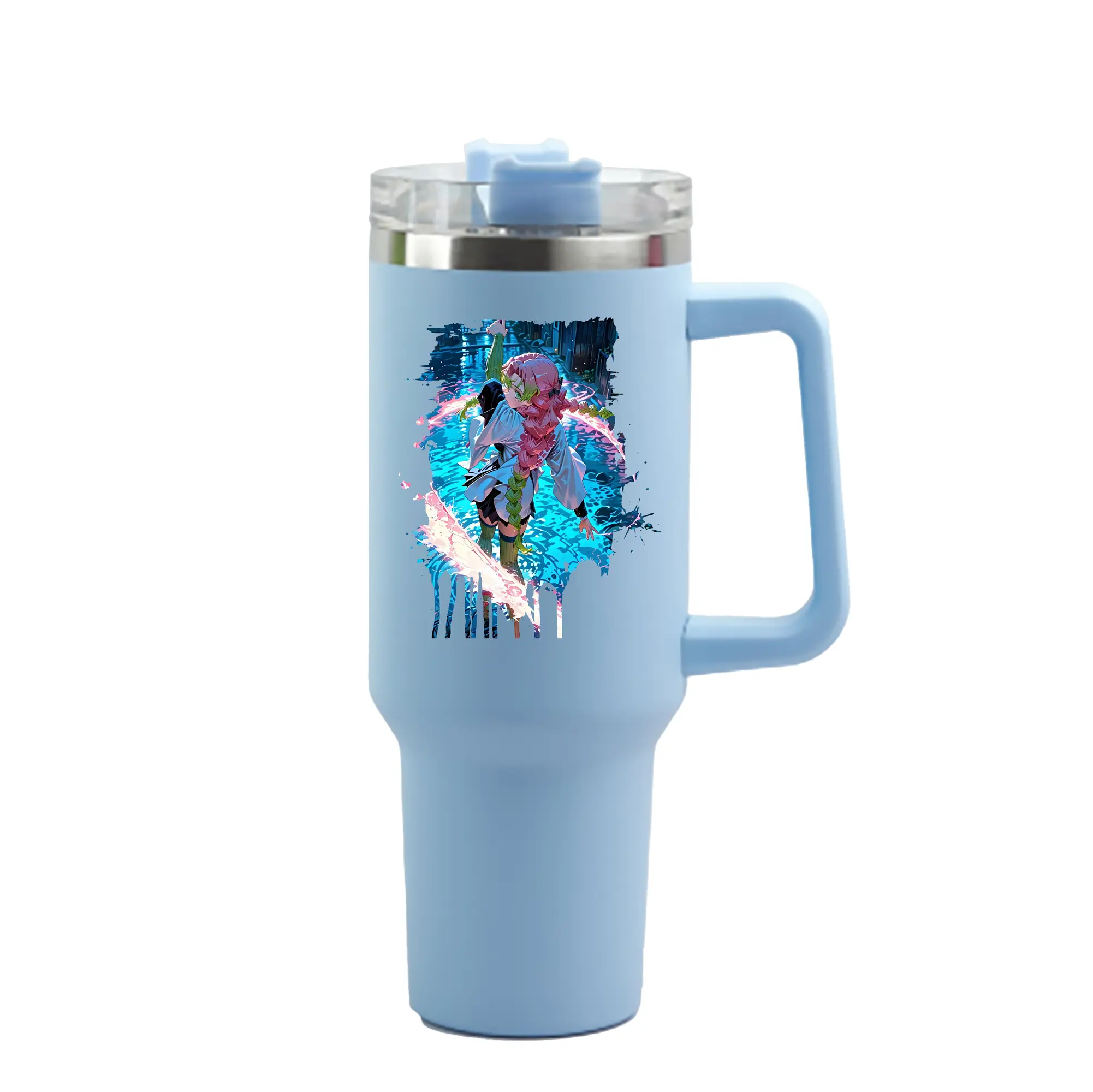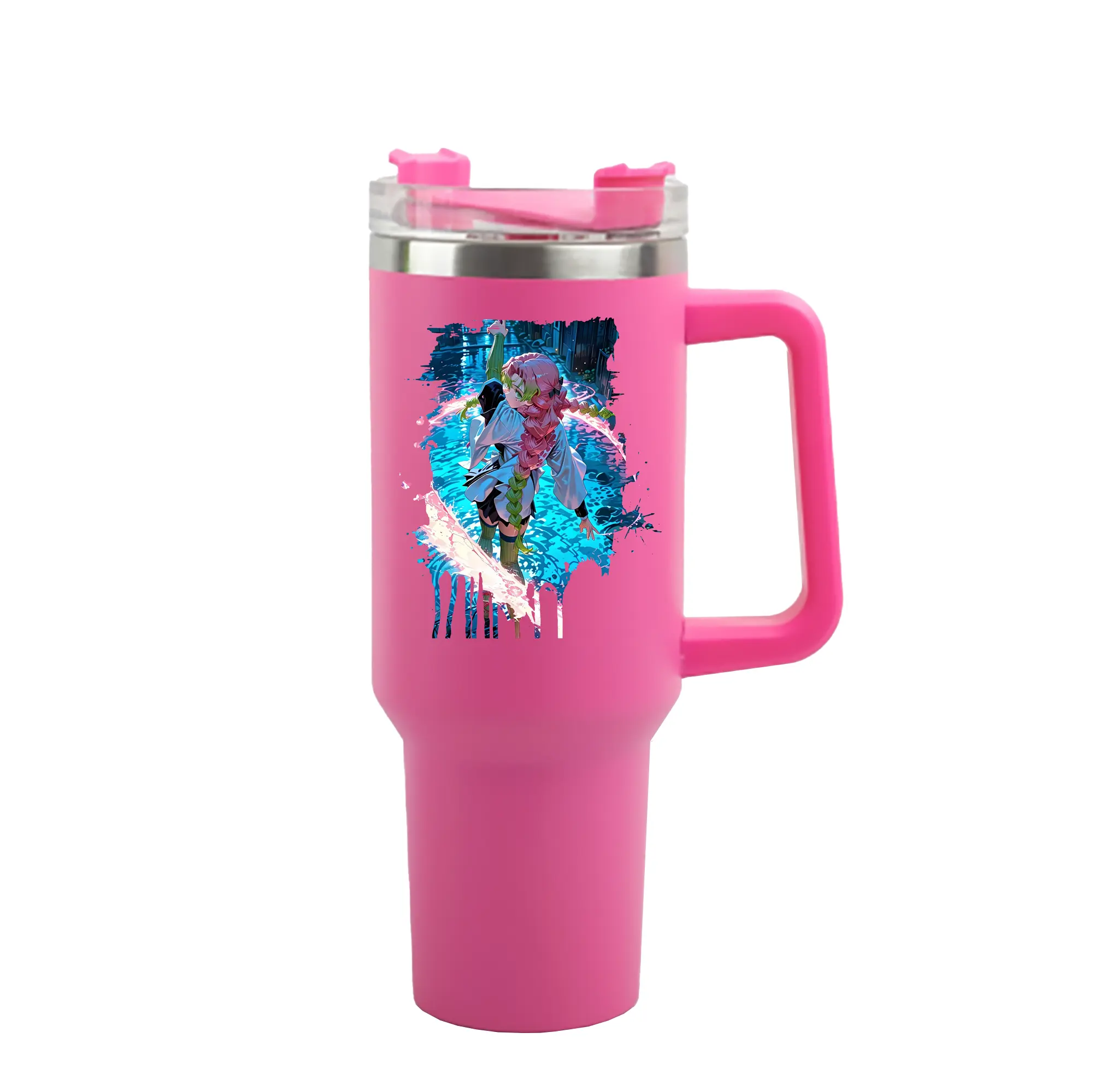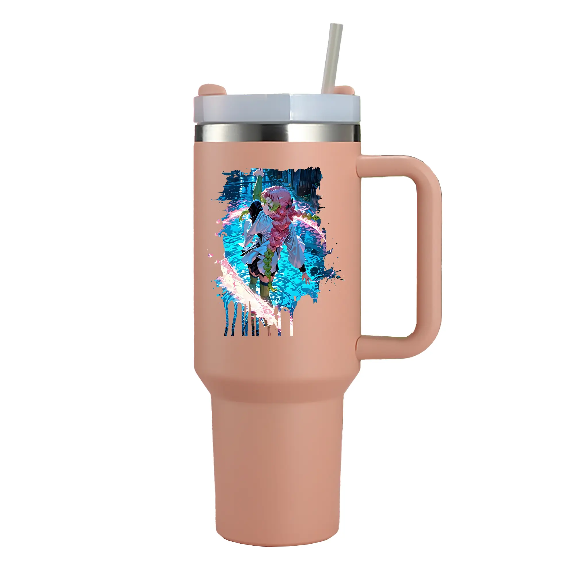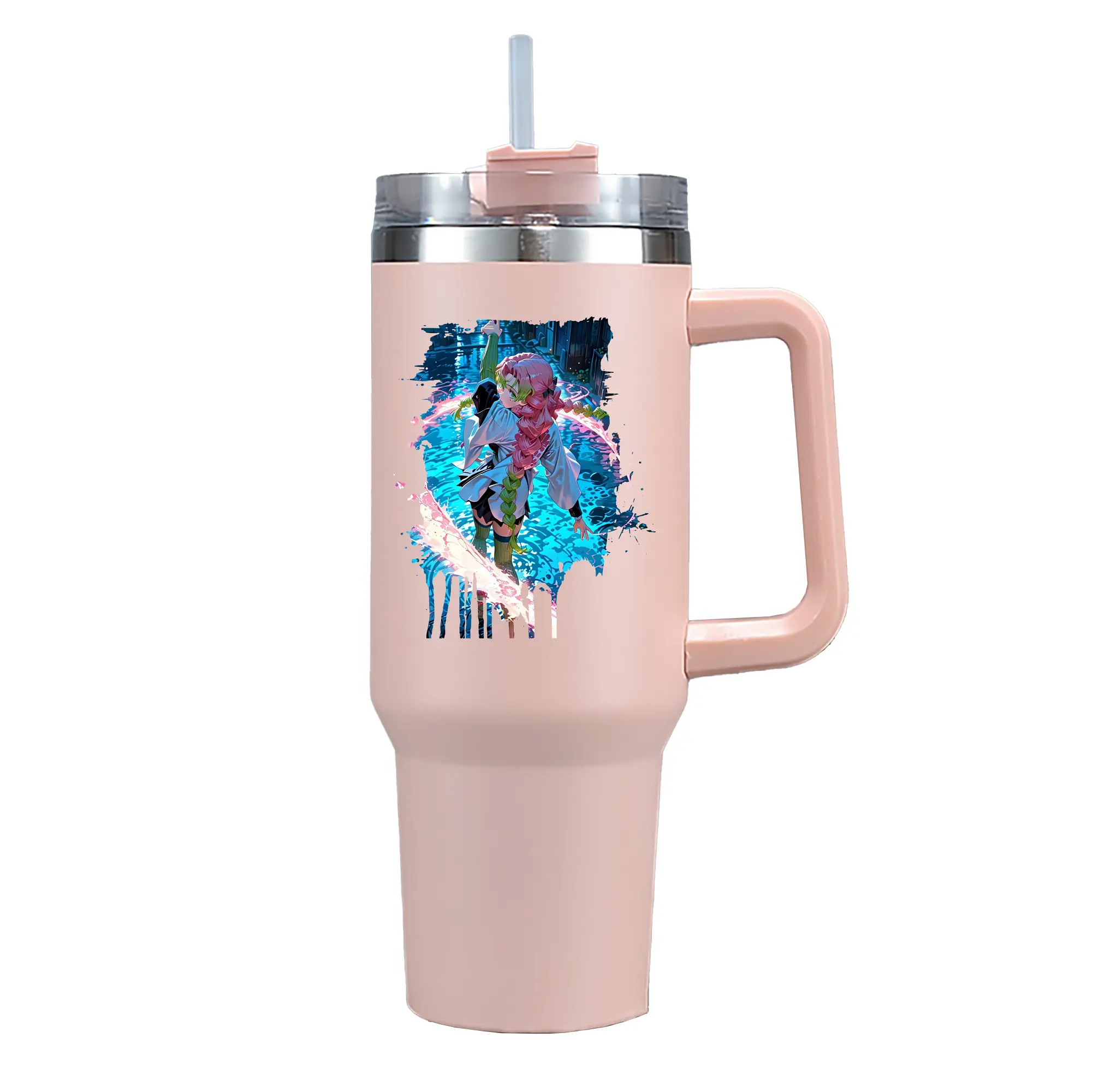 鬼滅の刃 グッズ,甘露寺 蜜璃 - 1200mL 車用タンブラー ・ クリスタルステッカー ・ 304ステンレス 内側 ・ 201ステンレス 外側 ・ 保温 保冷 ・ ハンドル&ストロー付き ・ 通勤 ドライブ アウトドア用