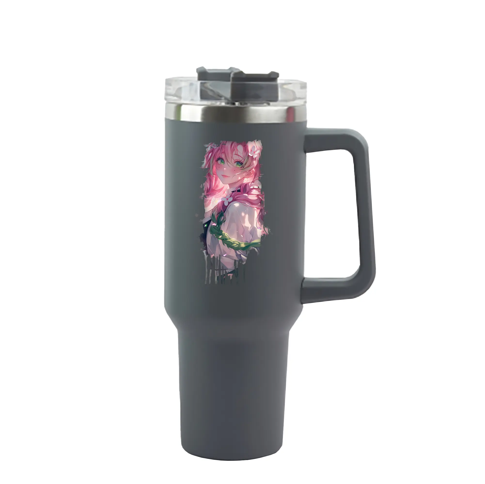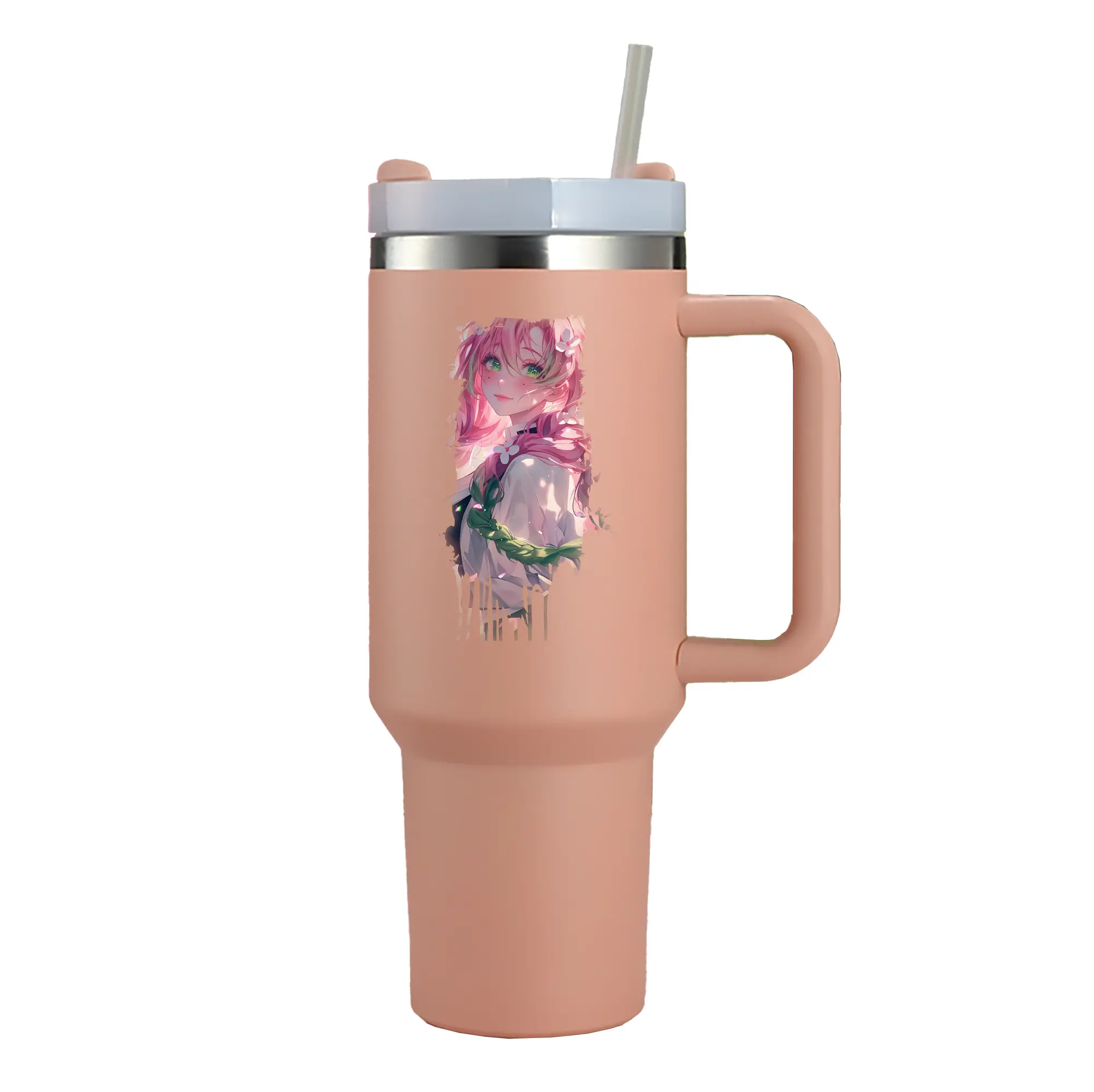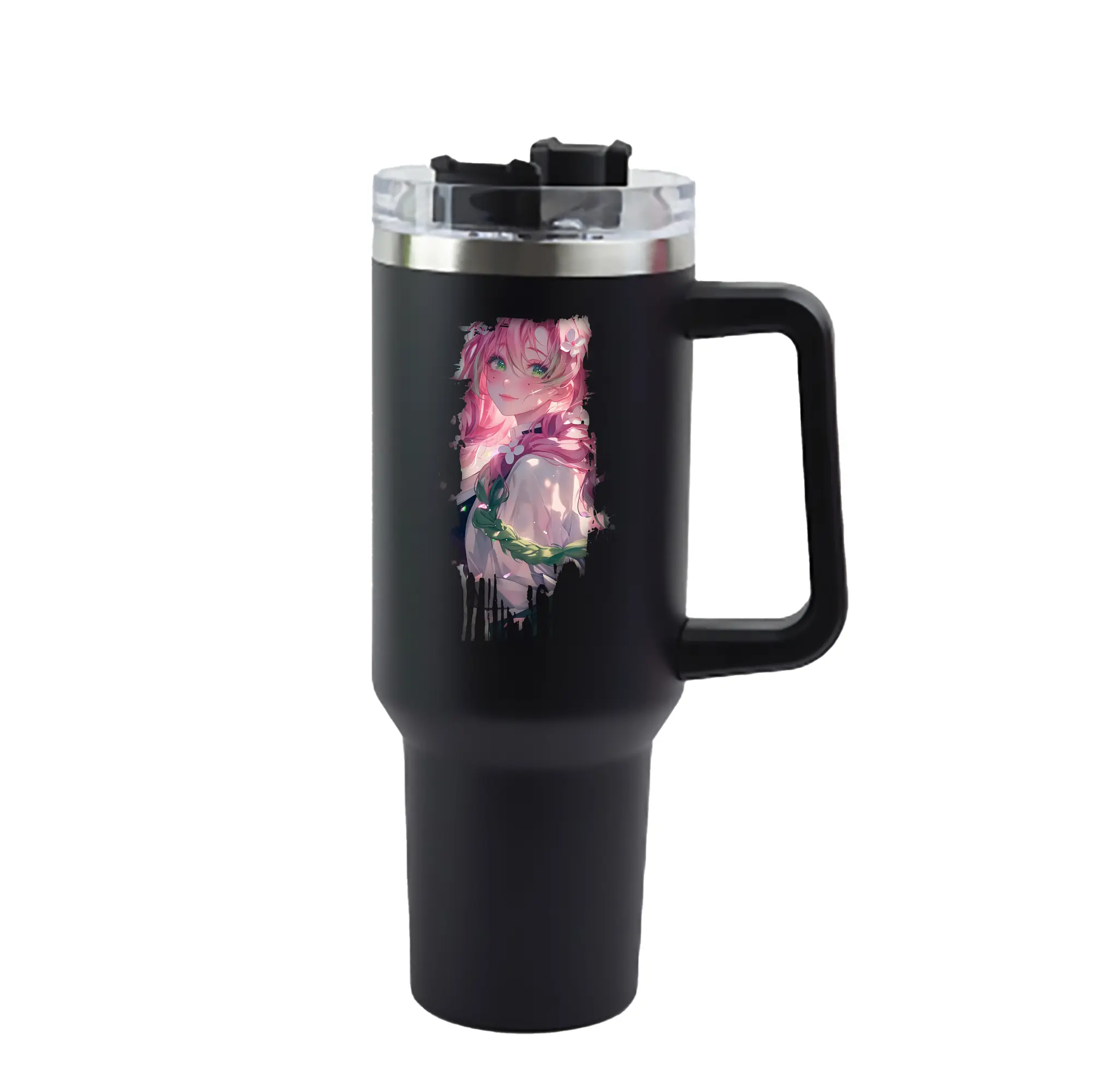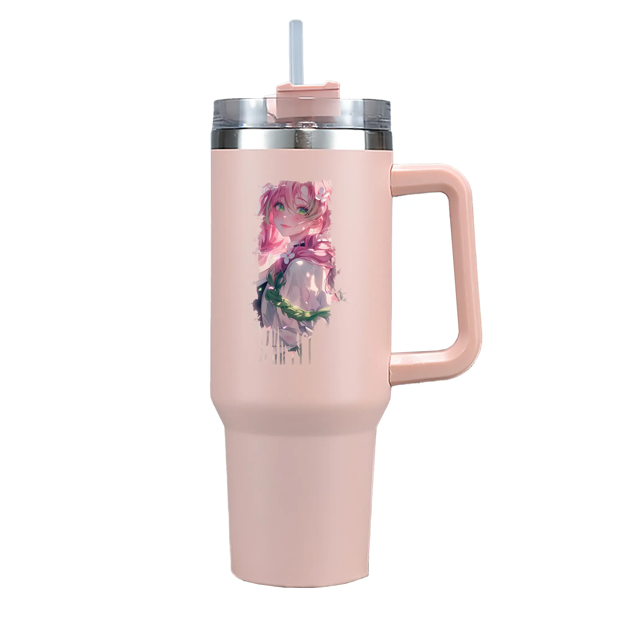 鬼滅の刃 グッズ,甘露寺 蜜璃 - 1200mL 車用タンブラー ・ クリスタルステッカー ・ 304ステンレス 内側 ・ 201ステンレス 外側 ・ 保温 保冷 ・ ハンドル&ストロー付き ・ 通勤 ドライブ アウトドア用