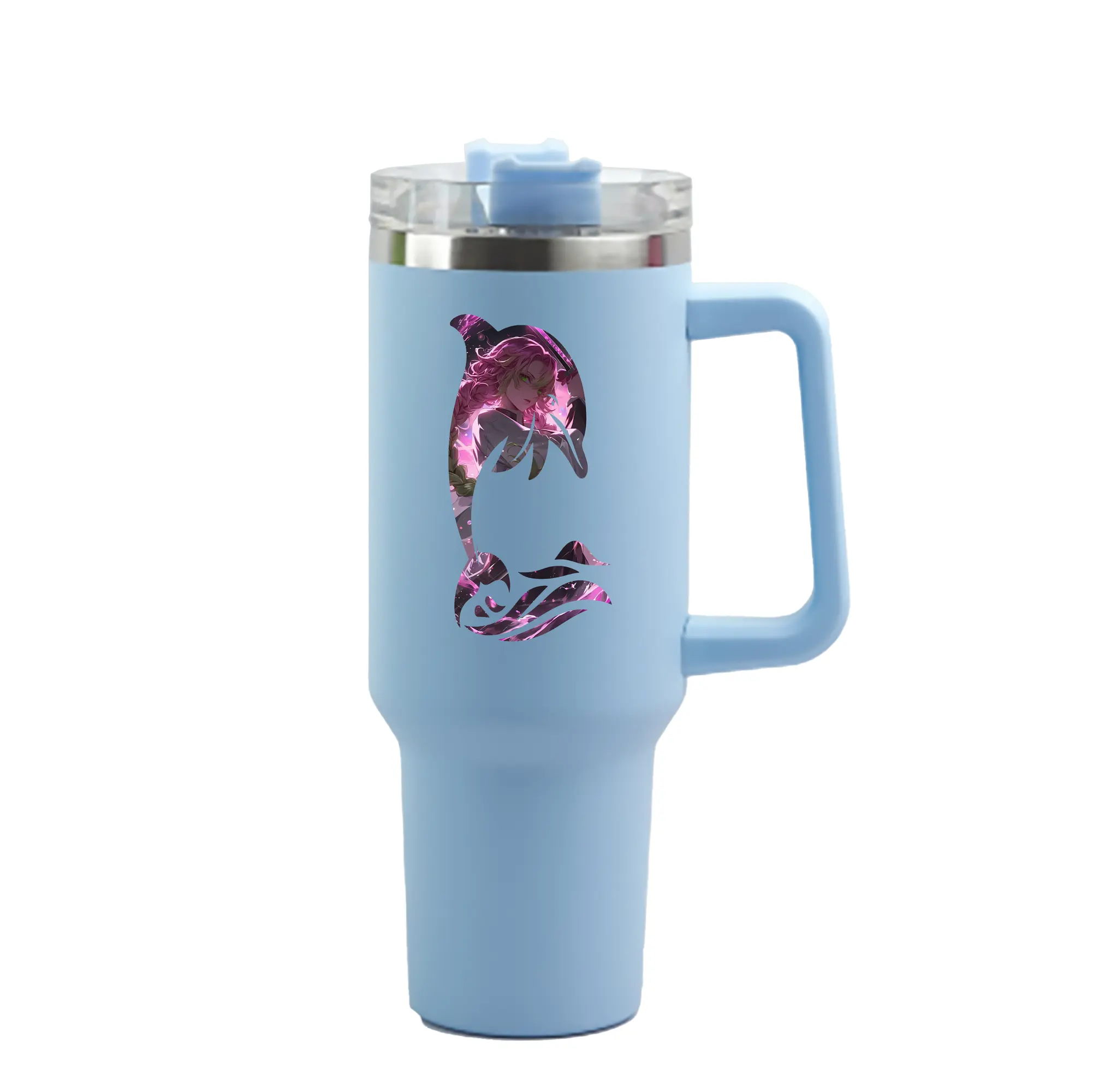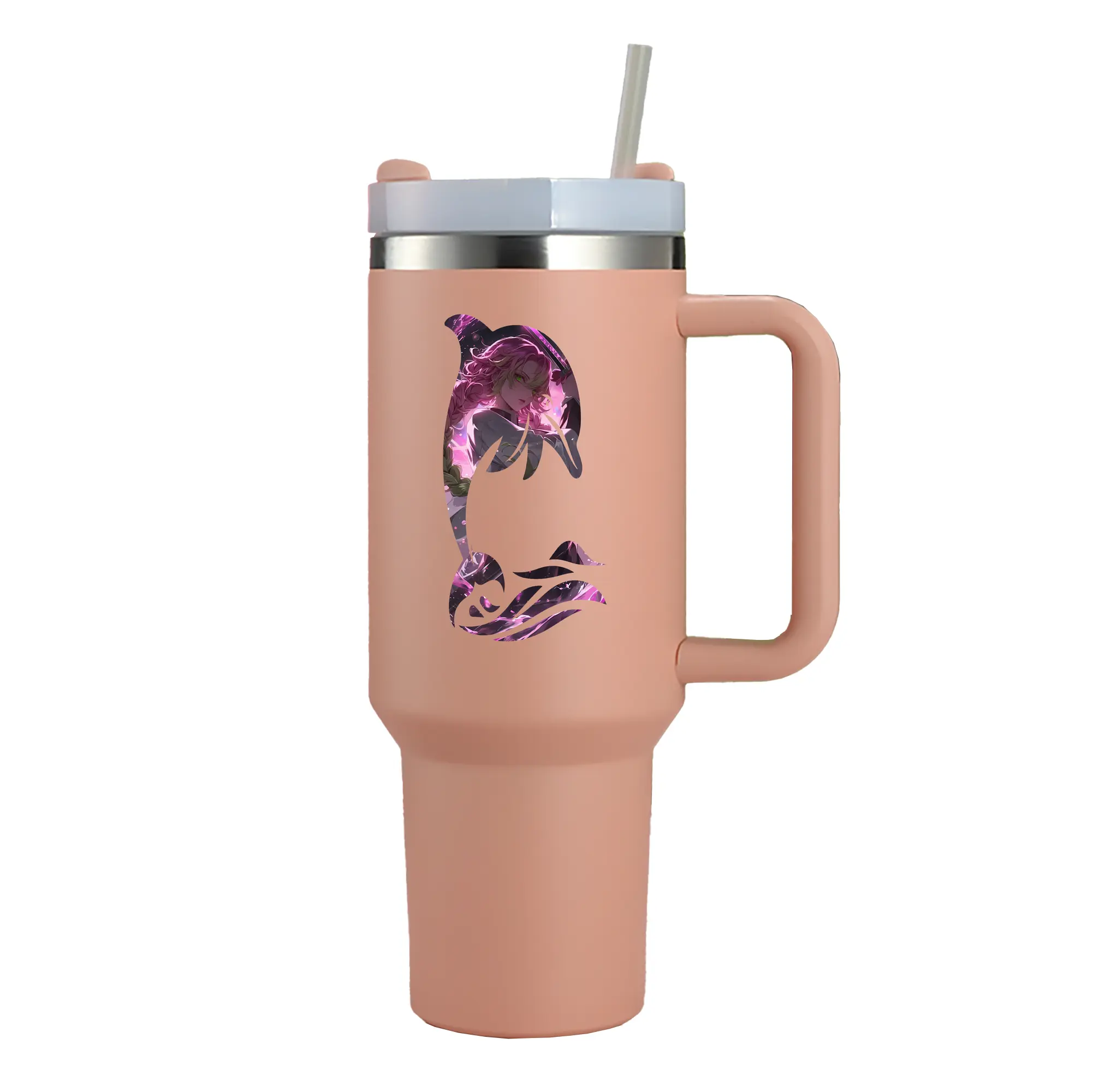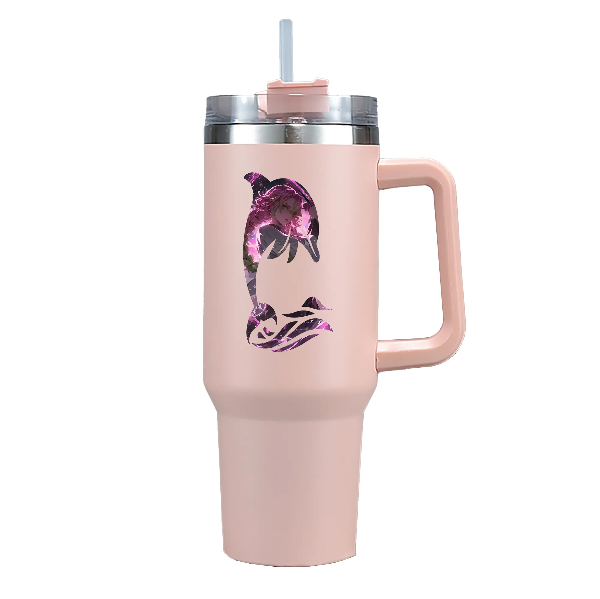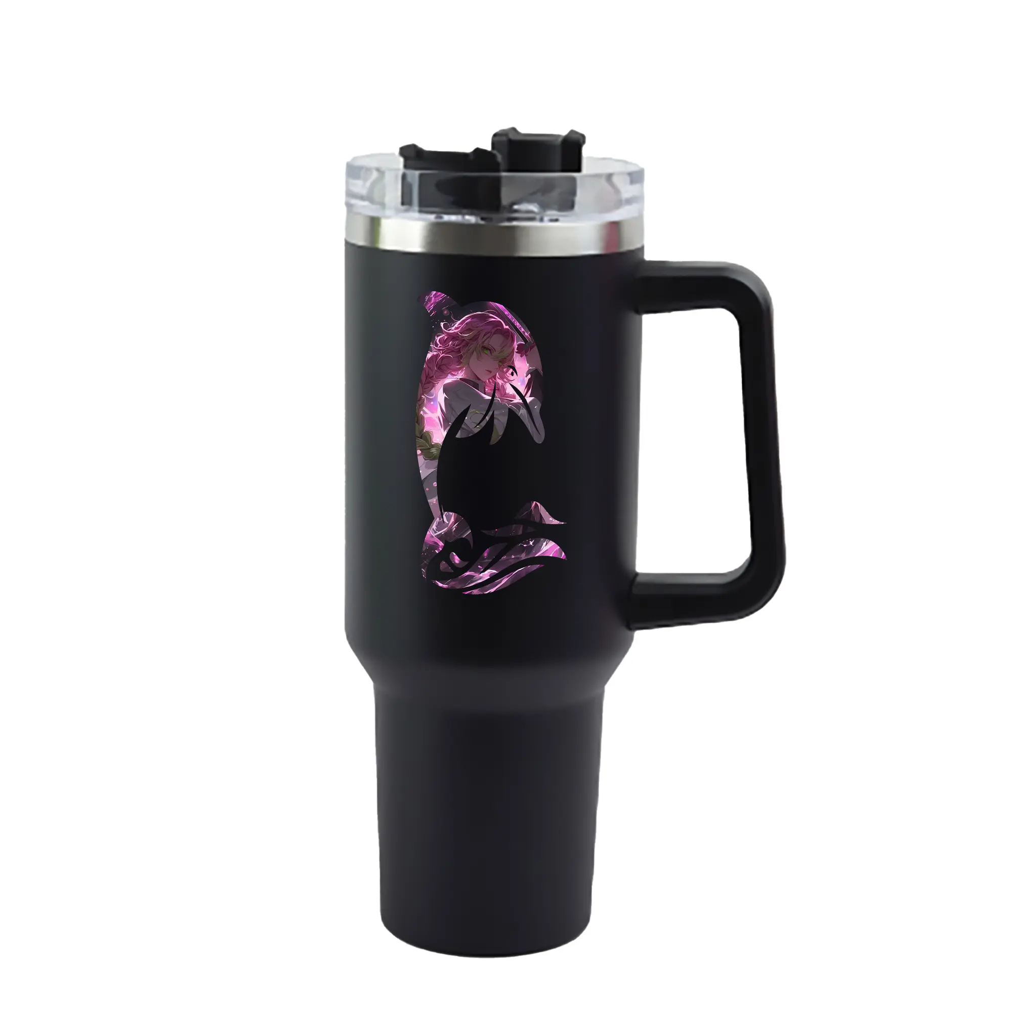 鬼滅の刃 グッズ,甘露寺 蜜璃 - 1200mL 車用タンブラー ・ クリスタルステッカー ・ 304ステンレス 内側 ・ 201ステンレス 外側 ・ 保温 保冷 ・ ハンドル&ストロー付き ・ 通勤 ドライブ アウトドア用