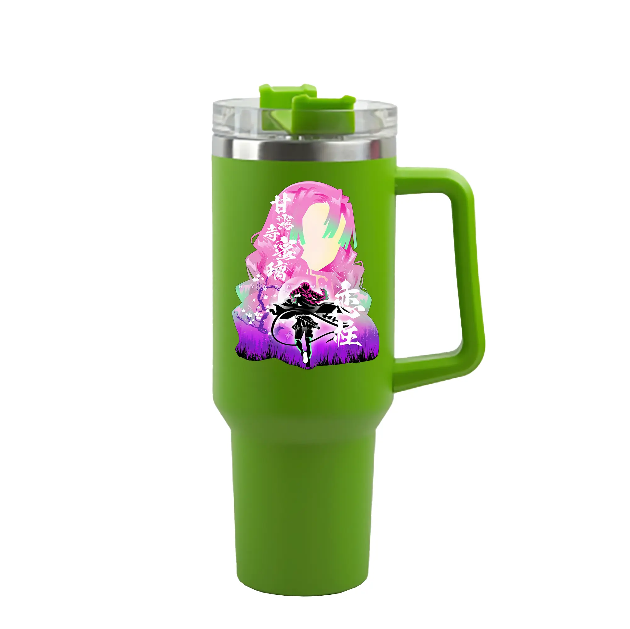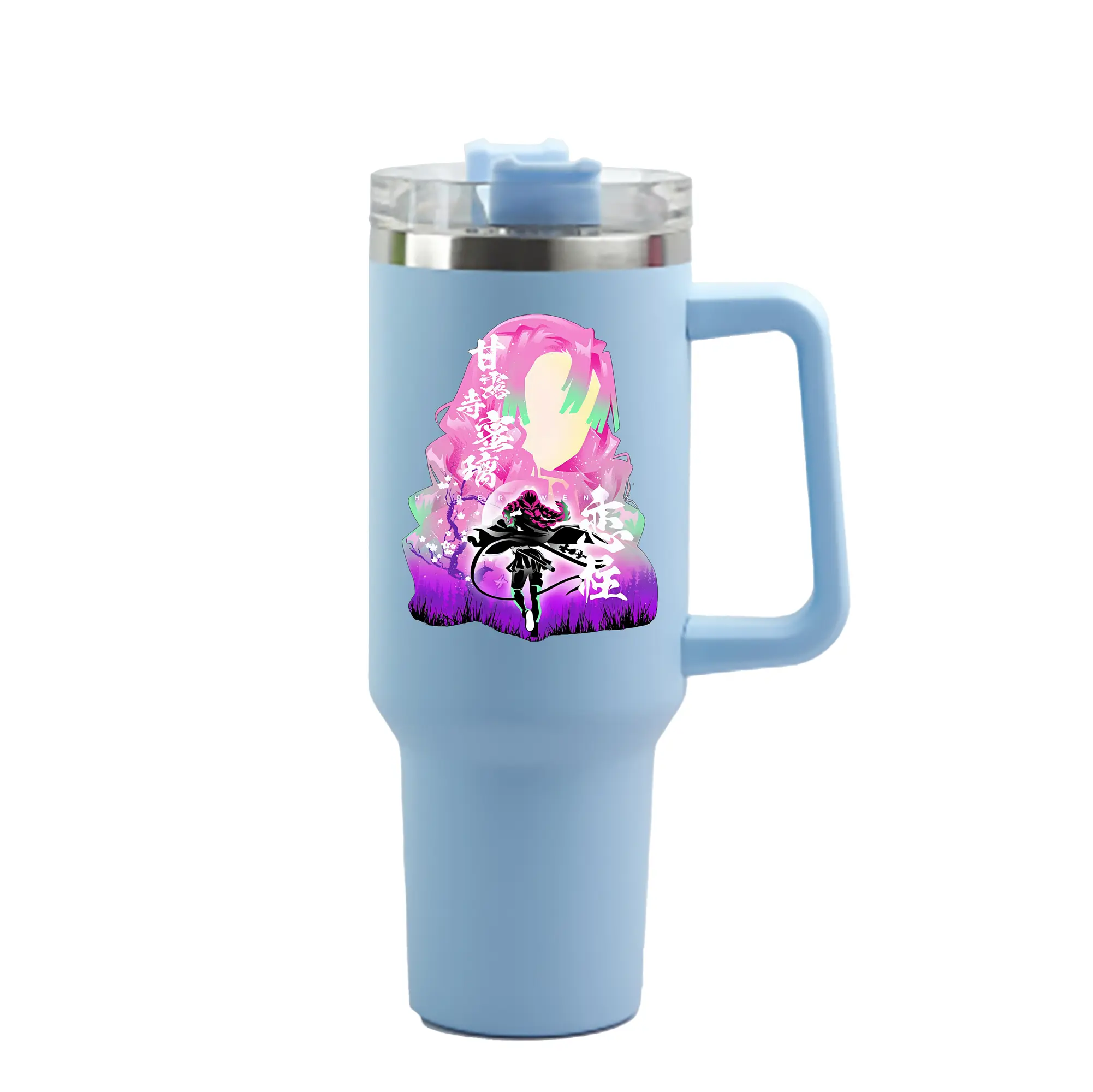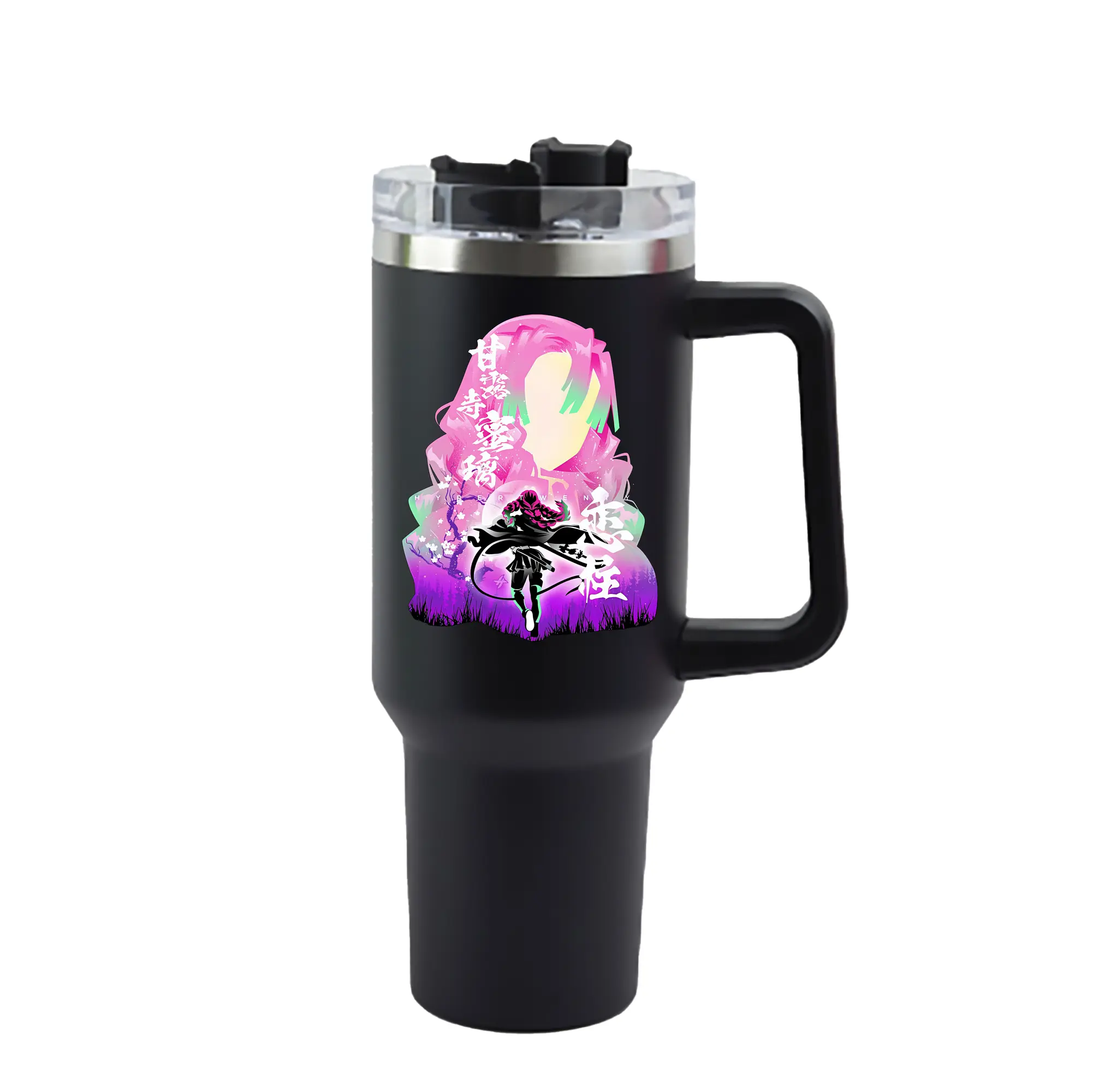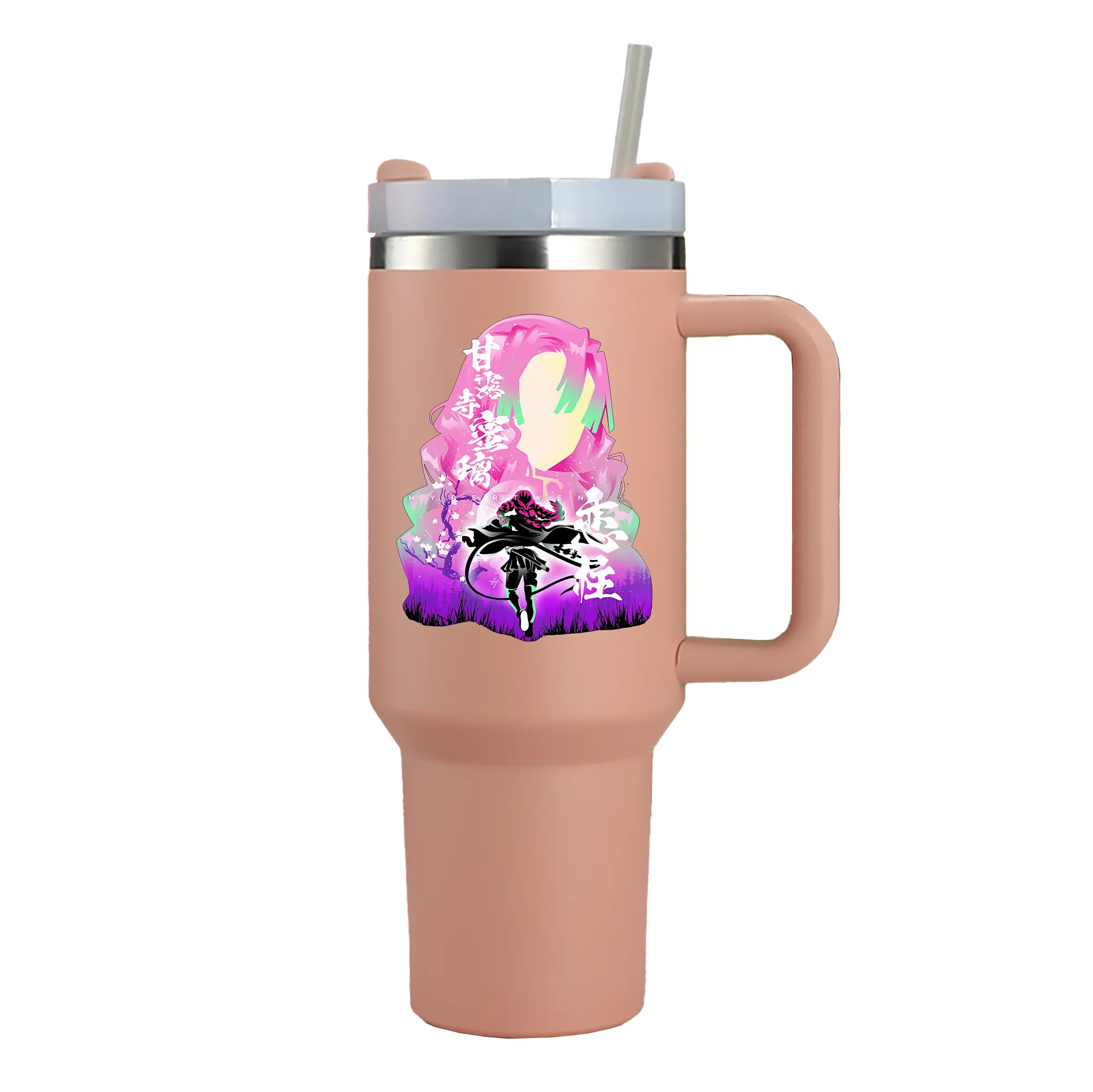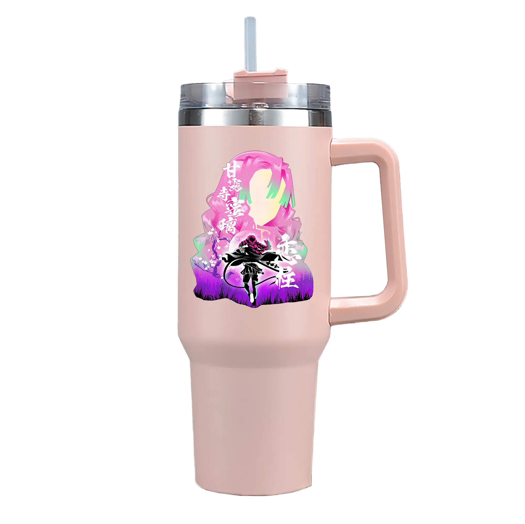 鬼滅の刃 グッズ,甘露寺 蜜璃 - 1200mL 車用タンブラー ・ クリスタルステッカー ・ 304ステンレス 内側 ・ 201ステンレス 外側 ・ 保温 保冷 ・ ハンドル&ストロー付き ・ 通勤 ドライブ アウトドア用