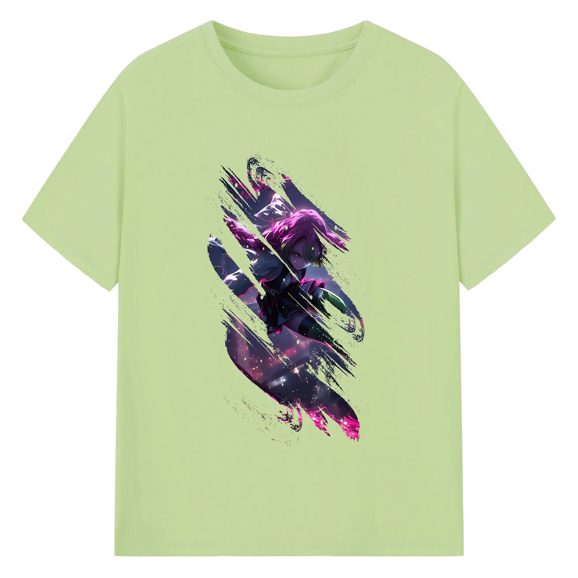アイカツ グッズ 紫吹 蘭 - 綿100% 半袖Tシャツ ・ フロントプリント ・ 快適 通気性 ・ 日常使い 散歩 スポーツ用