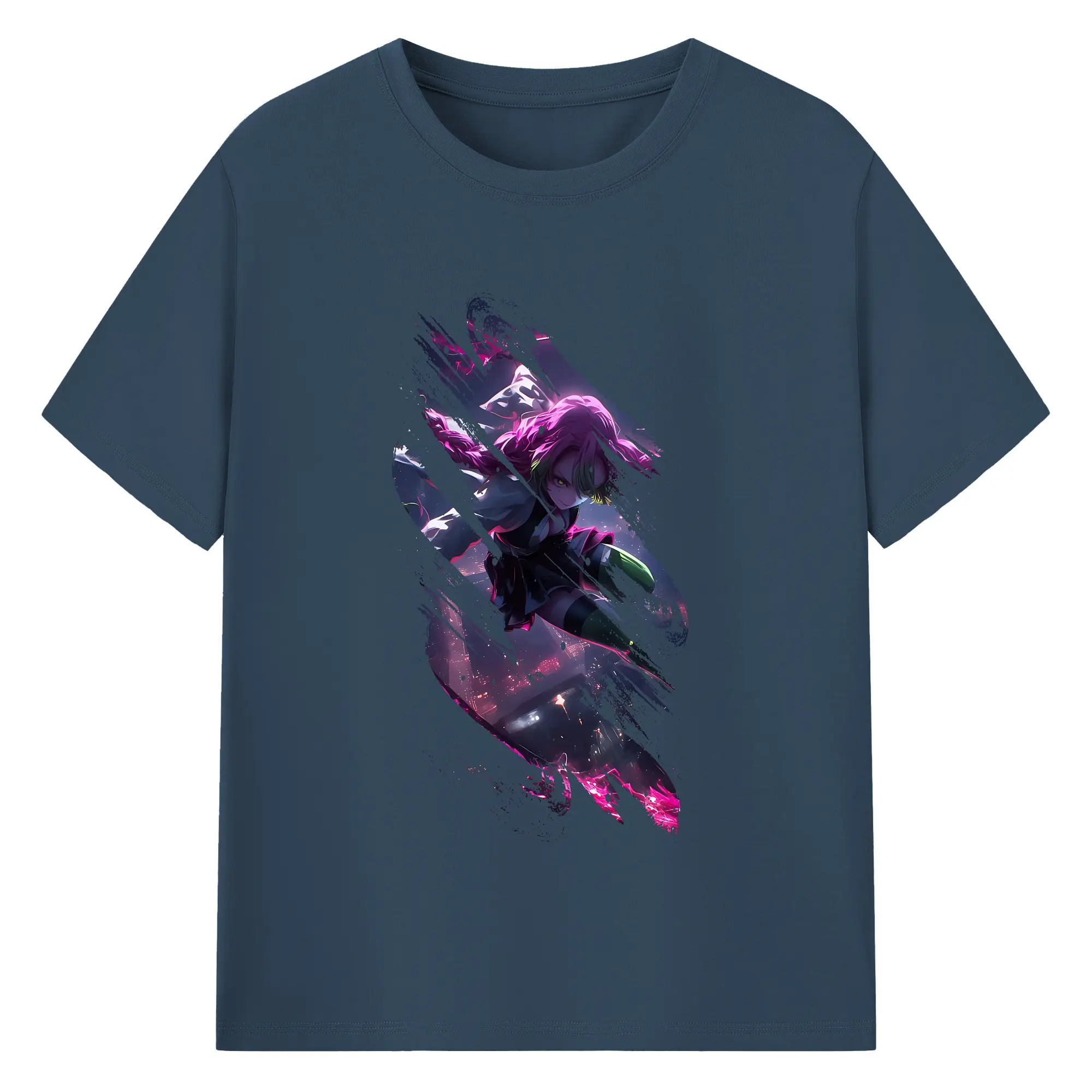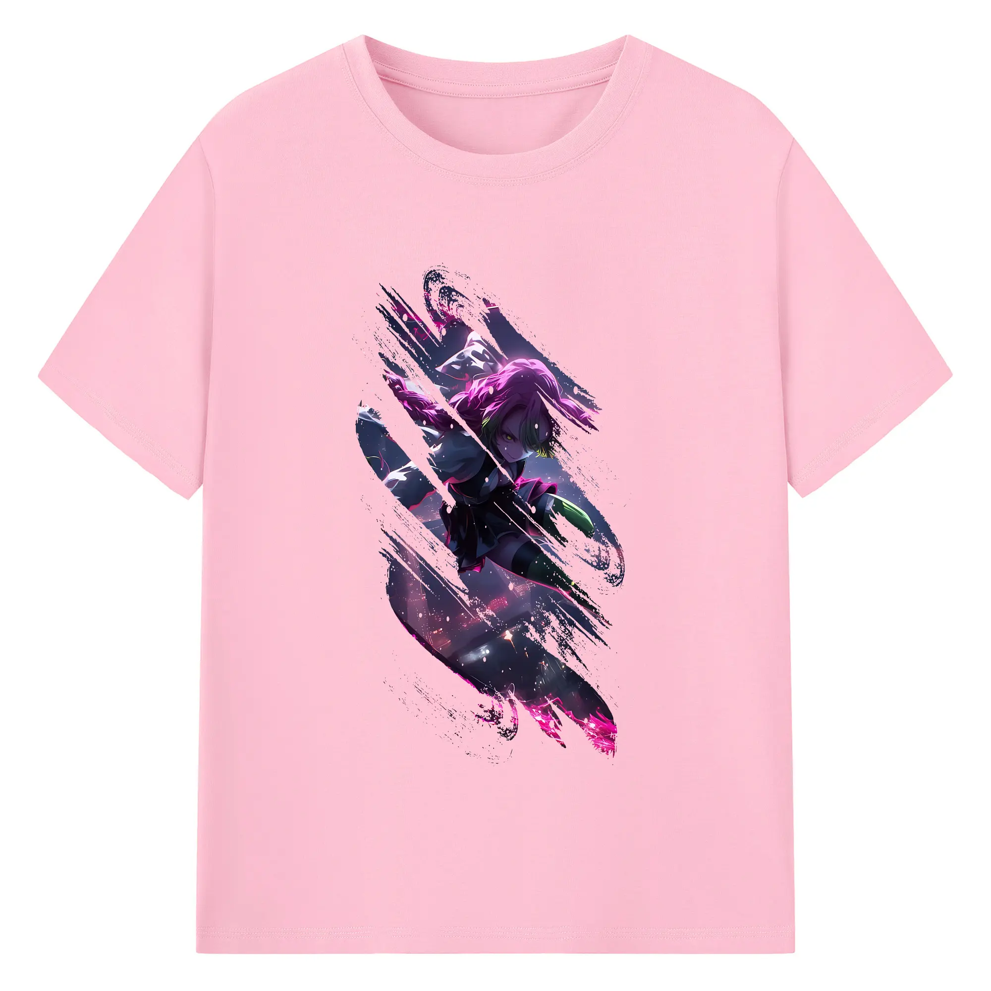 鬼滅の刃 グッズ,甘露寺 蜜璃 - 綿100% 半袖Tシャツ ・ バックプリント ・ 快適 通気性 ・ 日常使い 散歩 スポーツ用