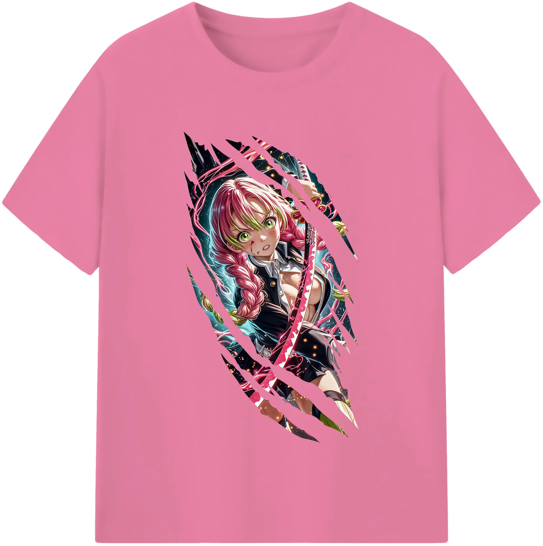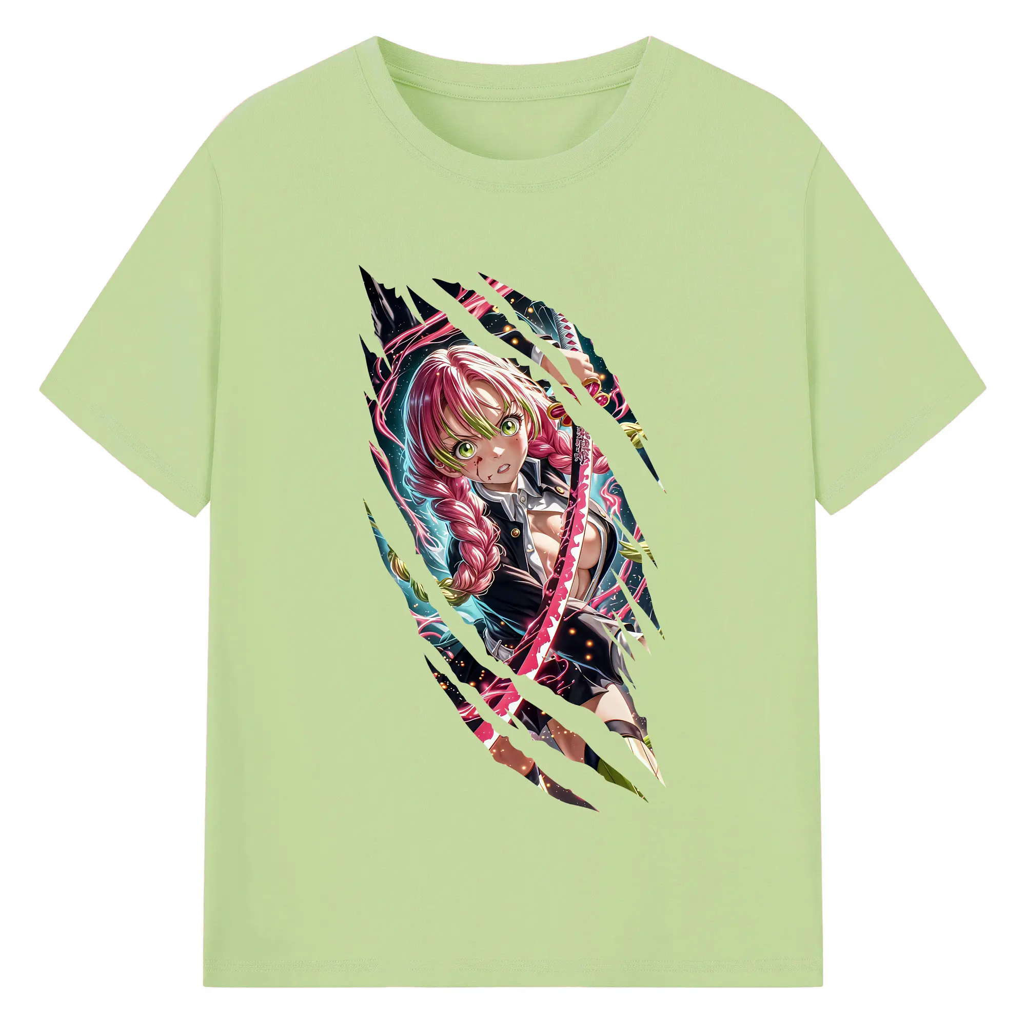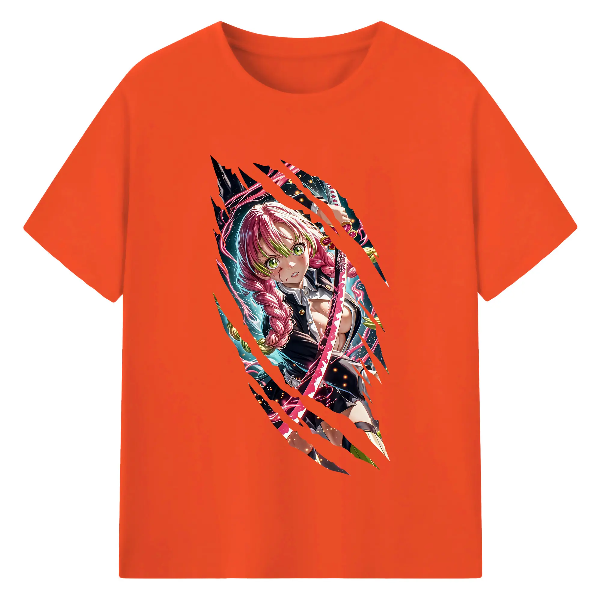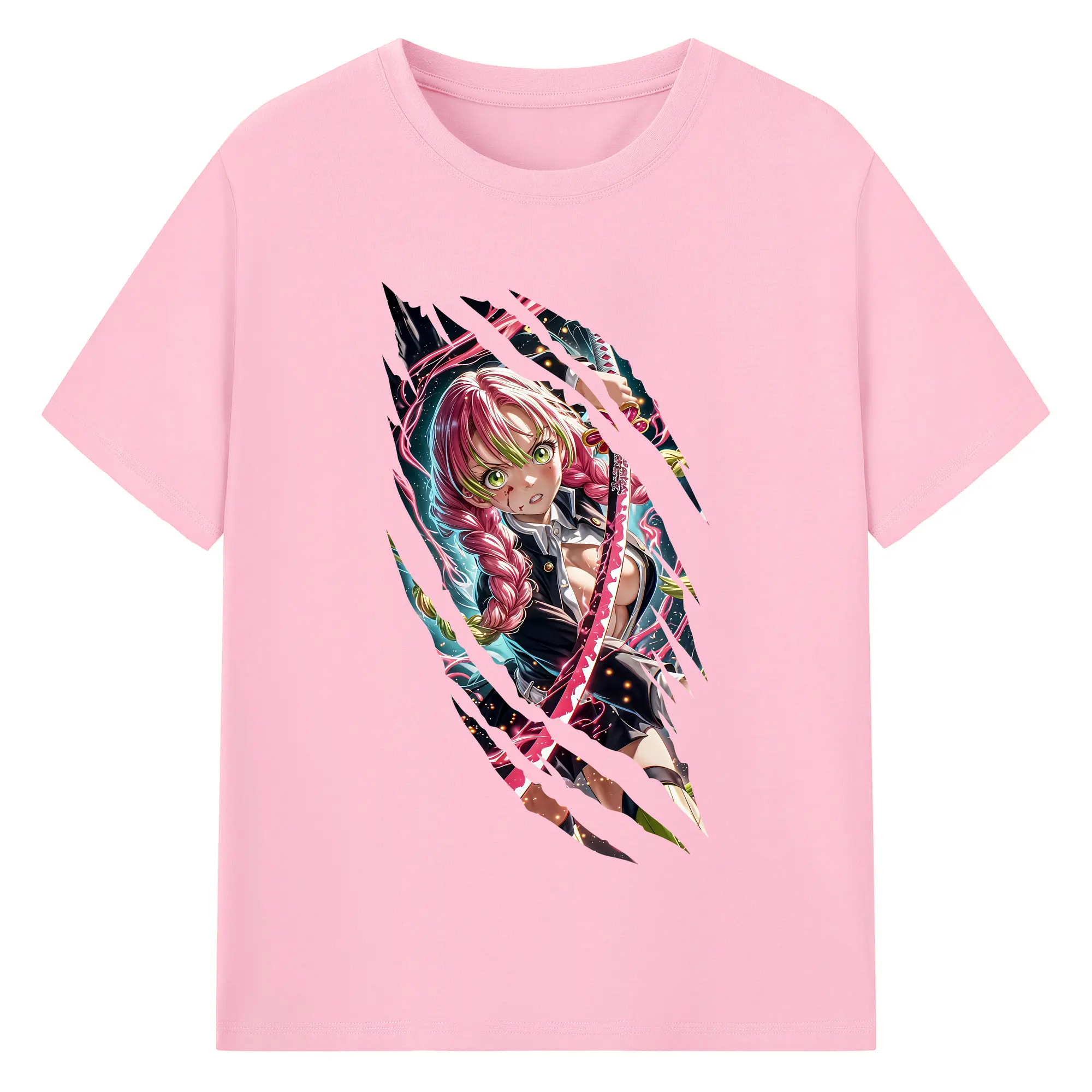 鬼滅の刃 グッズ,甘露寺 蜜璃 - 綿100% 半袖Tシャツ ・ バックプリント ・ 快適 通気性 ・ 日常使い 散歩 スポーツ用