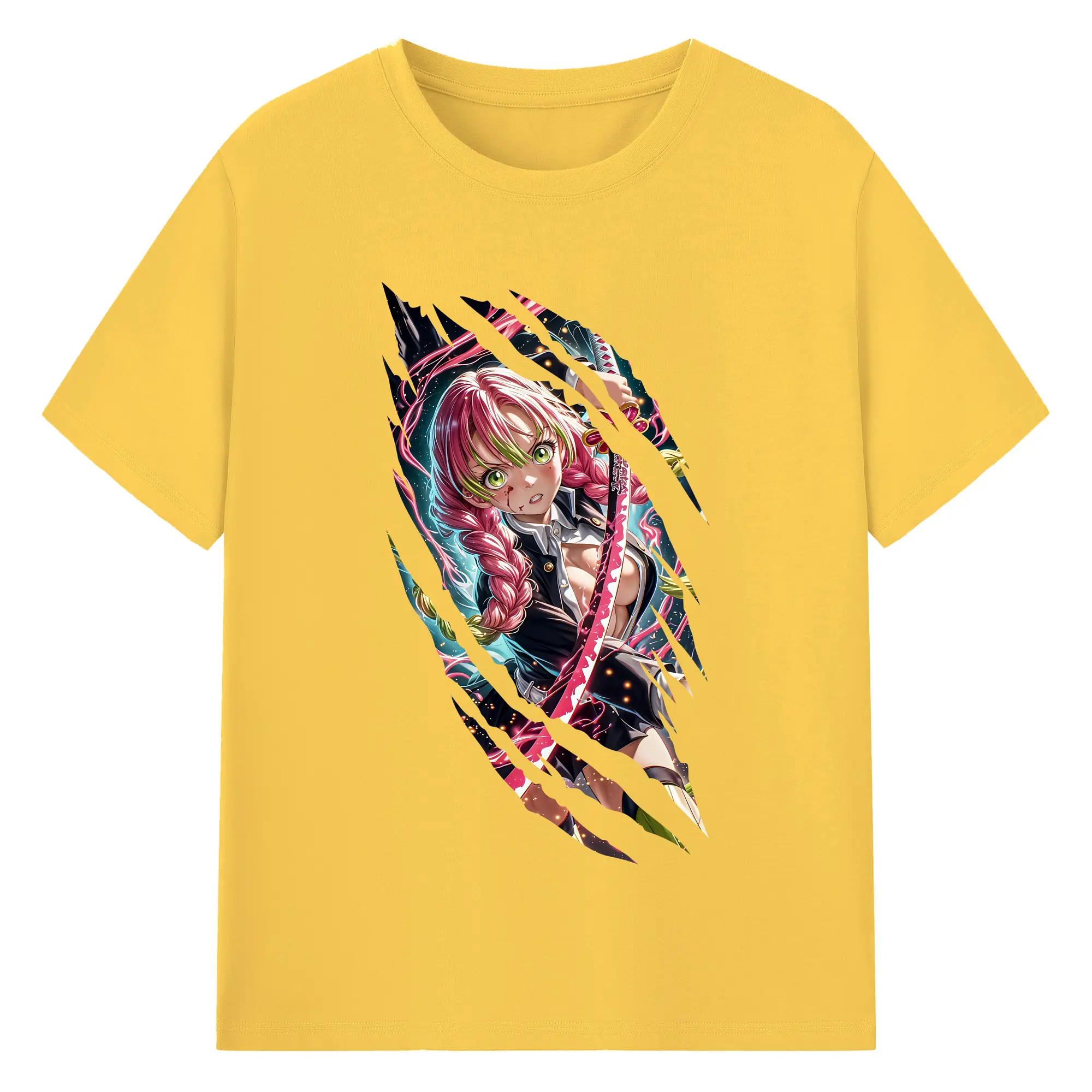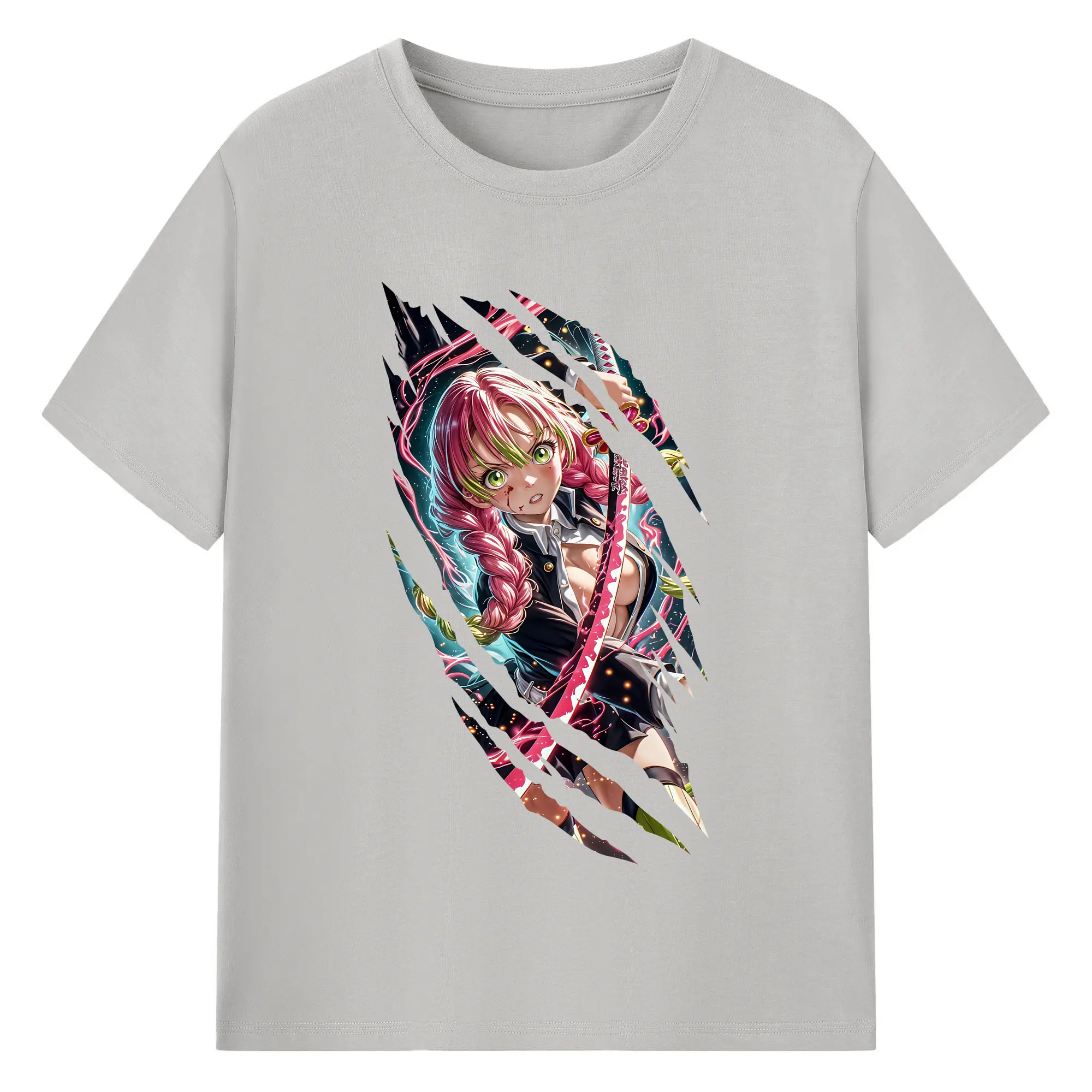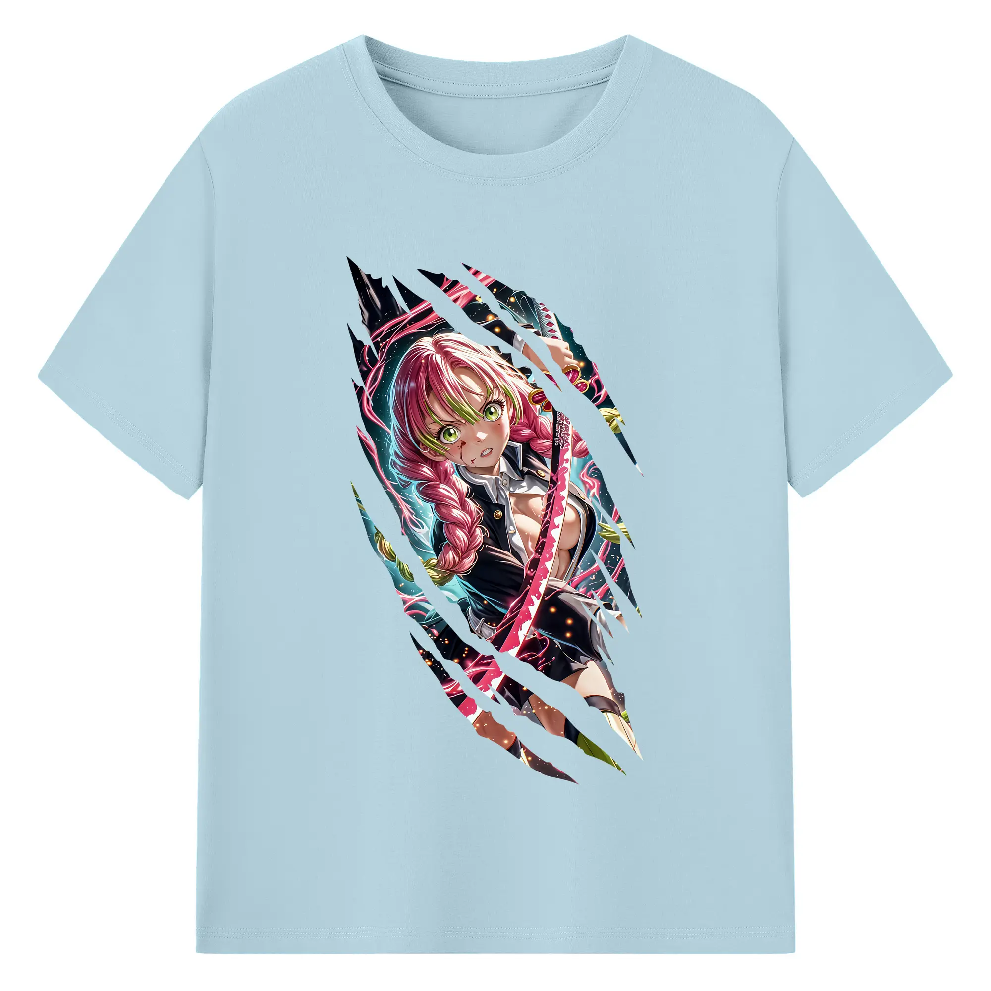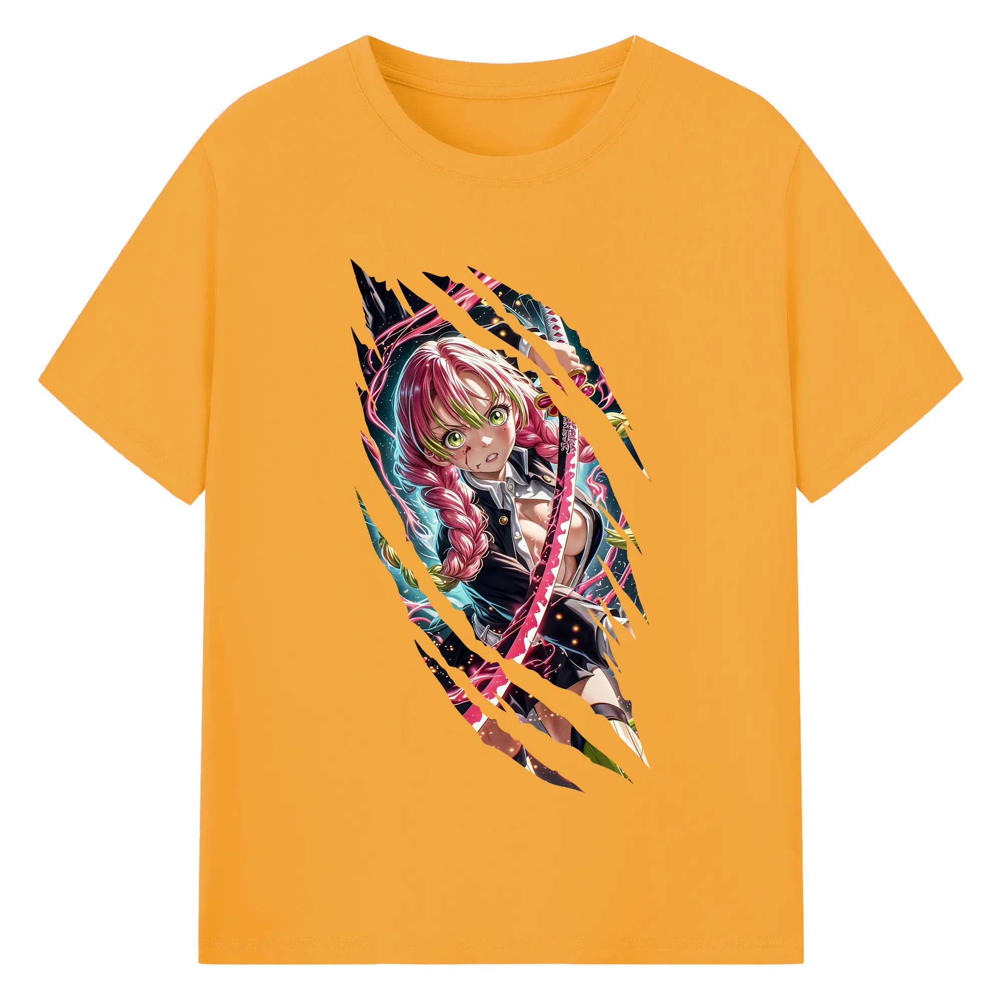 鬼滅の刃 グッズ,甘露寺 蜜璃 - 綿100% 半袖Tシャツ ・ バックプリント ・ 快適 通気性 ・ 日常使い 散歩 スポーツ用