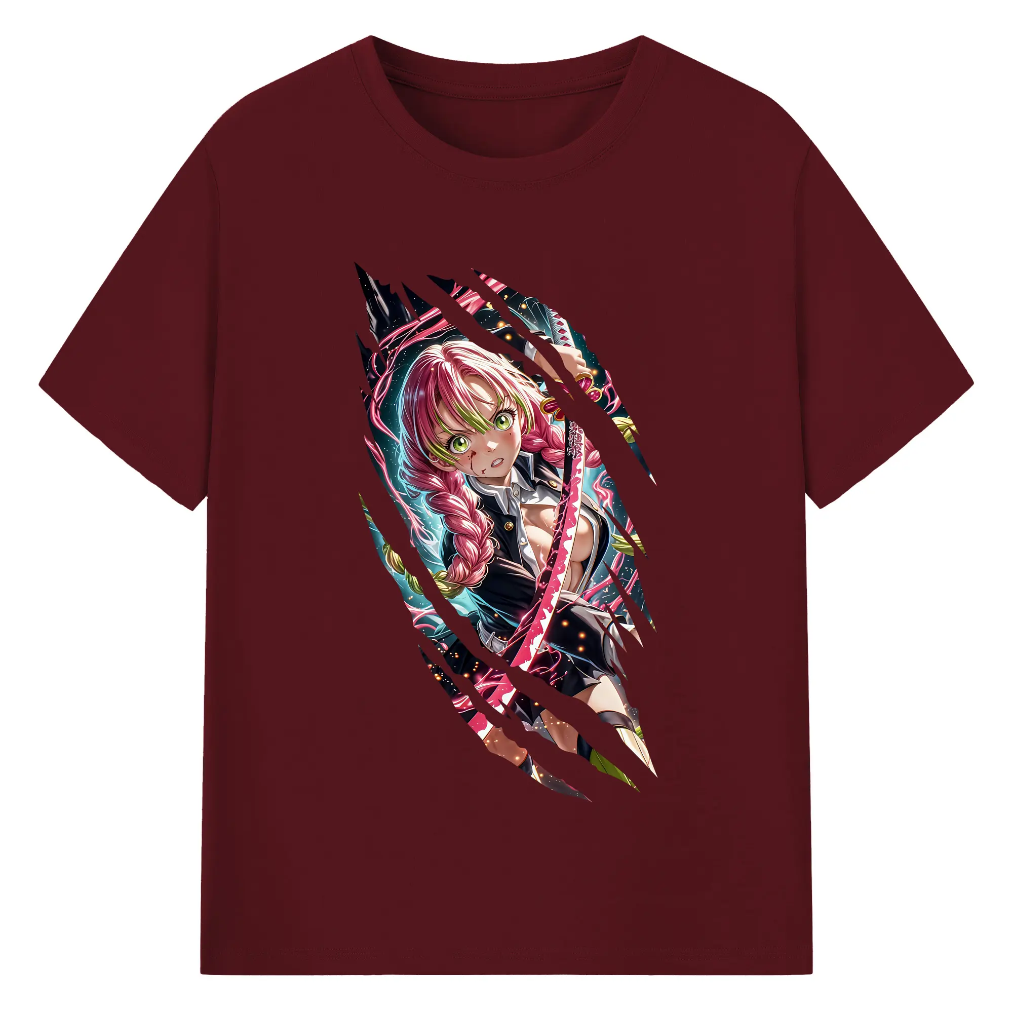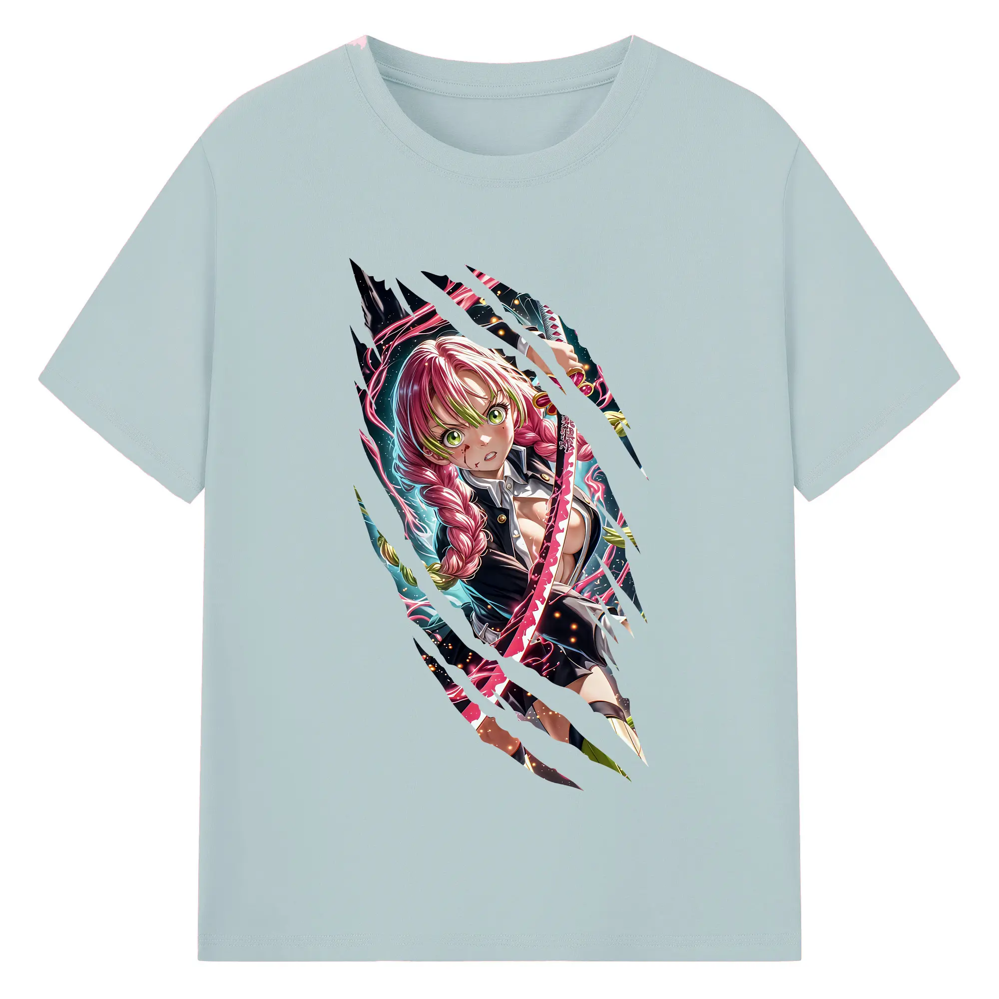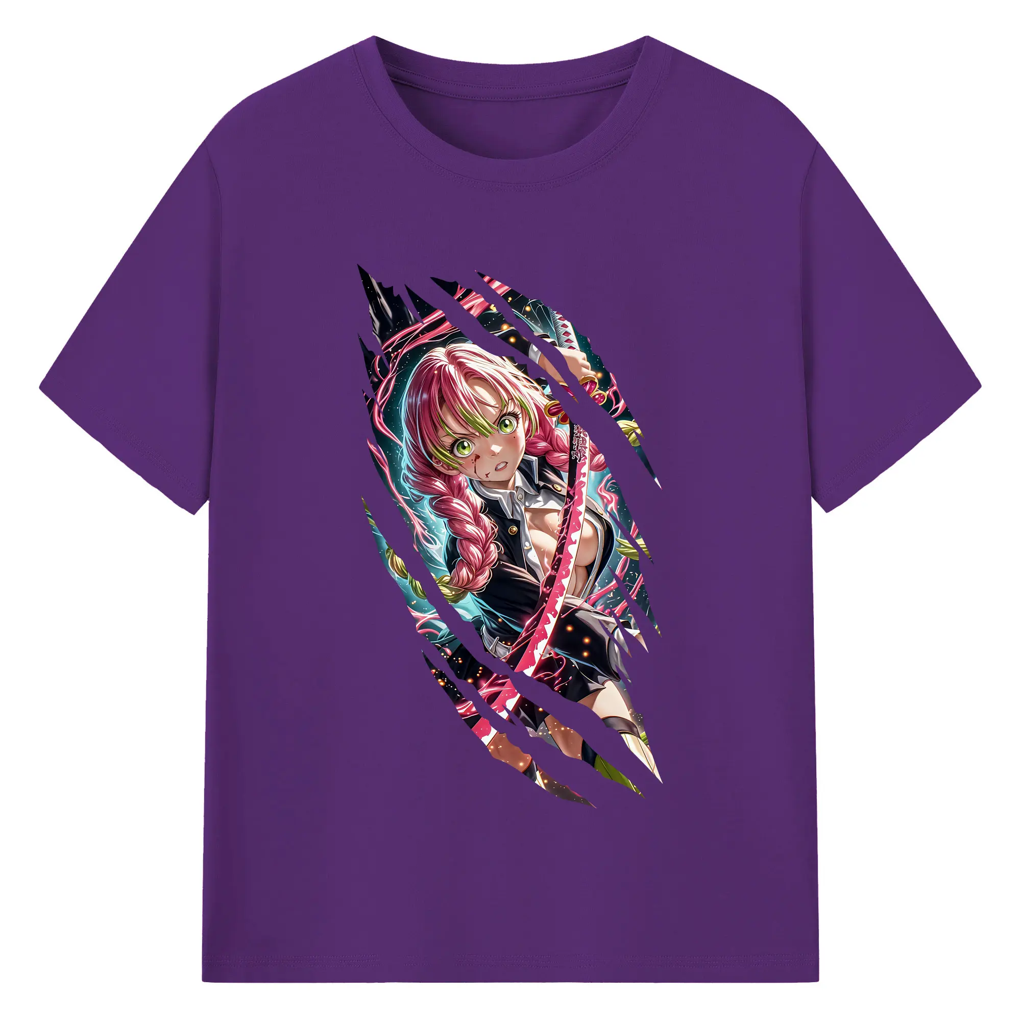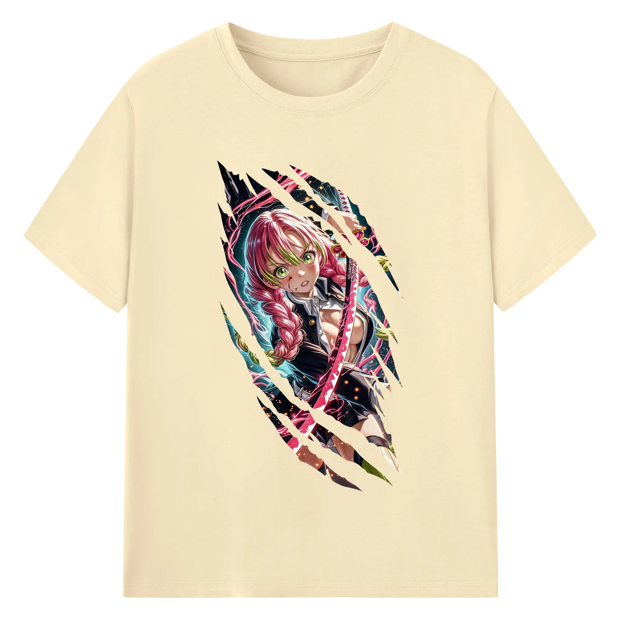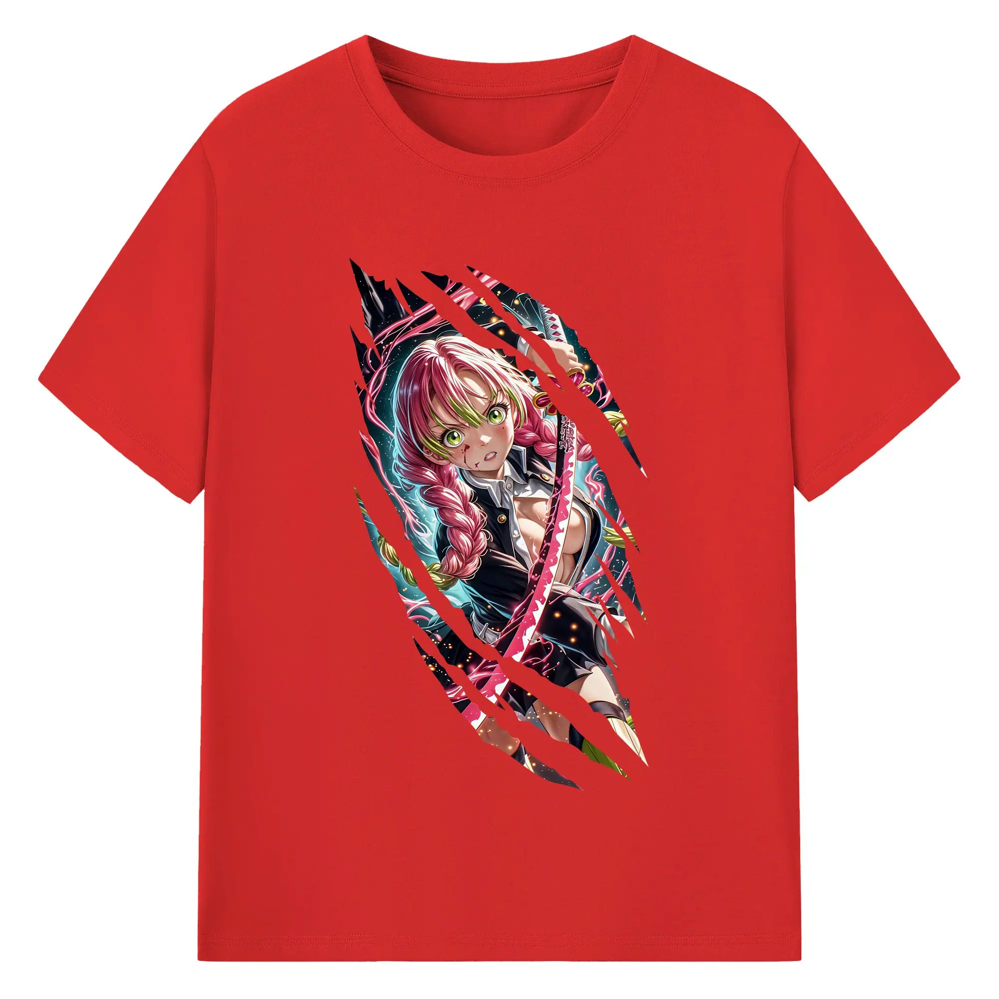 鬼滅の刃 グッズ,甘露寺 蜜璃 - 綿100% 半袖Tシャツ ・ バックプリント ・ 快適 通気性 ・ 日常使い 散歩 スポーツ用