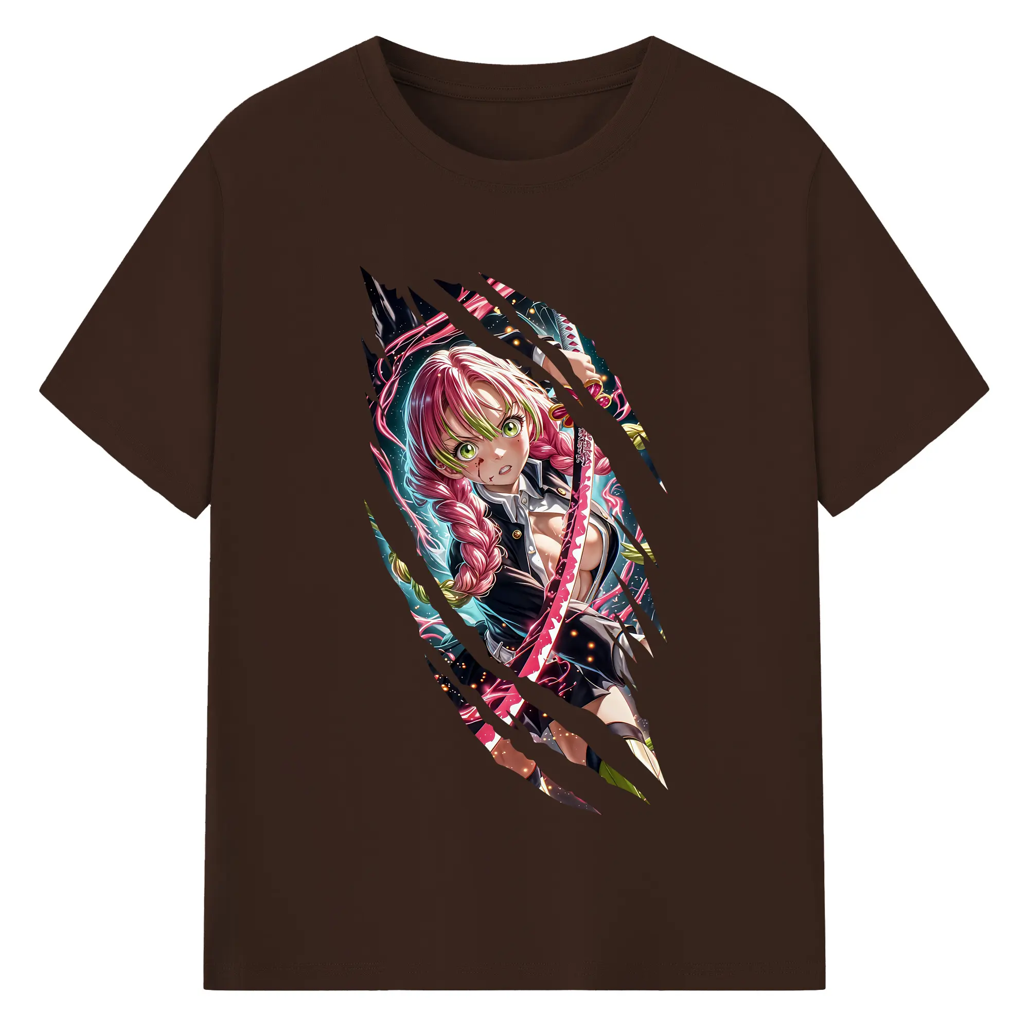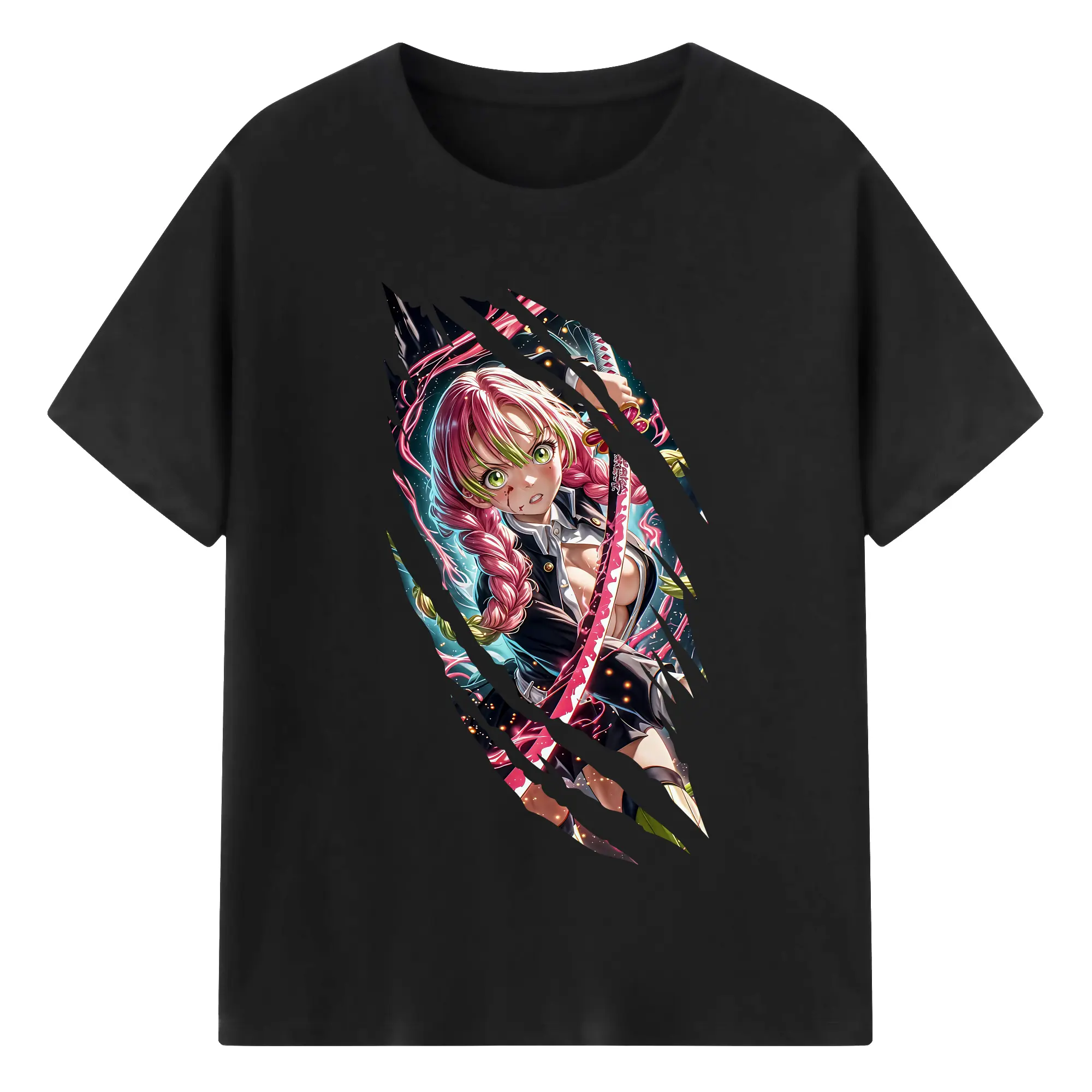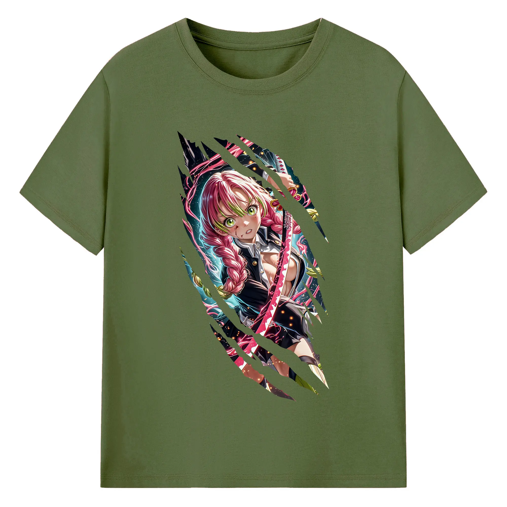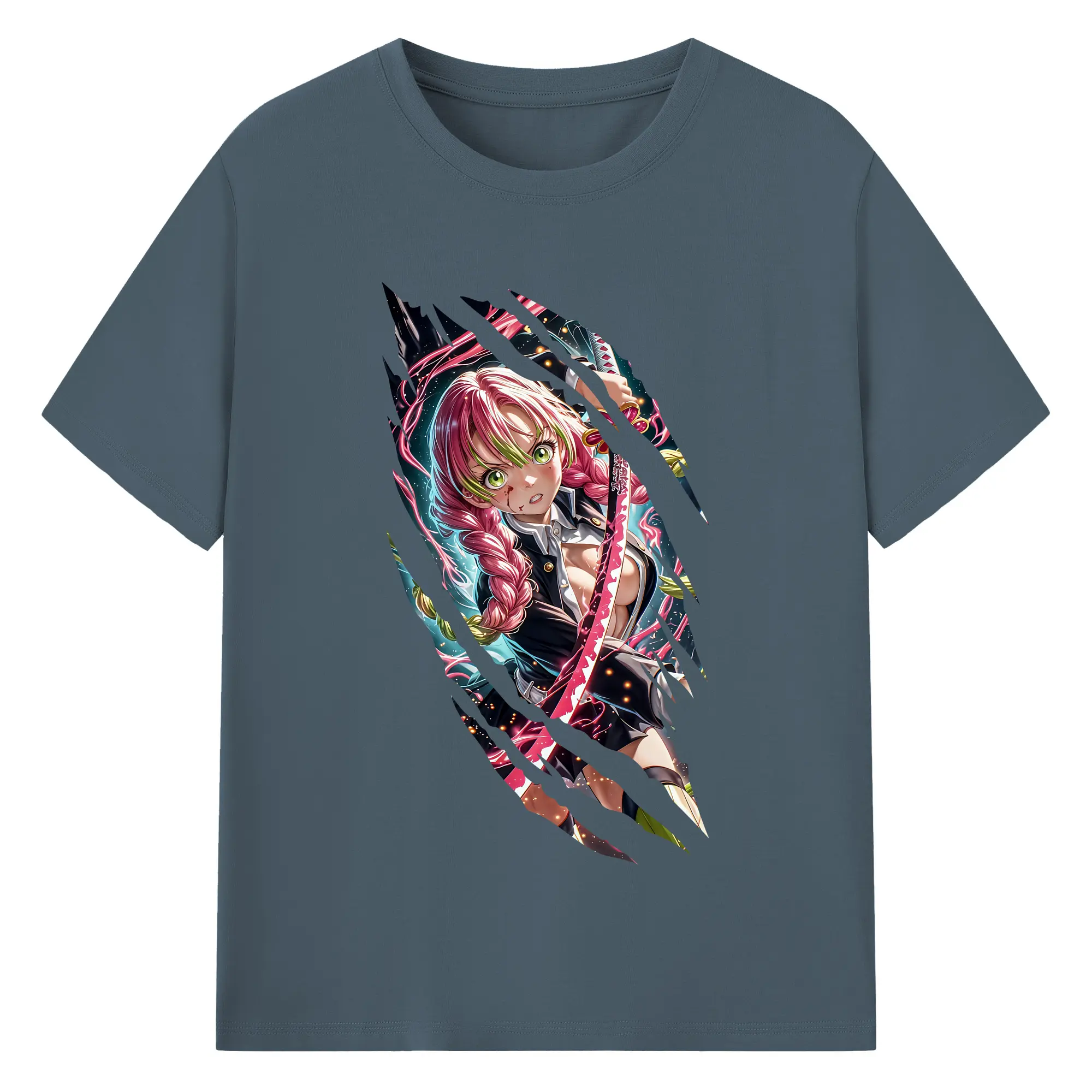 鬼滅の刃 グッズ,甘露寺 蜜璃 - 綿100% 半袖Tシャツ ・ バックプリント ・ 快適 通気性 ・ 日常使い 散歩 スポーツ用