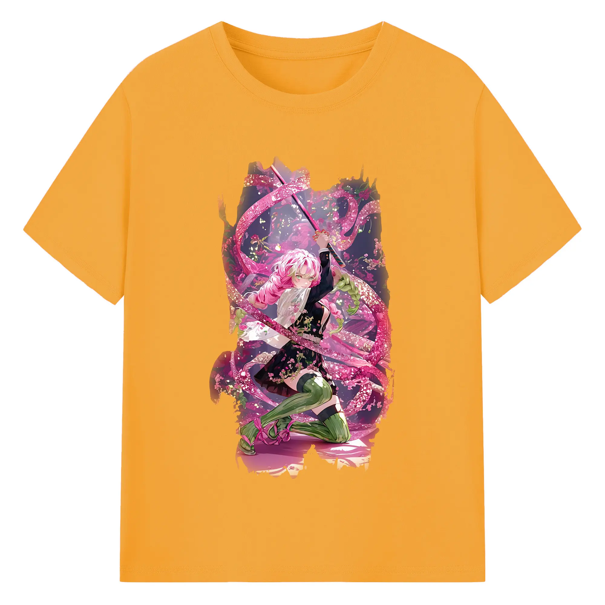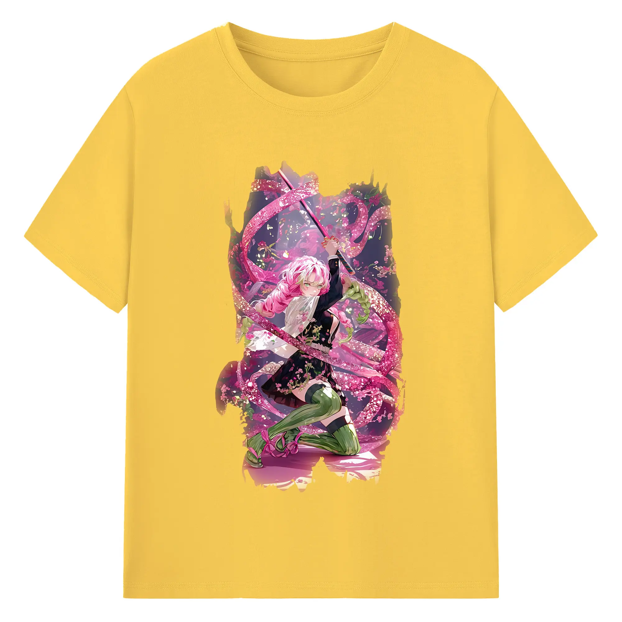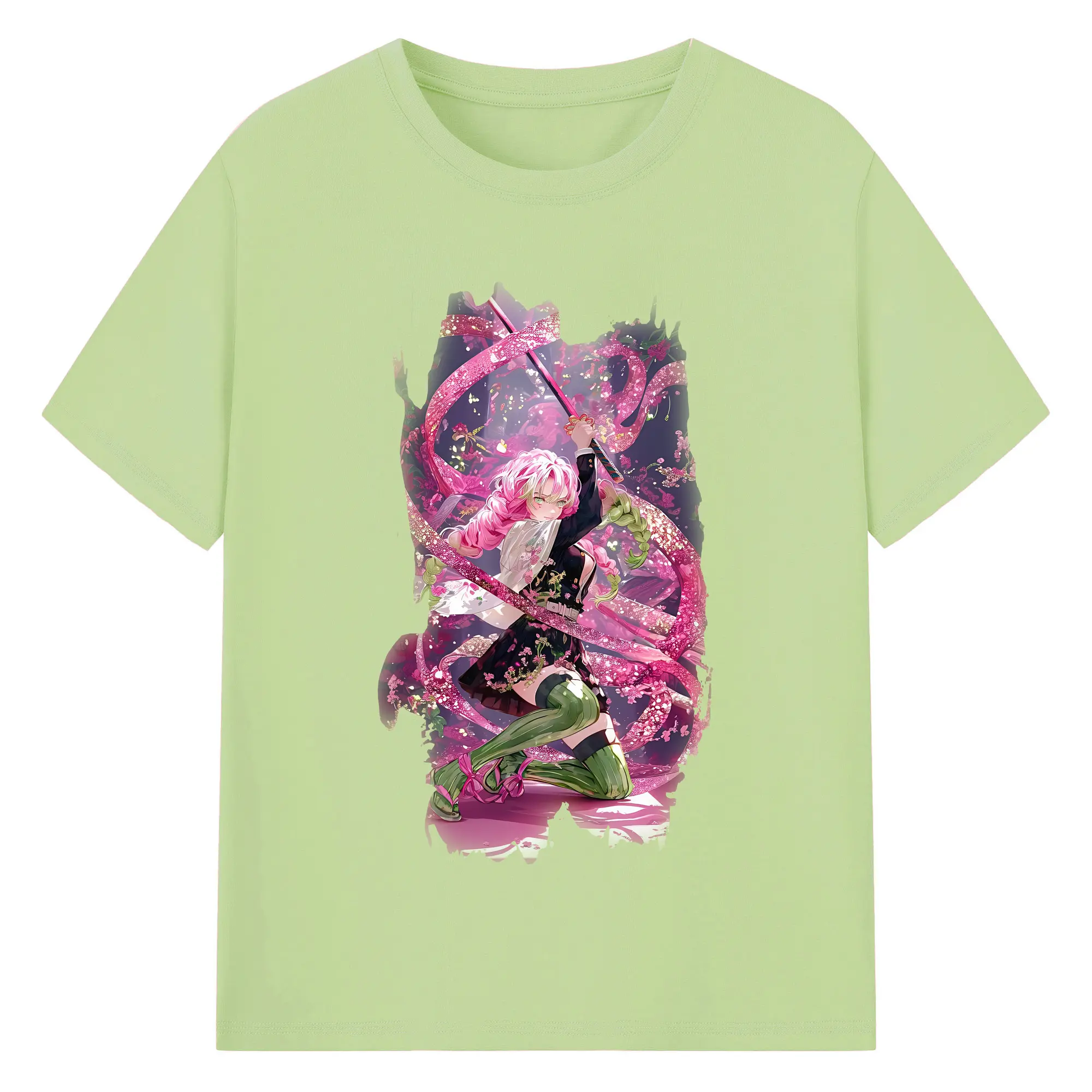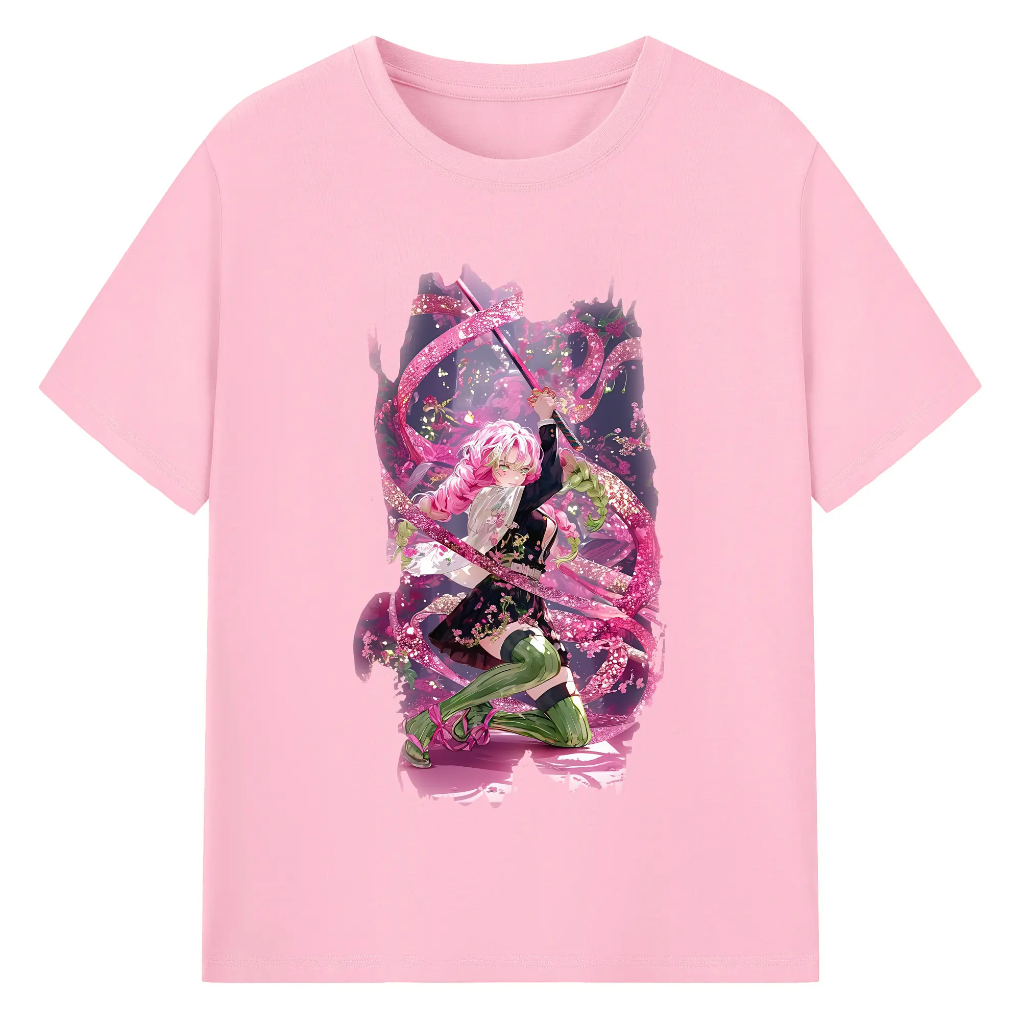 鬼滅の刃 グッズ,甘露寺 蜜璃 - 綿100% 半袖Tシャツ ・ バックプリント ・ 快適 通気性 ・ 日常使い 散歩 スポーツ用