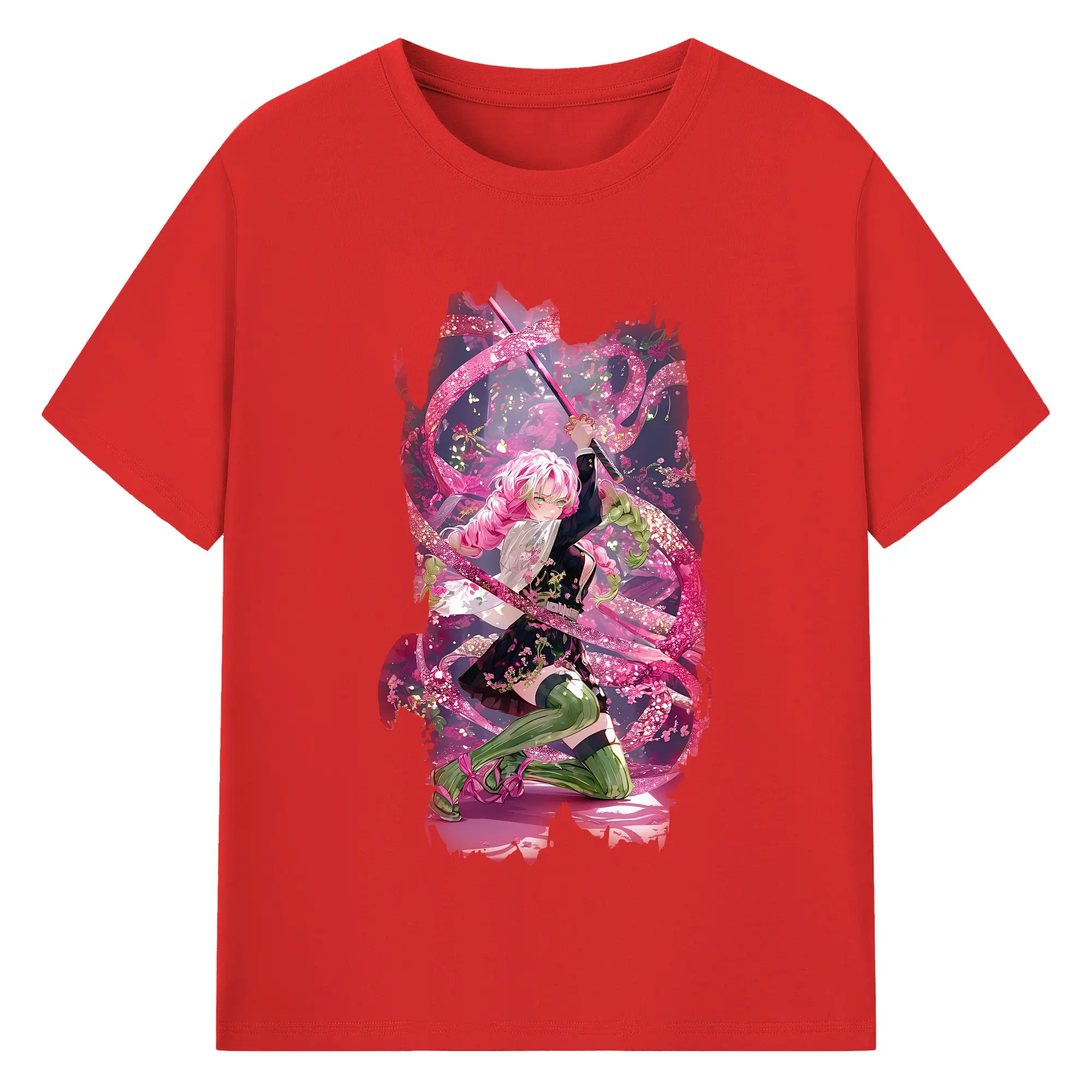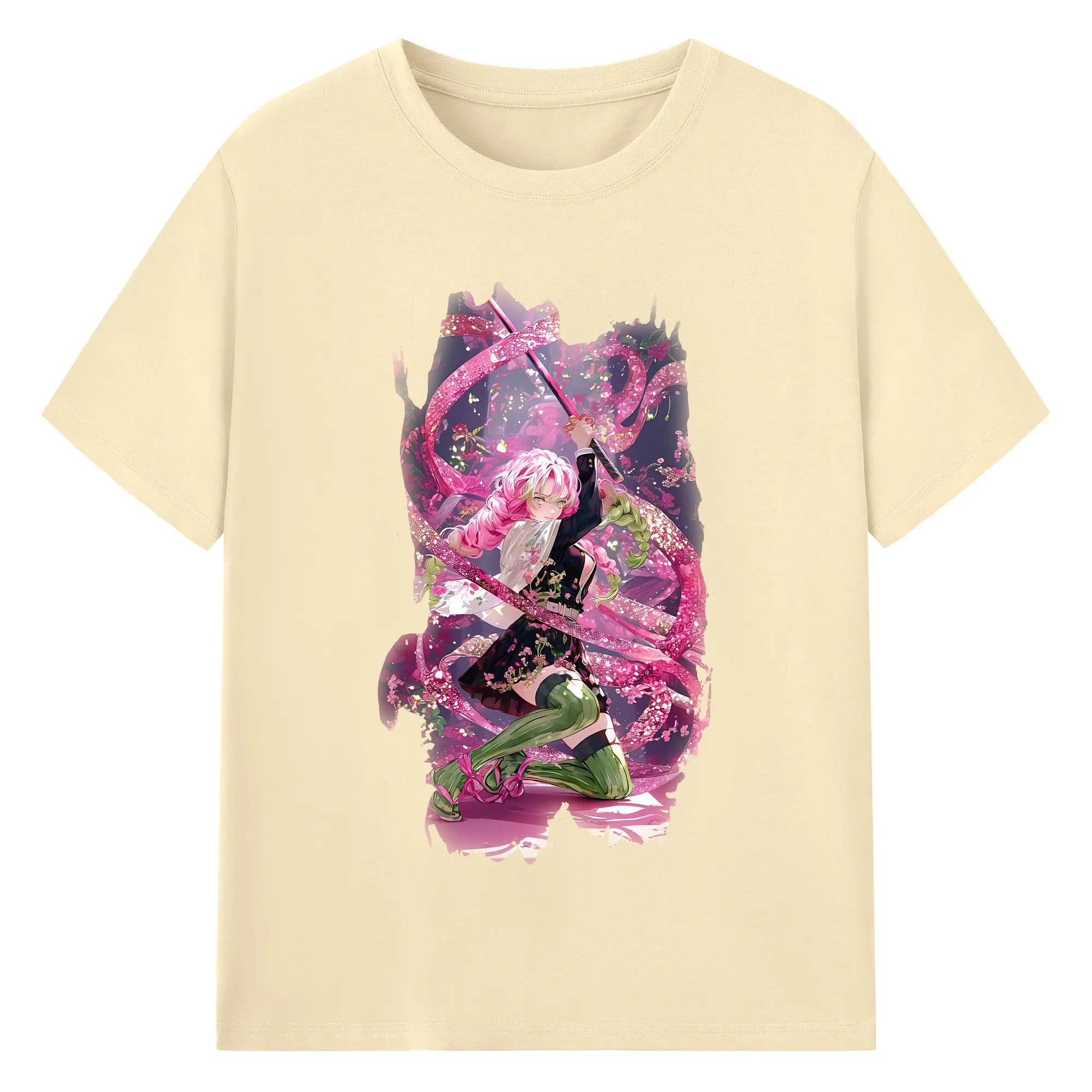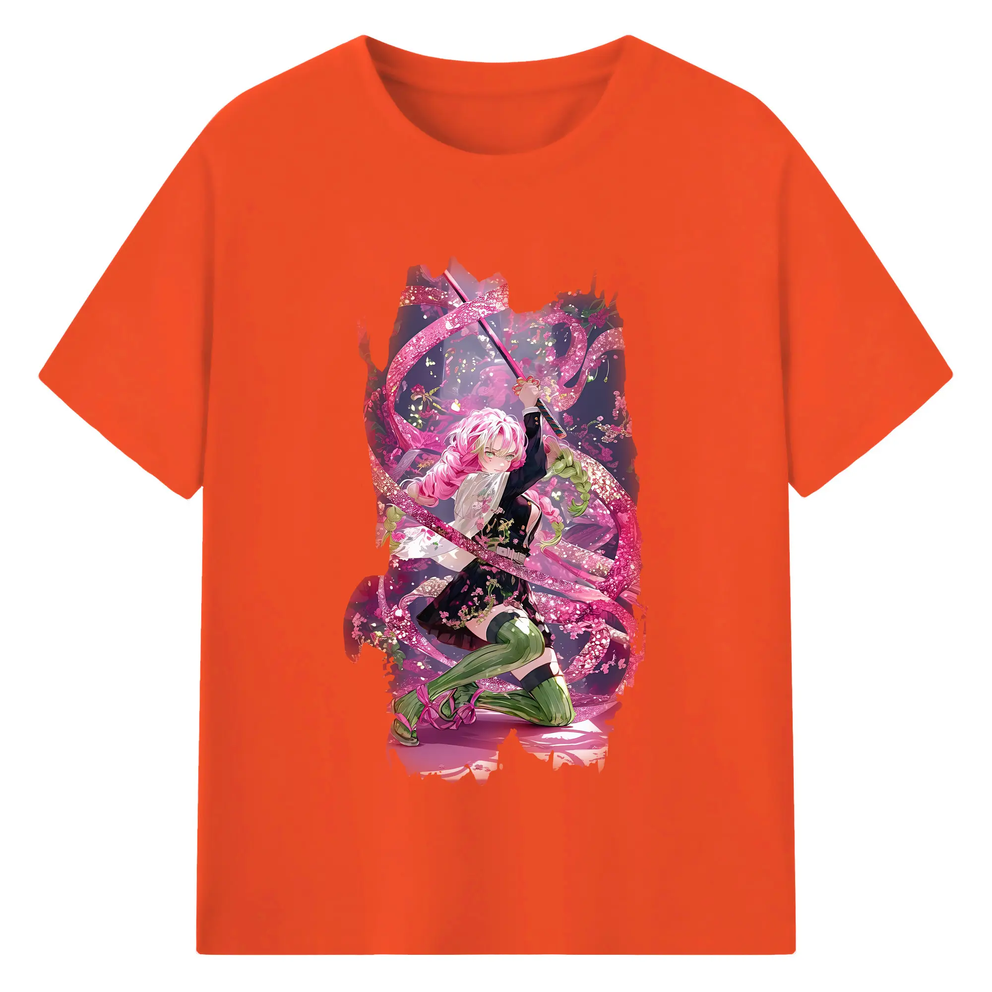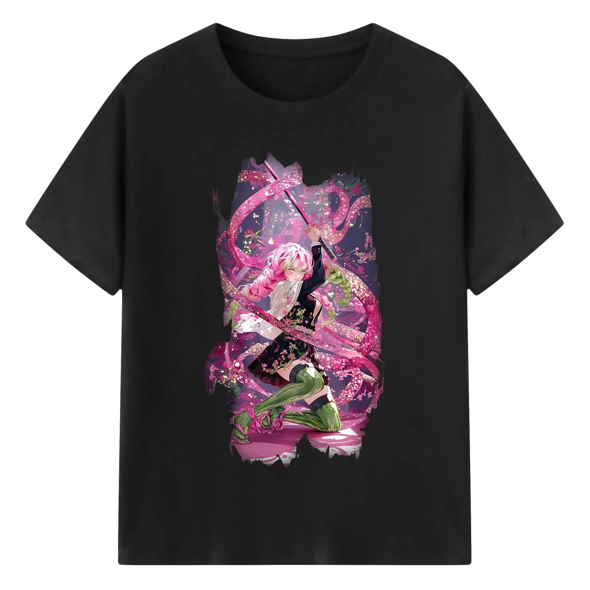 鬼滅の刃 グッズ,甘露寺 蜜璃 - 綿100% 半袖Tシャツ ・ バックプリント ・ 快適 通気性 ・ 日常使い 散歩 スポーツ用