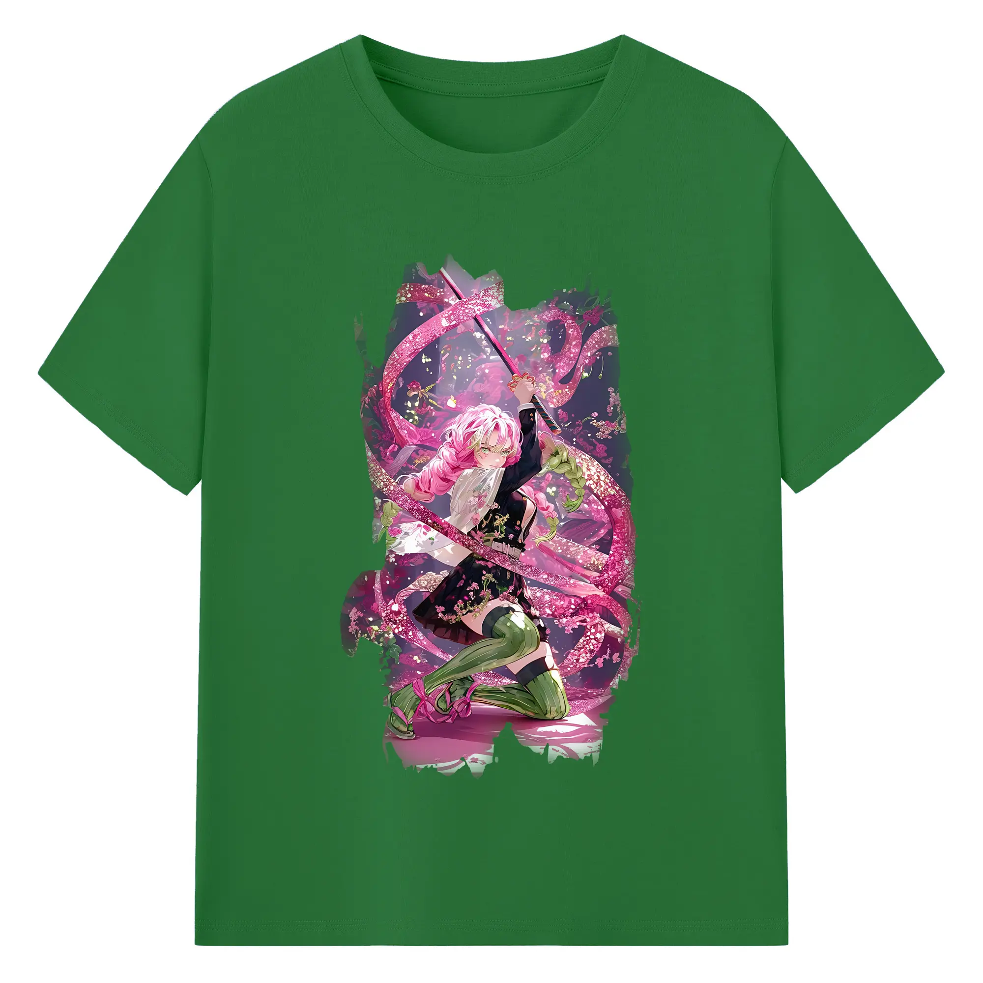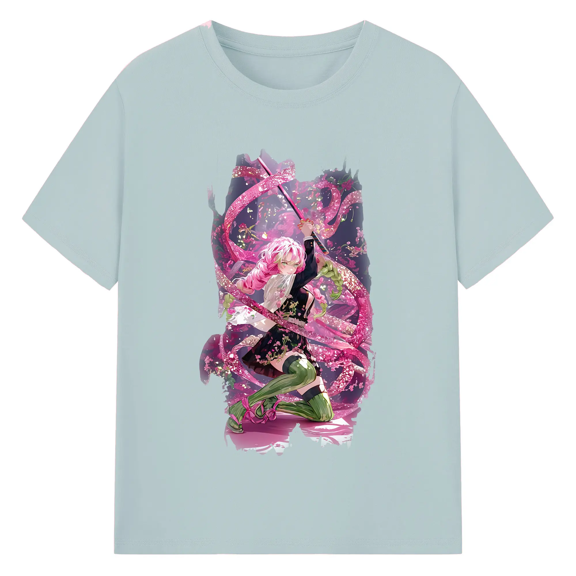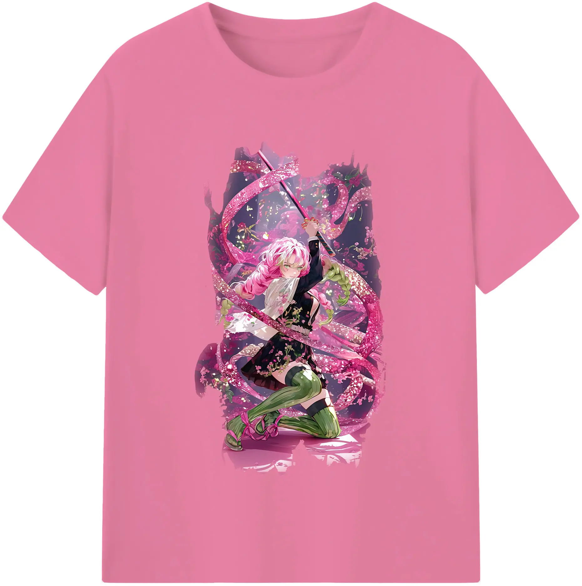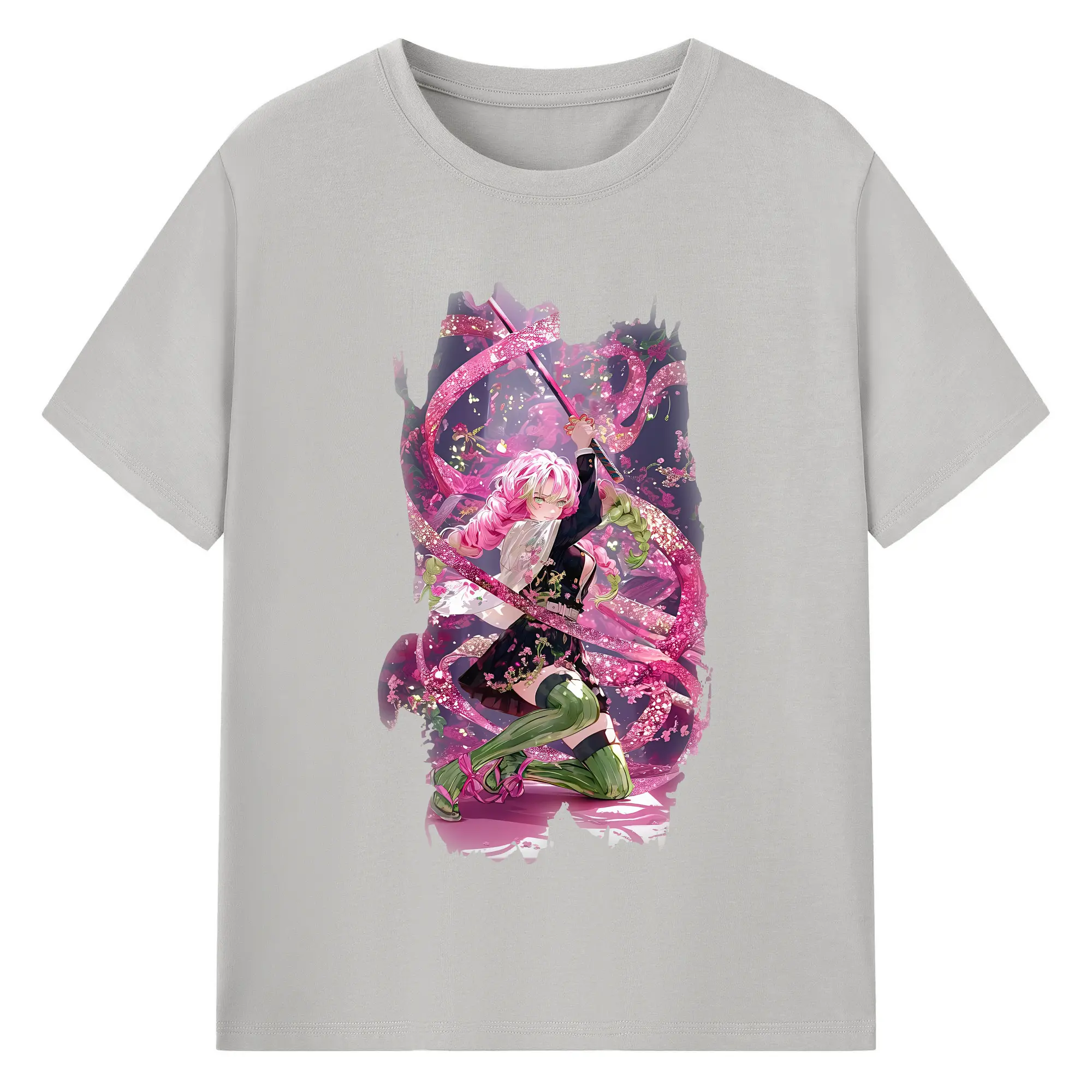 鬼滅の刃 グッズ,甘露寺 蜜璃 - 綿100% 半袖Tシャツ ・ バックプリント ・ 快適 通気性 ・ 日常使い 散歩 スポーツ用