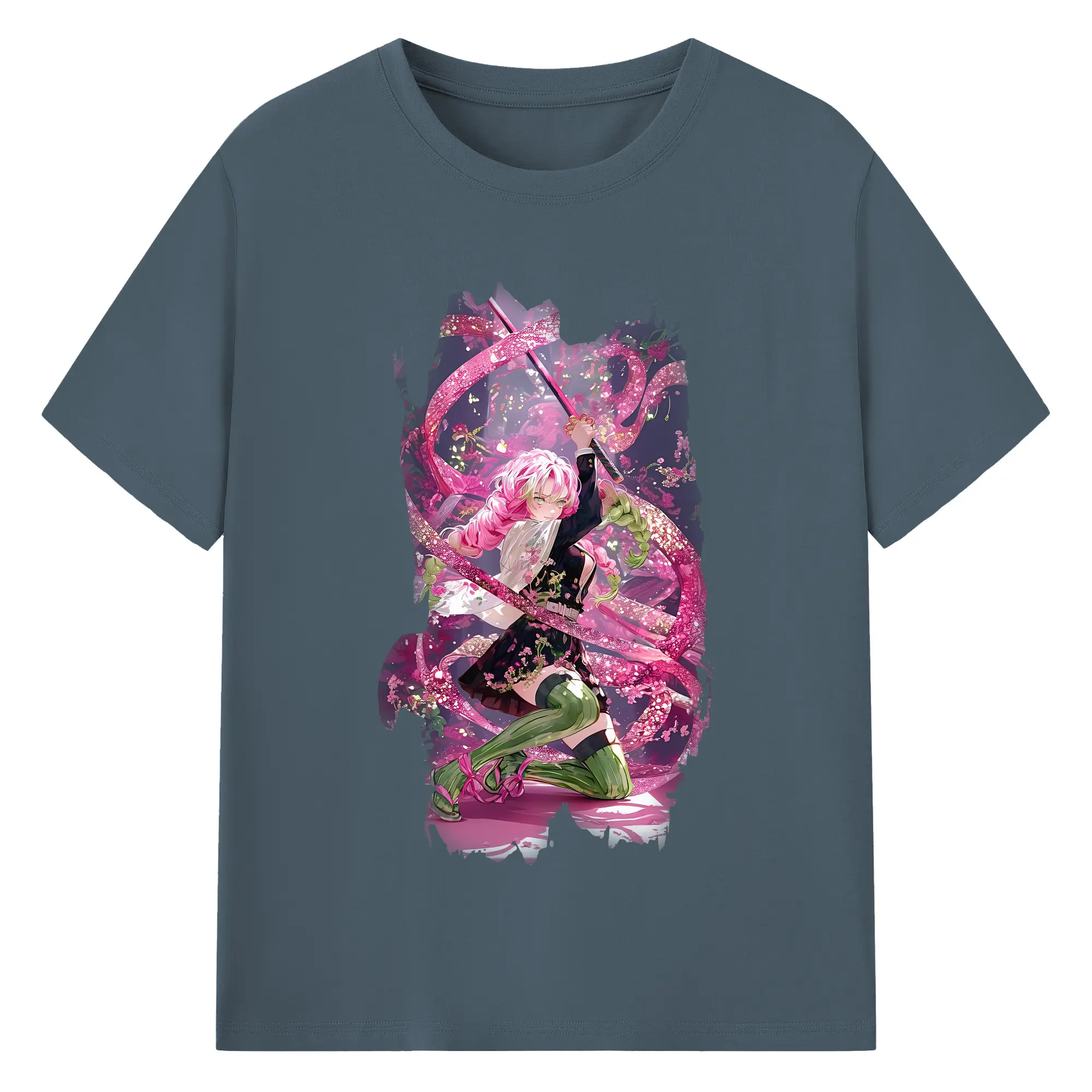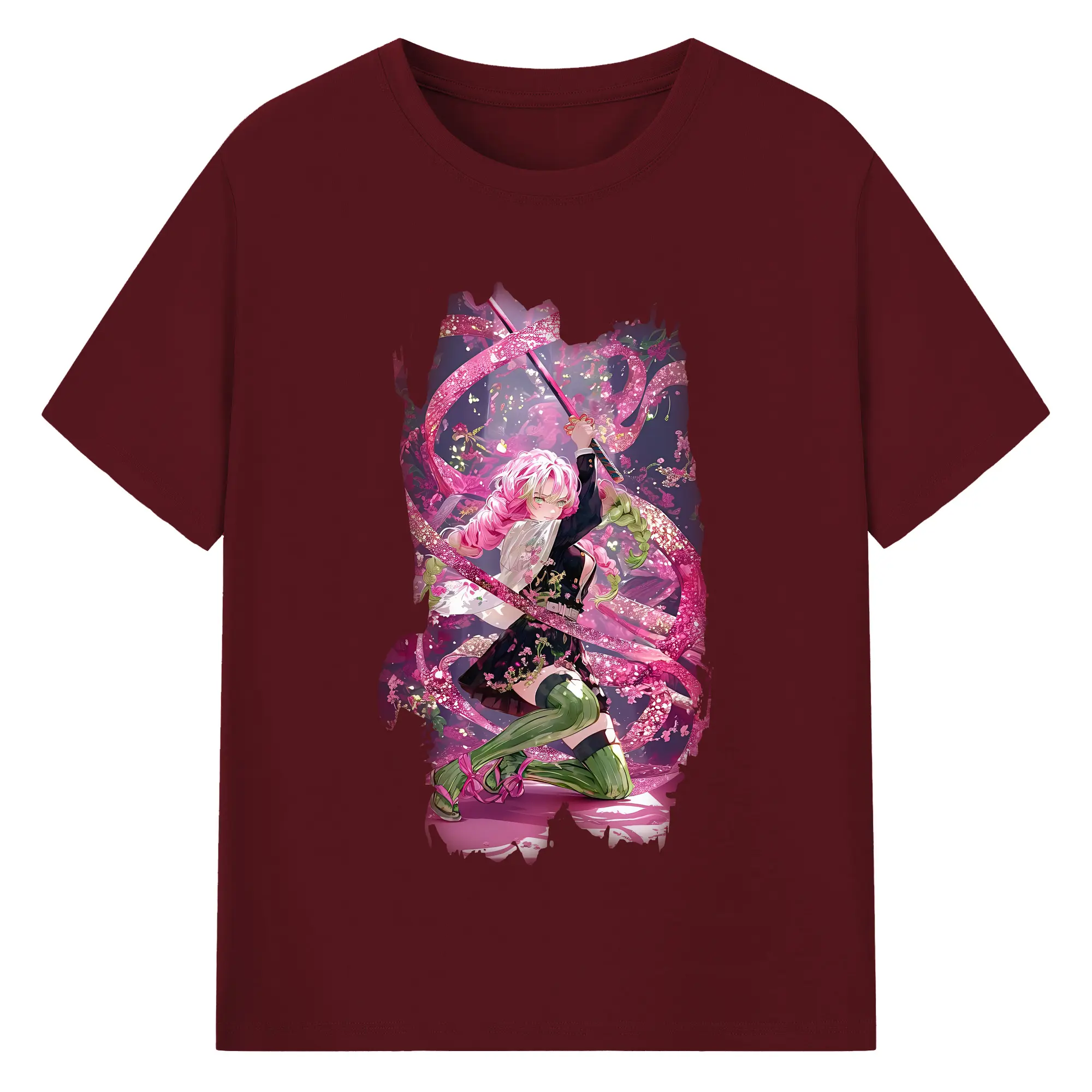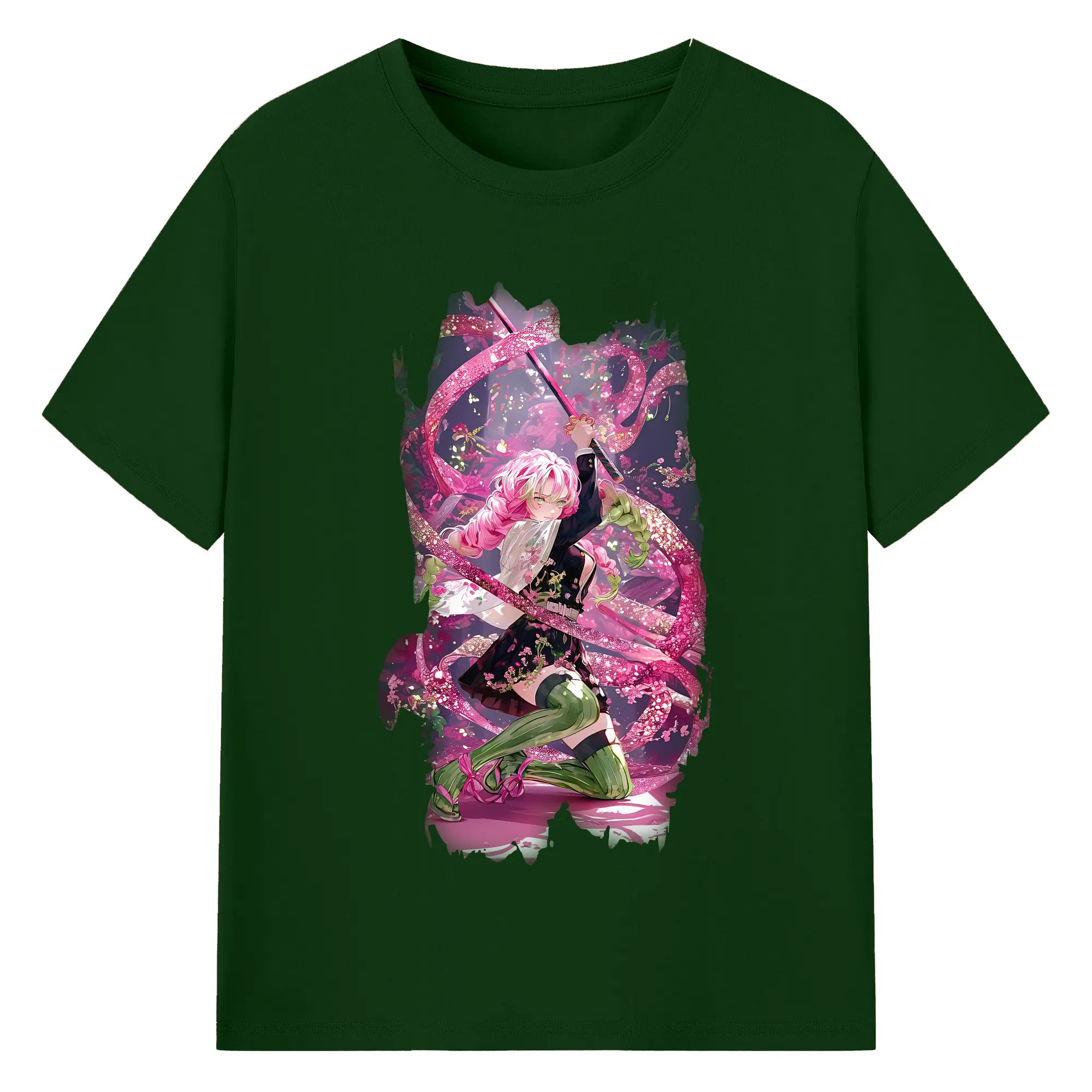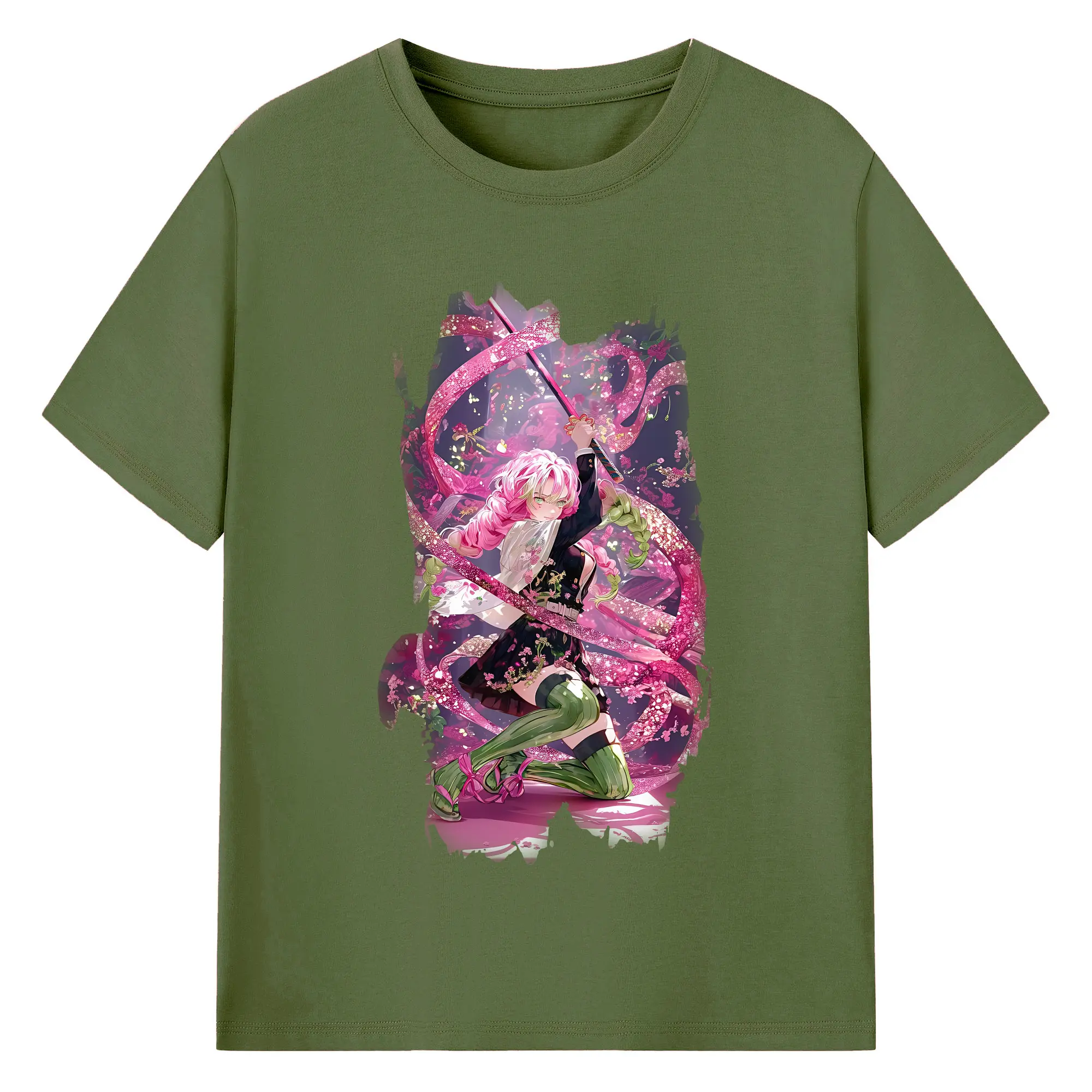 鬼滅の刃 グッズ,甘露寺 蜜璃 - 綿100% 半袖Tシャツ ・ バックプリント ・ 快適 通気性 ・ 日常使い 散歩 スポーツ用