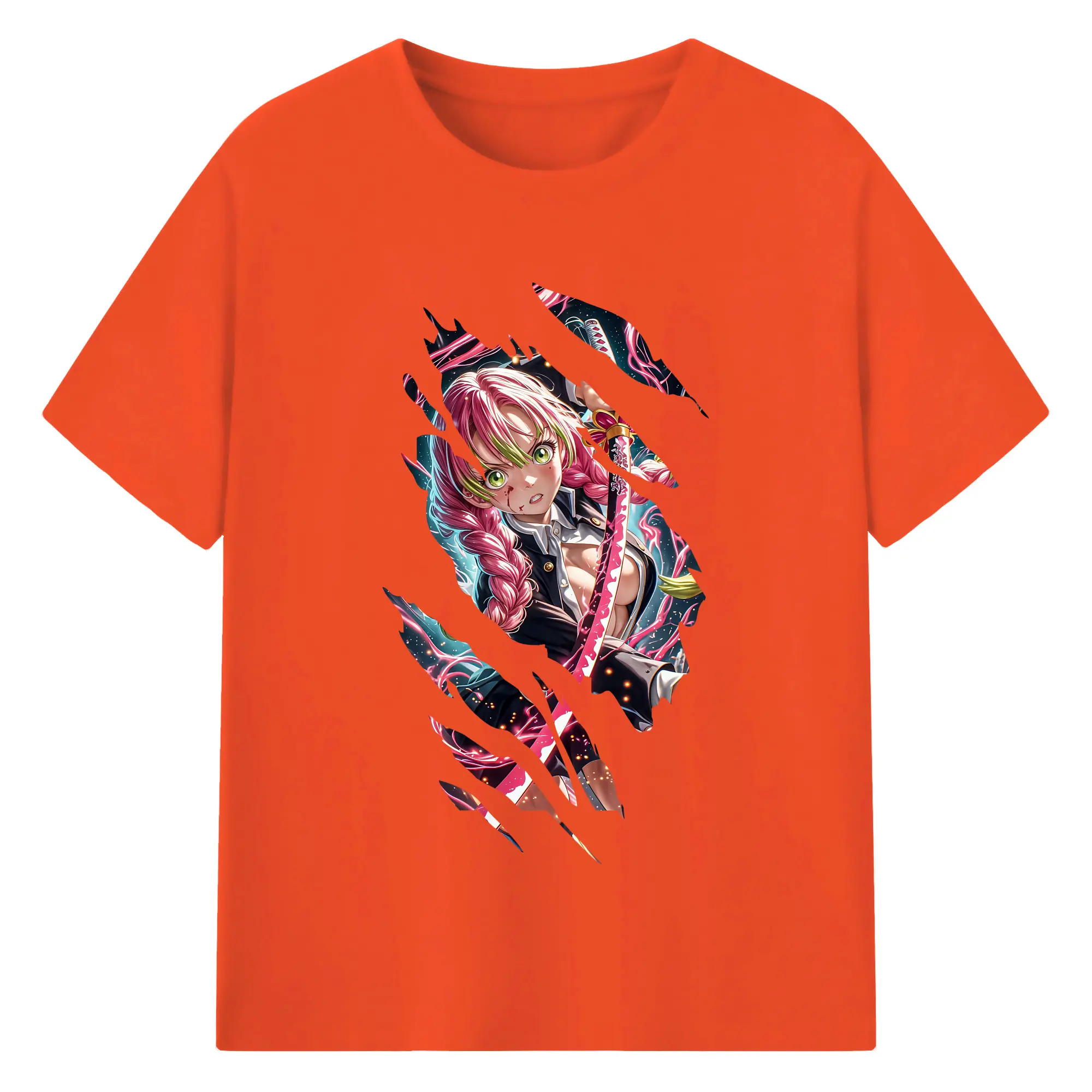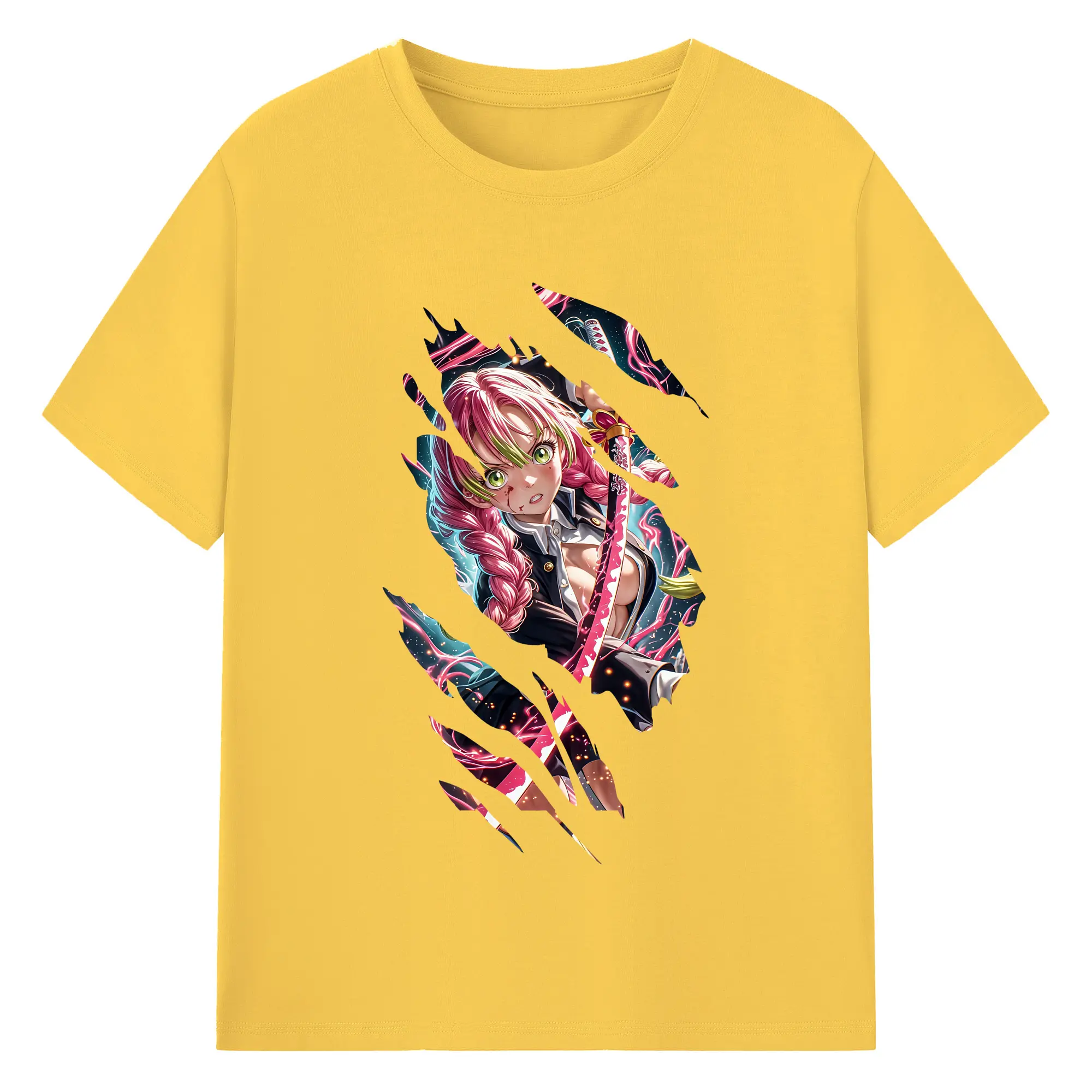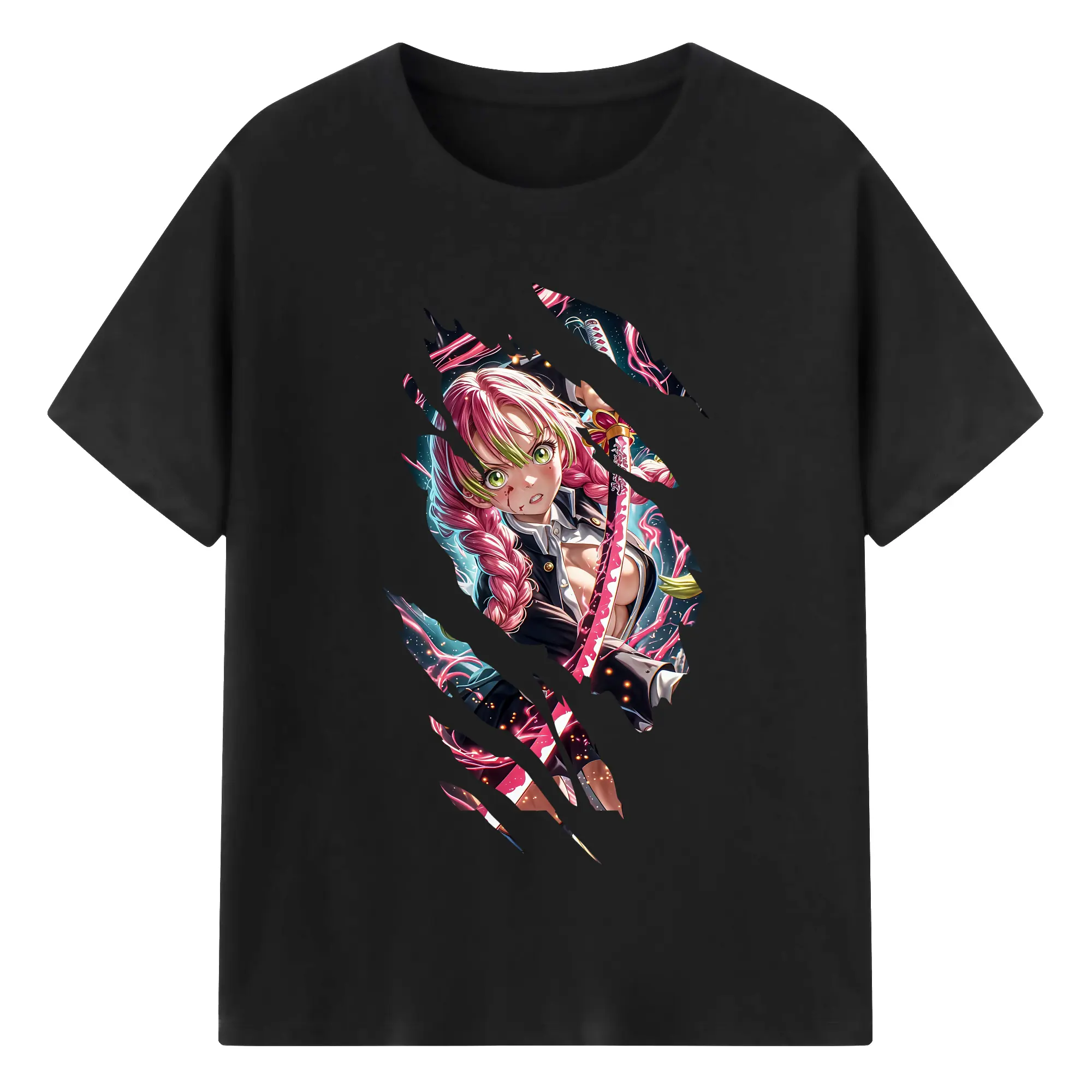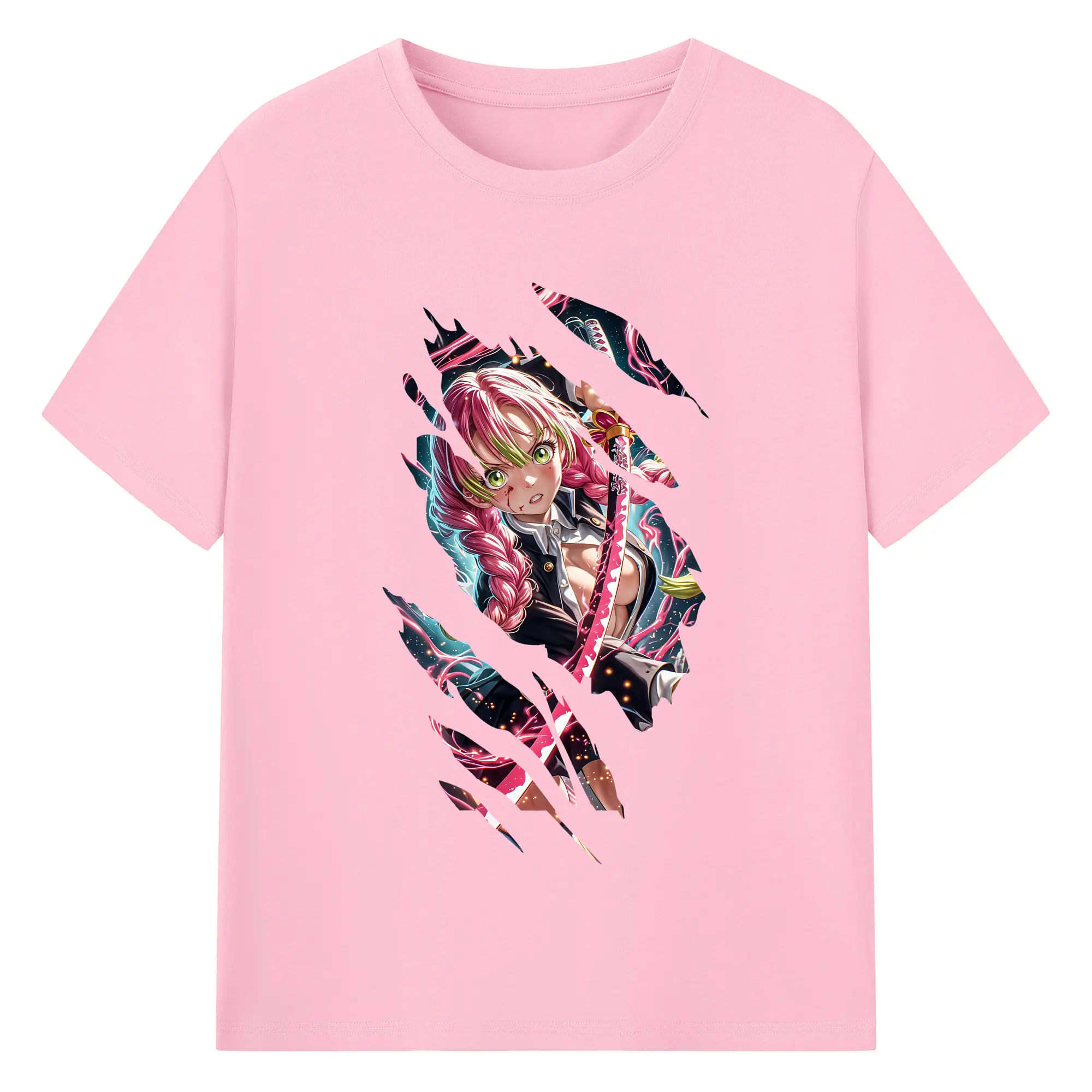 鬼滅の刃 グッズ,甘露寺 蜜璃 - 綿100% 半袖Tシャツ ・ バックプリント ・ 快適 通気性 ・ 日常使い 散歩 スポーツ用