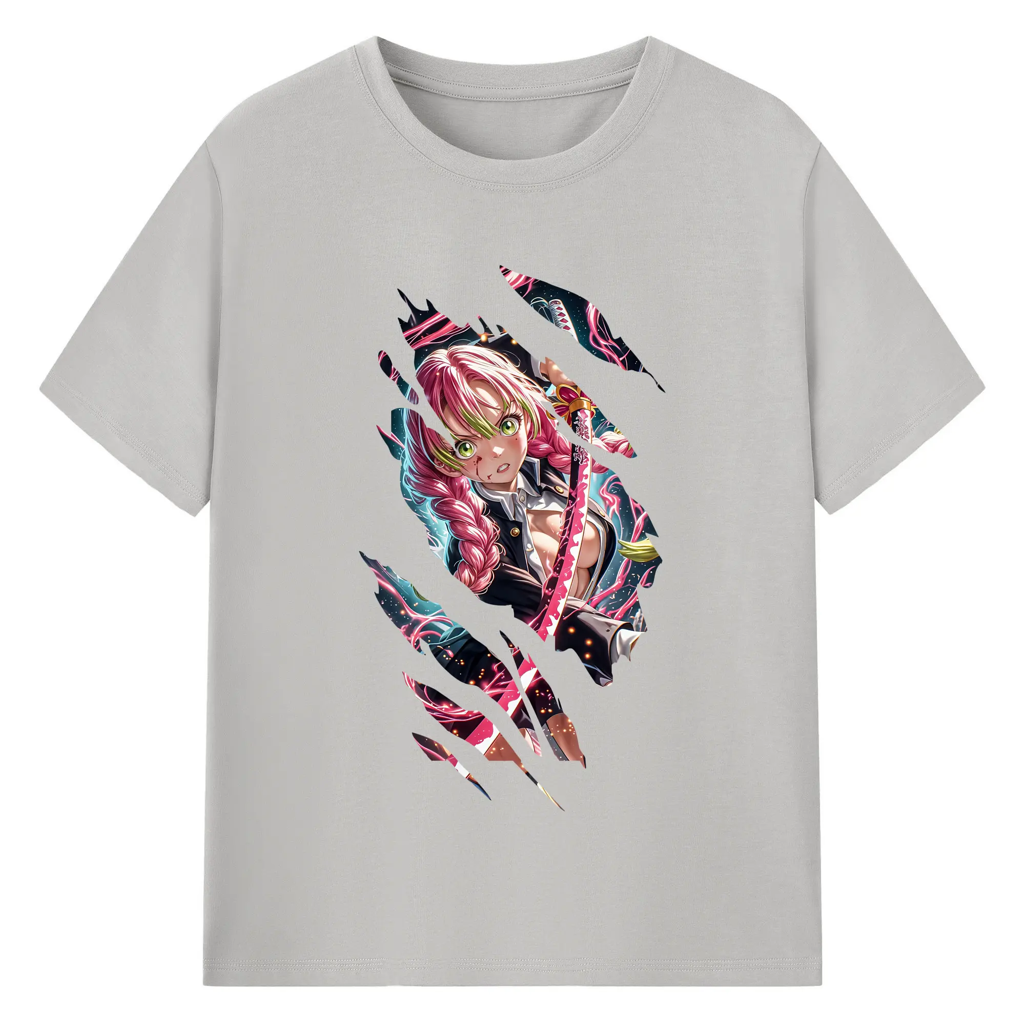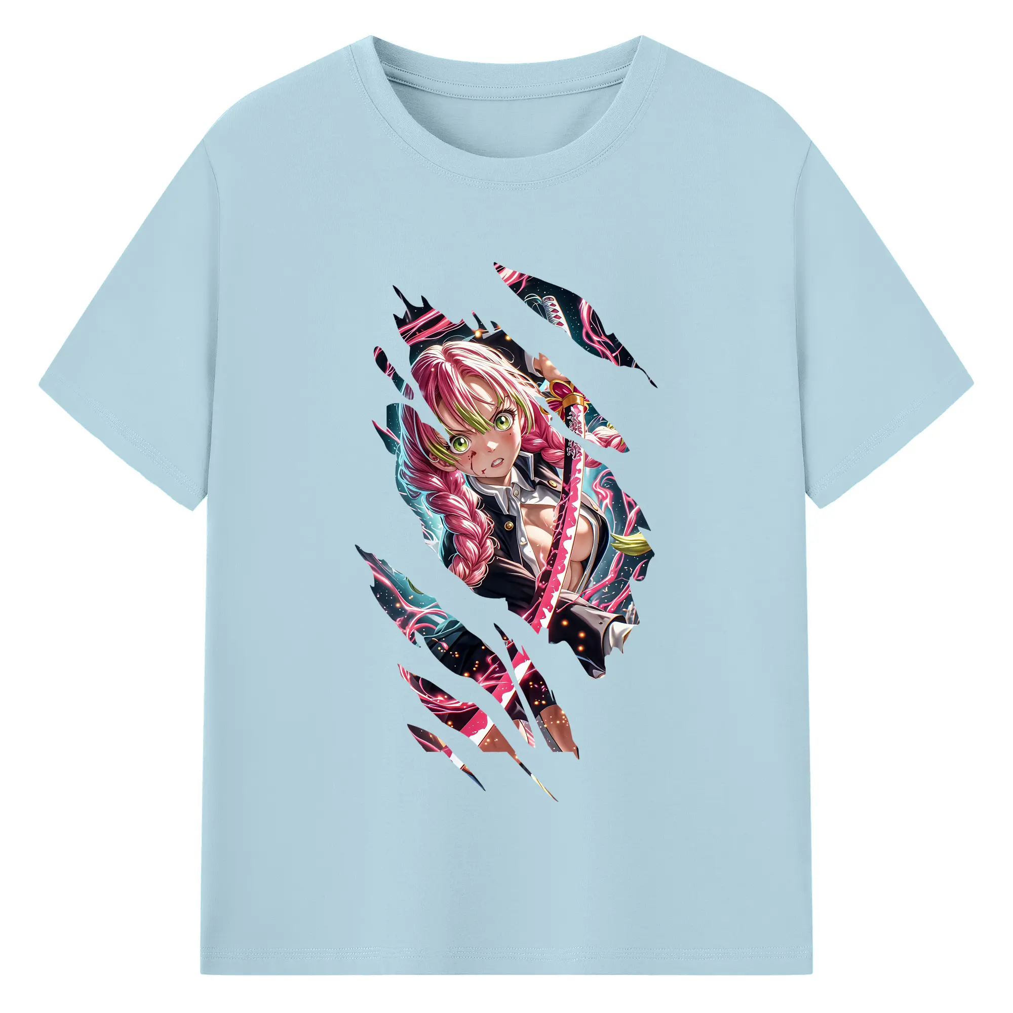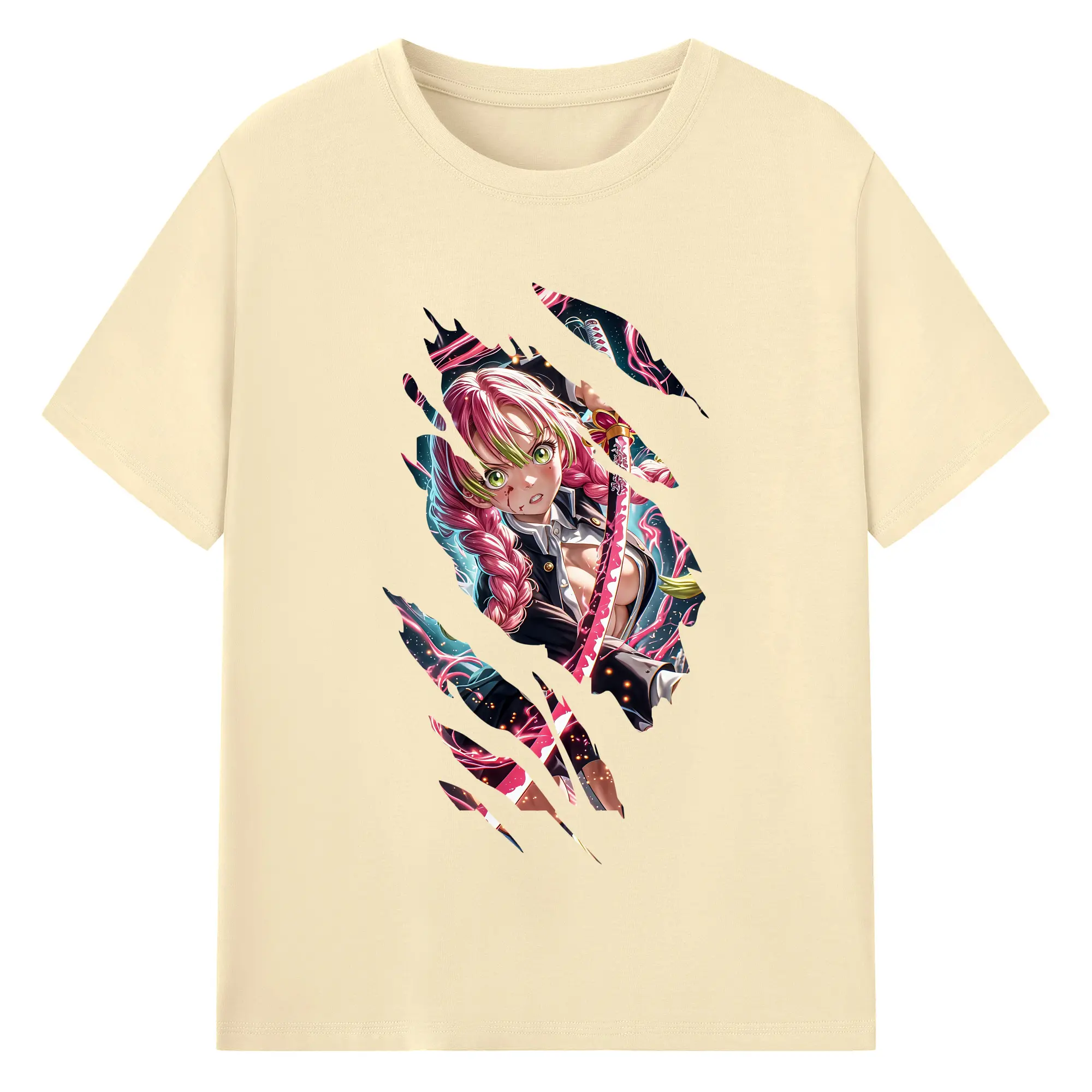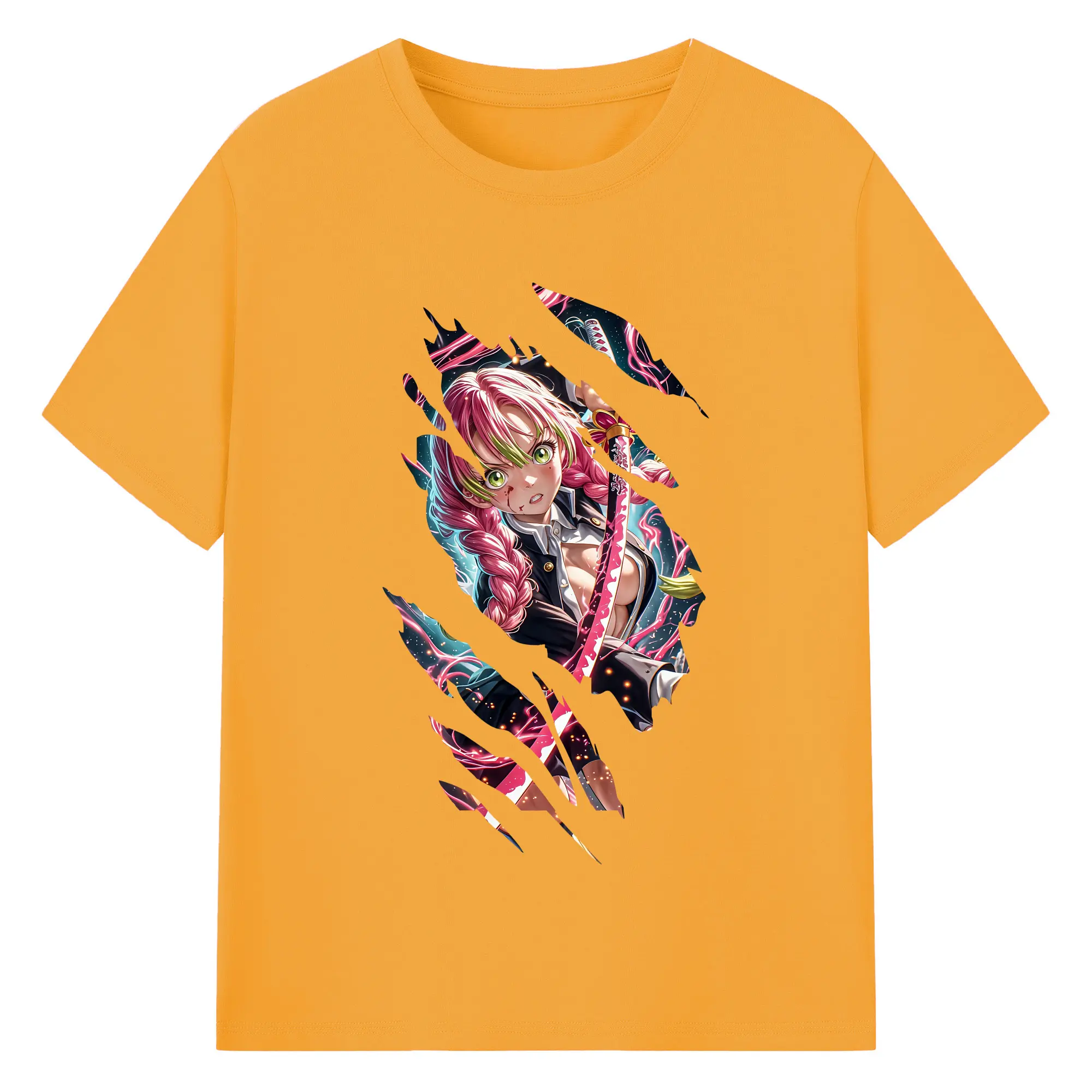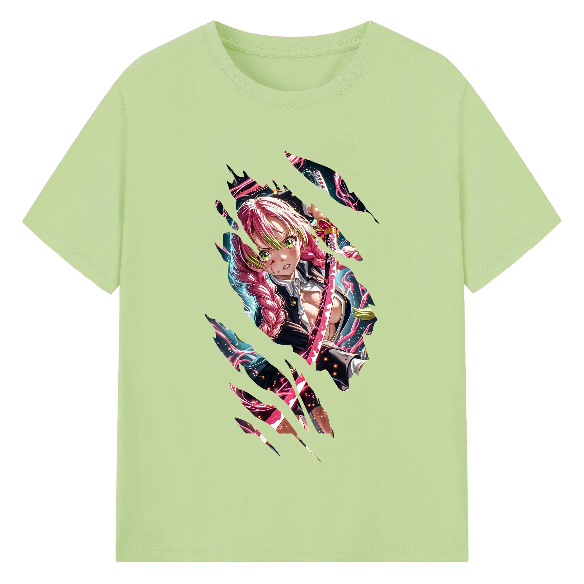 鬼滅の刃 グッズ,甘露寺 蜜璃 - 綿100% 半袖Tシャツ ・ バックプリント ・ 快適 通気性 ・ 日常使い 散歩 スポーツ用