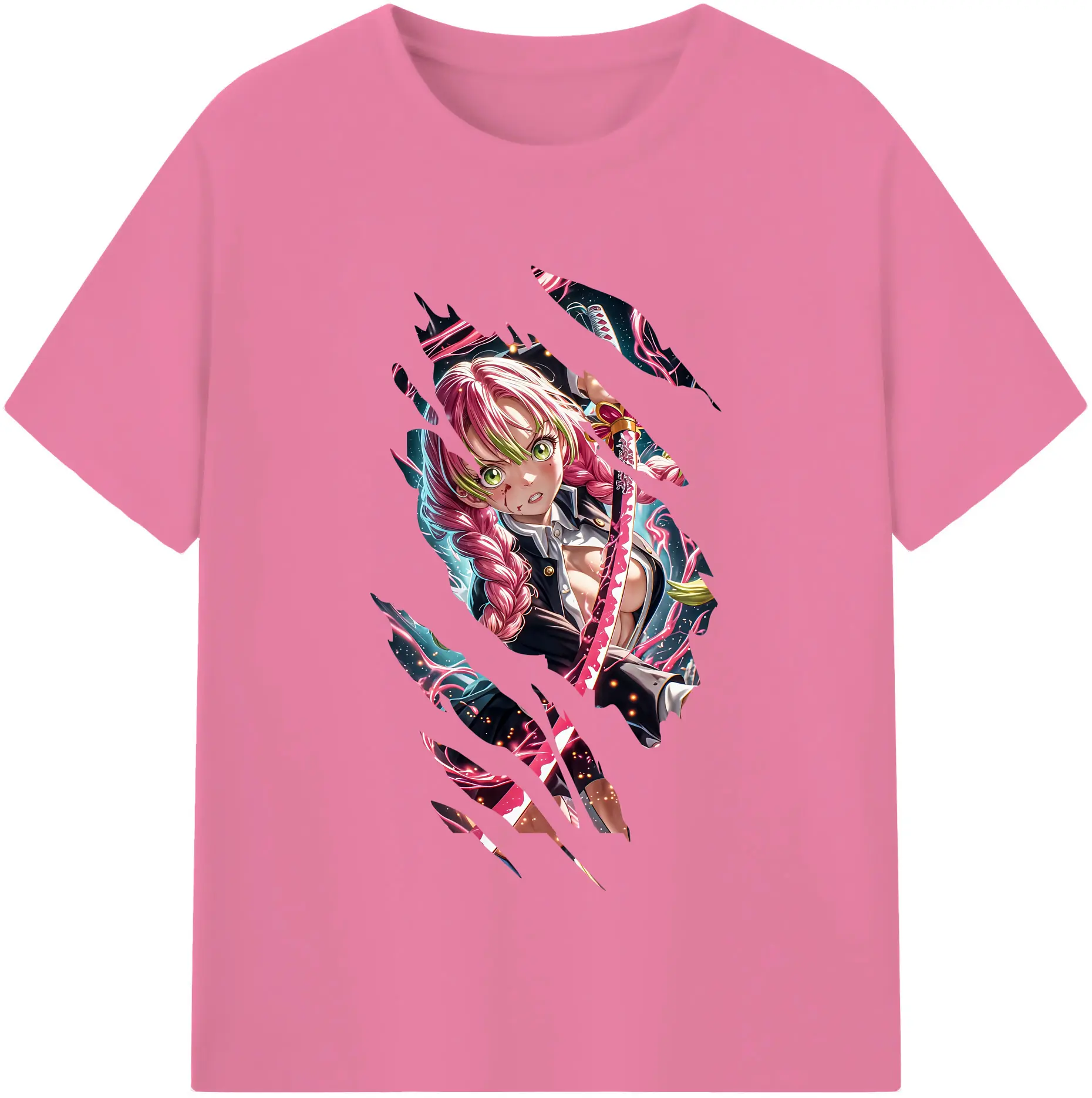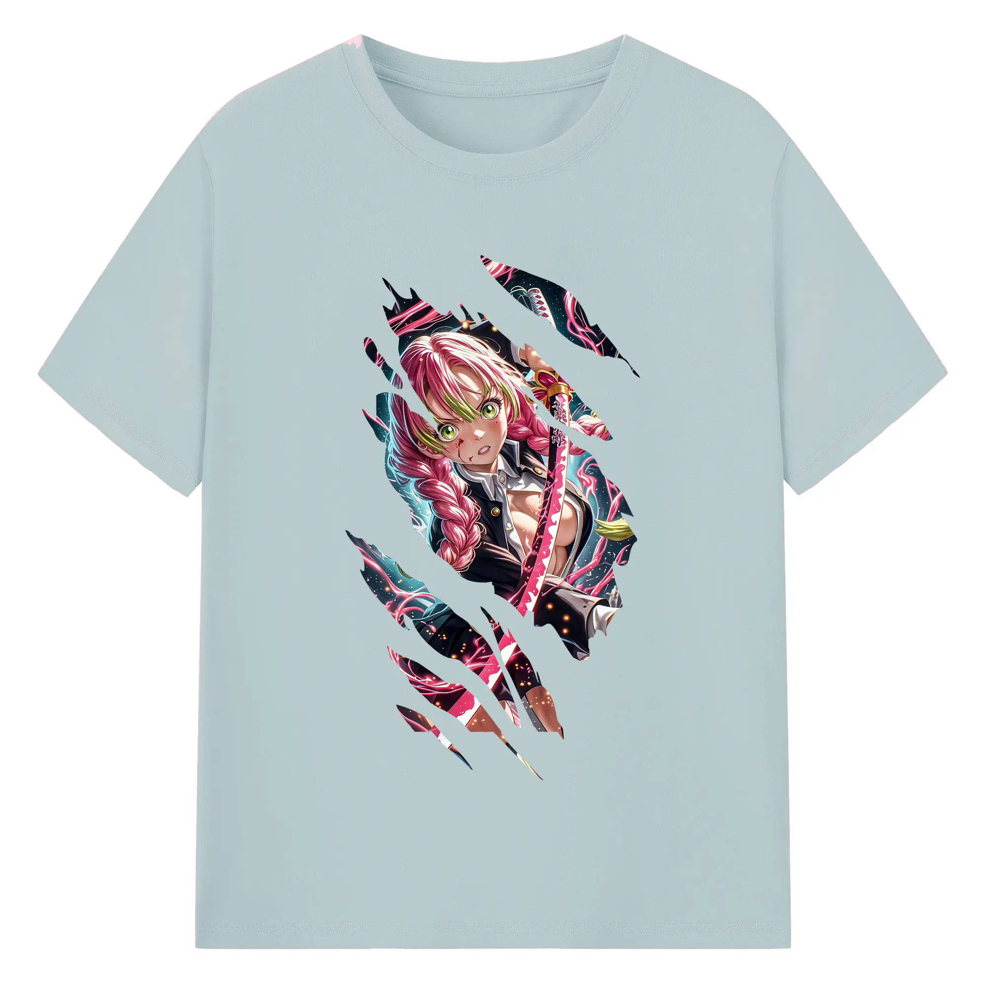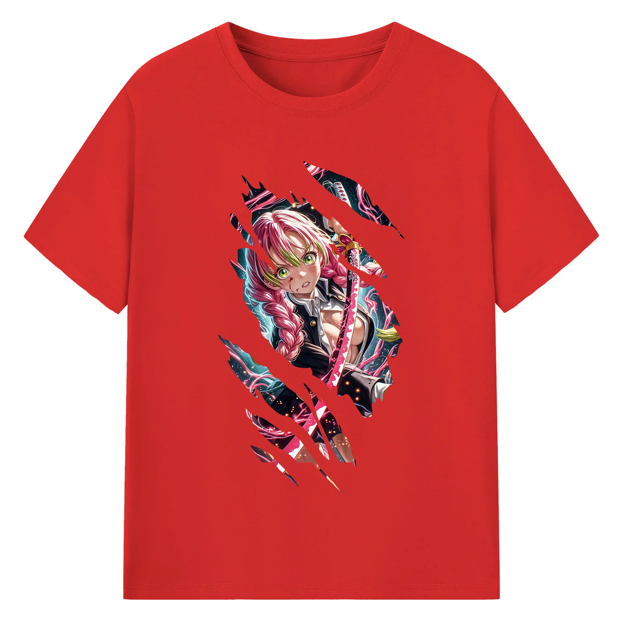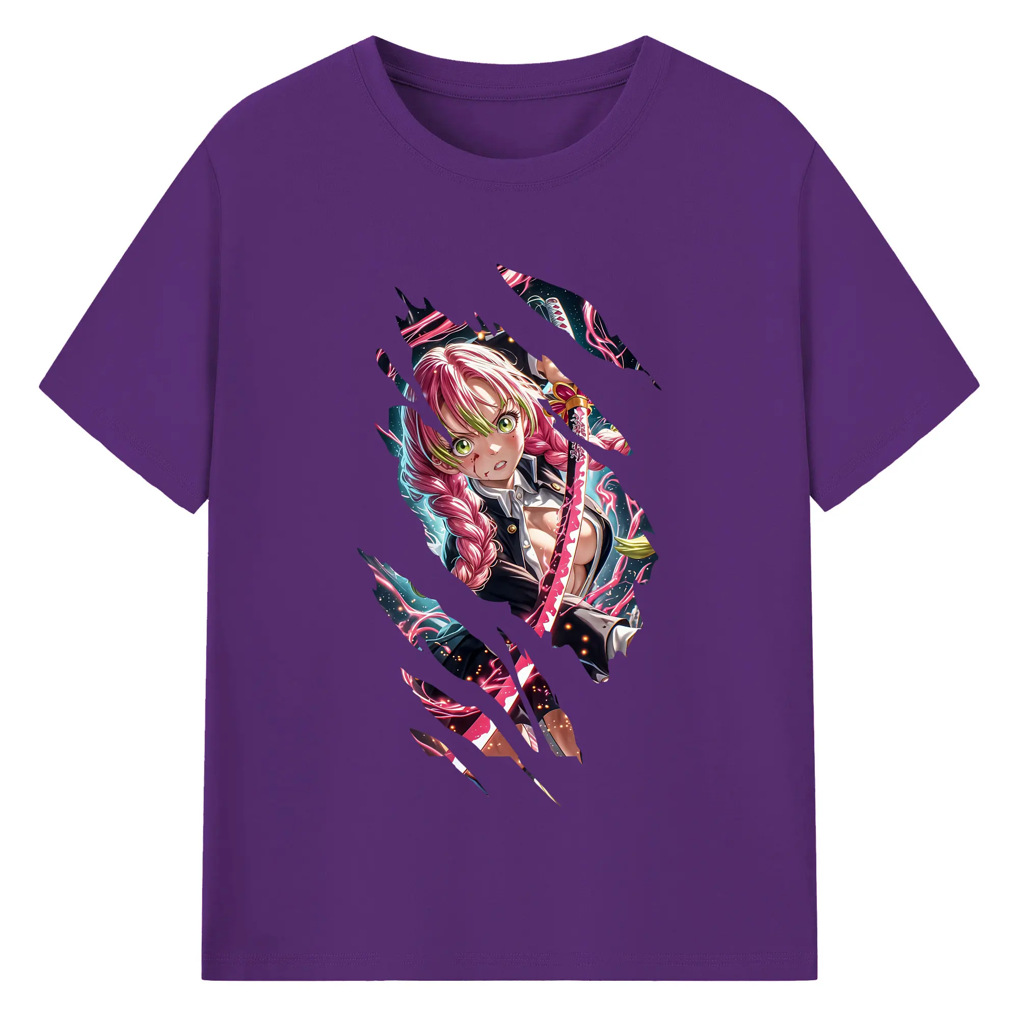 鬼滅の刃 グッズ,甘露寺 蜜璃 - 綿100% 半袖Tシャツ ・ バックプリント ・ 快適 通気性 ・ 日常使い 散歩 スポーツ用