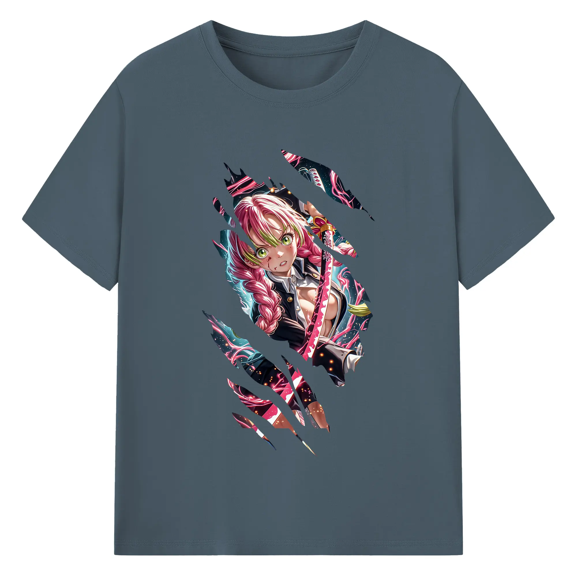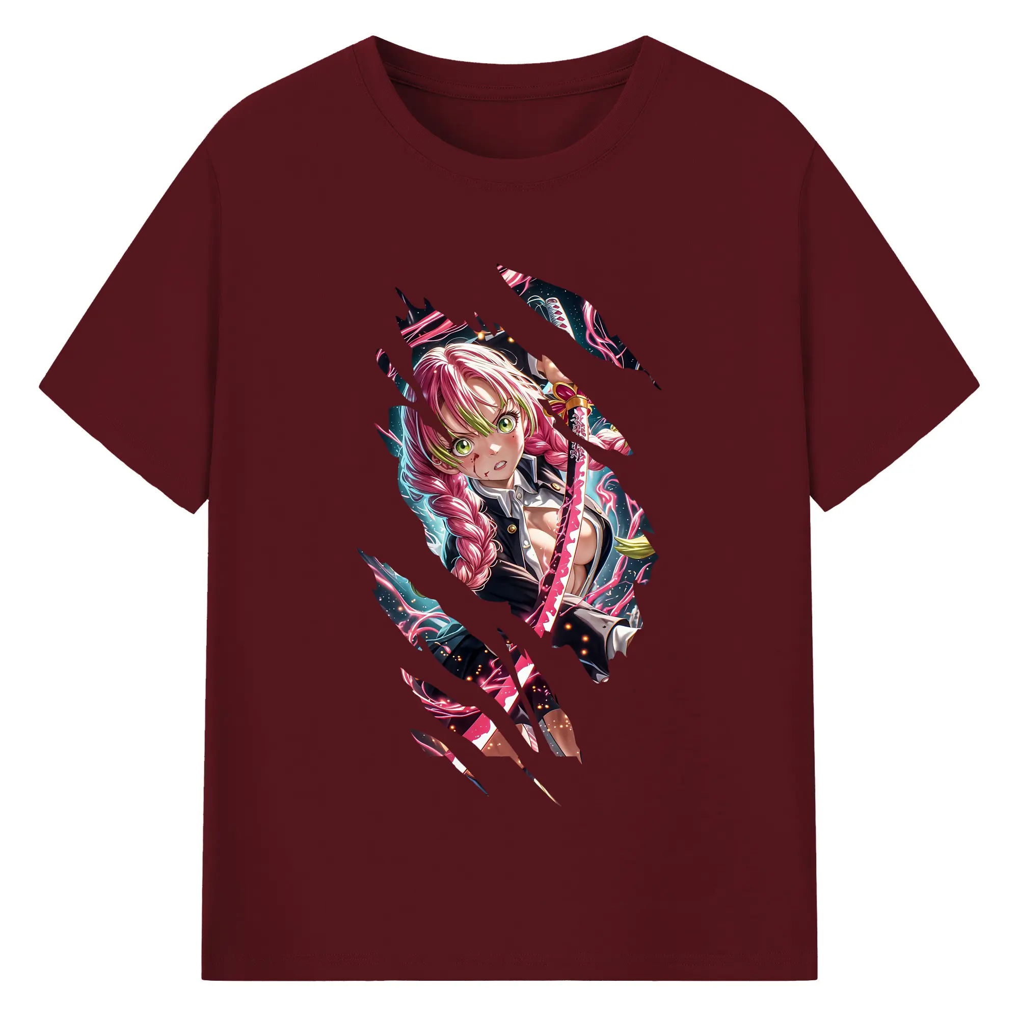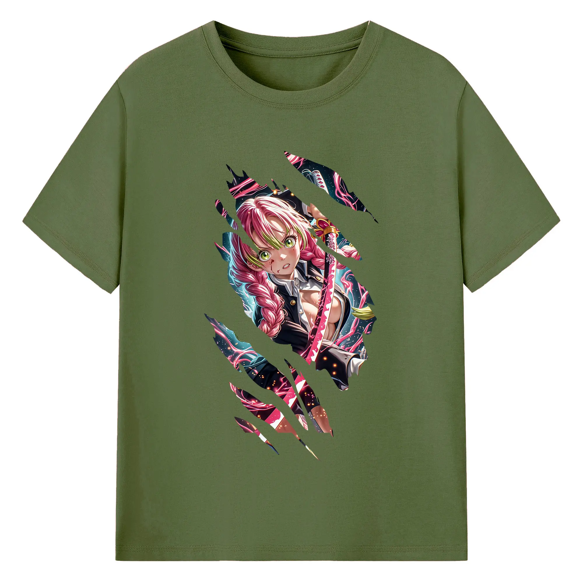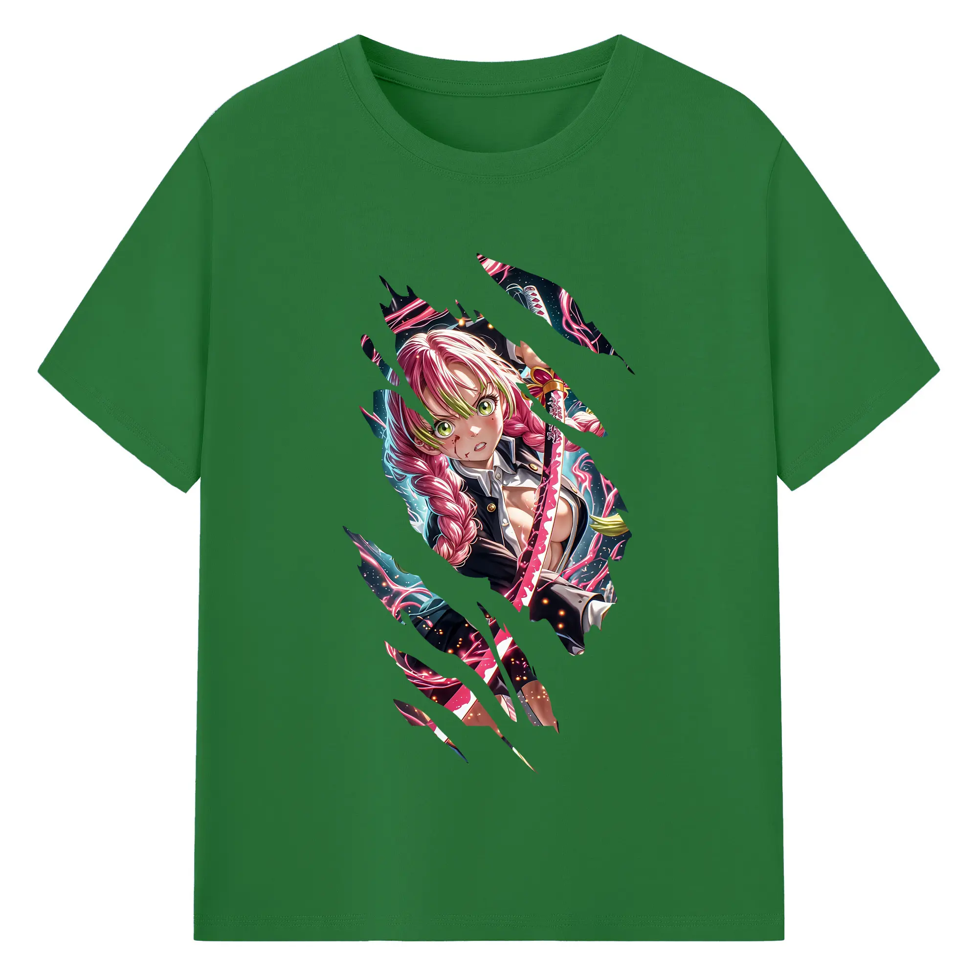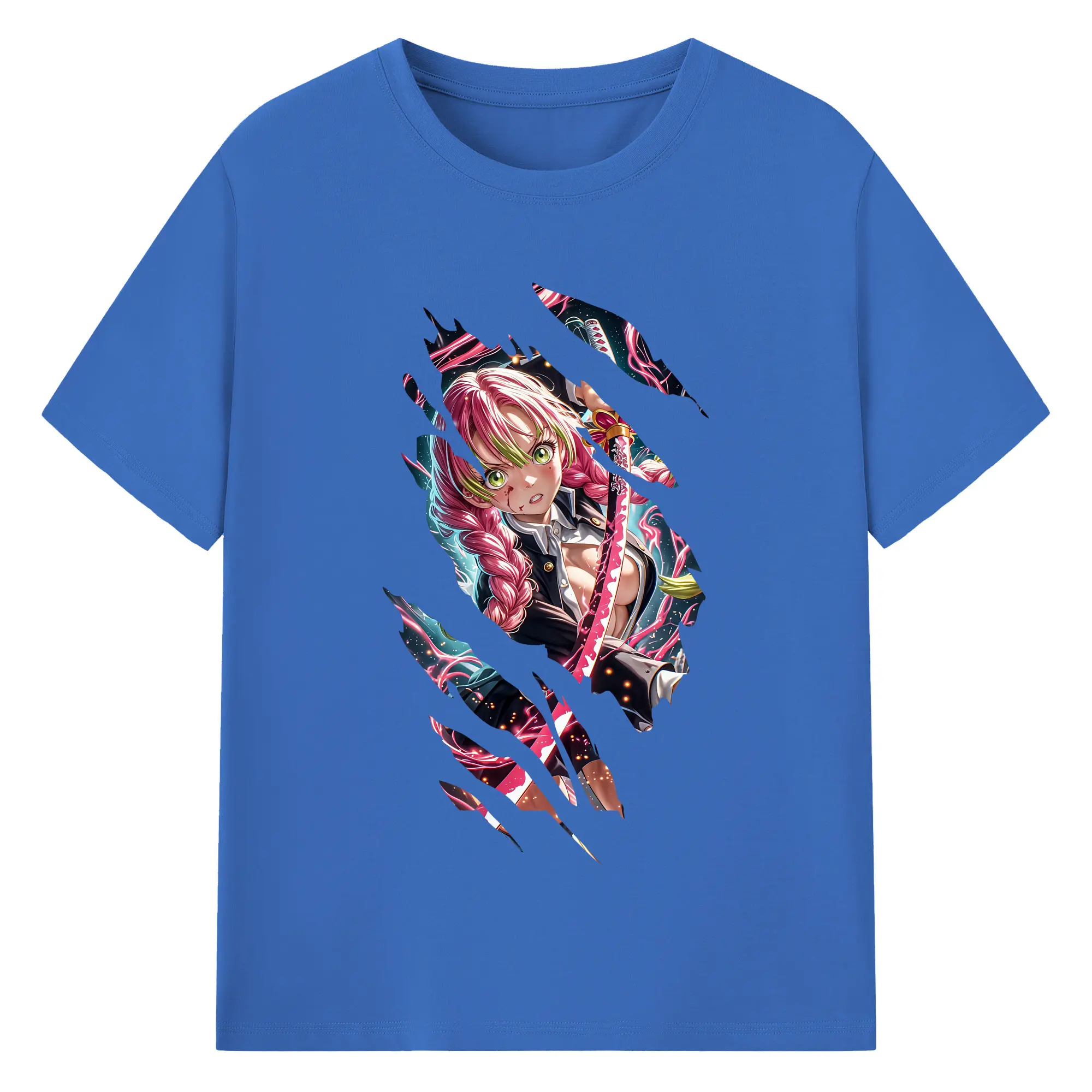 鬼滅の刃 グッズ,甘露寺 蜜璃 - 綿100% 半袖Tシャツ ・ バックプリント ・ 快適 通気性 ・ 日常使い 散歩 スポーツ用