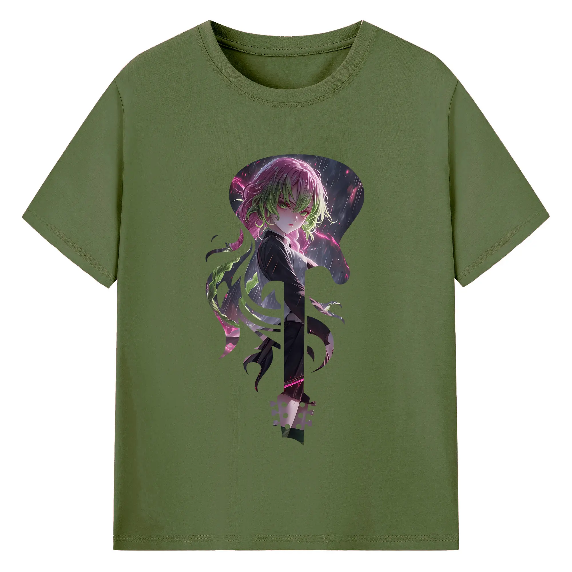 鬼滅の刃 グッズ,甘露寺 蜜璃 - 綿100% 半袖Tシャツ ・ バックプリント ・ 快適 通気性 ・ 日常使い 散歩 スポーツ用