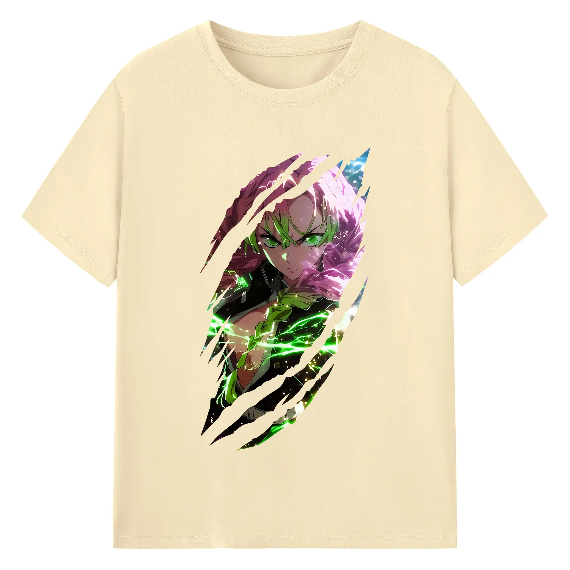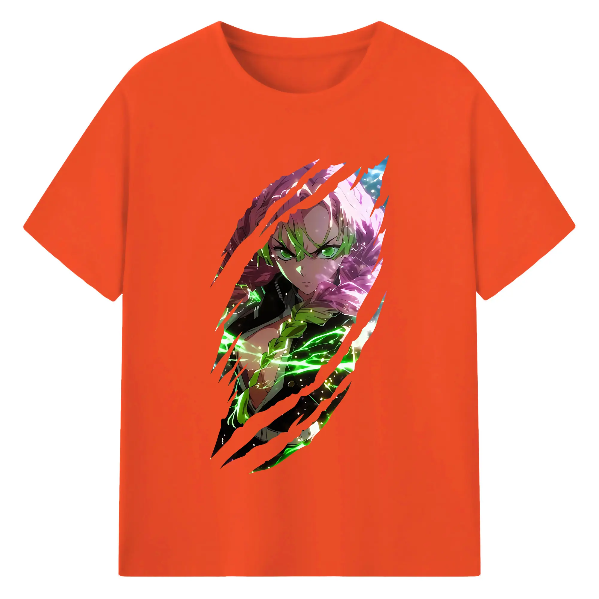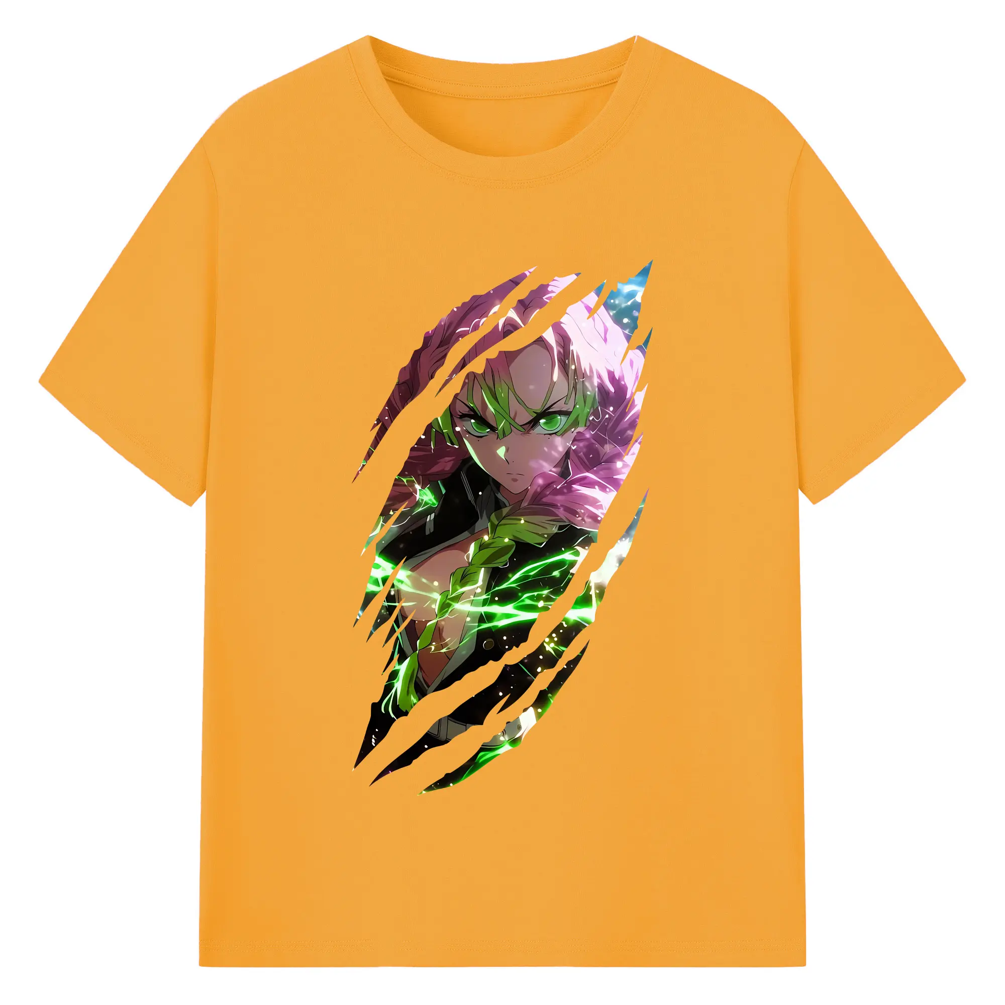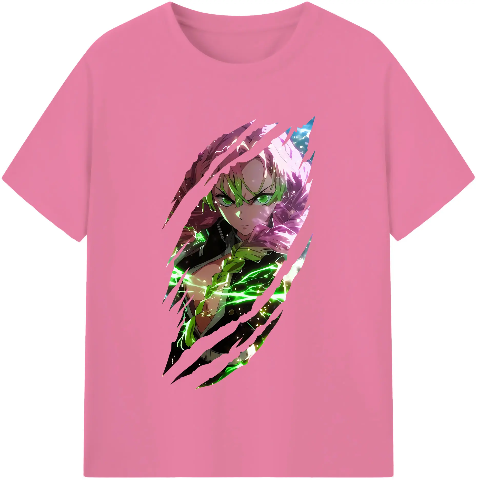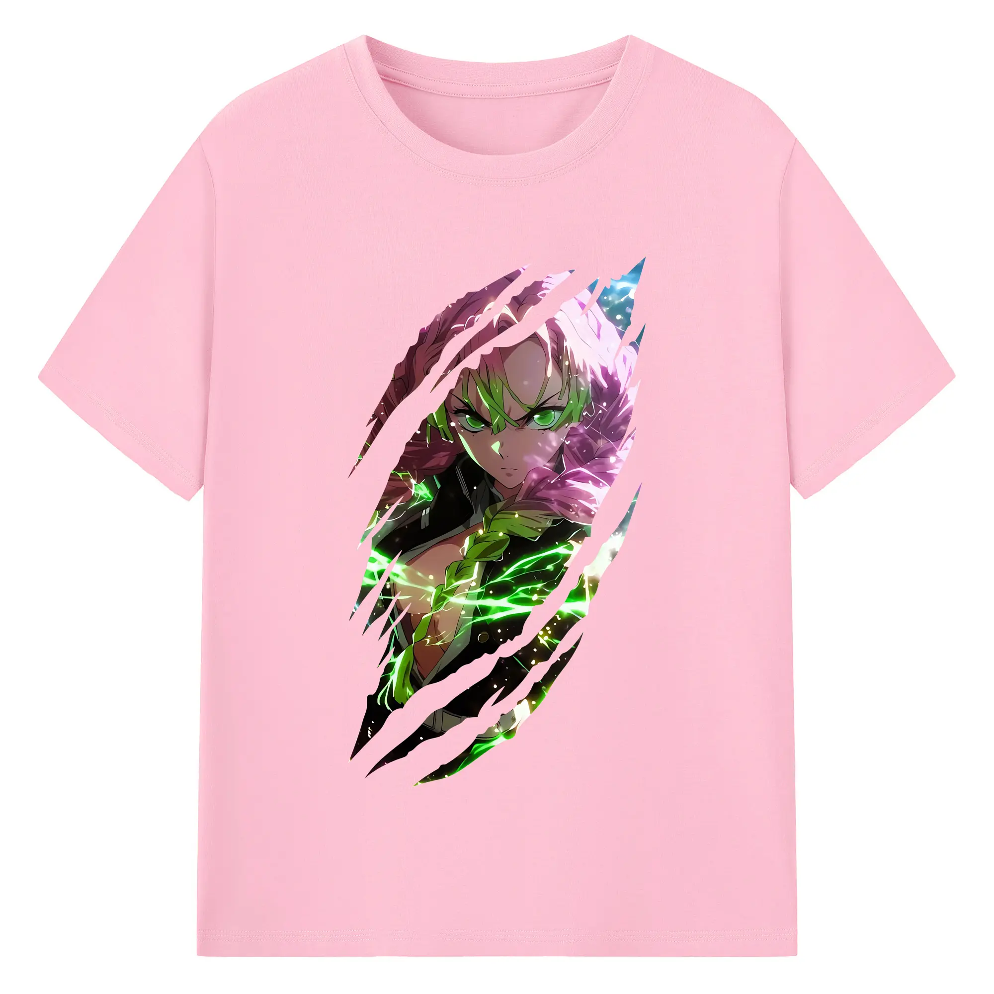 鬼滅の刃 グッズ,甘露寺 蜜璃 - 綿100% 半袖Tシャツ ・ バックプリント ・ 快適 通気性 ・ 日常使い 散歩 スポーツ用