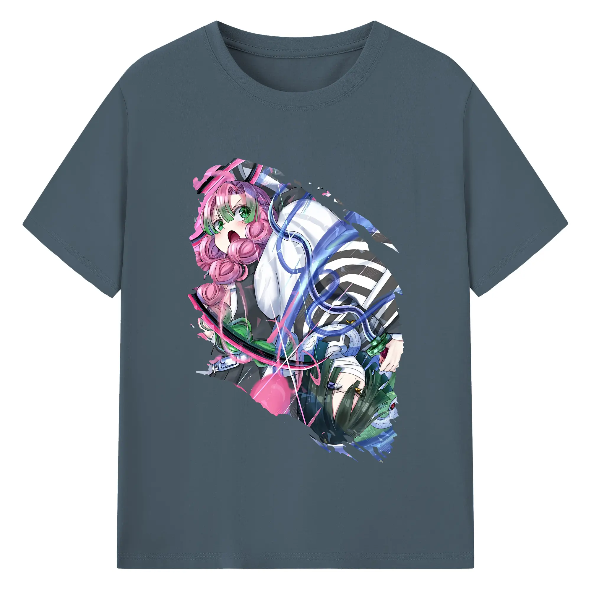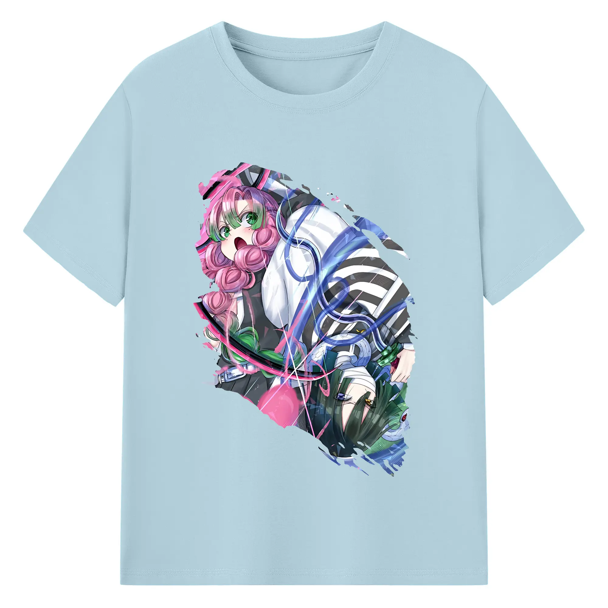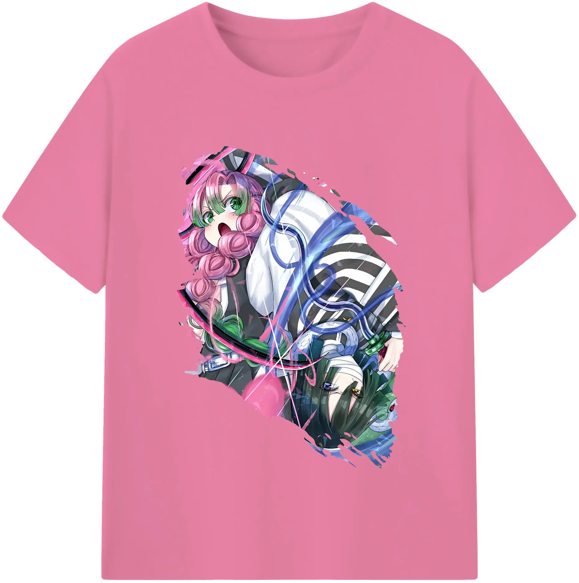 鬼滅の刃 グッズ,甘露寺 蜜璃 - 綿100% 半袖Tシャツ ・ バックプリント ・ 快適 通気性 ・ 日常使い 散歩 スポーツ用