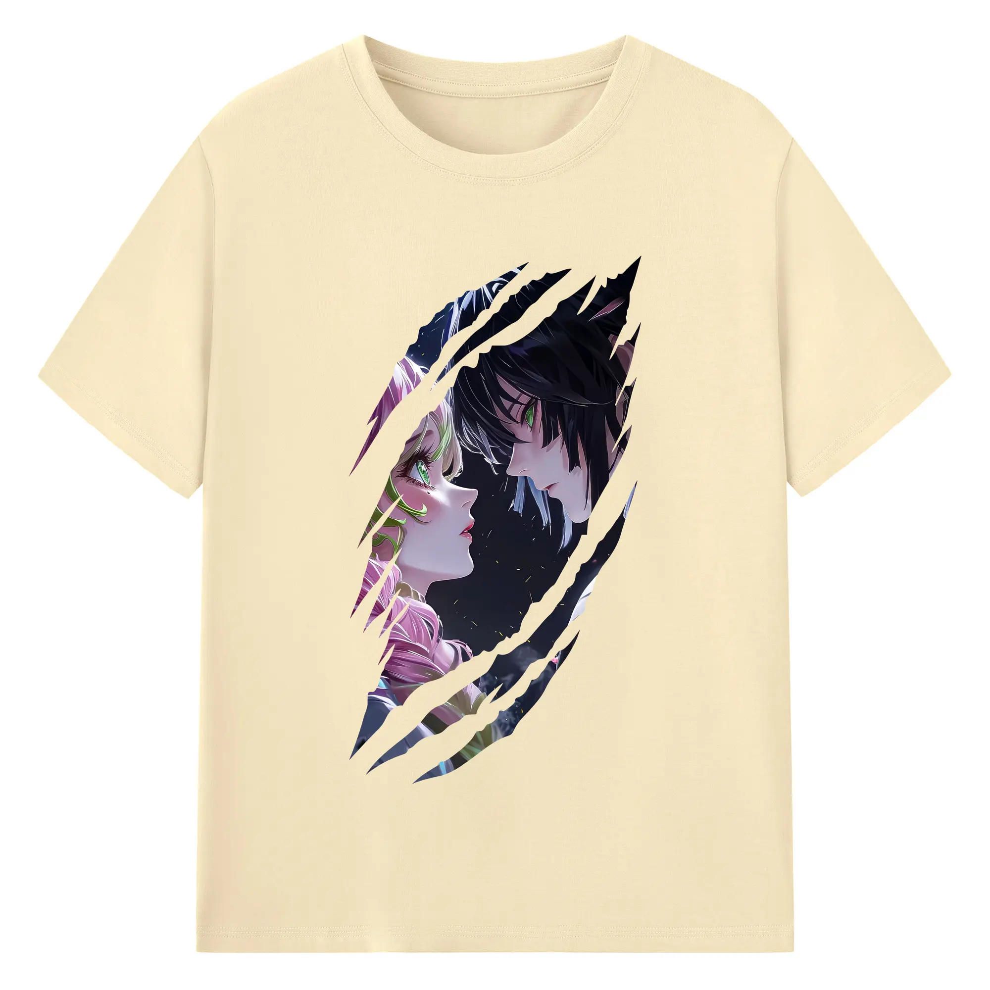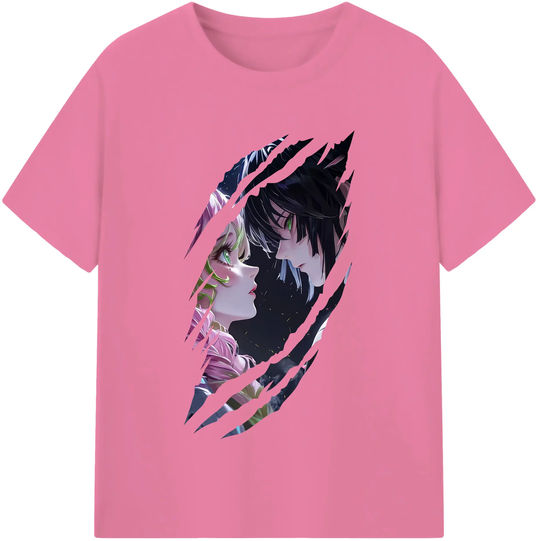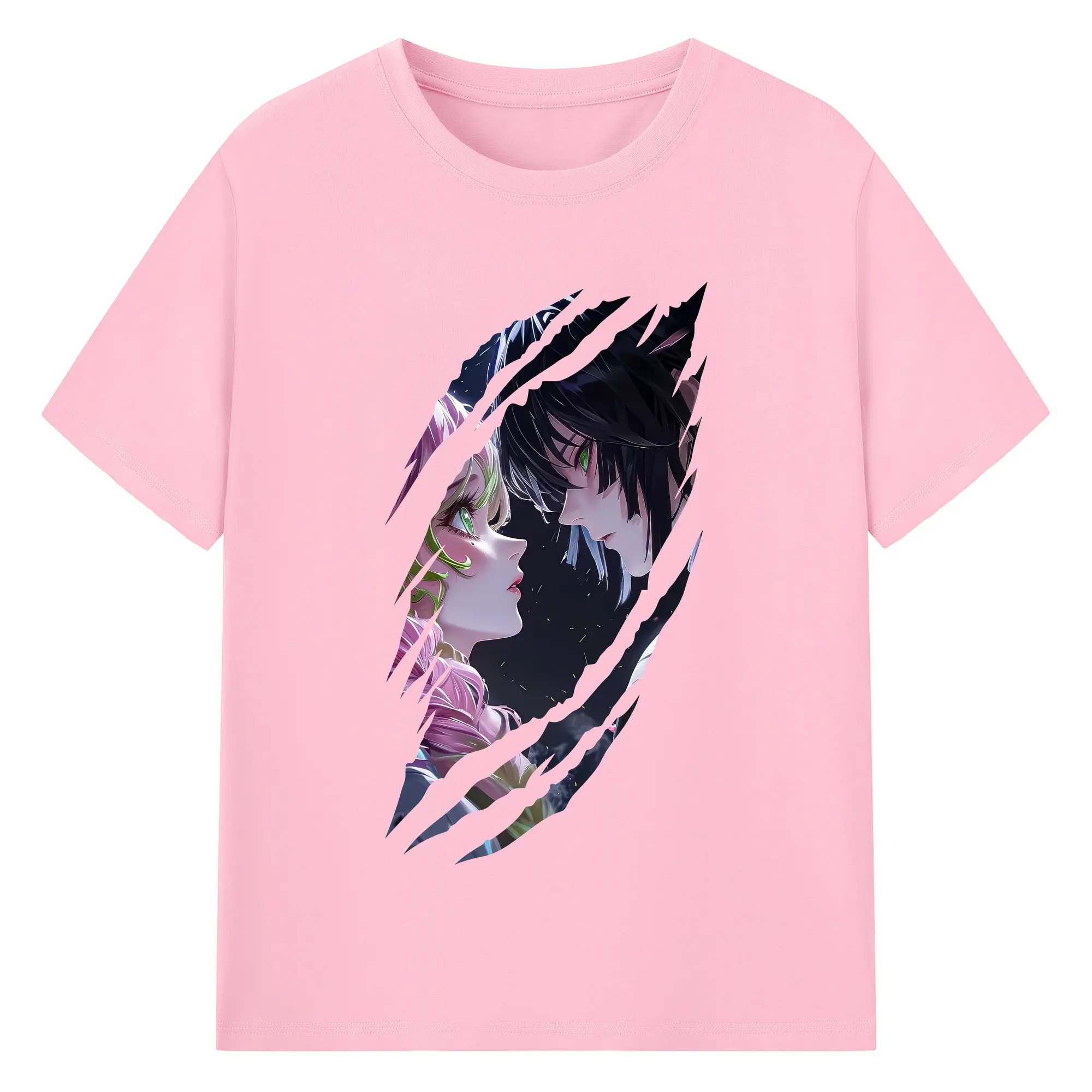 鬼滅の刃 グッズ,甘露寺 蜜璃 - 綿100% 半袖Tシャツ ・ バックプリント ・ 快適 通気性 ・ 日常使い 散歩 スポーツ用