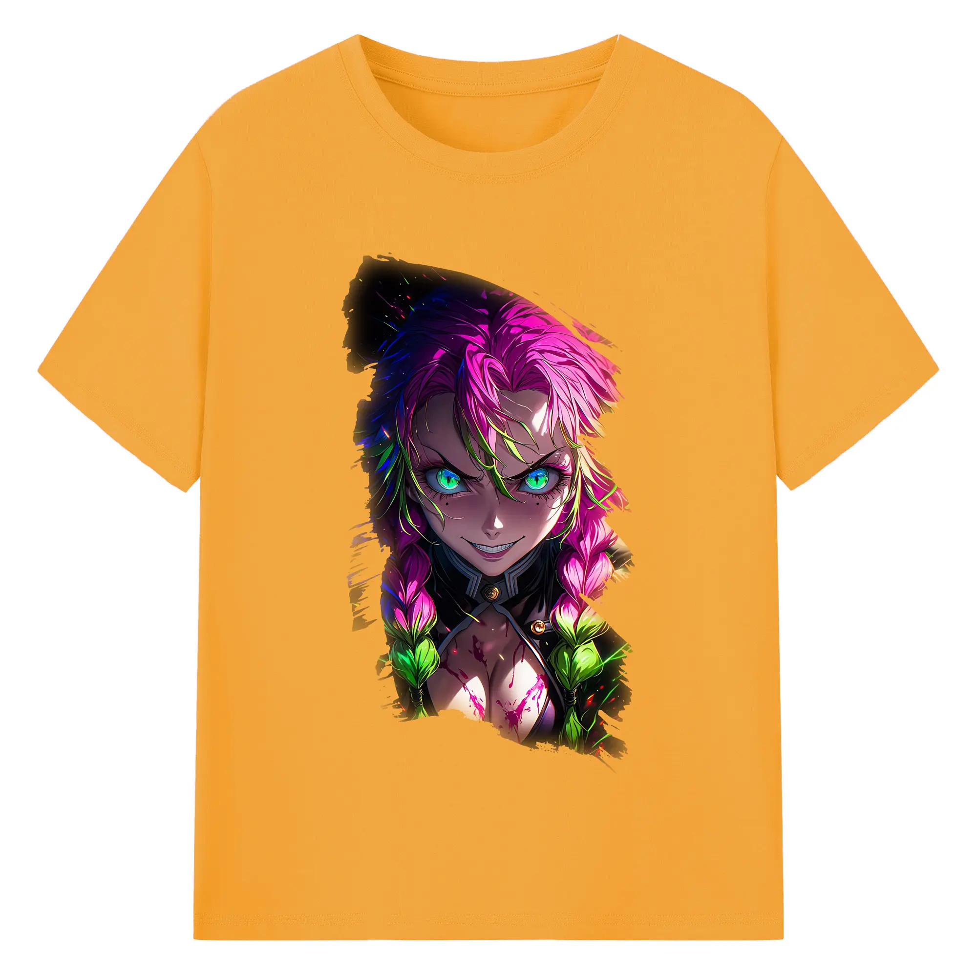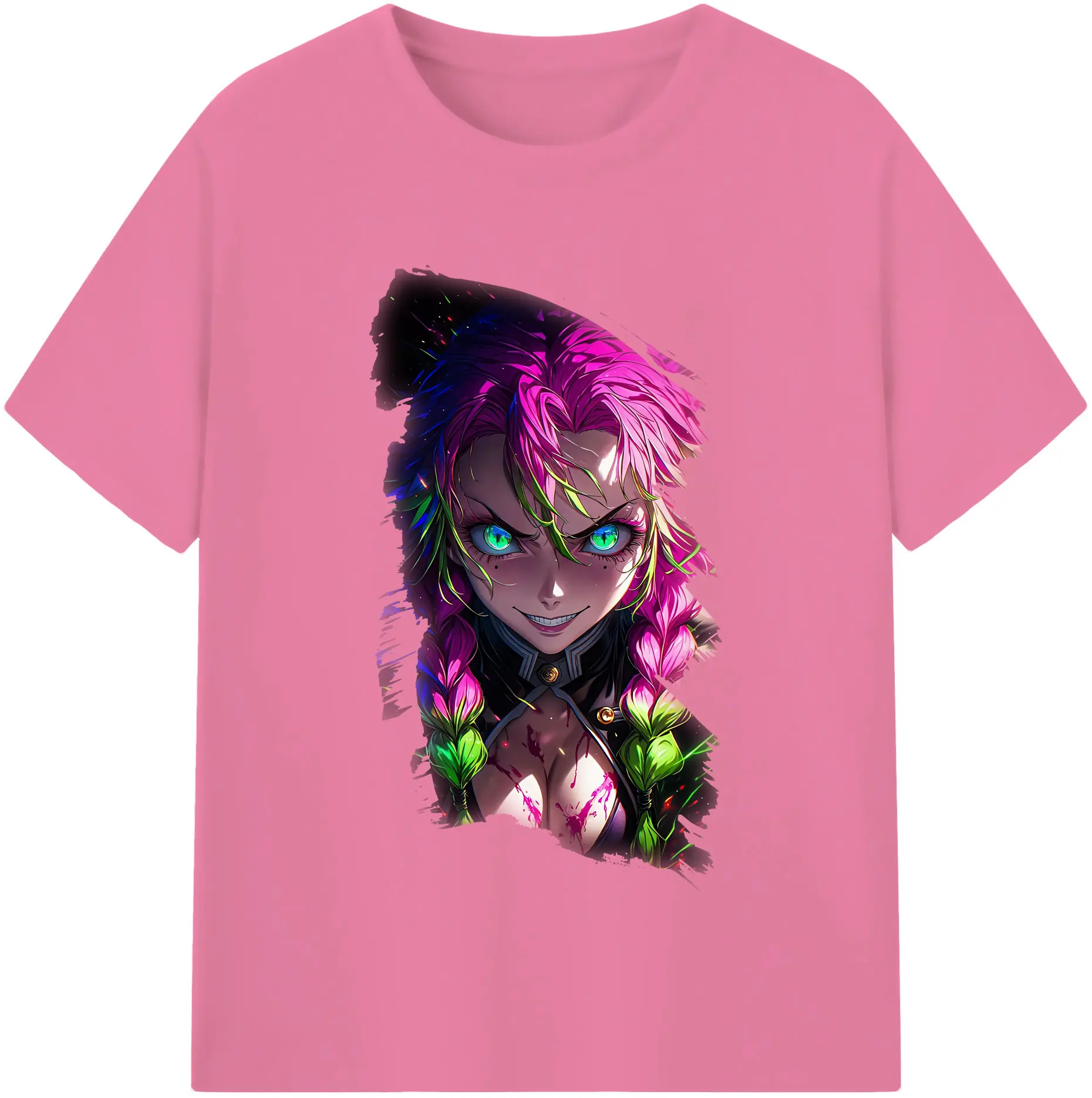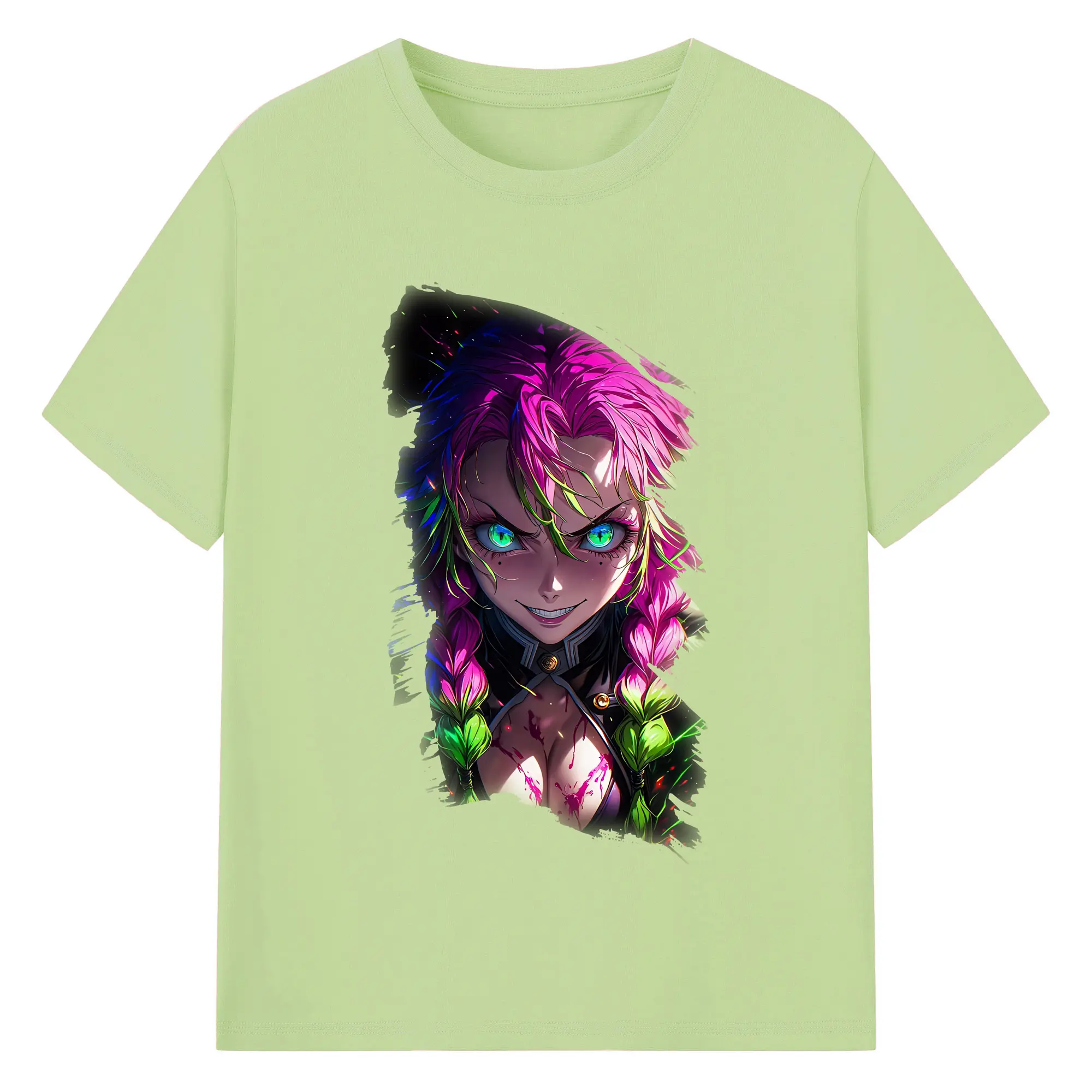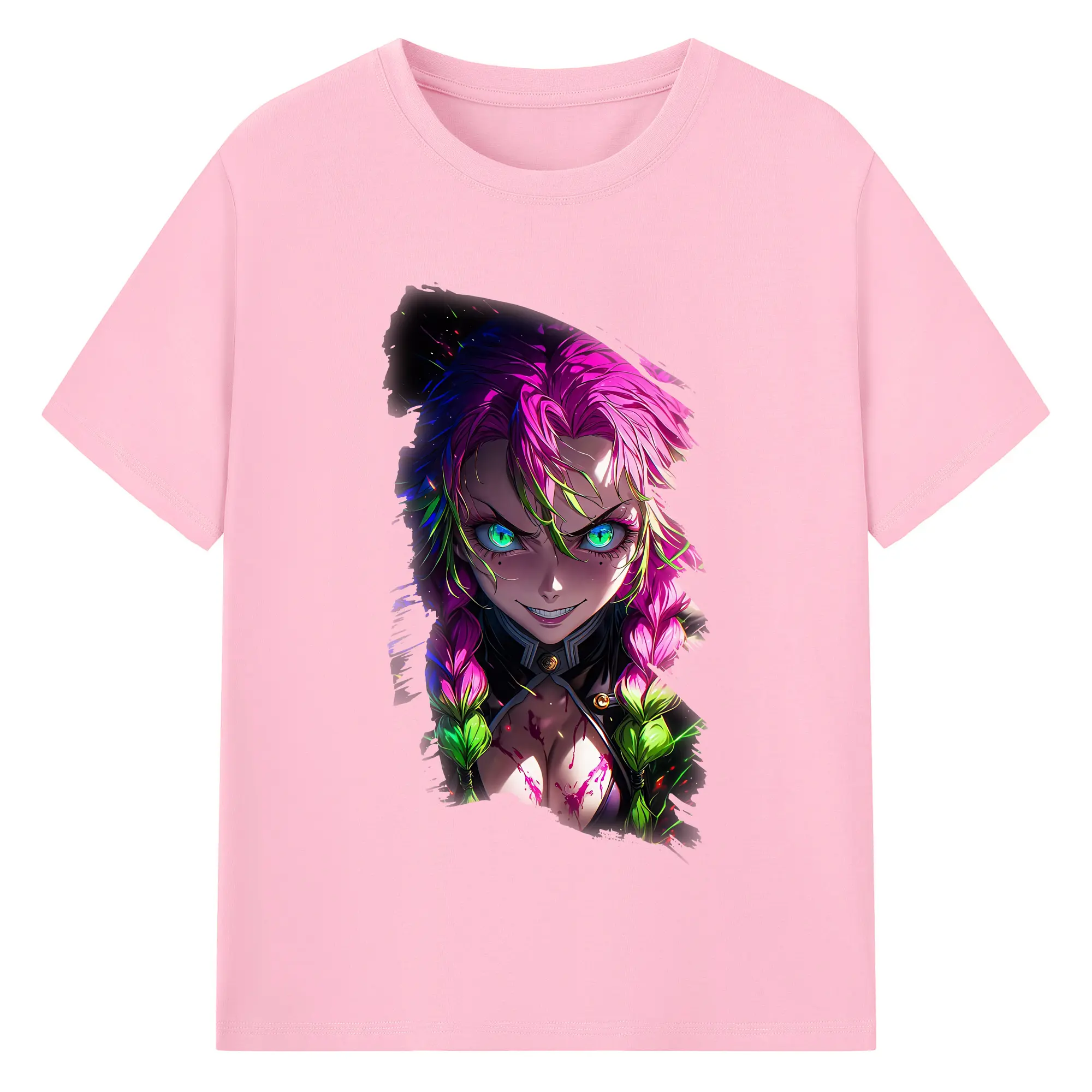 鬼滅の刃 グッズ,甘露寺 蜜璃 - 綿100% 半袖Tシャツ ・ バックプリント ・ 快適 通気性 ・ 日常使い 散歩 スポーツ用