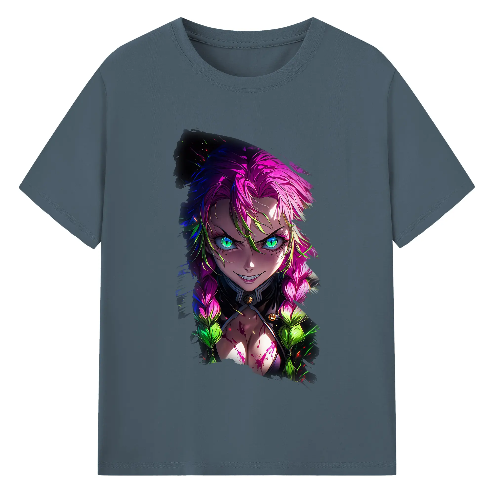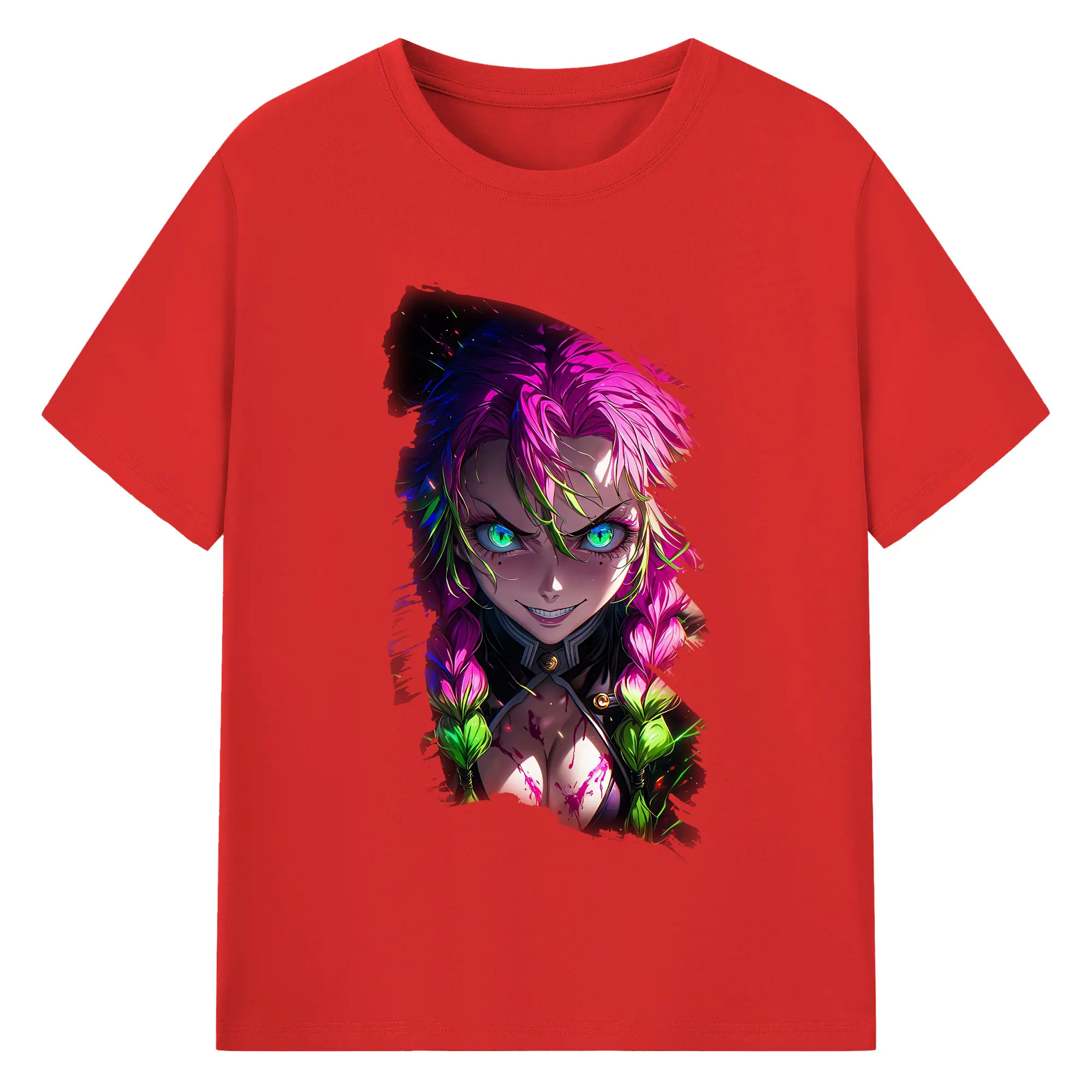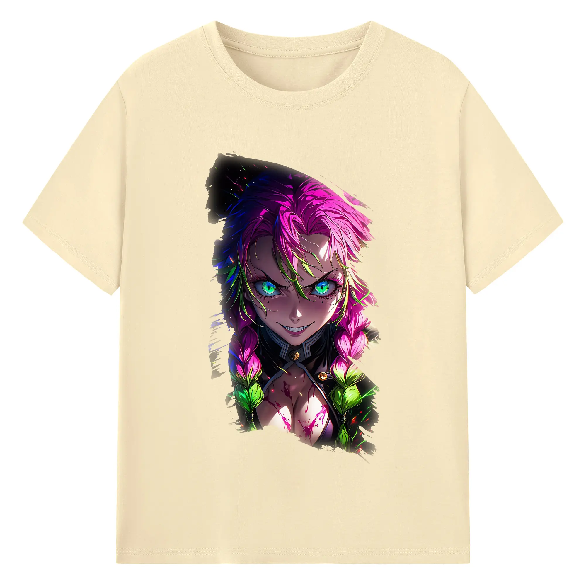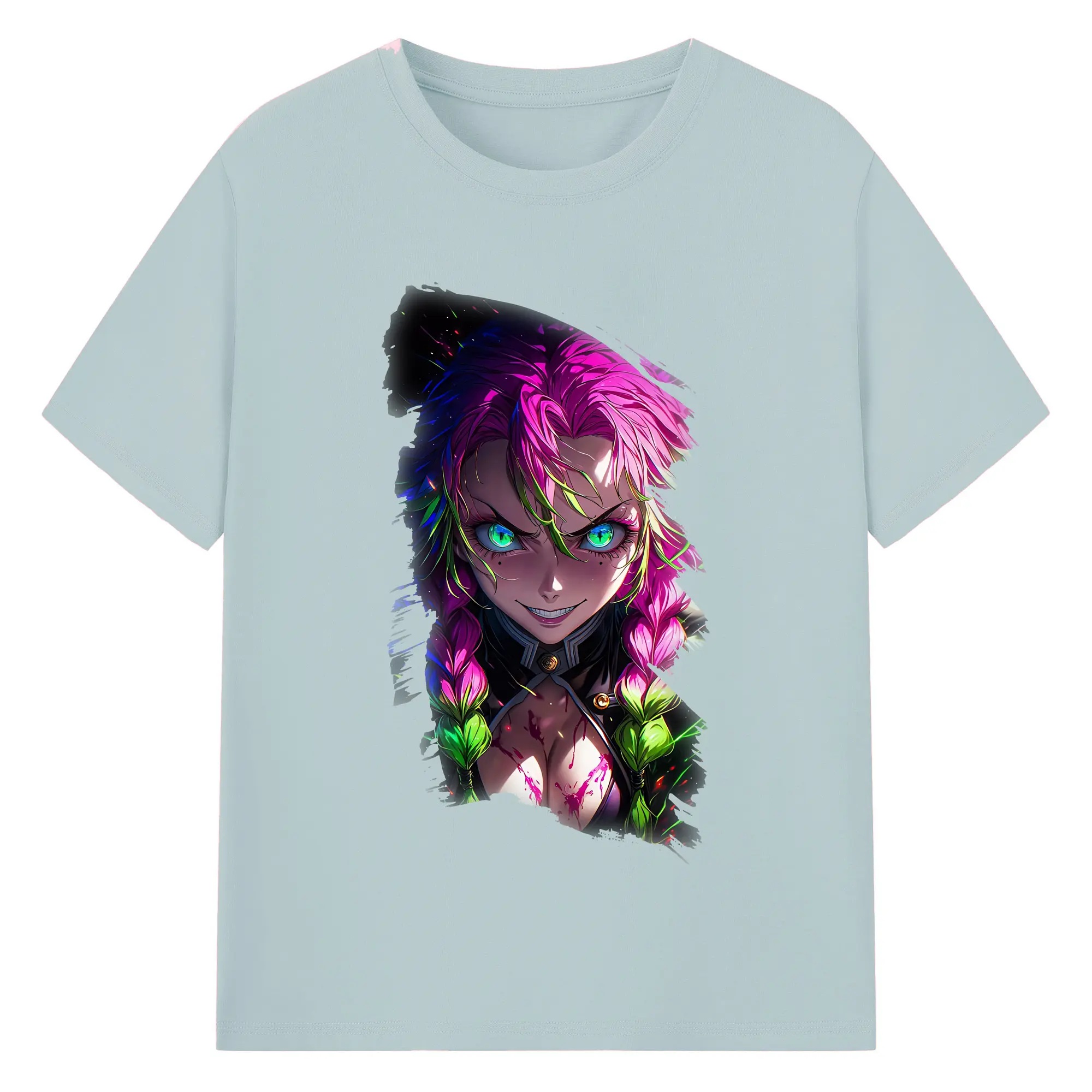 鬼滅の刃 グッズ,甘露寺 蜜璃 - 綿100% 半袖Tシャツ ・ バックプリント ・ 快適 通気性 ・ 日常使い 散歩 スポーツ用