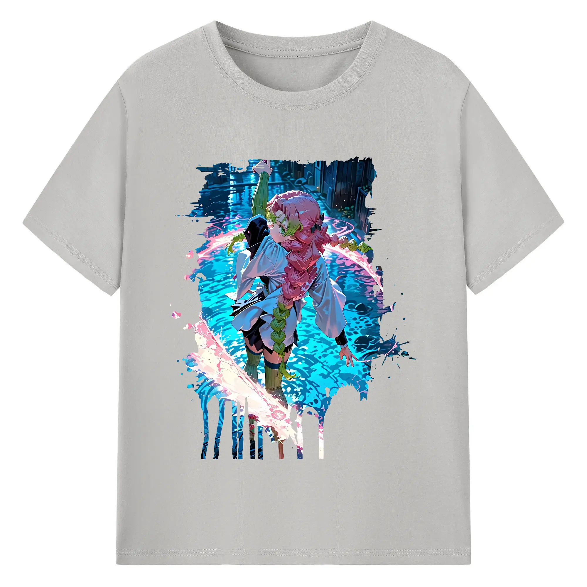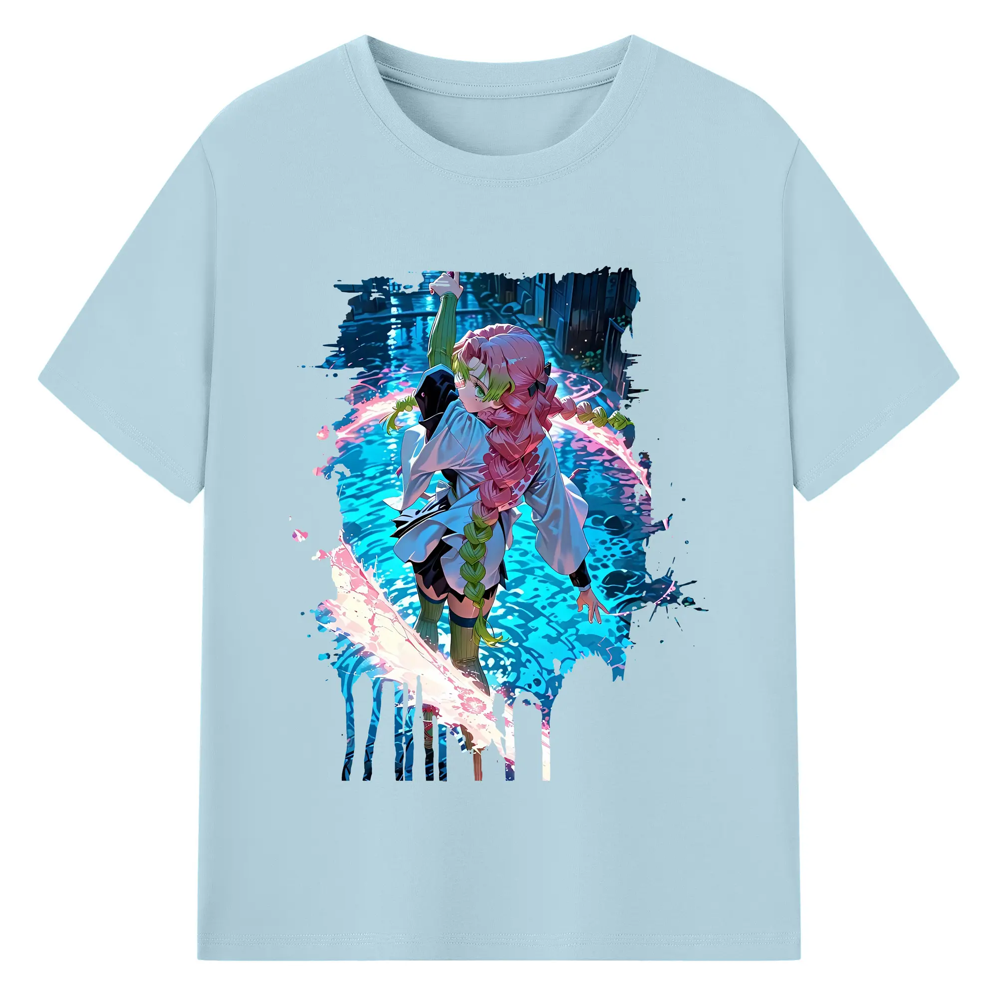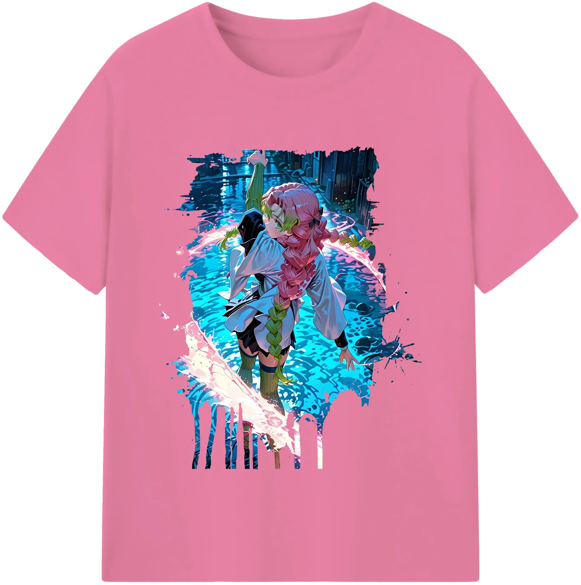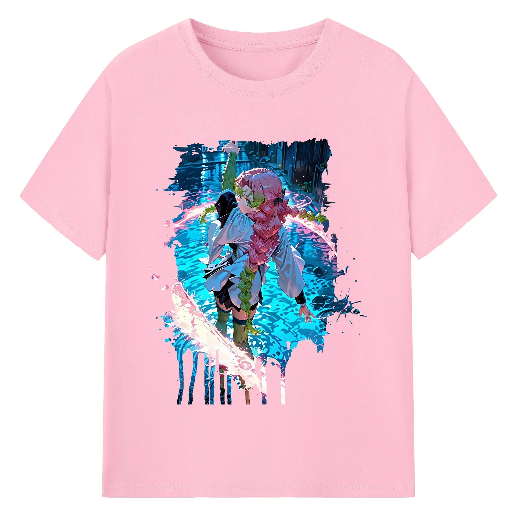 鬼滅の刃 グッズ,甘露寺 蜜璃 - 綿100% 半袖Tシャツ ・ バックプリント ・ 快適 通気性 ・ 日常使い 散歩 スポーツ用