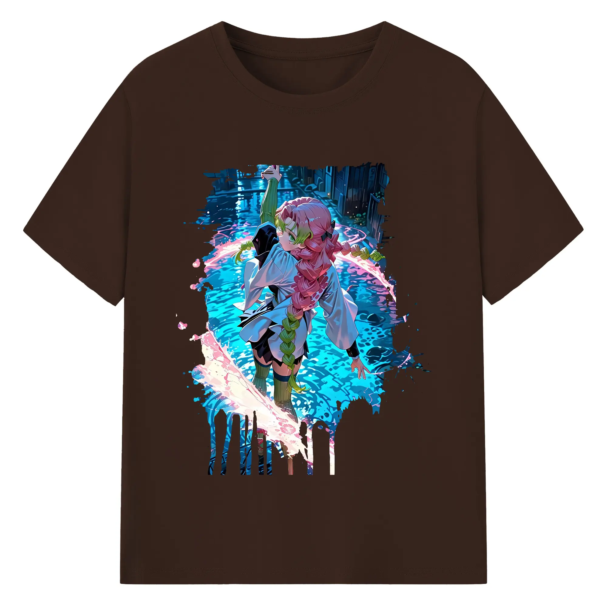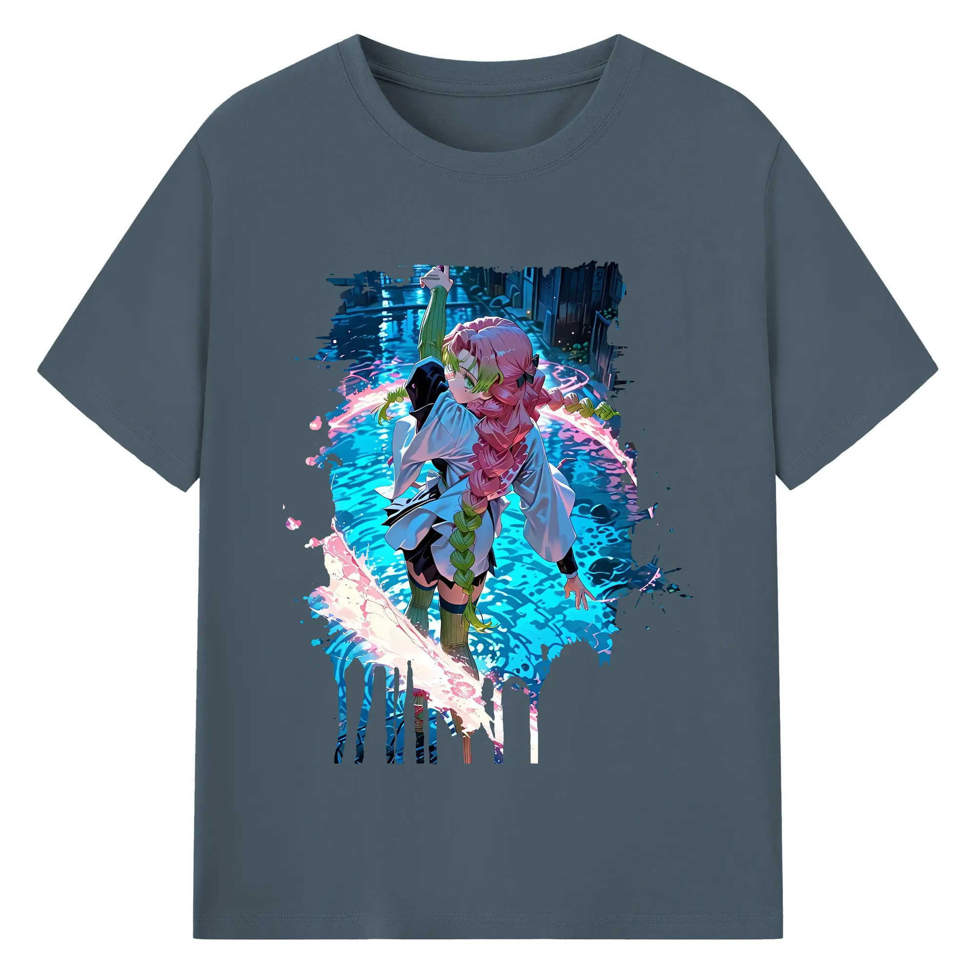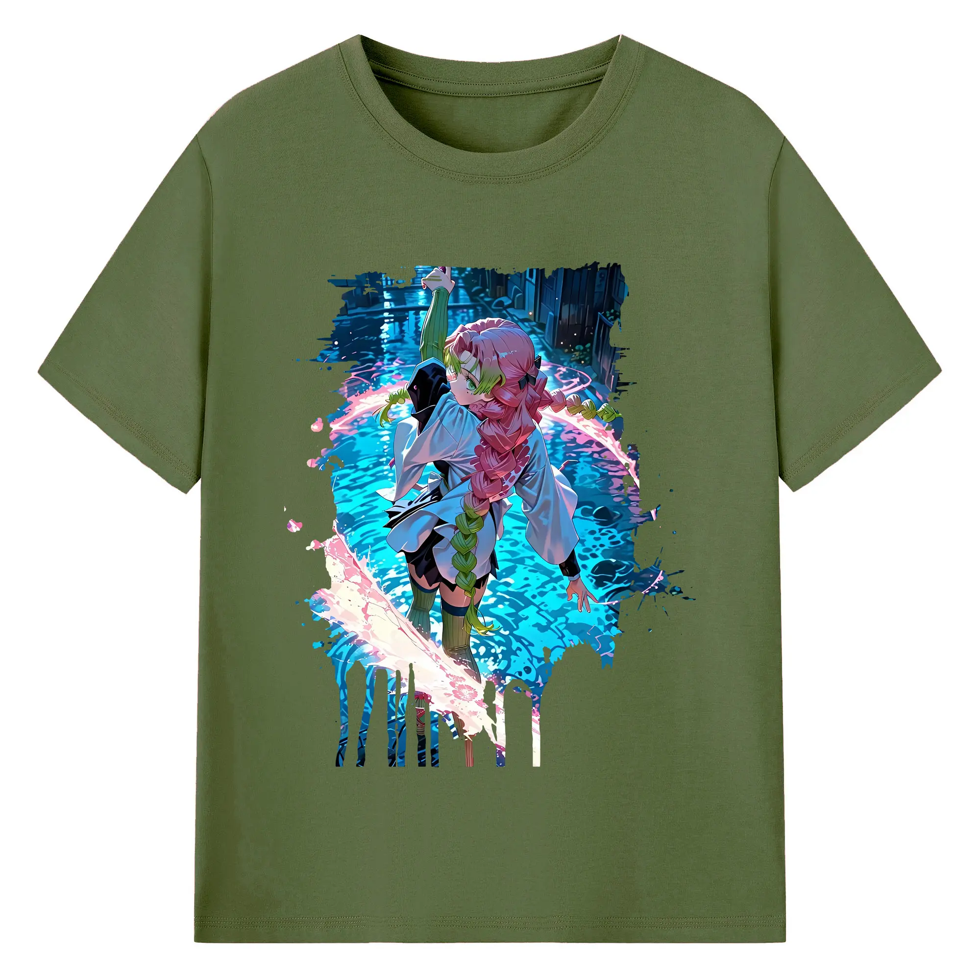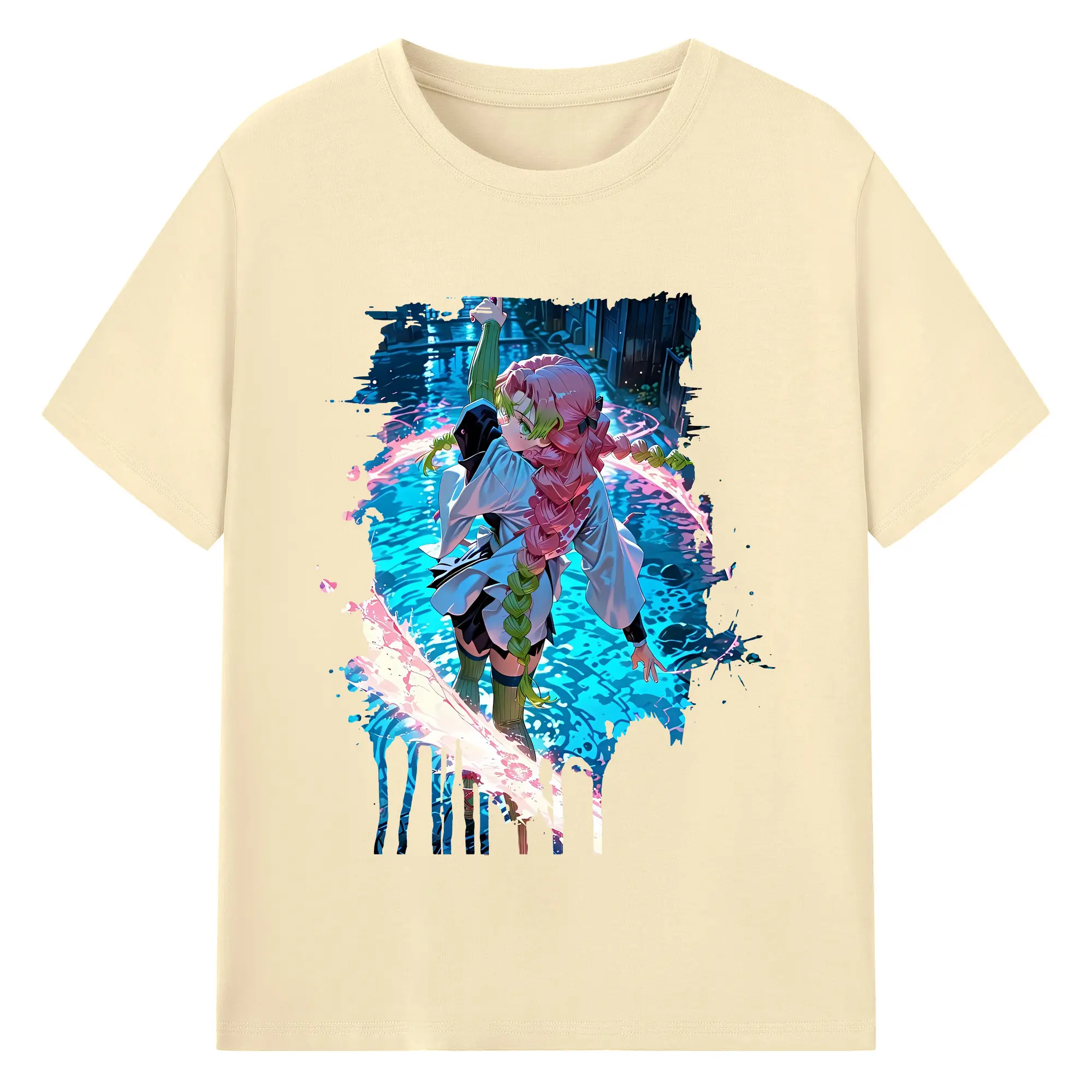 鬼滅の刃 グッズ,甘露寺 蜜璃 - 綿100% 半袖Tシャツ ・ バックプリント ・ 快適 通気性 ・ 日常使い 散歩 スポーツ用
