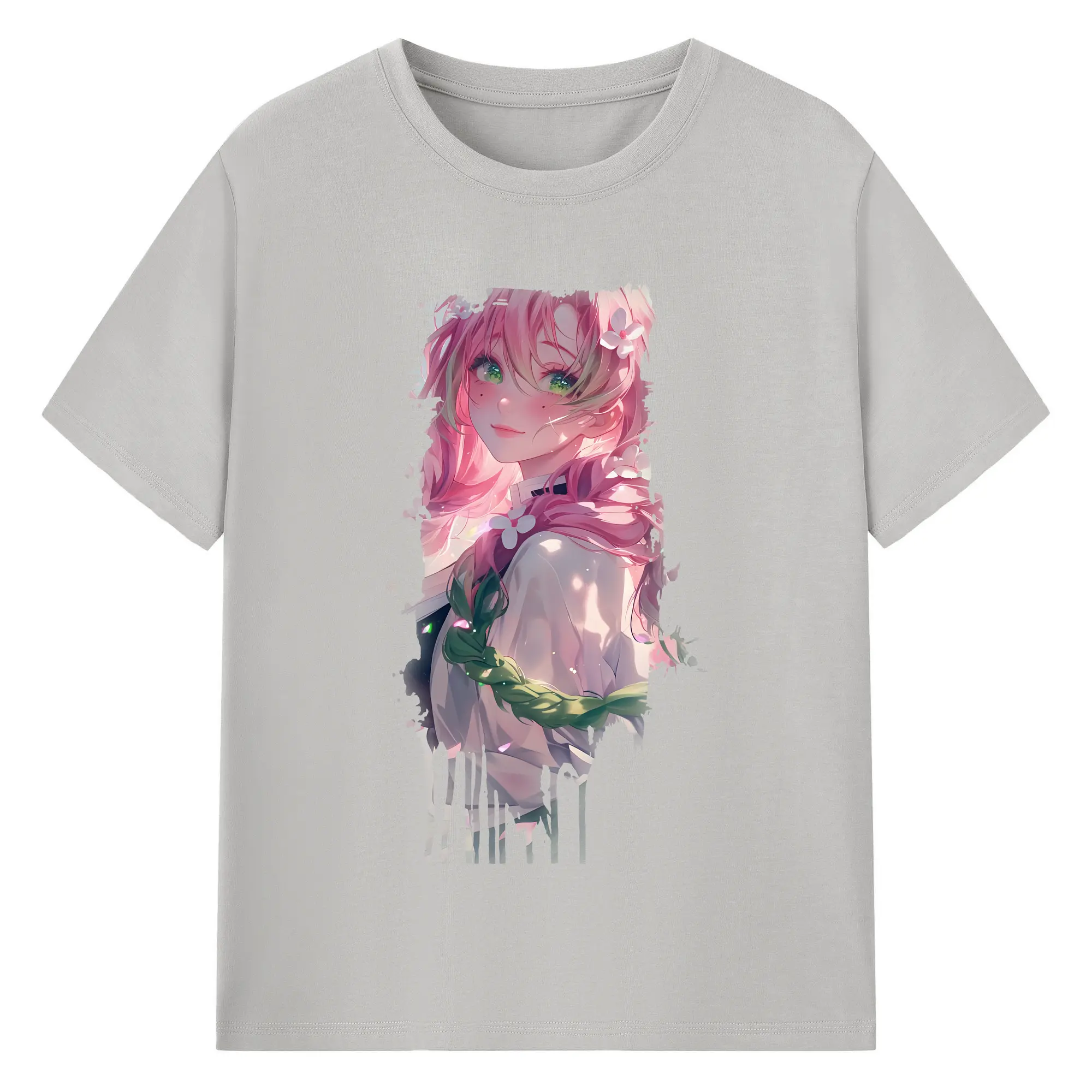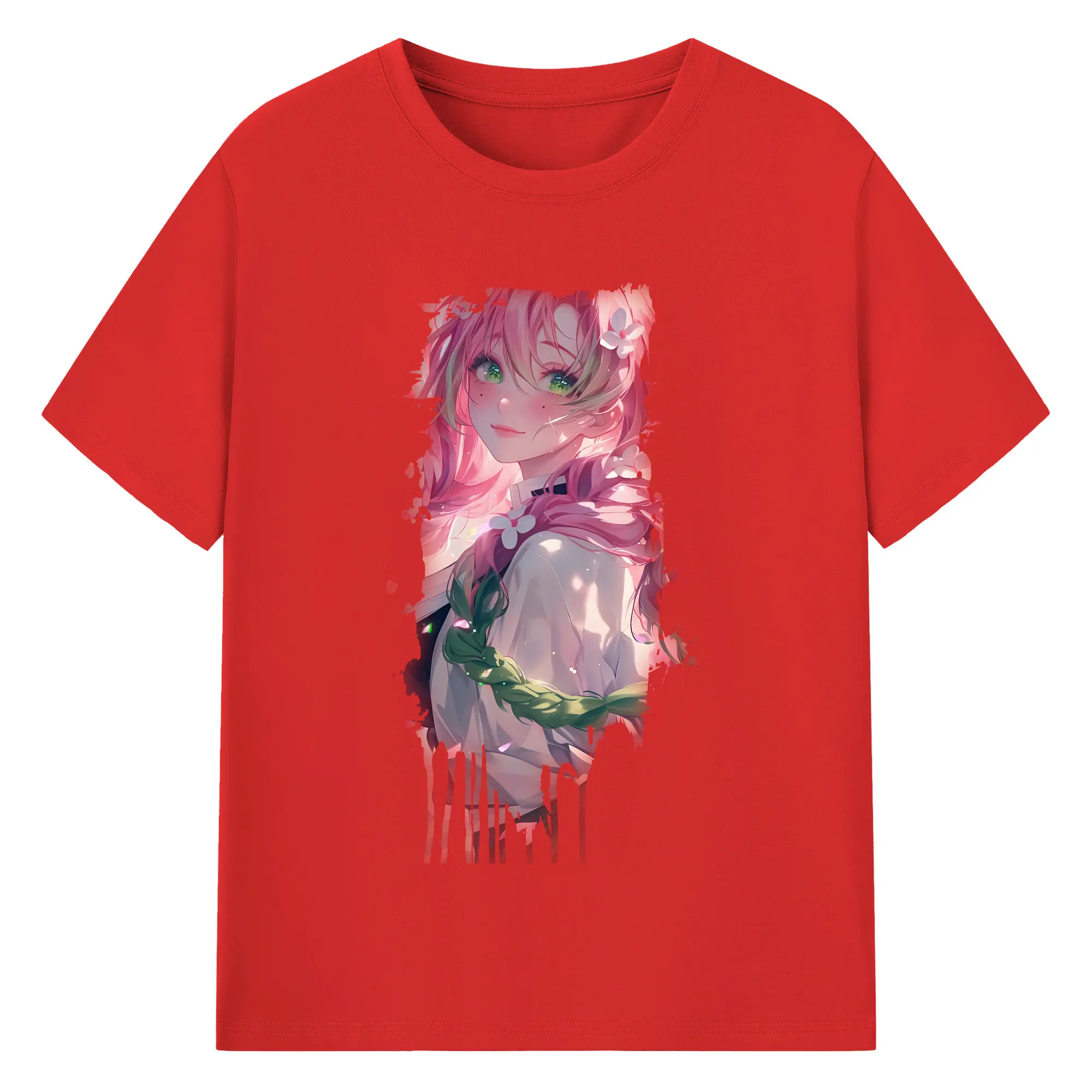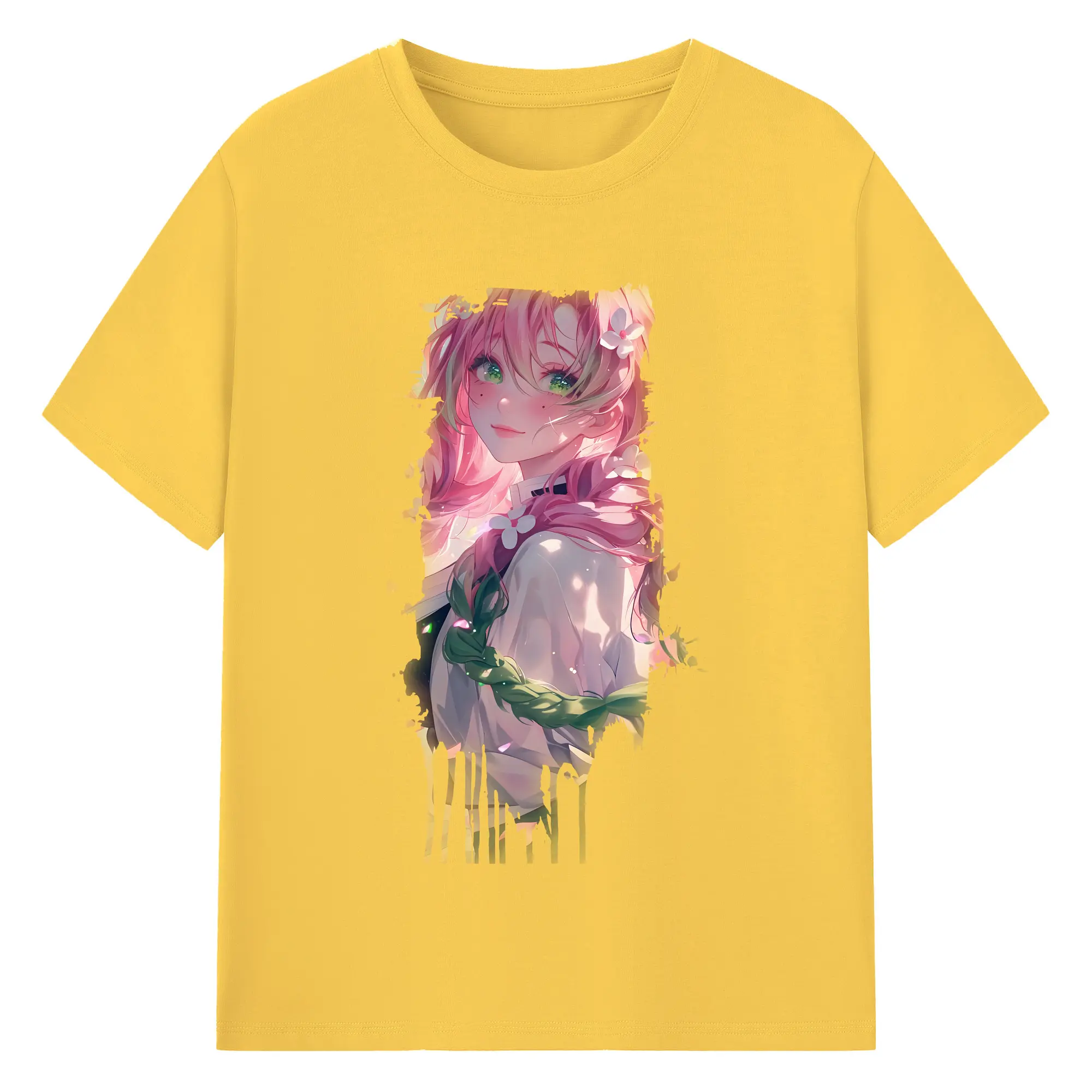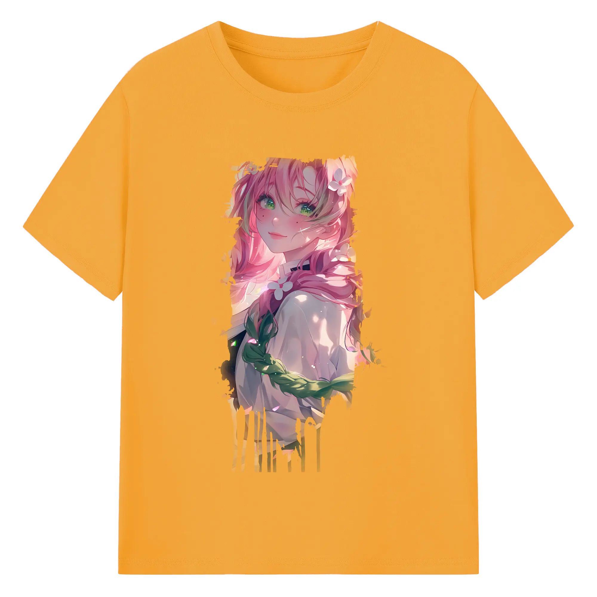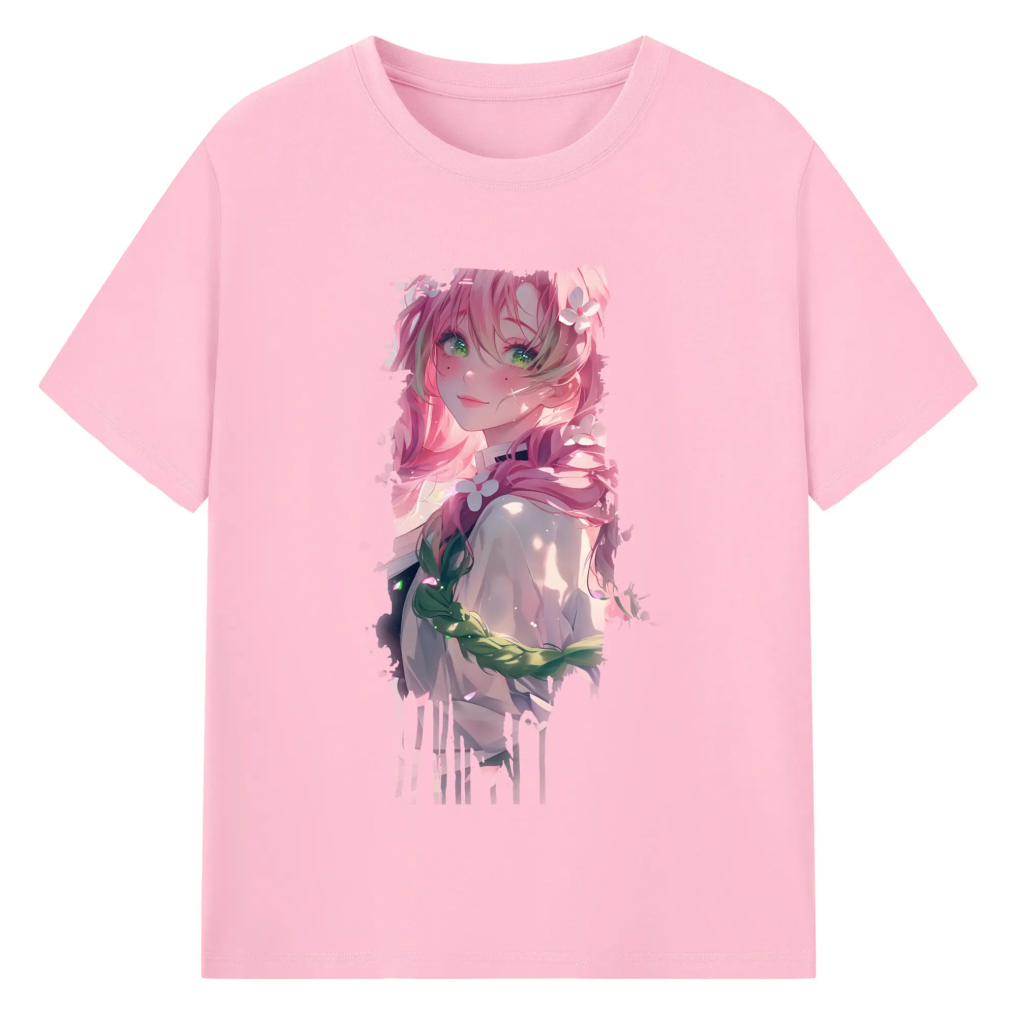 鬼滅の刃 グッズ,甘露寺 蜜璃 - 綿100% 半袖Tシャツ ・ バックプリント ・ 快適 通気性 ・ 日常使い 散歩 スポーツ用