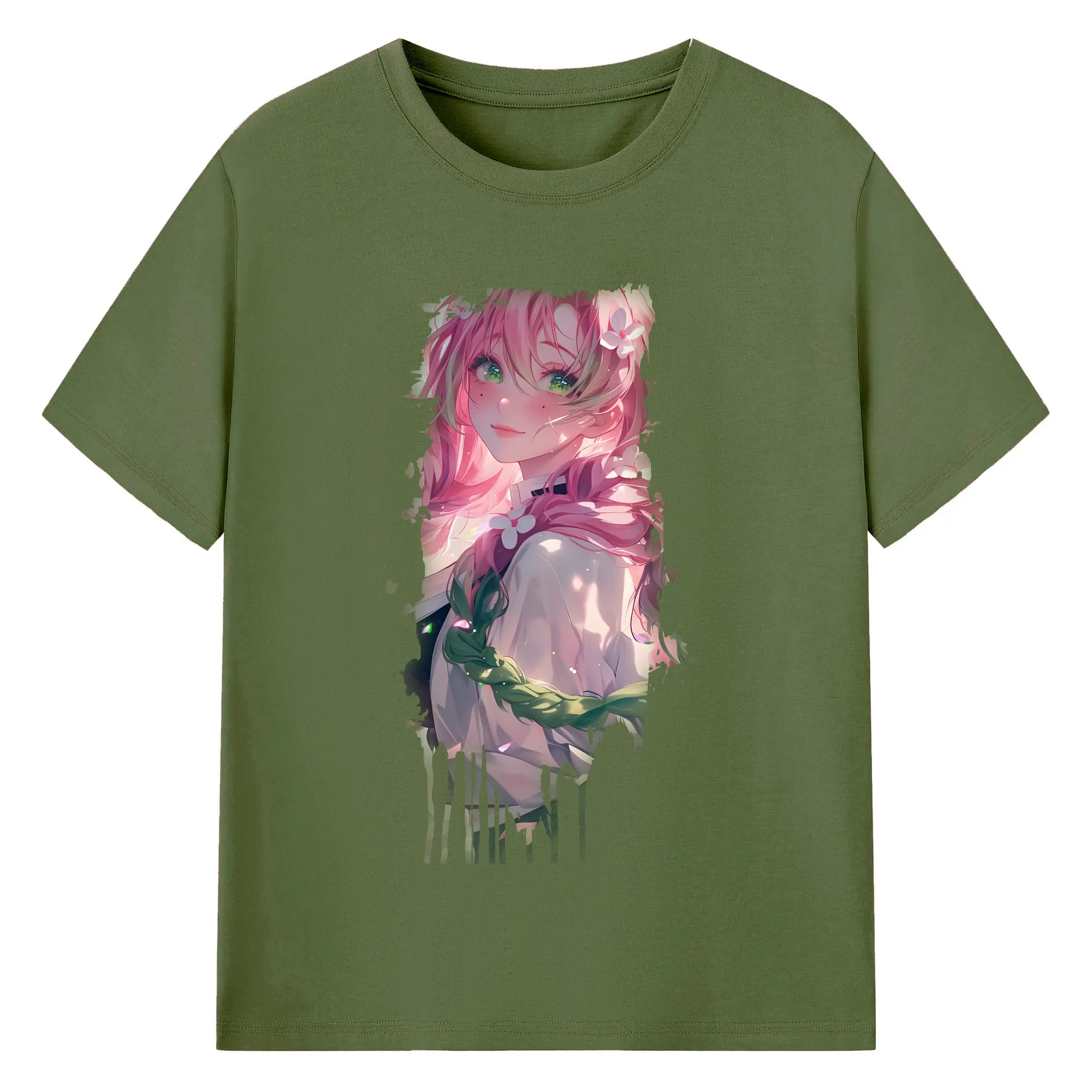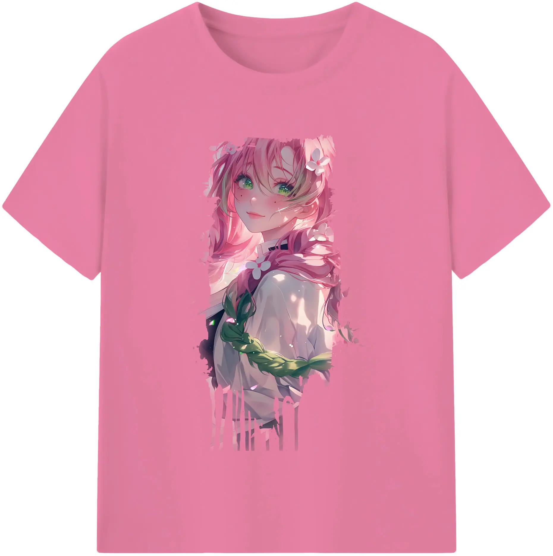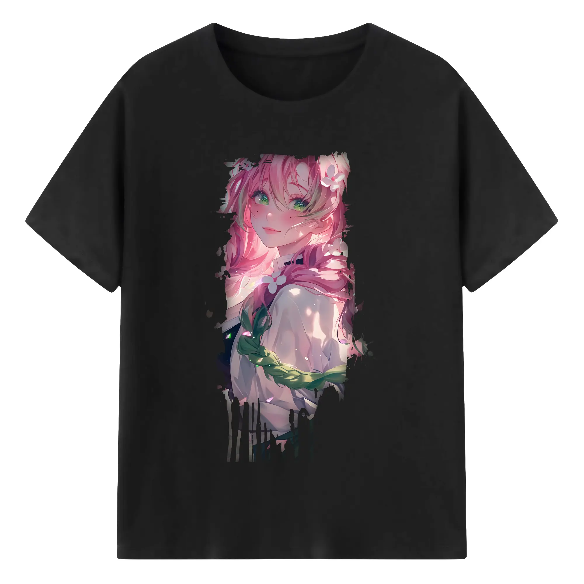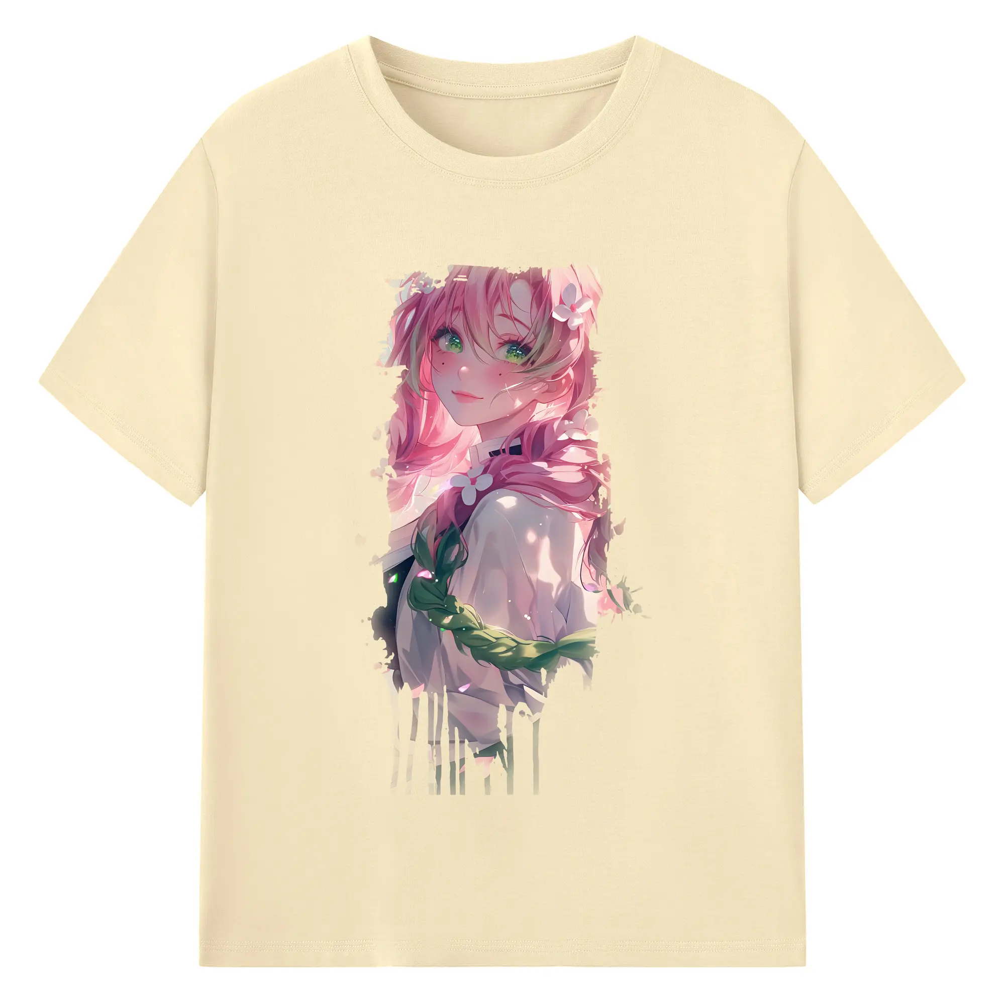 鬼滅の刃 グッズ,甘露寺 蜜璃 - 綿100% 半袖Tシャツ ・ バックプリント ・ 快適 通気性 ・ 日常使い 散歩 スポーツ用